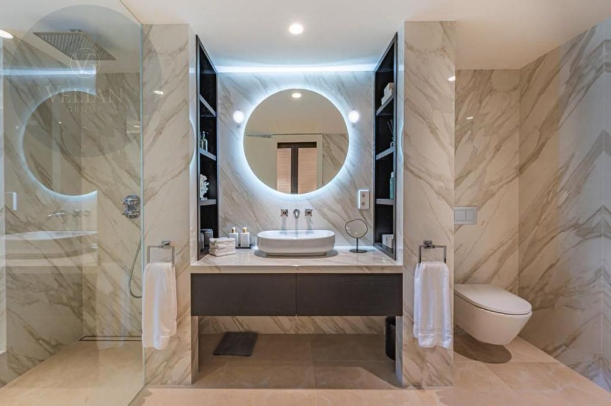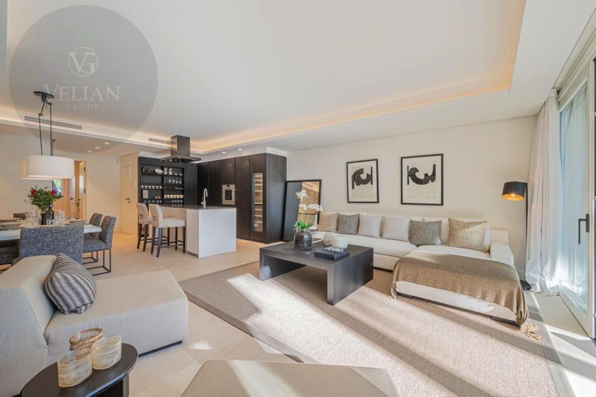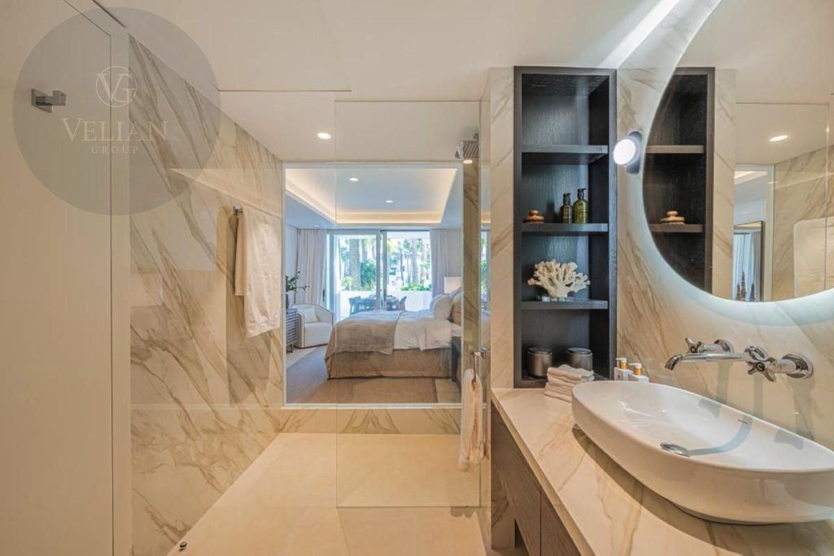 La propiedad cuenta con una gran terraza orientada al sureste con acceso directo a la piscina comunitaria y a la playa, situada a escasos metros. Presenta una distribución de planta abierta, con una cocina moderna diseñada a medida con carpintería en roble e integrada con electrodomésticos Gaggenau. Dispone de 3 amplios dormitorios, cada uno con un elegante diseño contemporáneo y su propio baño en suite.