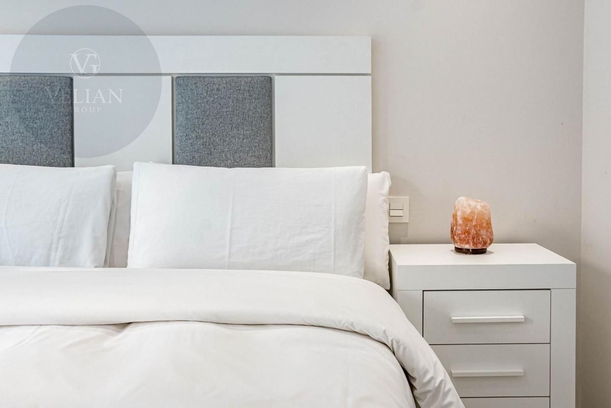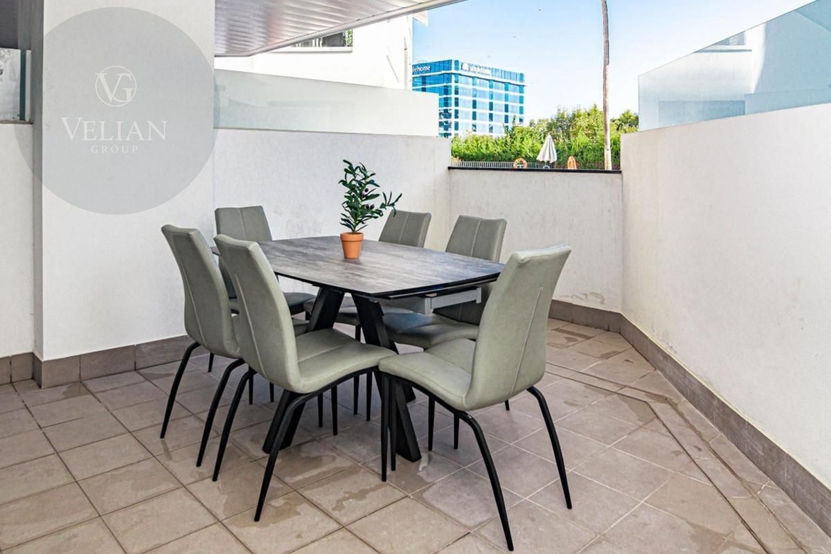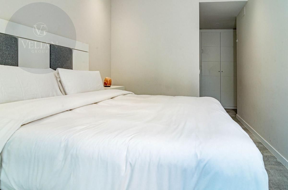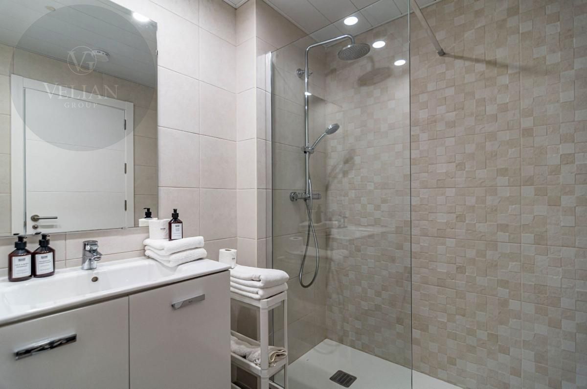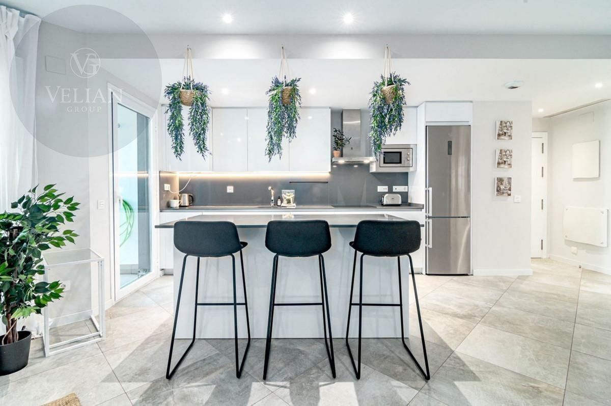 Su distribución: al entrar nos encontramos con un amplio salón con cocina abierta ambas estancias se comunican con la terraza cubierta en el lado derecho, hacia la izquierda tenemos un pasillo donde encontramos en el lado izquierdo el baño de invitados, justo en frente un dormitorio con armarios empotrados, seguimos el pasillo y nos encontramos con otro dormitorio con armarios y al fondo se encuentra el dormitorio principal con una zona de vestidor, el baño en suite y acceso a la terraza descubierta grande. Todas las estancias son exteriores y sus ventanas dan hacia las terrazas privadas. La vivienda dispone de mucho almacenaje; además de los armarios de los dormitorios y el vestidor, la vivienda dispone de armario en la entrada y en el pasillo que conecta los dormitorios.