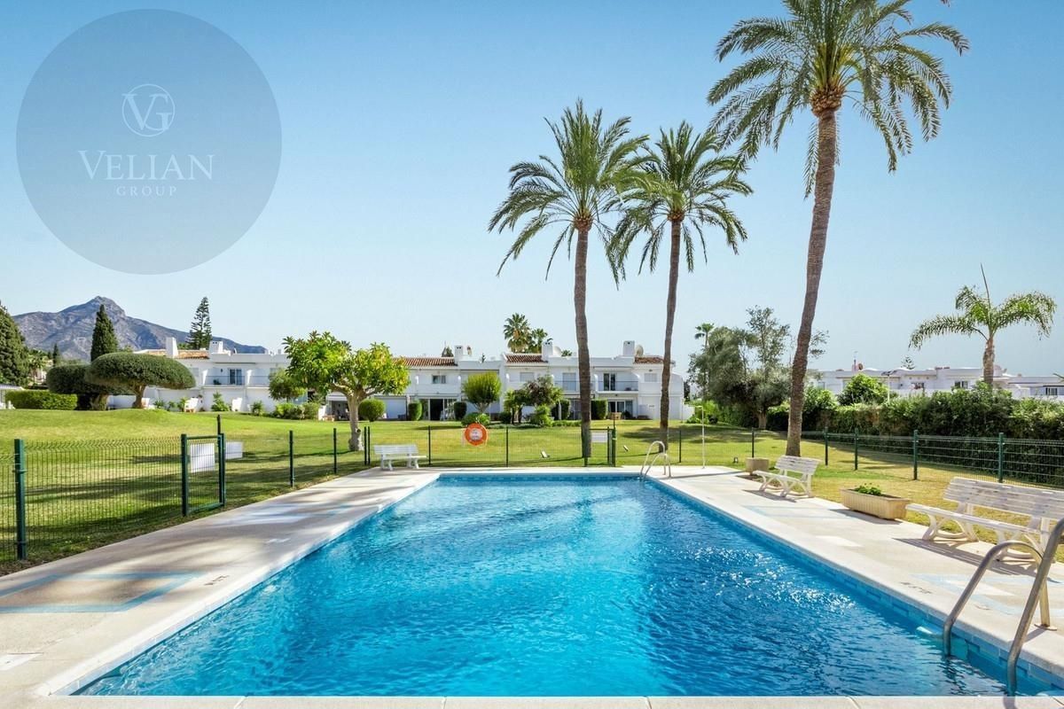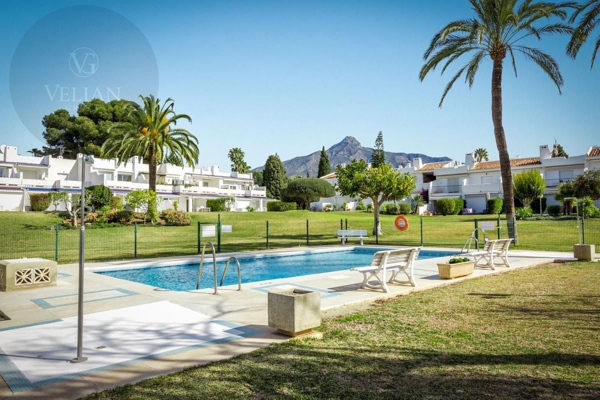 Relajado y fácil de llevar urbanización en Nueva Andalucía envuelto con el encanto tradicional español y situado justo al lado de uno de los clubes de golf más prestigiosos de la Costa del Sol, Aloha Golf Club. A pie de todo Desde golf, playa, restaurantes, supermercado.