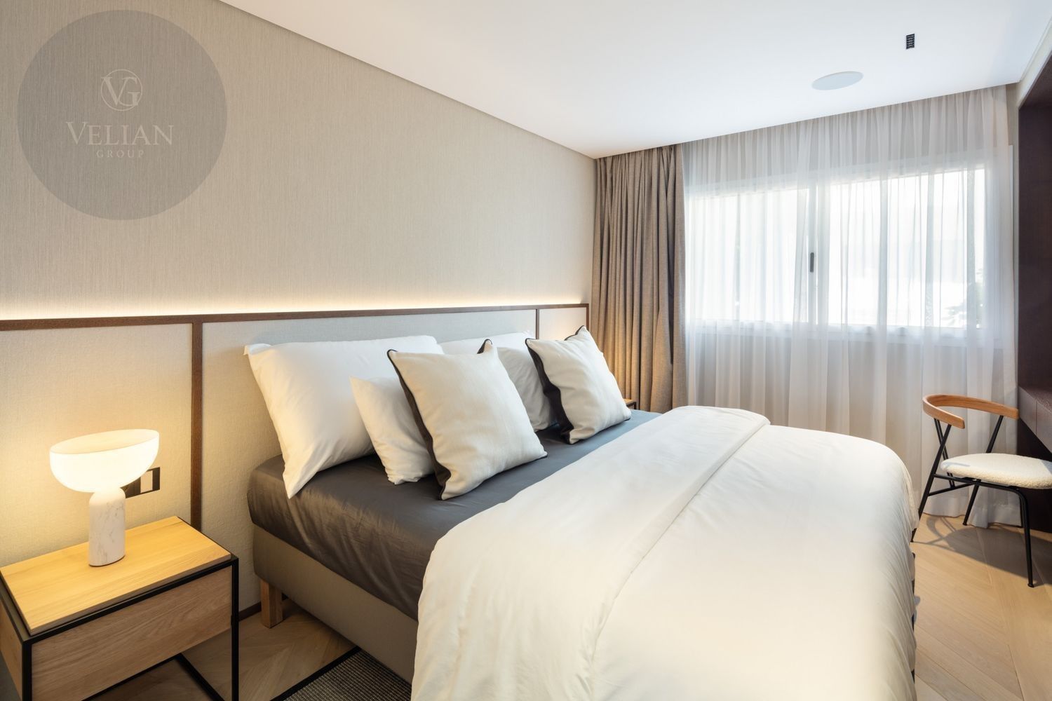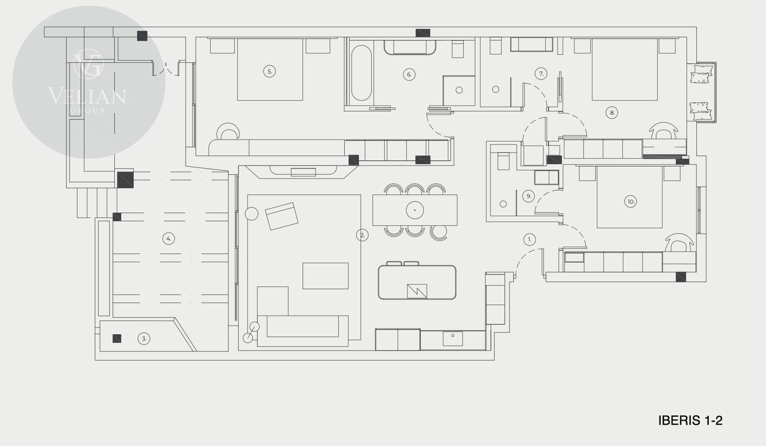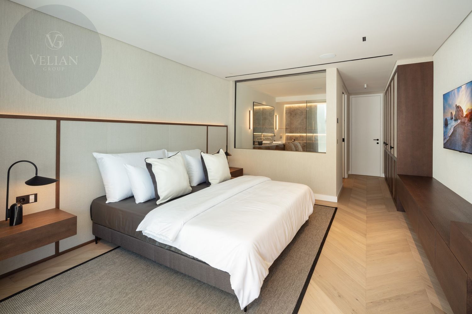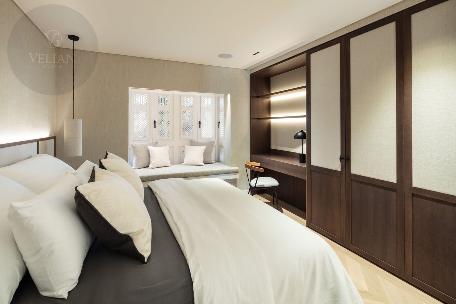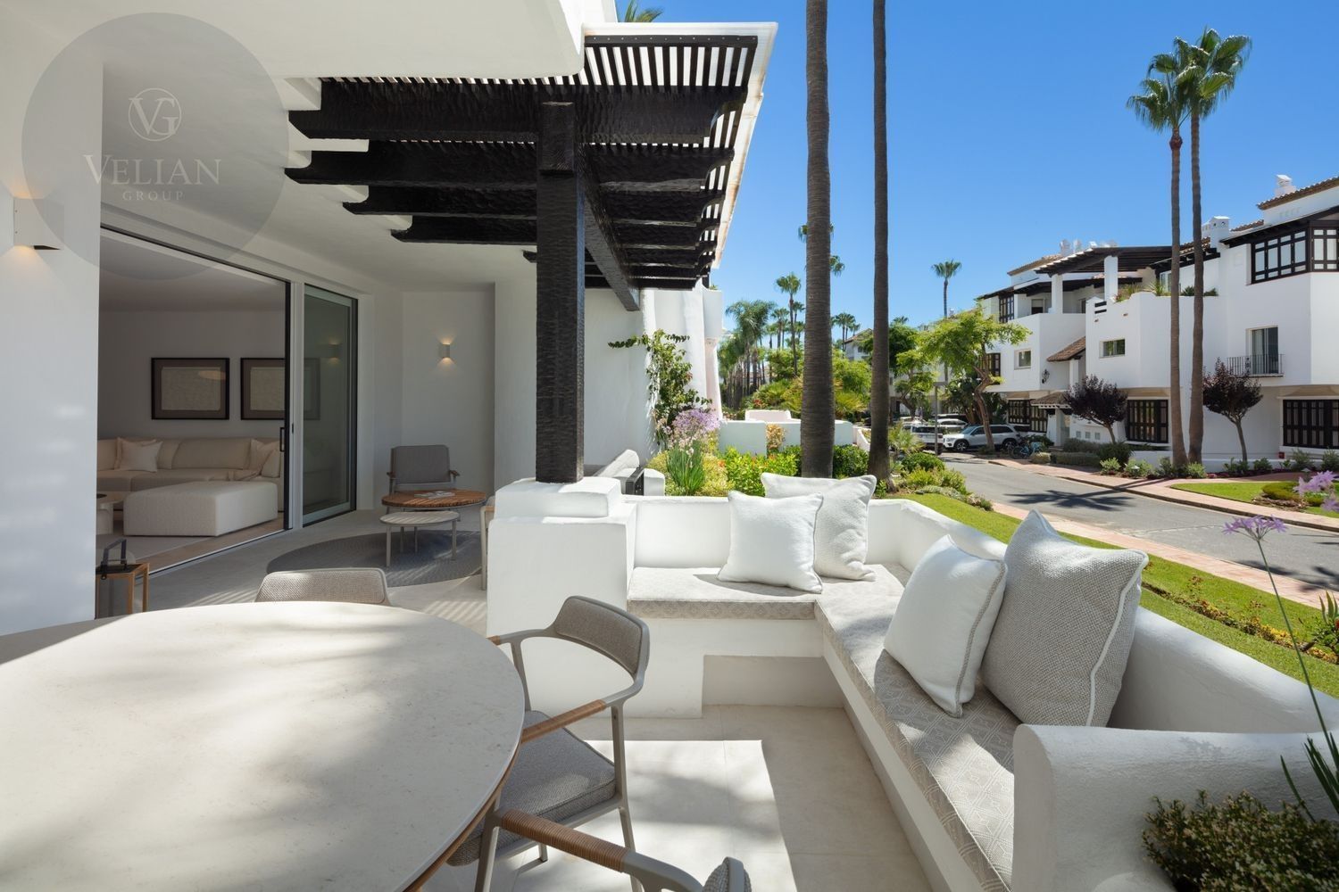 Iberis 12 es un impresionante y moderno apartamento con vistas al mar situado en el exclusivo enclave de Puente Romano Resort, en la Milla de Oro de Marbella. Iberis 12 emana sofisticación junto al mar, abrazando su entorno complejo para representar el estilo de vida mediterráneo de lujo. El apartamento cuenta con una impresionante terraza cubierta y amplia, que ofrece cenas al aire libre y una zona chill-out. Desde la terraza, los residentes pueden disfrutar del hermoso jardín comunitario y de las vistas al mar, creando un ambiente relajante. La terraza tiene acceso directo al salón y al dormitorio principal gracias a las puertas correderas de cristal que van del suelo al techo. El moderno y sofisticado diseño interior se aprecia a través de la cocina abierta, el comedor y el salón. Las tres zonas se combinan a la perfección para crear un espacio cómodo y estético. Los colores neutros y los toques de madera natural del suelo y los armarios de la cocina complementan el espacio. El mobiliario y los acabados modernos decoran el espacio con elegancia, maximizando la comodidad y la practicidad, al tiempo que resultan agradables a la vista. La cocina, totalmente equipada, luce una impresionante isla de cocina con acabados de mármol en la encimera, que también está presente en toda la cocina. Los electrodomésticos de la cocina se pueden sacar de su sitio gracias a su posición dentro de un armario, lo que permite despejar el espacio. Todas las habitaciones están bien equipadas y decoradas con los mejores materiales y muebles, respetando la paleta de colores del diseño interior. Los dormitorios también tienen su propio cuarto de baño. El dormitorio principal es un espacio elegante y acogedor, el lugar ideal para relajarse y descansar. Una ventana de cristal separa el dormitorio del cuarto de baño, donde se puede apreciar la impresionante piedra gris utilizada para el tocador doble, la ducha y la bañera. Con su conveniente ubicación dentro de Puente Romano, los residentes están a pocos minutos de la playa y cerca de todas las comodidades exclusivas que ofrece el Resort y la Milla de Oro de Marbella.