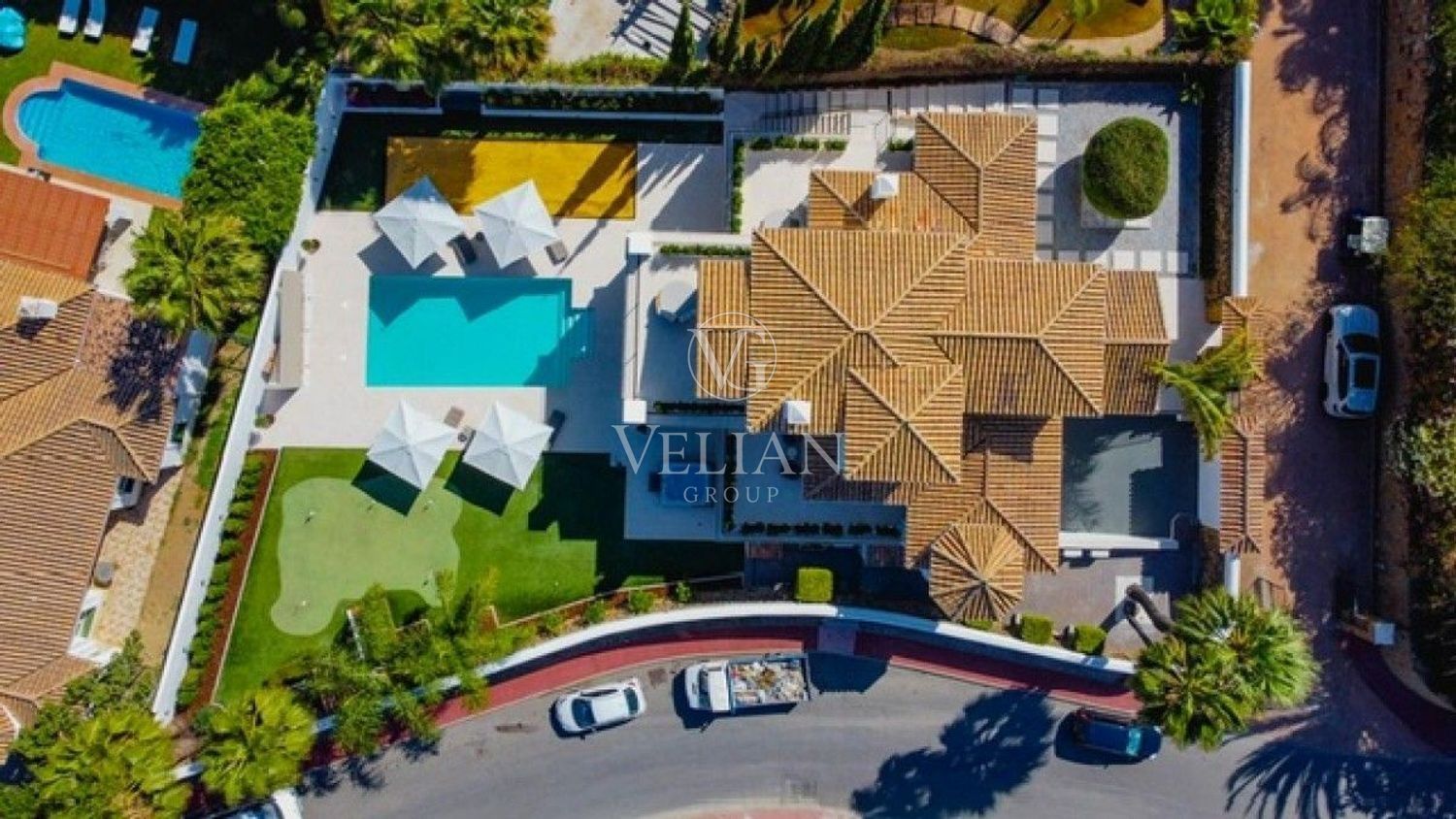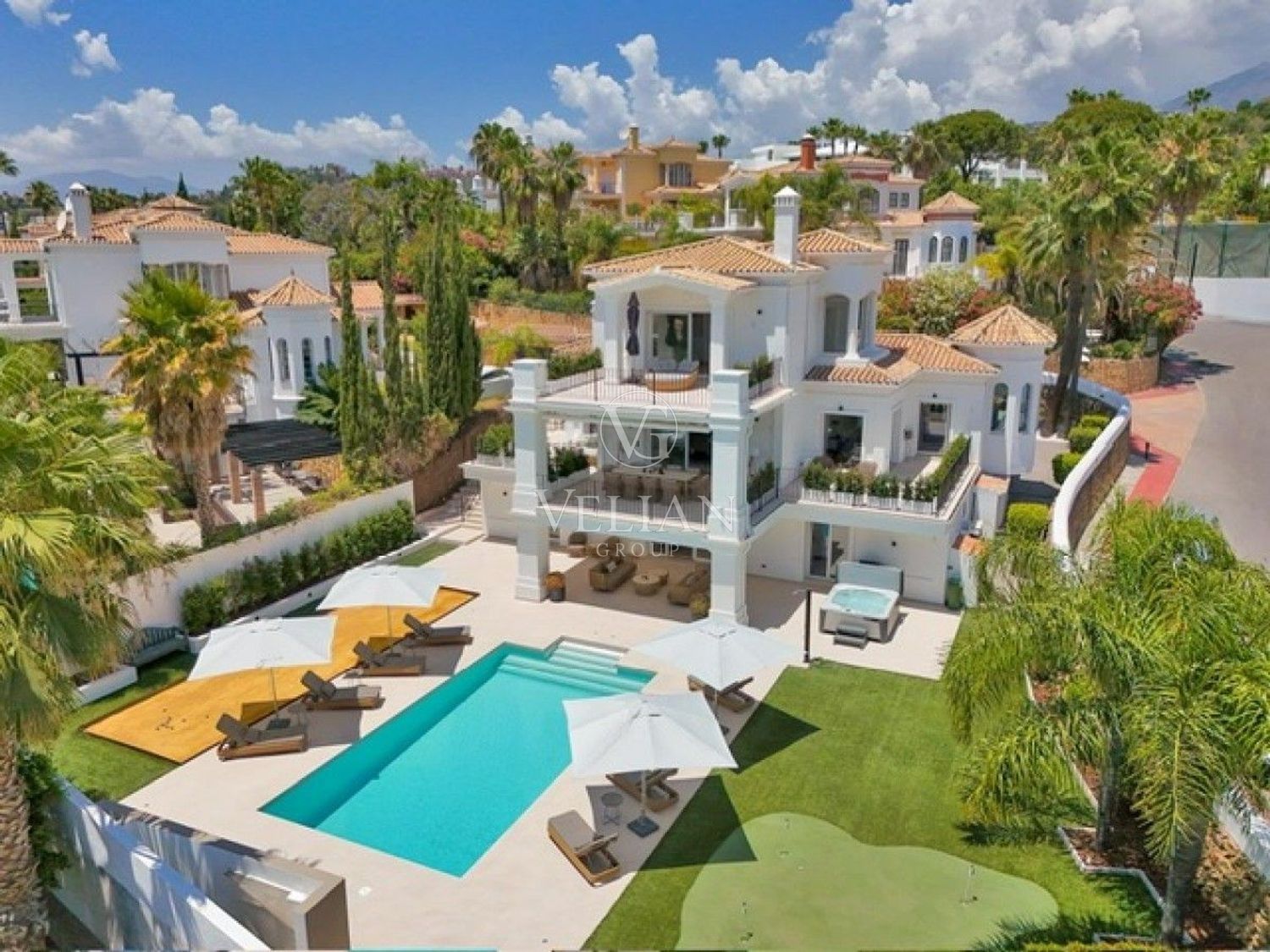 Impresionante villa de 5 dormitorios situado en la prestigiosa zona de Los Naranjos Golf. El interior de la villa es elegante y moderno, que cuenta con 5 habitaciones dobles, 4 baños más un aseo, 2 salones, cocina totalmente equipada además tiene una moderna cocina extra para el personal en la planta baja o huésped adicional y una bodega. El dormitorio principal está situado en la parte superior de la casa con su propio cuarto de baño, vestidor y terraza privada. Hay otra habitación en la planta baja y 3 dormitorios más en el sótano, junto con una amplia sala de estar con bar, cocina / lavadero y bodega. El espacio exterior es perfecto para relajarse y disfrutar de unas vacaciones perfectas con su la familia, manteniendo a todos entretenidos con una magnífica piscina para los niños, zona chill out, hamacas, zona privado de pitch n putt y petanca.