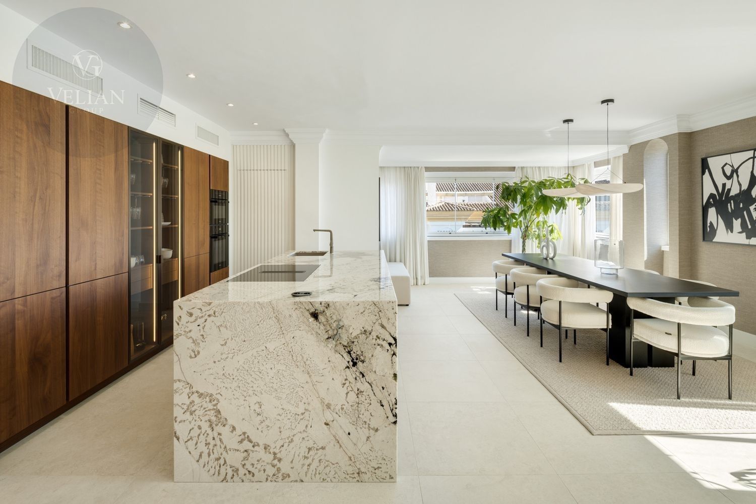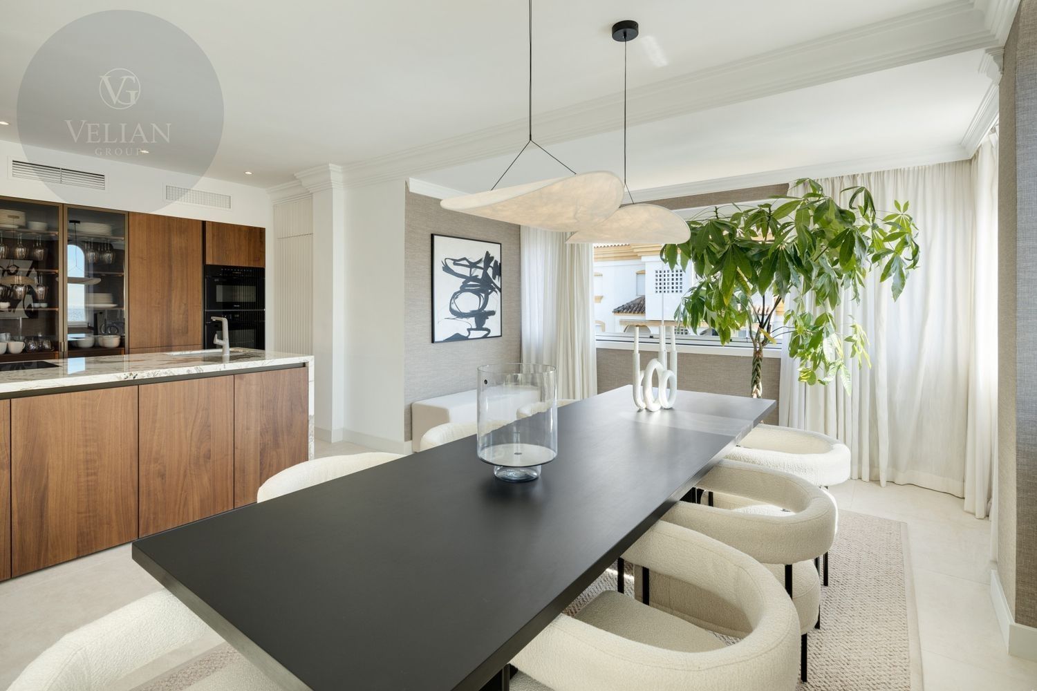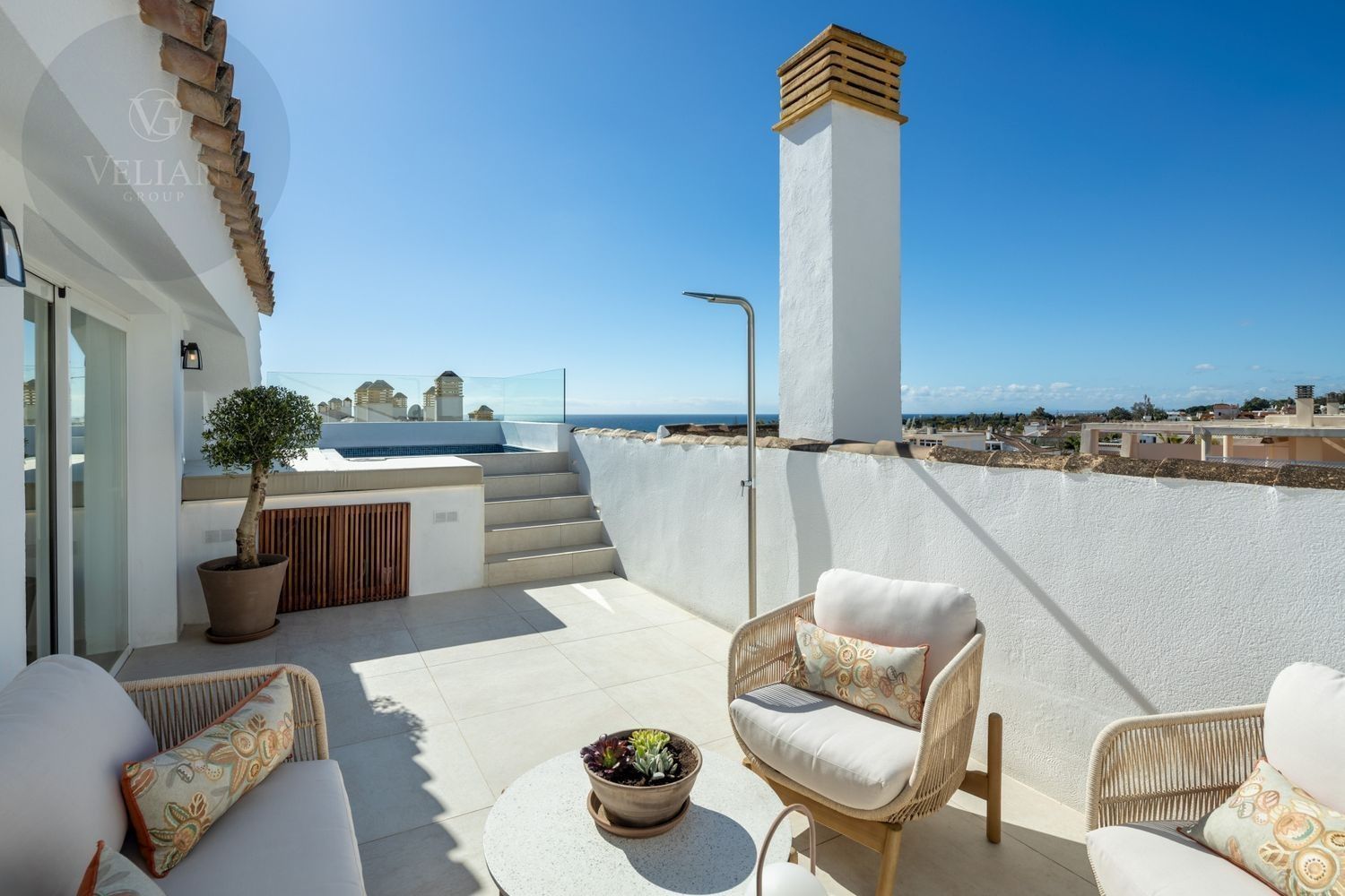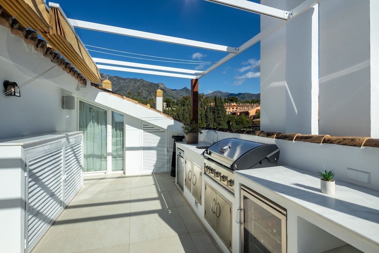 Ubicado en la codiciada zona de Nagüeles, este impresionante dúplex ofrece vistas panorámicas tanto del mar como de las montañas. Con un diseño contemporáneo de concepto abierto, los espacios de salón, comedor y cocina se integran perfectamente, creando un ambiente luminoso y acogedor. La cocina es un verdadero punto destacado, con una llamativa isla de mármol, elegantes gabinetes de madera y electrodomésticos de última generación, complementados con una elegante vinoteca.Las amplias terrazas son perfectas para disfrutar del aire libre, con una cocina exterior y zona de barbacoa, además de un jacuzzi privado, ofreciendo el espacio ideal para relajarse mientras se disfrutan de las vistas. La terraza superior cuenta con una acogedora zona de salón, perfecta tanto para recibir invitados como para relajarse. En el interior, los dormitorios destacan por su confort y elegancia, siendo la suite principal un refugio con vestidor y un lujoso baño en suite.Ubicado en un entorno seguro y exclusivo, este ático ofrece acceso conveniente a las mejores atracciones de Marbella, incluyendo restaurantes gourmet, playas de ensueño y boutiques de lujo.