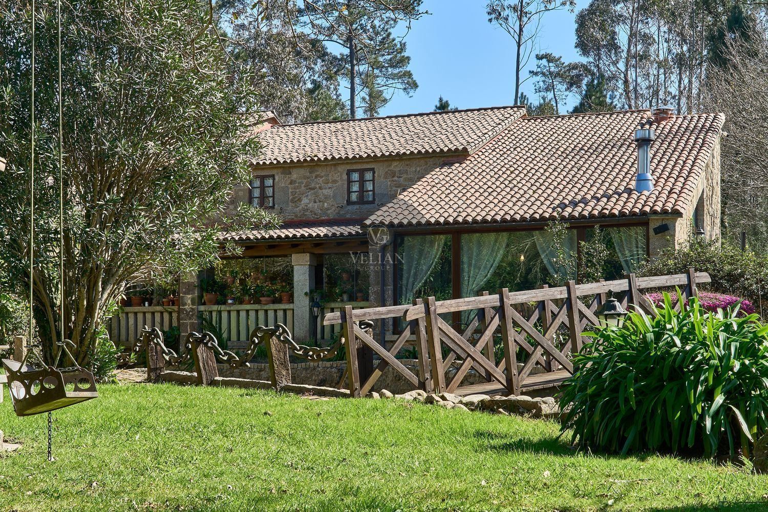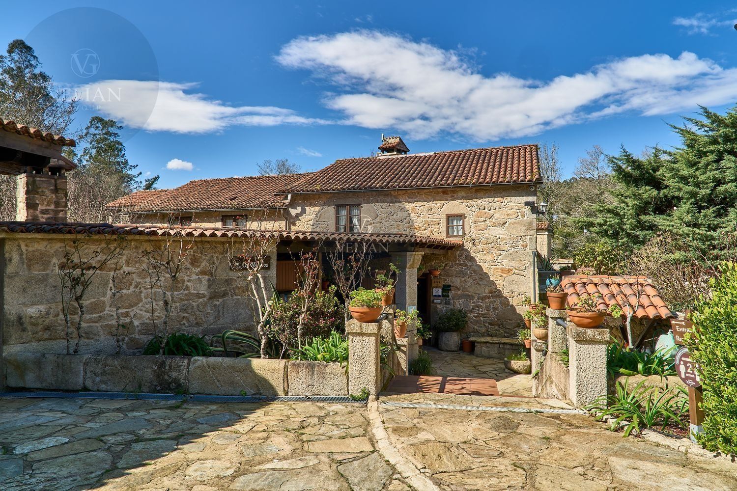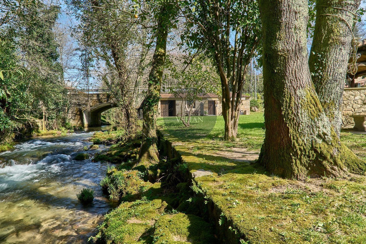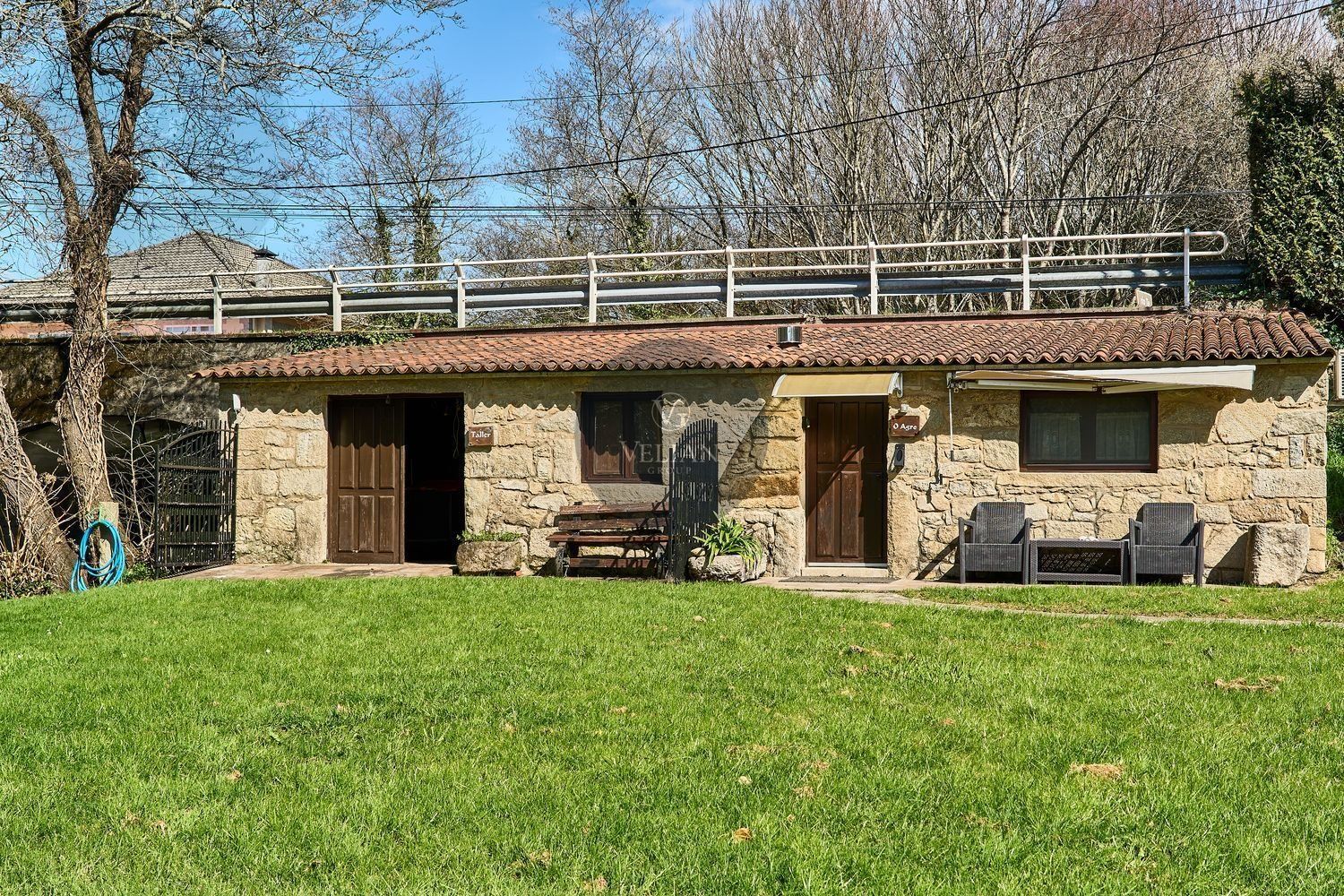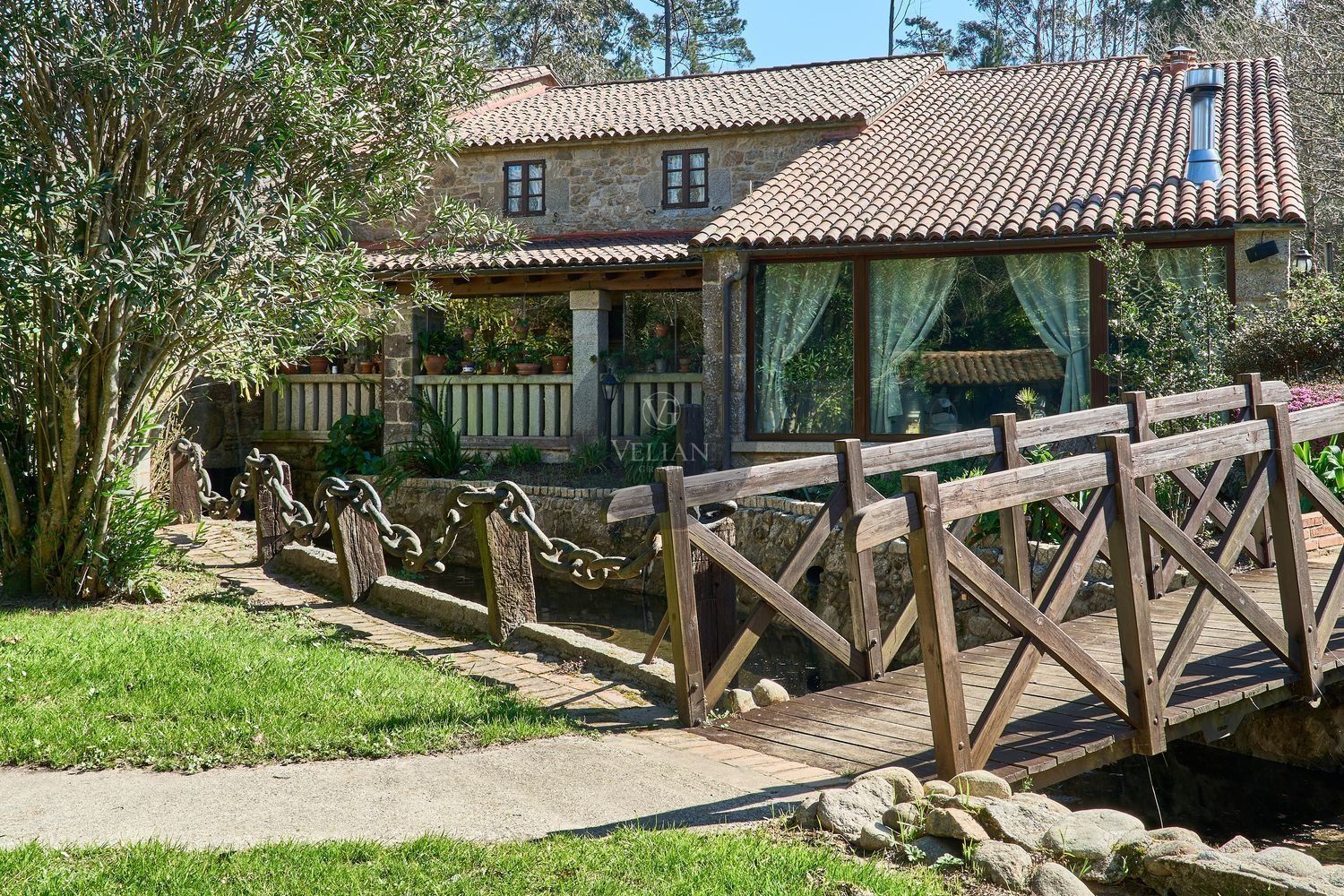 En cuanto a los exteriores, la finca ofrece un paraje idílico con un río pasa por el lado oeste de la propiedad, zonas de descanso, senderos naturales y amplios espacios verdes, lo que lo convierte en un destino ideal para quienes buscan tranquilidad y conexión con la naturaleza. Además, su ubicación estratégica en las Rías Baixas, a solo 30 km de Santiago de Compostela, lo sitúa en un punto clave para atraer turismo de calidad. La zona ofrece una gran variedad de actividades como senderismo, equitación, pesca, paintball y rutas gastronómicas, además de la cercanía con algunas de las mejores playas de Galicia.