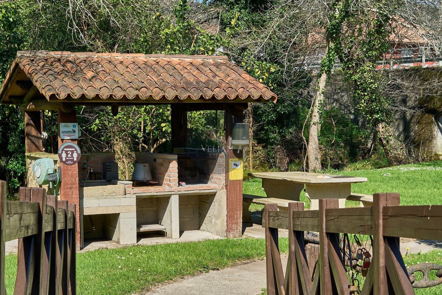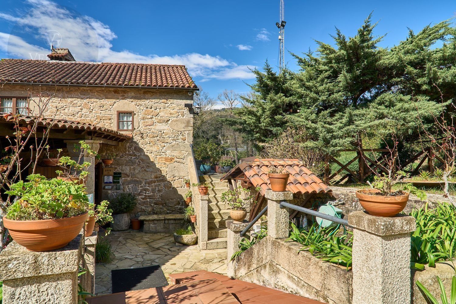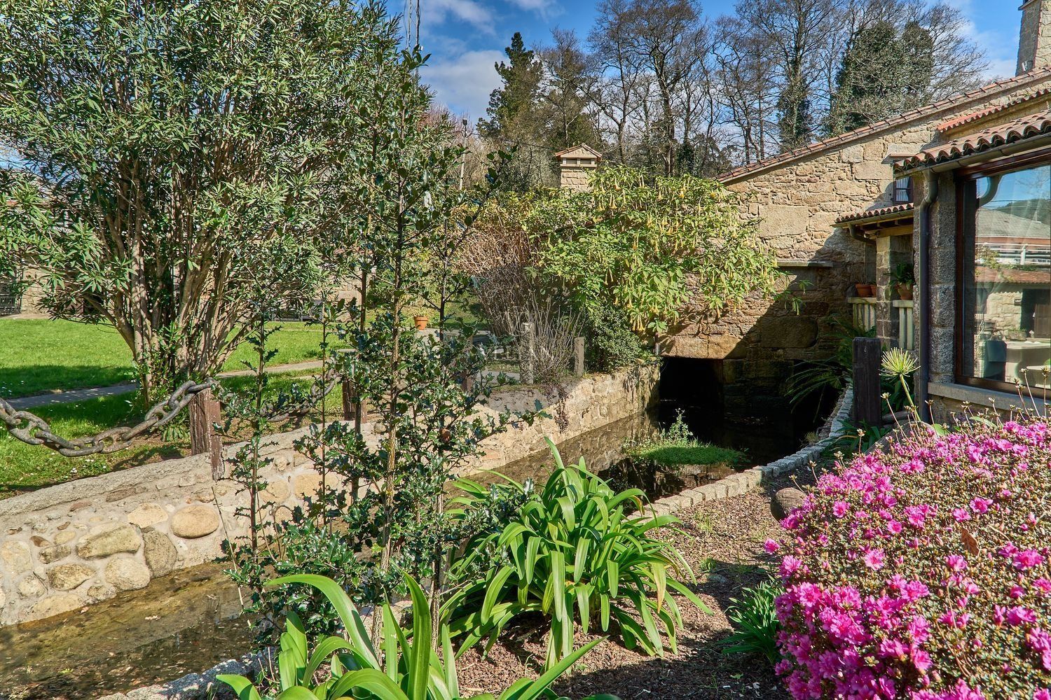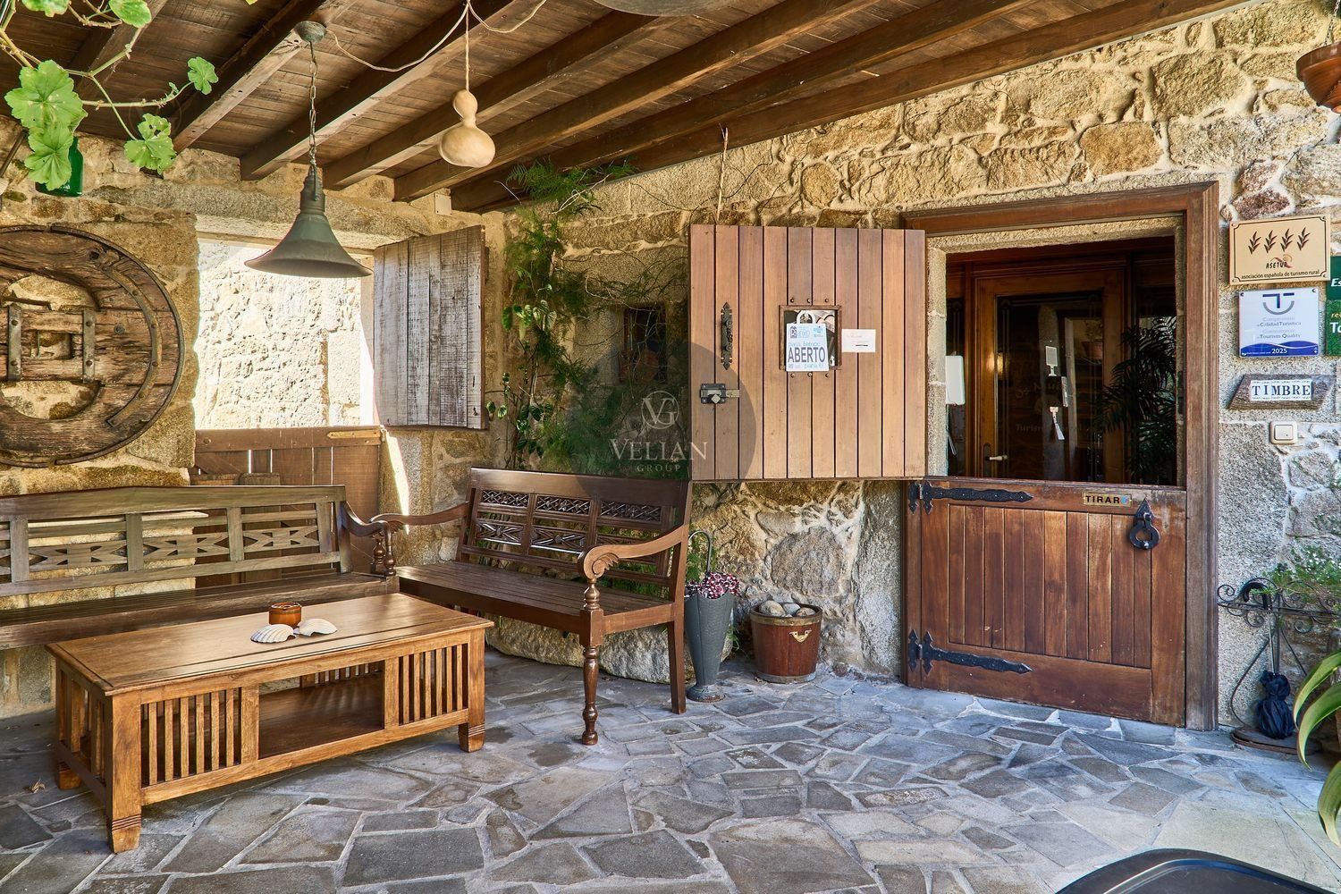 En cuanto a los exteriores, la finca ofrece un paraje idílico con un río pasa por el lado oeste de la propiedad, zonas de descanso, senderos naturales y amplios espacios verdes, lo que lo convierte en un destino ideal para quienes buscan tranquilidad y conexión con la naturaleza. Además, su ubicación estratégica en las Rías Baixas, a solo 30 km de Santiago de Compostela, lo sitúa en un punto clave para atraer turismo de calidad. La zona ofrece una gran variedad de actividades como senderismo, equitación, pesca, paintball y rutas gastronómicas, además de la cercanía con algunas de las mejores playas de Galicia.
