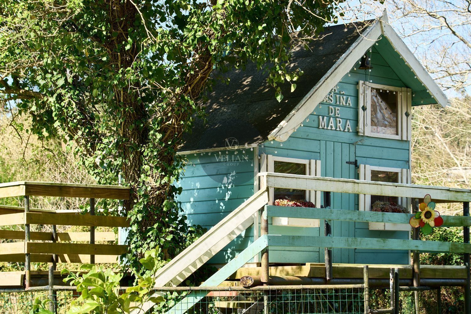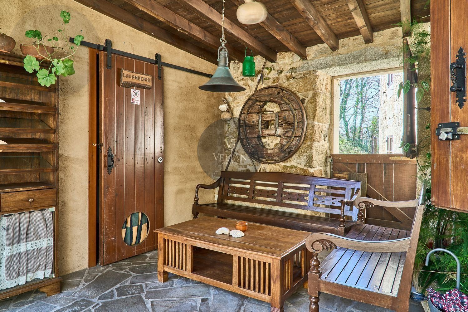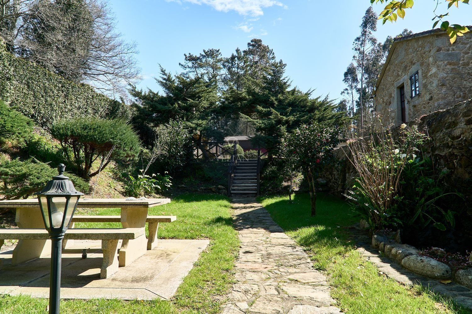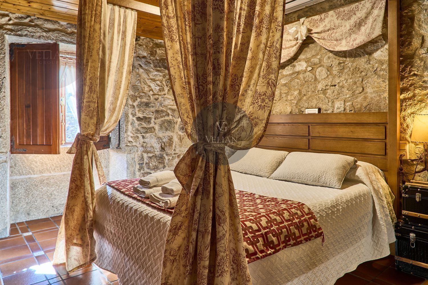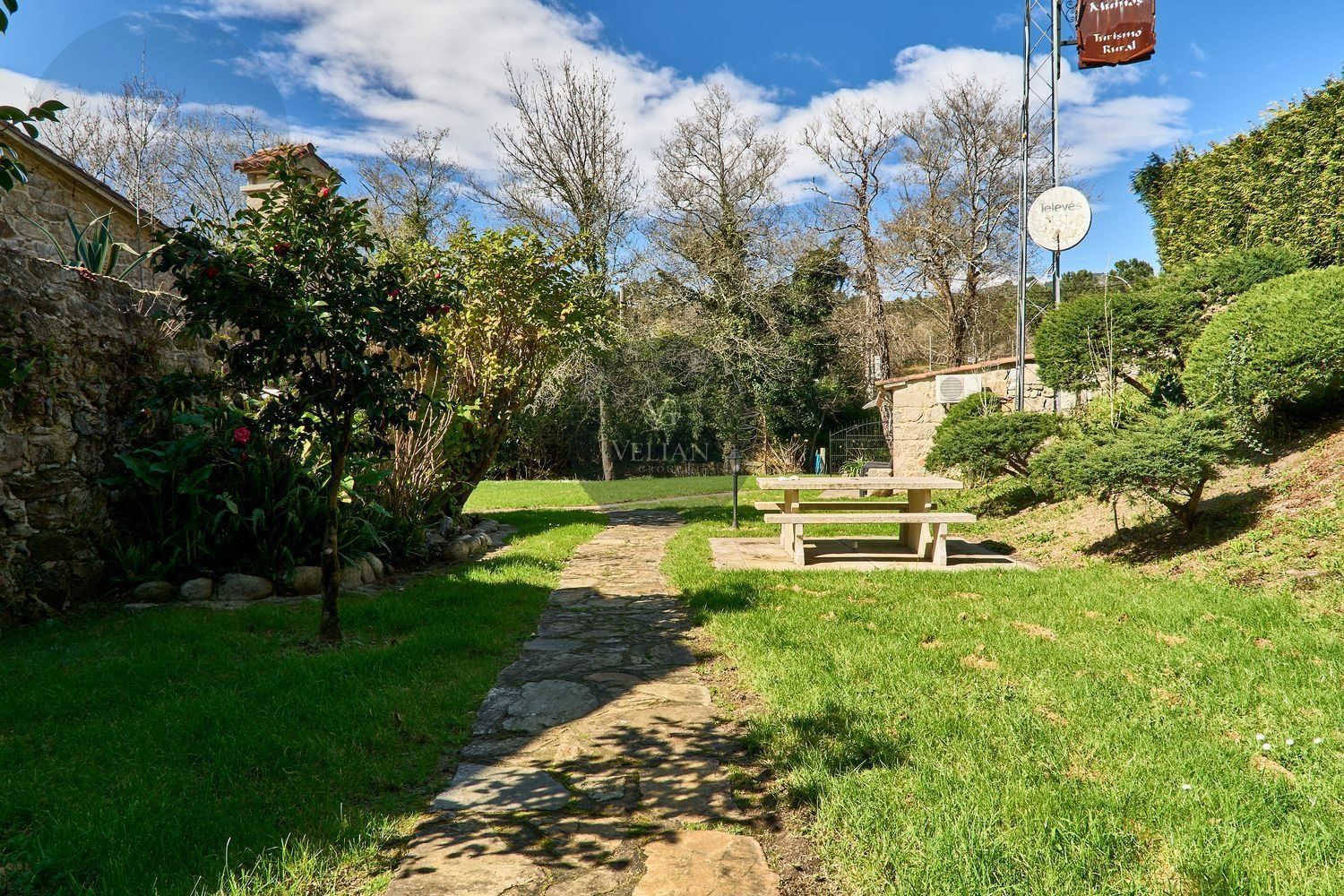 En cuanto a los exteriores, la finca ofrece un paraje idílico con un río pasa por el lado oeste de la propiedad, zonas de descanso, senderos naturales y amplios espacios verdes, lo que lo convierte en un destino ideal para quienes buscan tranquilidad y conexión con la naturaleza. Además, su ubicación estratégica en las Rías Baixas, a solo 30 km de Santiago de Compostela, lo sitúa en un punto clave para atraer turismo de calidad. La zona ofrece una gran variedad de actividades como senderismo, equitación, pesca, paintball y rutas gastronómicas, además de la cercanía con algunas de las mejores playas de Galicia.