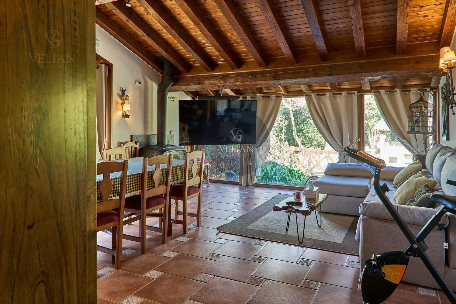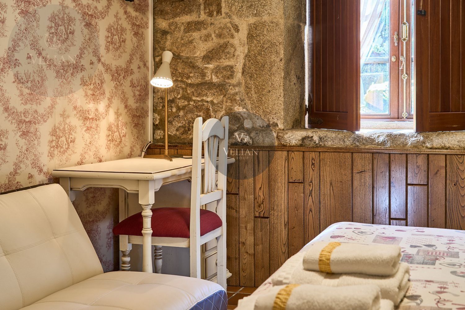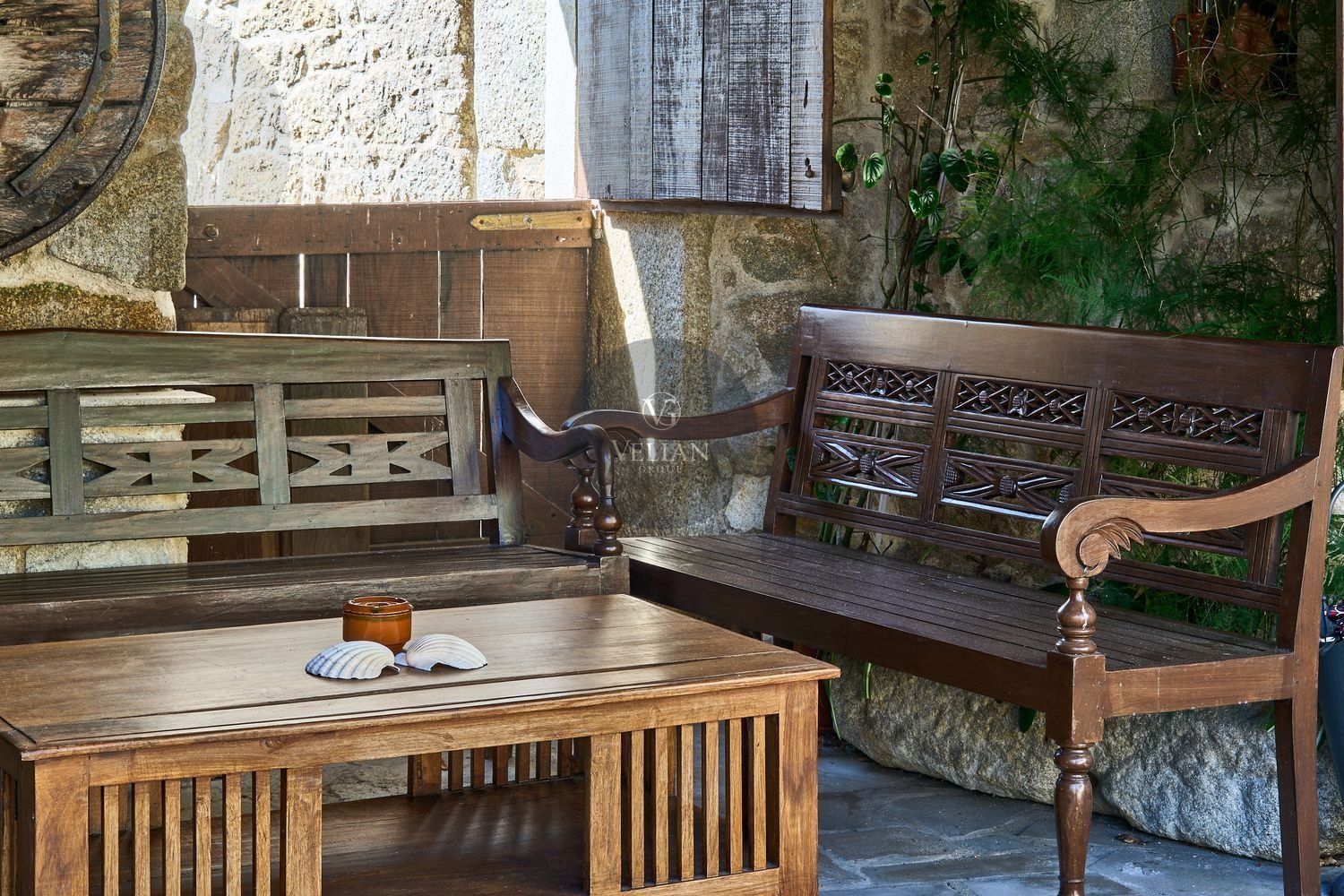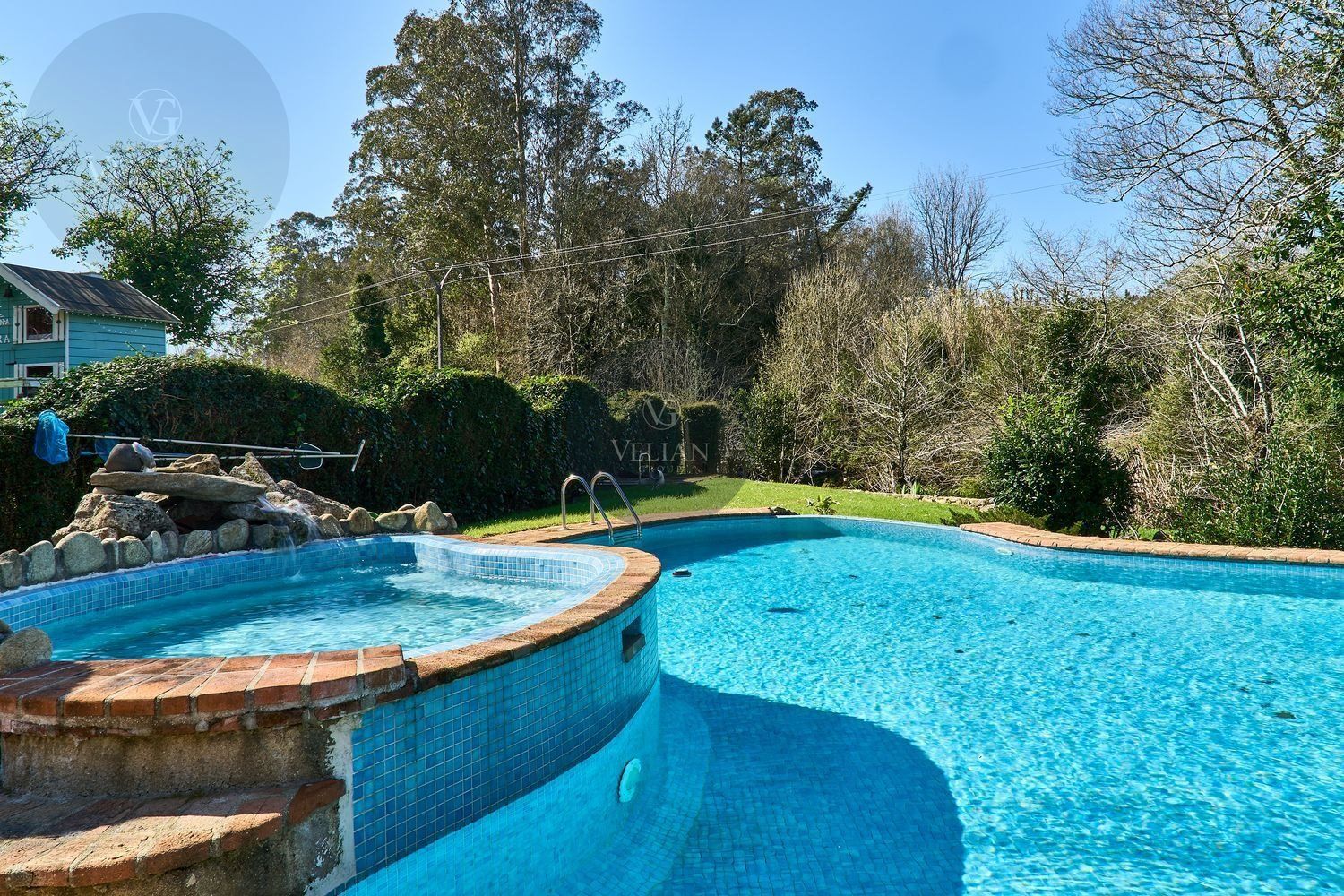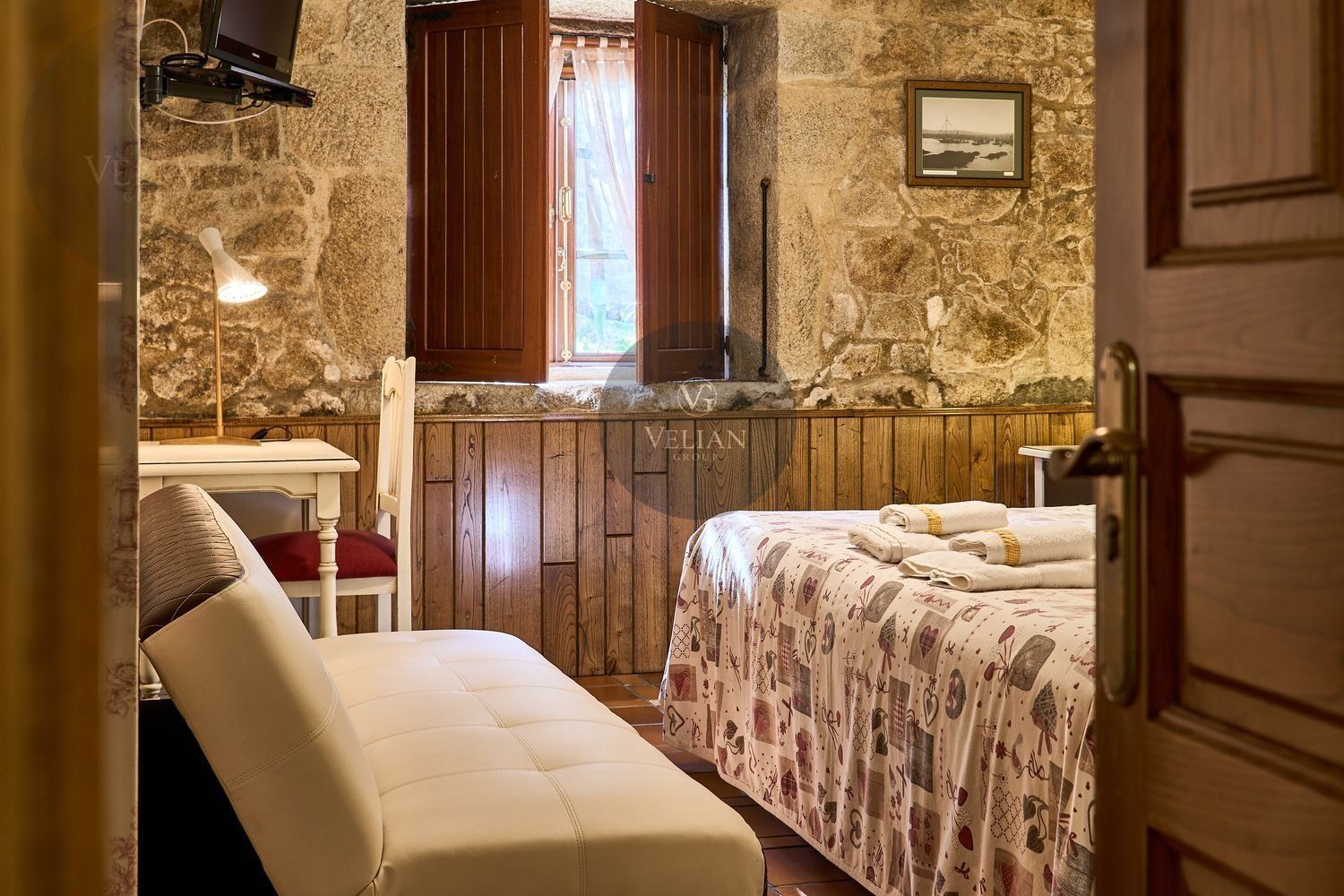 En cuanto a los exteriores, la finca ofrece un paraje idílico con un río pasa por el lado oeste de la propiedad, zonas de descanso, senderos naturales y amplios espacios verdes, lo que lo convierte en un destino ideal para quienes buscan tranquilidad y conexión con la naturaleza. Además, su ubicación estratégica en las Rías Baixas, a solo 30 km de Santiago de Compostela, lo sitúa en un punto clave para atraer turismo de calidad. La zona ofrece una gran variedad de actividades como senderismo, equitación, pesca, paintball y rutas gastronómicas, además de la cercanía con algunas de las mejores playas de Galicia.