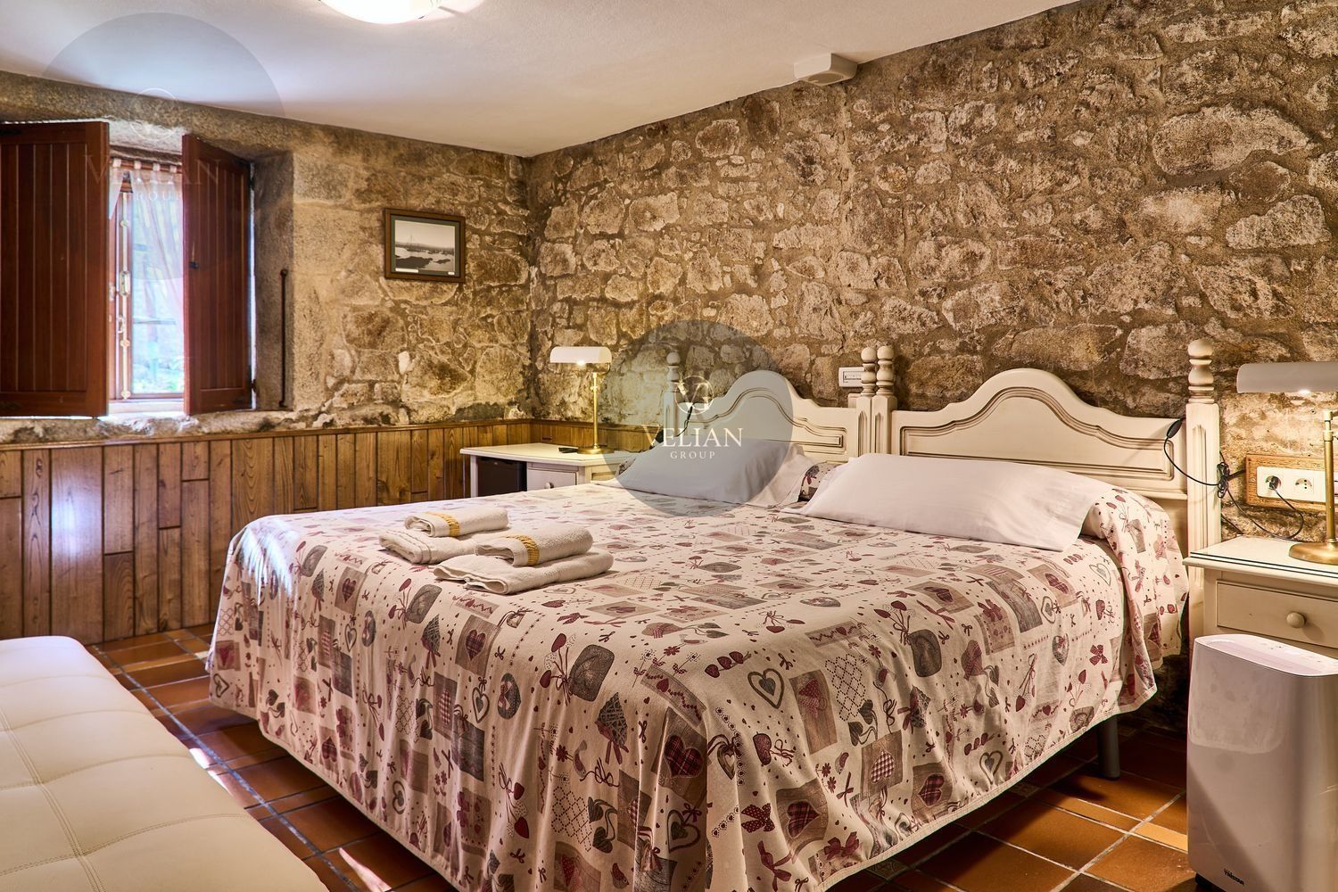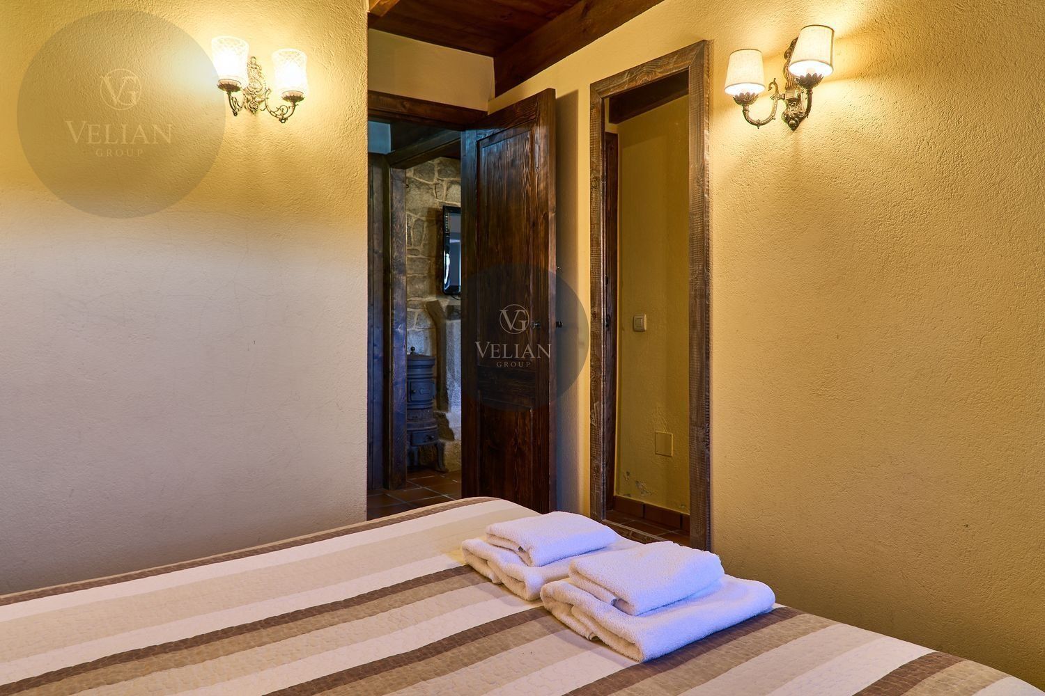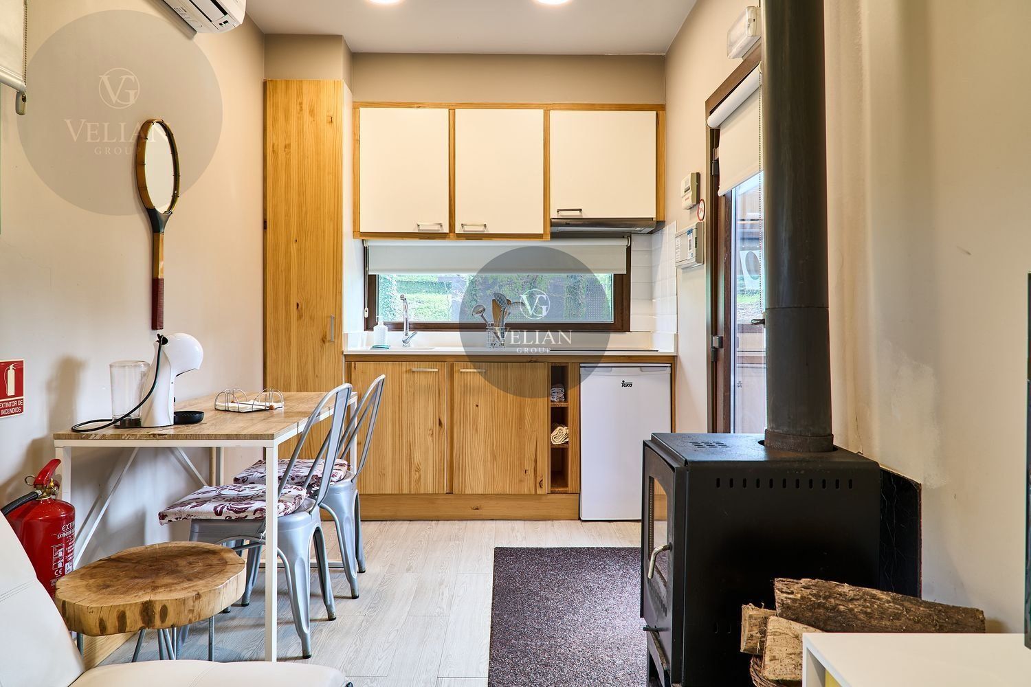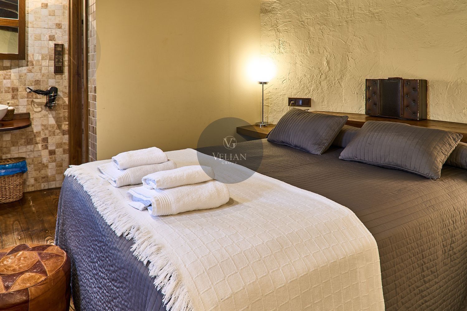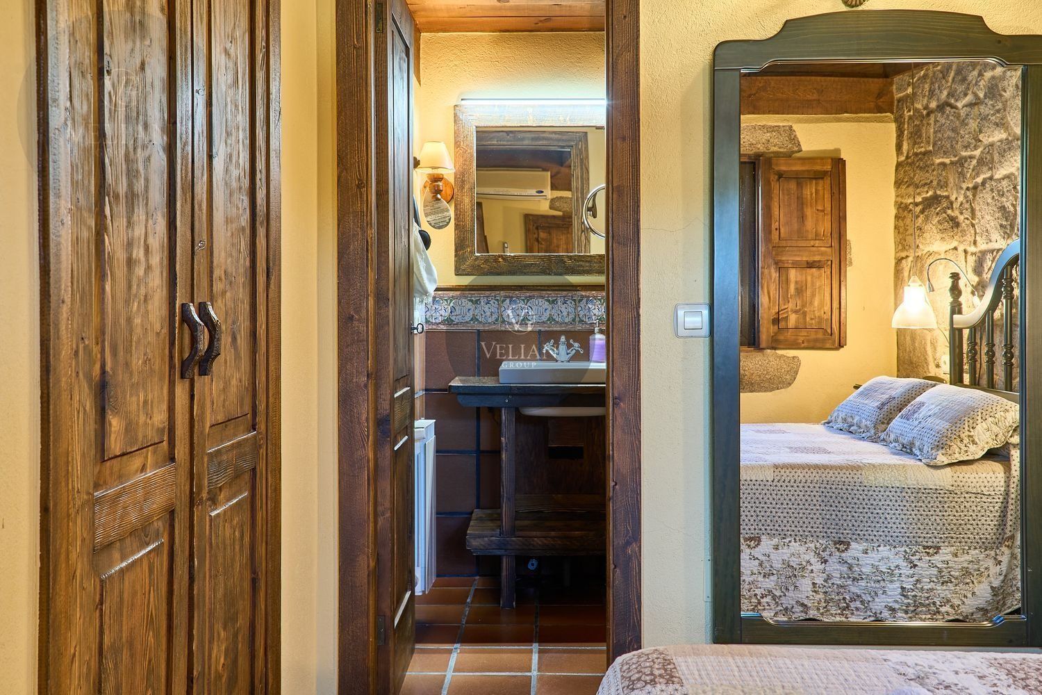 El complejo está compuesto por una casa principal de piedra con seis habitaciones dobles con baño en suite, amplias, luminosas, con calefacción central por gasoil, por suelo radiante y aire acondicionado, ofreciendo una estancia de máximo confort. Además, cuenta con tres cabañas bioclimáticas situadas en el bosque, construidas con contenedores marítimos reciclados y revestidas en madera para una integración perfecta con el entorno. Estas cabañas han sido diseñadas con un enfoque sostenible y funcional, incluyendo chimenea, cocina equipada, televisión, bañera de hidromasaje, terraza privada con barbacoa y acceso a una piscina-jacuzzi compartida. Una de ellas, un antiguo palomar reformado, ha sido convertida en una espectacular suite con un diseño exclusivo.