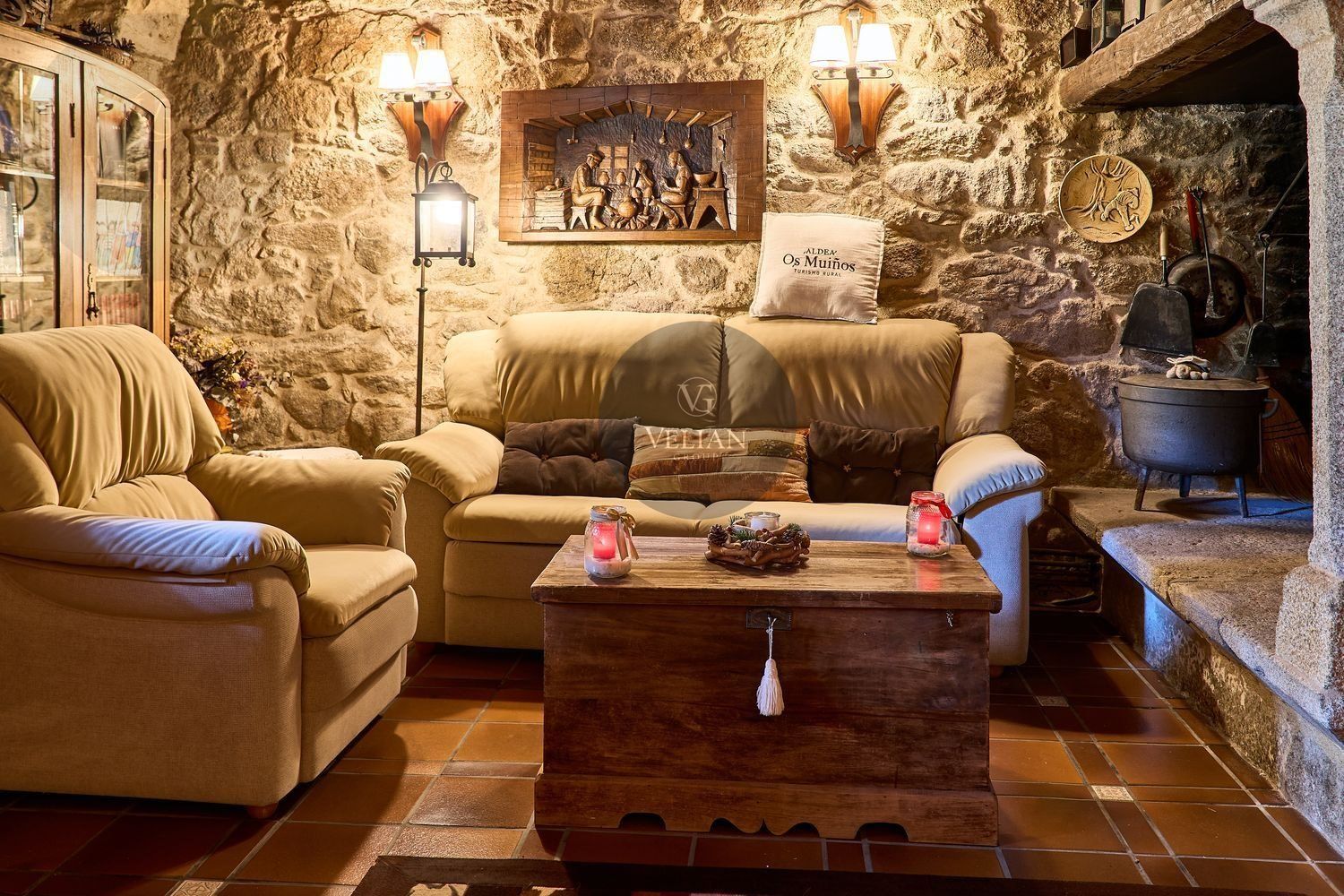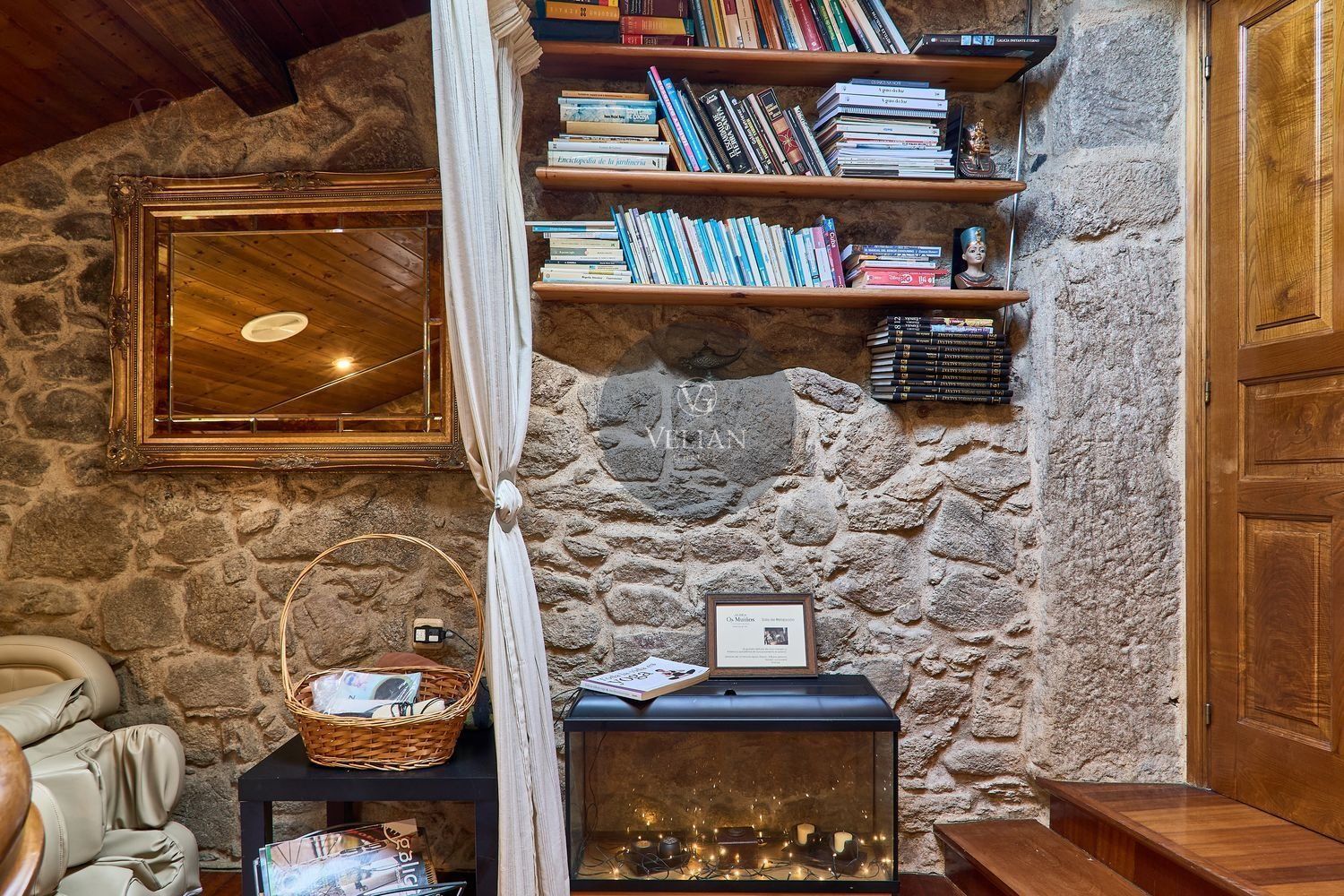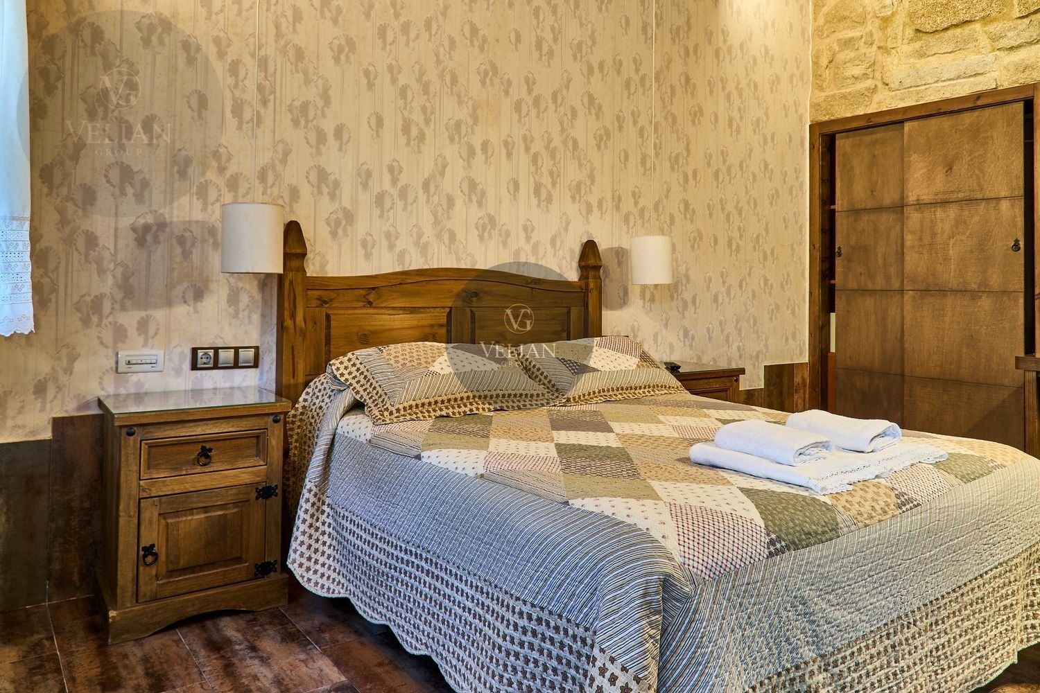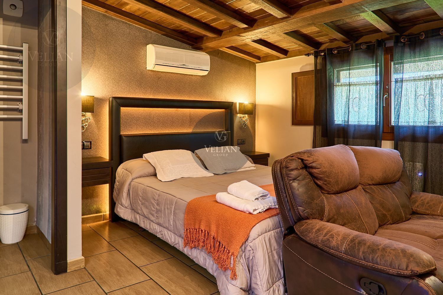 El complejo está compuesto por una casa principal de piedra con seis habitaciones dobles con baño en suite, amplias, luminosas, con calefacción central por gasoil, por suelo radiante y aire acondicionado, ofreciendo una estancia de máximo confort. Además, cuenta con tres cabañas bioclimáticas situadas en el bosque, construidas con contenedores marítimos reciclados y revestidas en madera para una integración perfecta con el entorno. Estas cabañas han sido diseñadas con un enfoque sostenible y funcional, incluyendo chimenea, cocina equipada, televisión, bañera de hidromasaje, terraza privada con barbacoa y acceso a una piscina-jacuzzi compartida. Una de ellas, un antiguo palomar reformado, ha sido convertida en una espectacular suite con un diseño exclusivo.