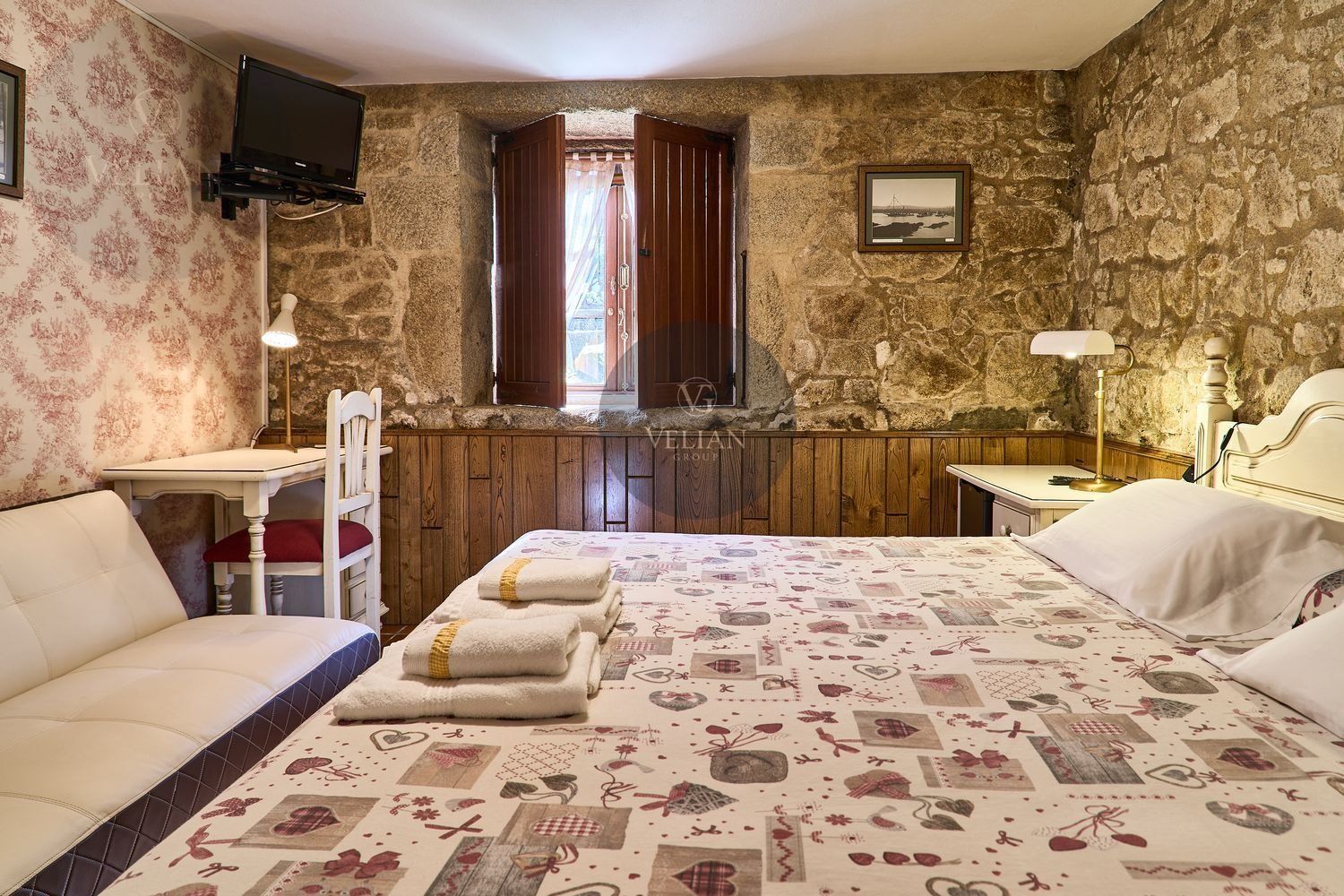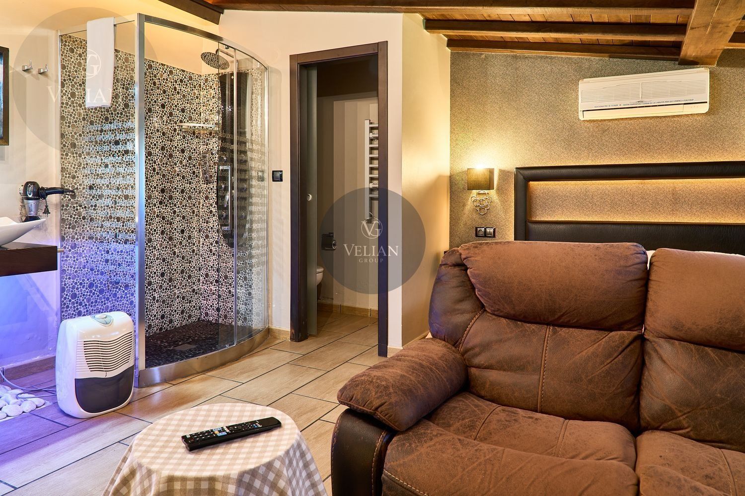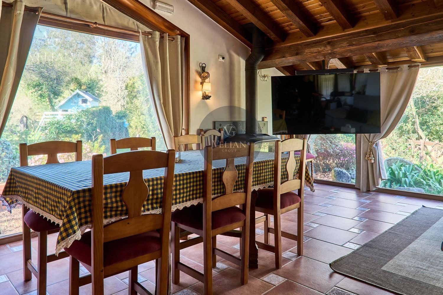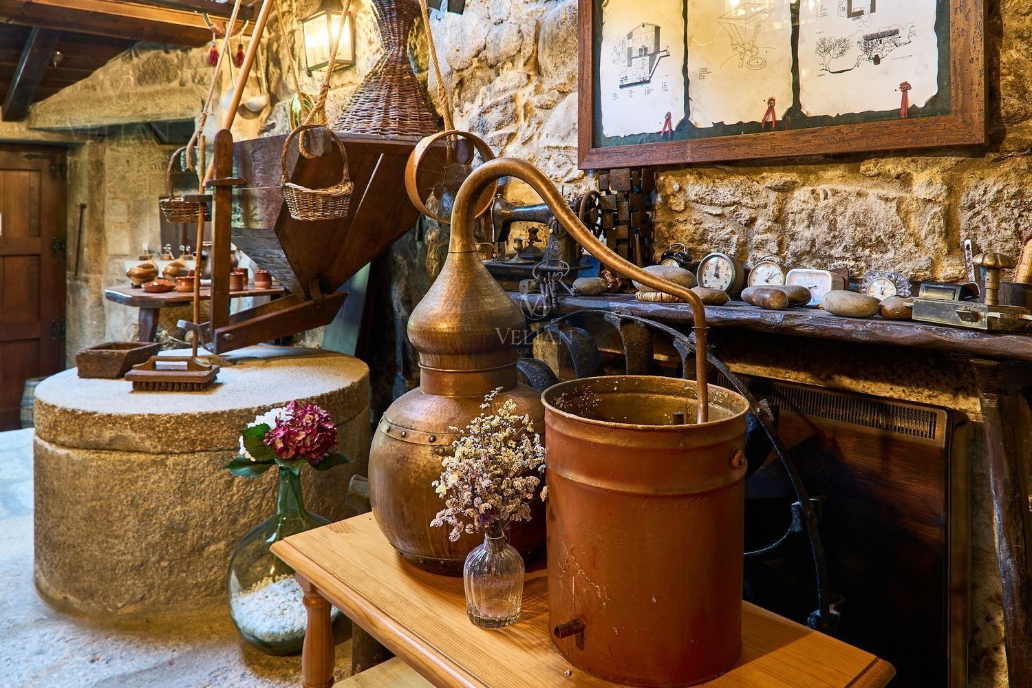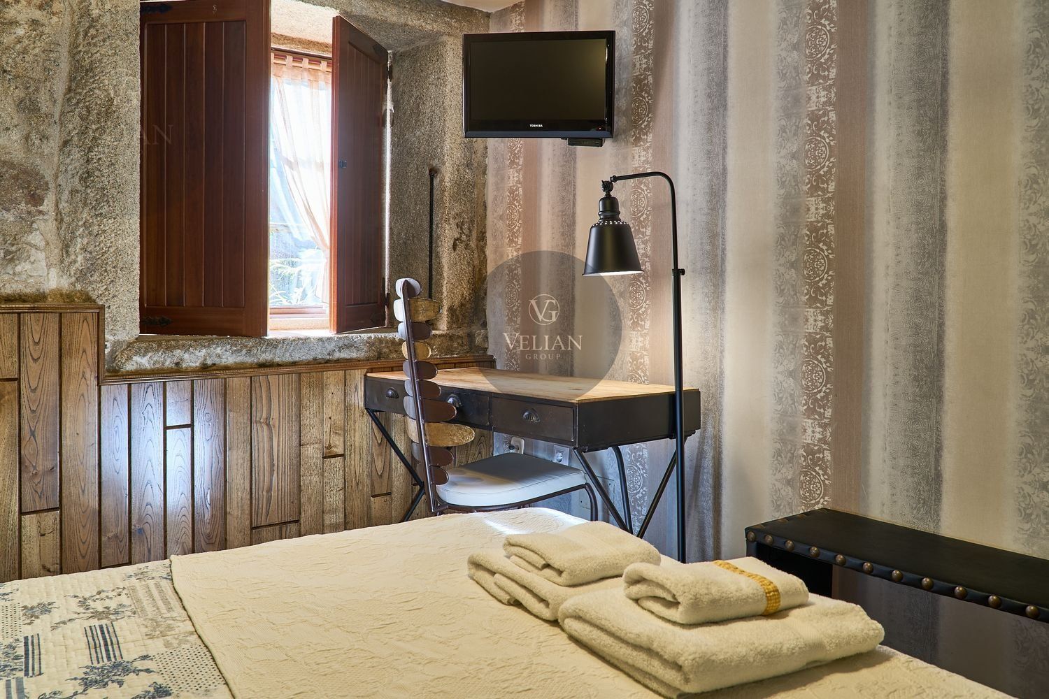 El complejo está compuesto por una casa principal de piedra con seis habitaciones dobles con baño en suite, amplias, luminosas, con calefacción central por gasoil, por suelo radiante y aire acondicionado, ofreciendo una estancia de máximo confort. Además, cuenta con tres cabañas bioclimáticas situadas en el bosque, construidas con contenedores marítimos reciclados y revestidas en madera para una integración perfecta con el entorno. Estas cabañas han sido diseñadas con un enfoque sostenible y funcional, incluyendo chimenea, cocina equipada, televisión, bañera de hidromasaje, terraza privada con barbacoa y acceso a una piscina-jacuzzi compartida. Una de ellas, un antiguo palomar reformado, ha sido convertida en una espectacular suite con un diseño exclusivo.