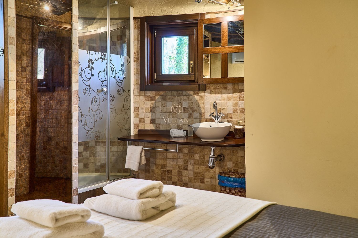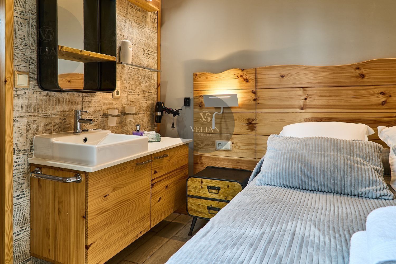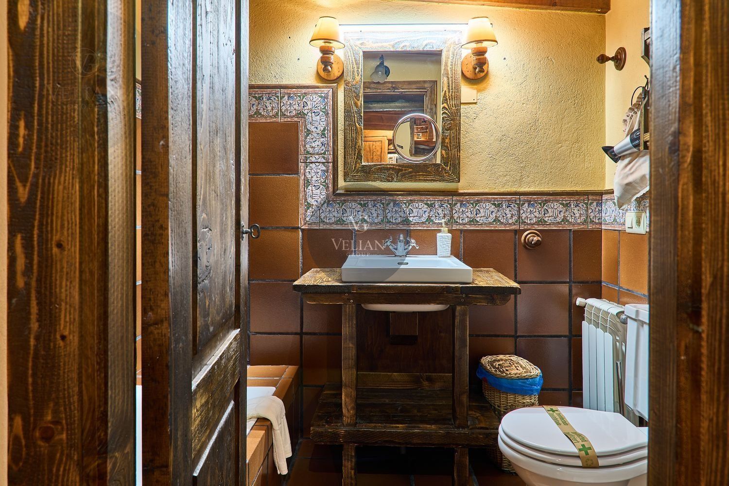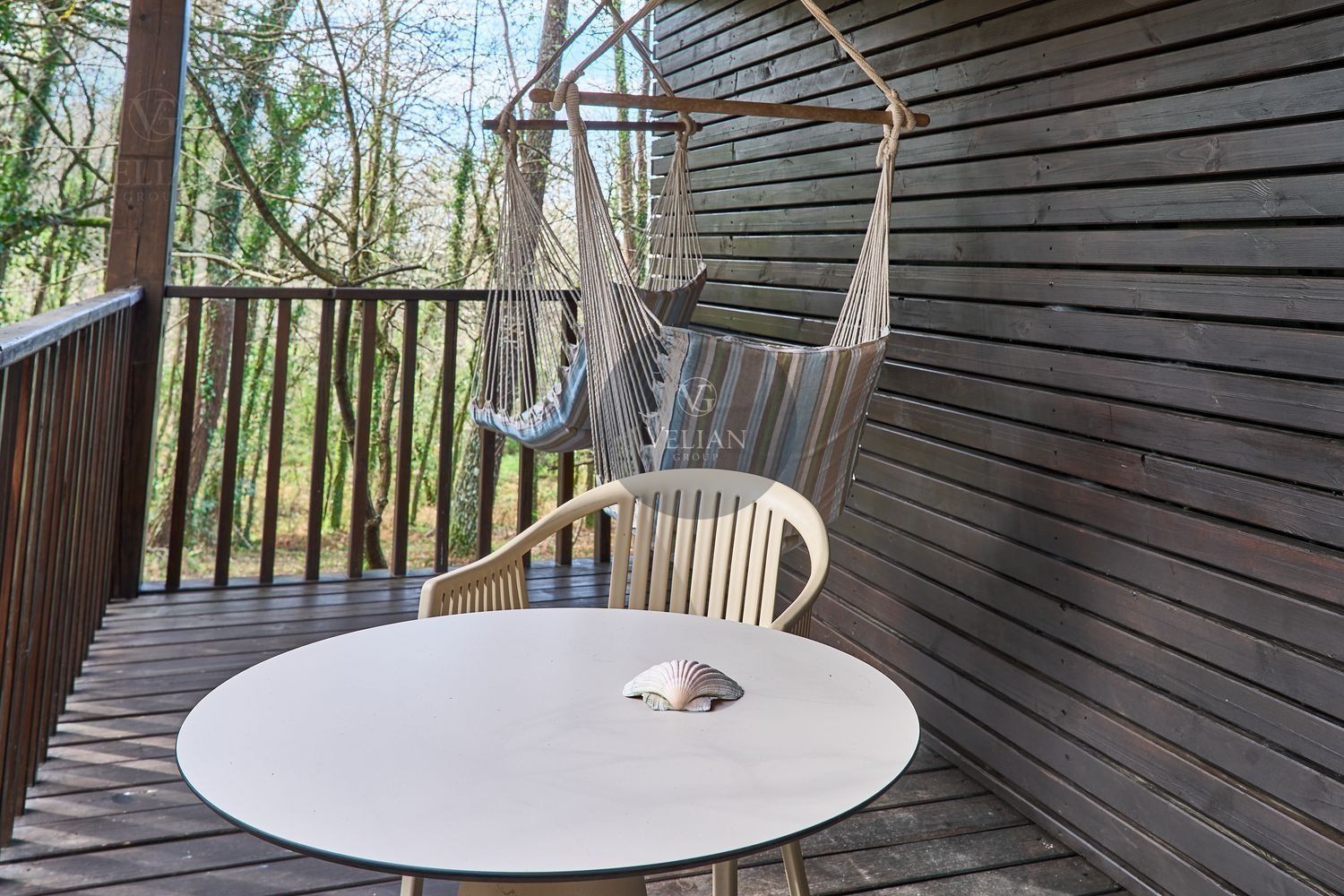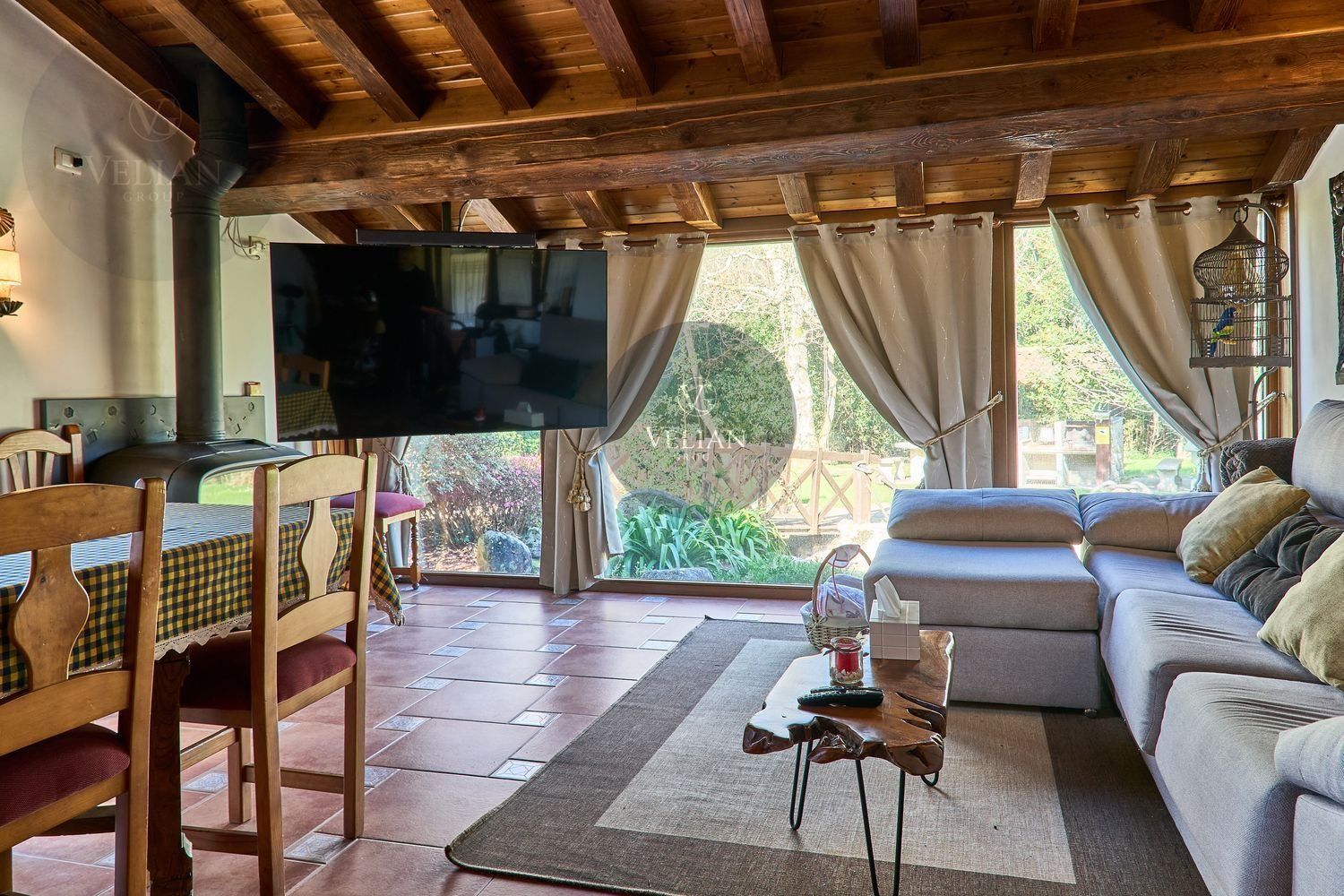 El complejo está compuesto por una casa principal de piedra con seis habitaciones dobles con baño en suite, amplias, luminosas, con calefacción central por gasoil, por suelo radiante y aire acondicionado, ofreciendo una estancia de máximo confort. Además, cuenta con tres cabañas bioclimáticas situadas en el bosque, construidas con contenedores marítimos reciclados y revestidas en madera para una integración perfecta con el entorno. Estas cabañas han sido diseñadas con un enfoque sostenible y funcional, incluyendo chimenea, cocina equipada, televisión, bañera de hidromasaje, terraza privada con barbacoa y acceso a una piscina-jacuzzi compartida. Una de ellas, un antiguo palomar reformado, ha sido convertida en una espectacular suite con un diseño exclusivo.