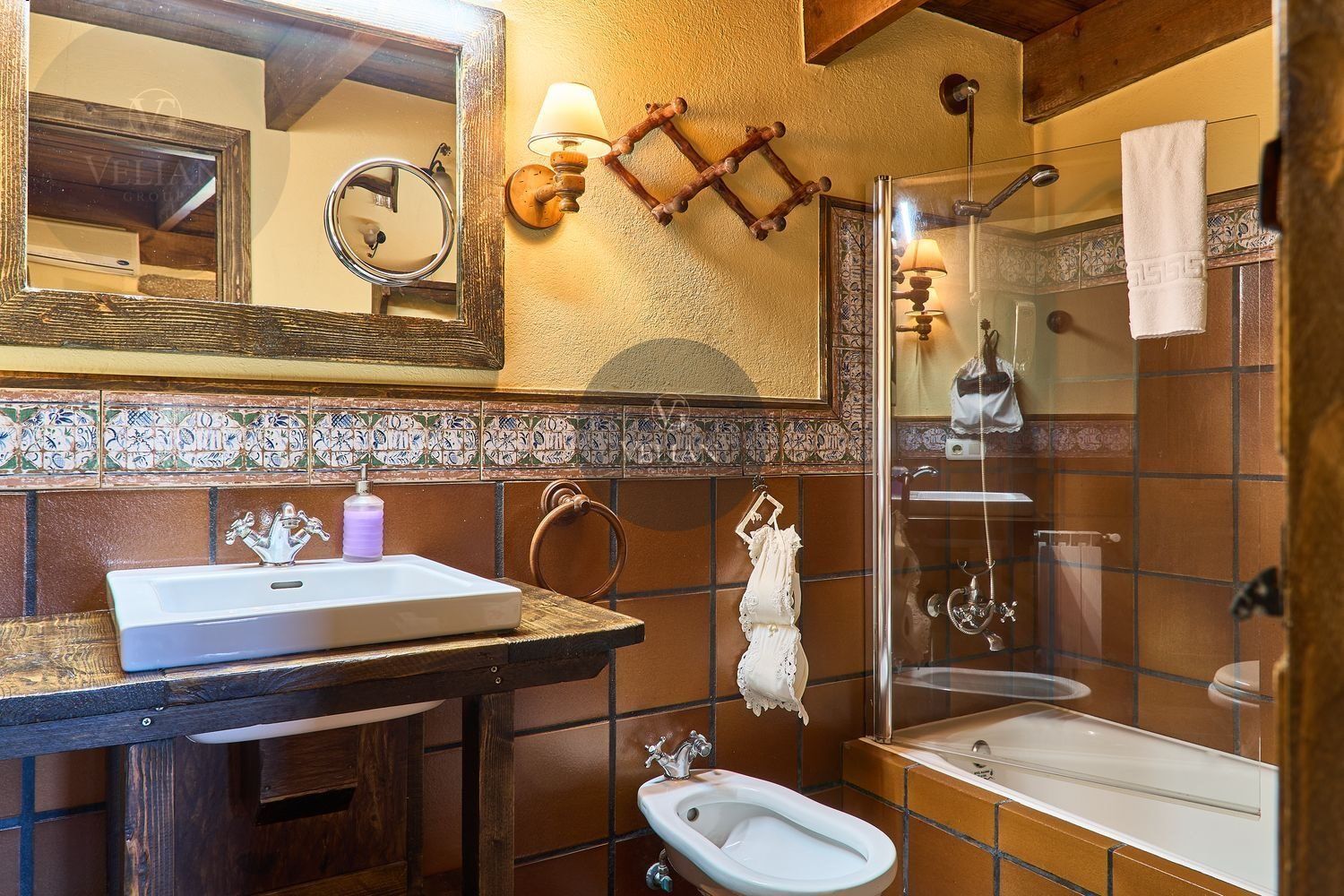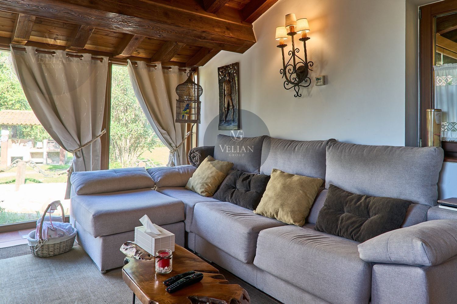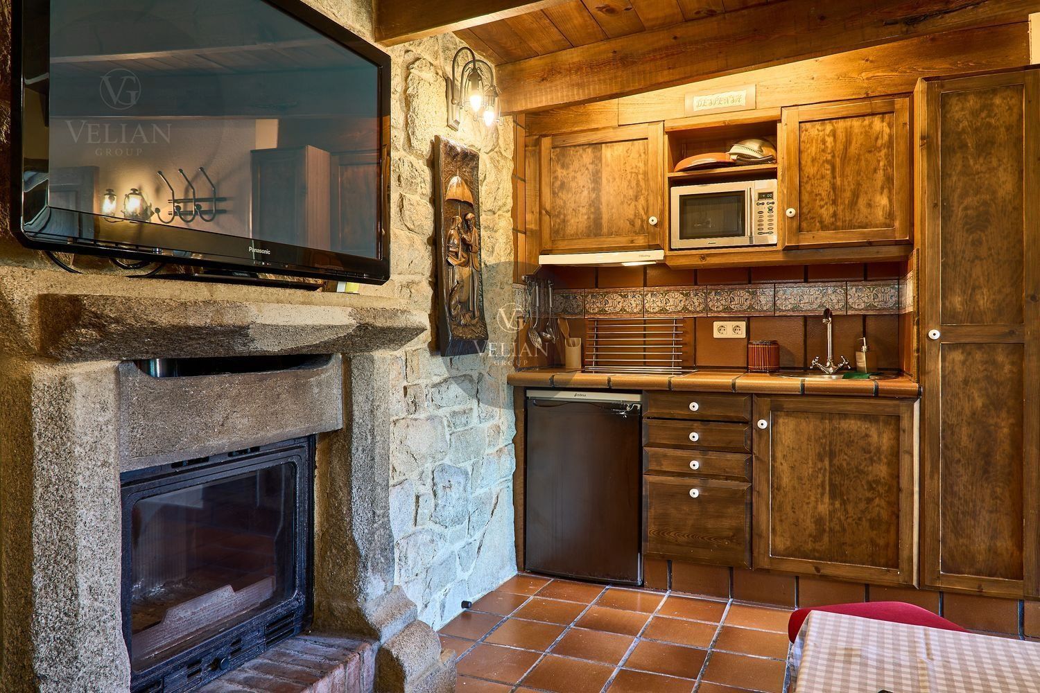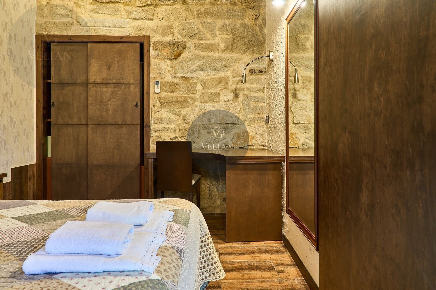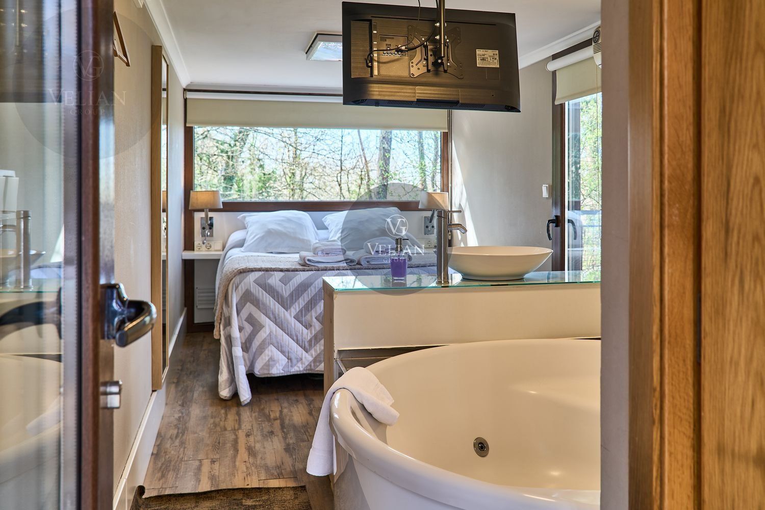 El complejo está compuesto por una casa principal de piedra con seis habitaciones dobles con baño en suite, amplias, luminosas, con calefacción central por gasoil, por suelo radiante y aire acondicionado, ofreciendo una estancia de máximo confort. Además, cuenta con tres cabañas bioclimáticas situadas en el bosque, construidas con contenedores marítimos reciclados y revestidas en madera para una integración perfecta con el entorno. Estas cabañas han sido diseñadas con un enfoque sostenible y funcional, incluyendo chimenea, cocina equipada, televisión, bañera de hidromasaje, terraza privada con barbacoa y acceso a una piscina-jacuzzi compartida. Una de ellas, un antiguo palomar reformado, ha sido convertida en una espectacular suite con un diseño exclusivo.