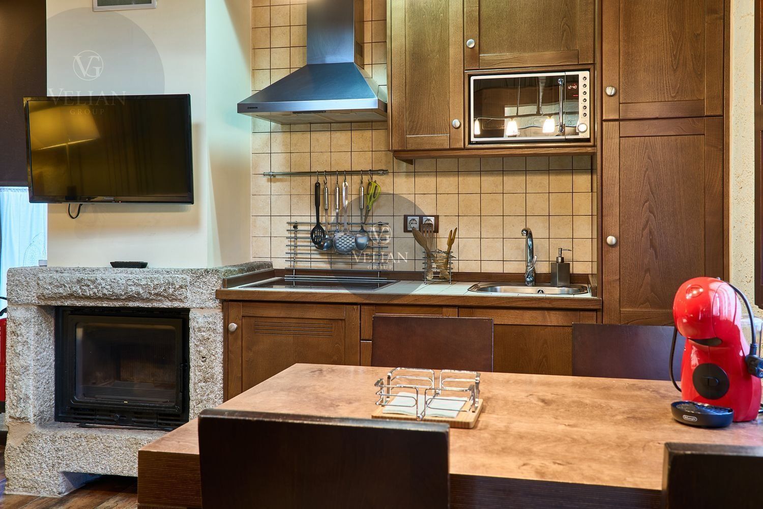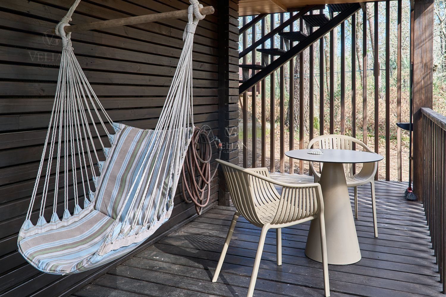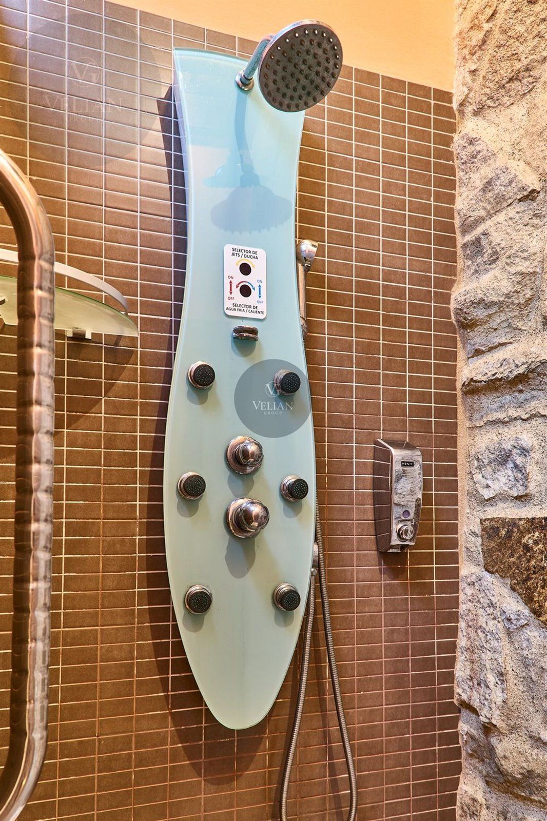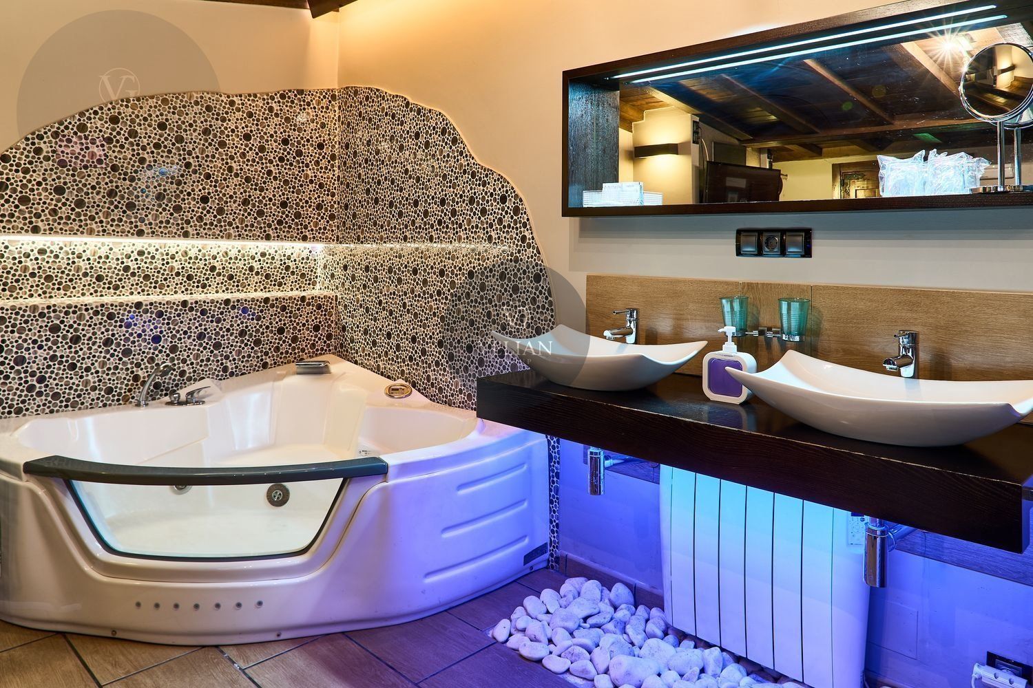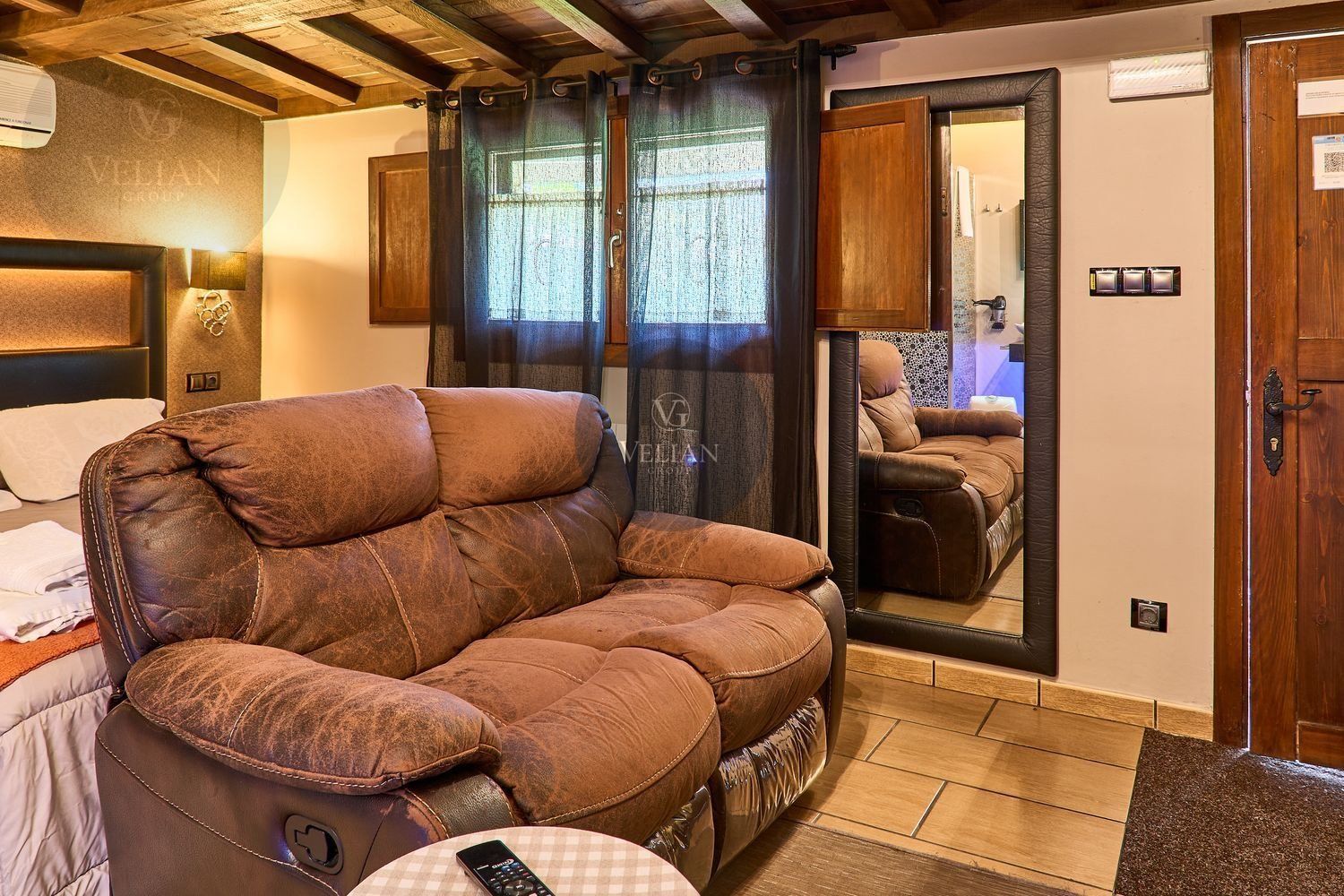 El complejo está compuesto por una casa principal de piedra con seis habitaciones dobles con baño en suite, amplias, luminosas, con calefacción central por gasoil, por suelo radiante y aire acondicionado, ofreciendo una estancia de máximo confort. Además, cuenta con tres cabañas bioclimáticas situadas en el bosque, construidas con contenedores marítimos reciclados y revestidas en madera para una integración perfecta con el entorno. Estas cabañas han sido diseñadas con un enfoque sostenible y funcional, incluyendo chimenea, cocina equipada, televisión, bañera de hidromasaje, terraza privada con barbacoa y acceso a una piscina-jacuzzi compartida. Una de ellas, un antiguo palomar reformado, ha sido convertida en una espectacular suite con un diseño exclusivo.