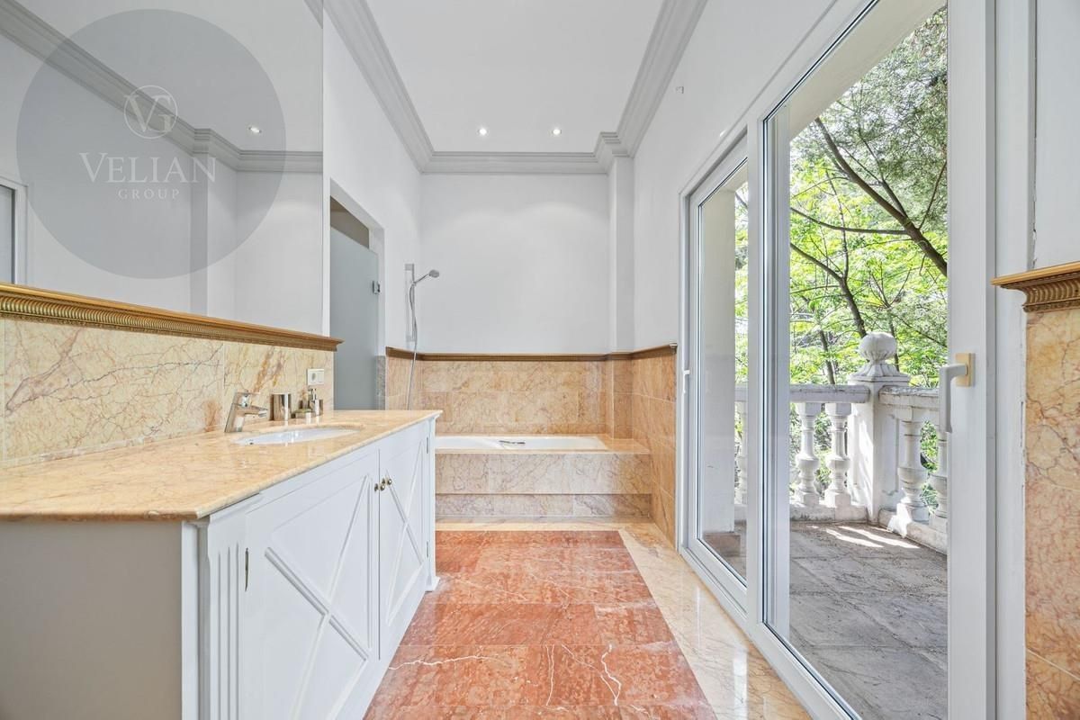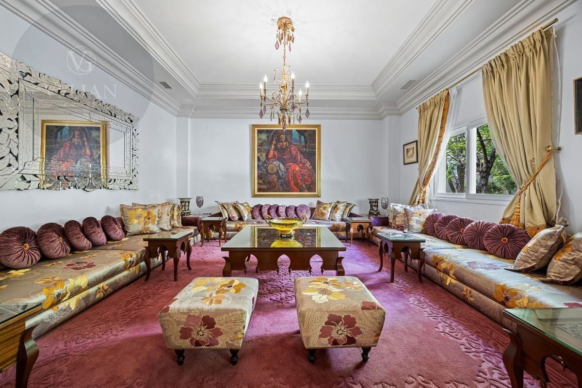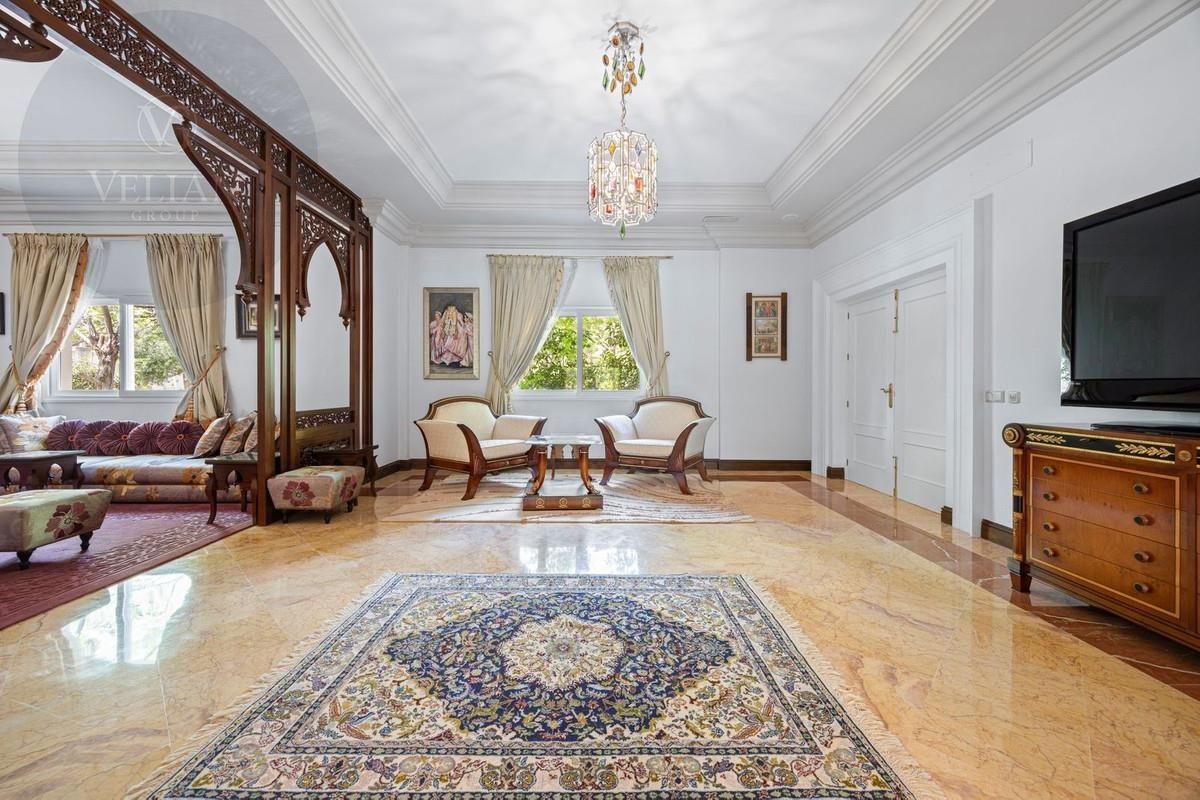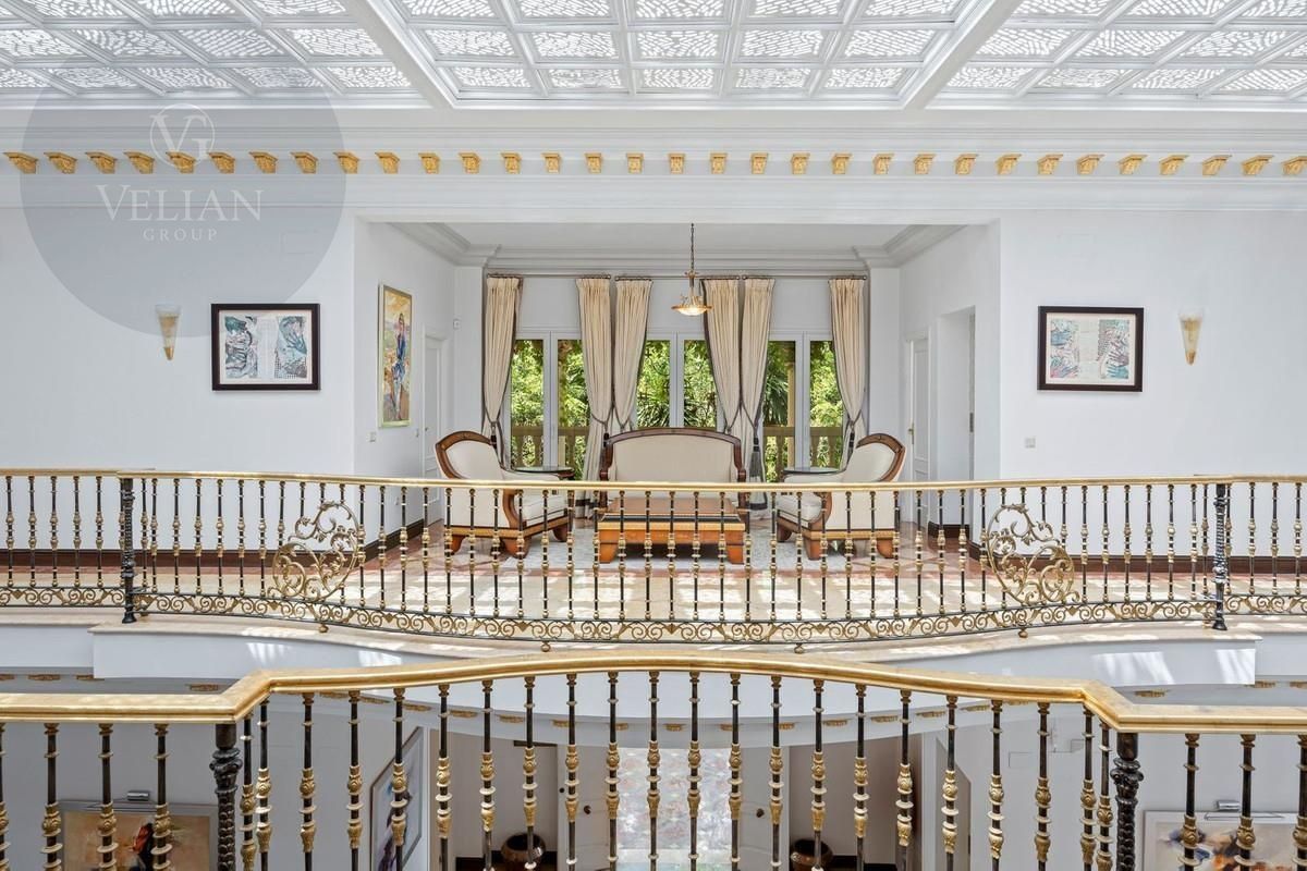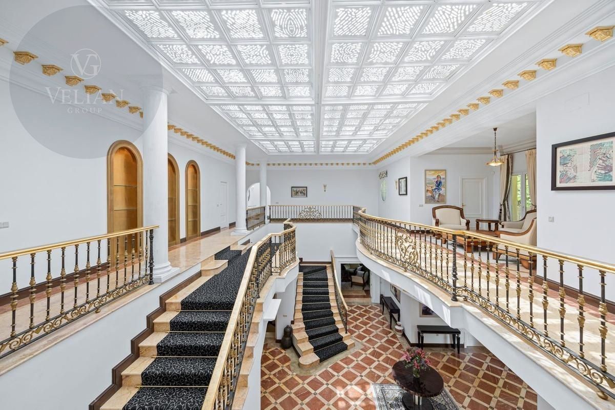 La propiedad se alza sobre una parcela de más de 4.000 m² rodeada por jardines maduros, ofreciendo un entorno privado y sereno. Con más de 1.500 m² construidos, la residencia se distribuye en tres niveles, donde la arquitectura neoclásica se despliega con armonía. En la planta principal, amplios salones interconectados, techos ornamentales y una cuidada selección de materiales nobles definen los espacios. La luz natural fluye desde múltiples estancias hacia las terrazas que miran al jardín, creando una conexión fluida entre el interior y el exterior.