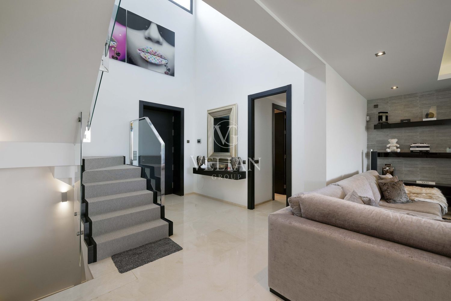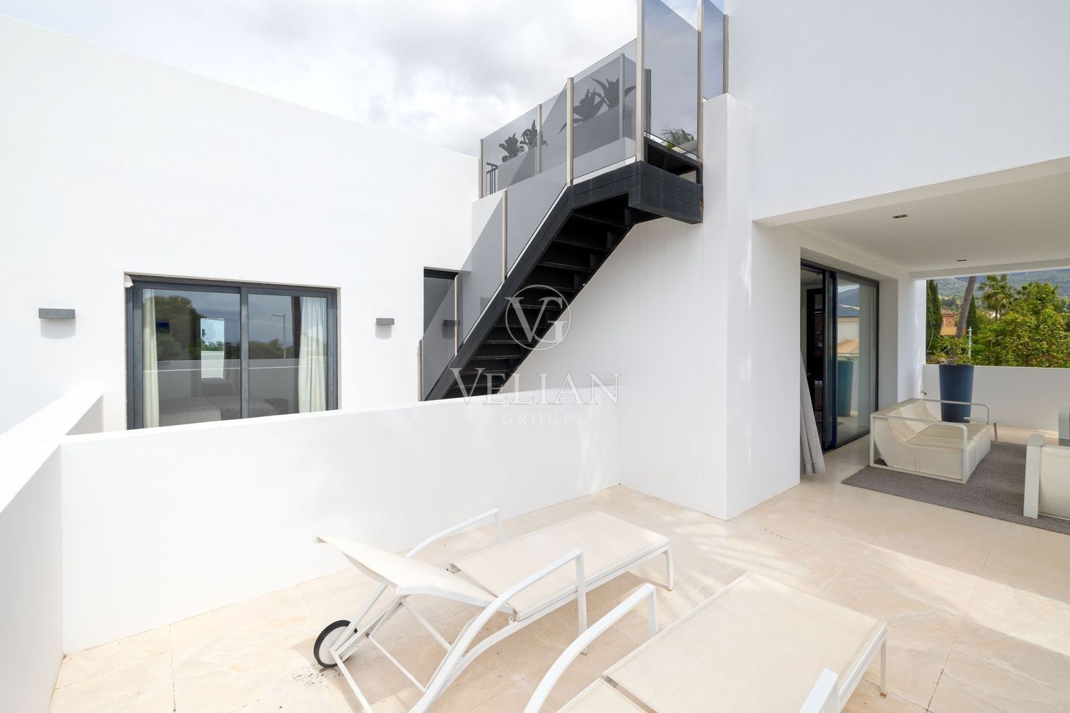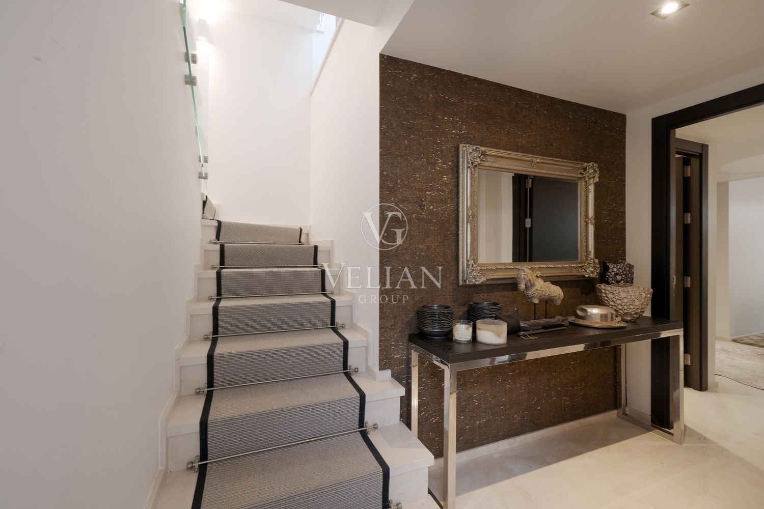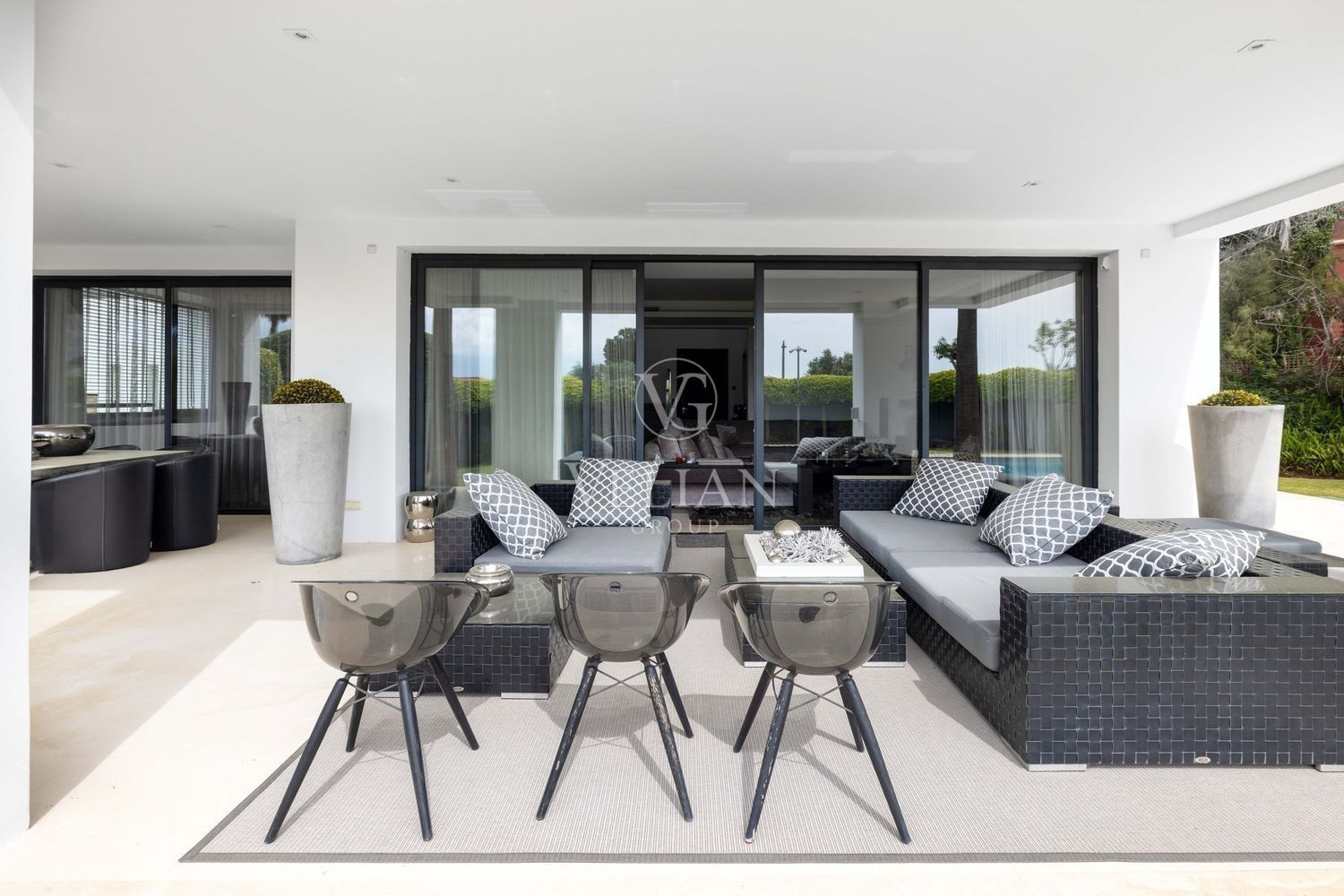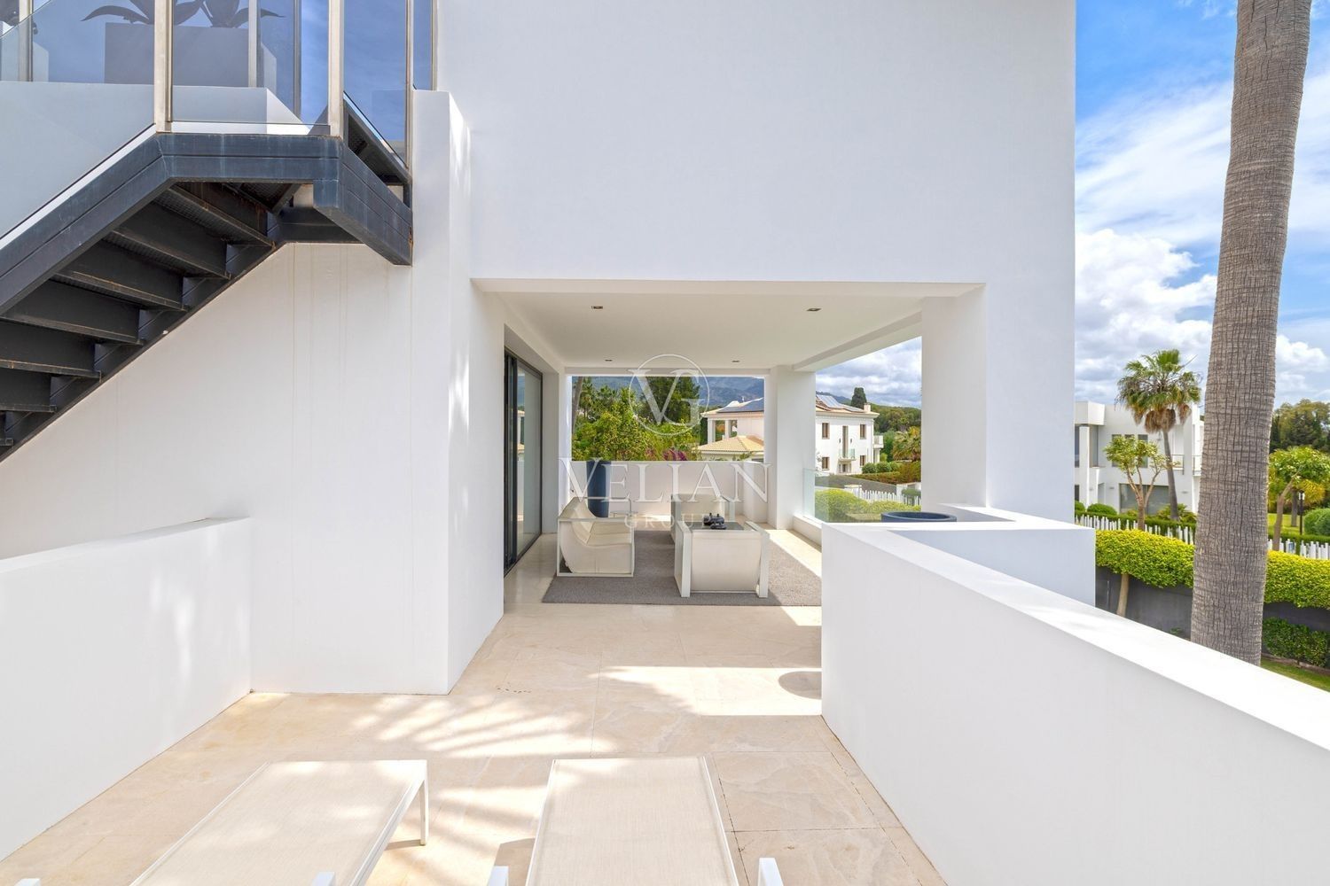 Villa en Altos de Puente Romano, MarbellaEsta magnífica villa se encuentra en un exclusivo complejo residencial con seguridad las 24 horas, a solo 10 minutos en coche del puerto deportivo de Puerto Banús y del casco antiguo de Marbella. Cuenta con 582 metros cuadrados construidos, con amplias terrazas en una parcela de algo más de mil metros.La villa cuenta con amplias zonas de estar y comedor que se conectan con las terrazas y los jardines, que incluyen una piscina climatizada de agua salada y una zona de barbacoa cubierta. Al ingresar, encontrarás un acogedor hall de entrada con un aseo de invitados. La moderna cocina completamente equipada se conecta con una sala de estar decorada con muebles de alta calidad. En esta planta también se encuentra una amplia suite de invitados con terraza privada y acceso directo al jardín.En la primera planta, la villa ofrece tres dormitorios en-suite, siendo el dormitorio principal el más destacado, con vestidor, terraza privada cubierta y vistas panorámicas al mar.El solárium es una zona chill-out con un gran jacuzzi desde donde se pueden admirar vistas panorámicas del mar y la montaña de La Concha.La planta de sótano incluye una zona de entretenimiento, con un bar, sala de cine, y un gimnasio bien equipado. Esta planta también cuenta con un amplio dormitorio con baño en-suite, ideal para huéspedes o familiares.Esta villa combina lujo moderno y elegancia mediterránea, ofreciendo una experiencia de vida refinada en una de las zonas más solicitadas de Marbella.
