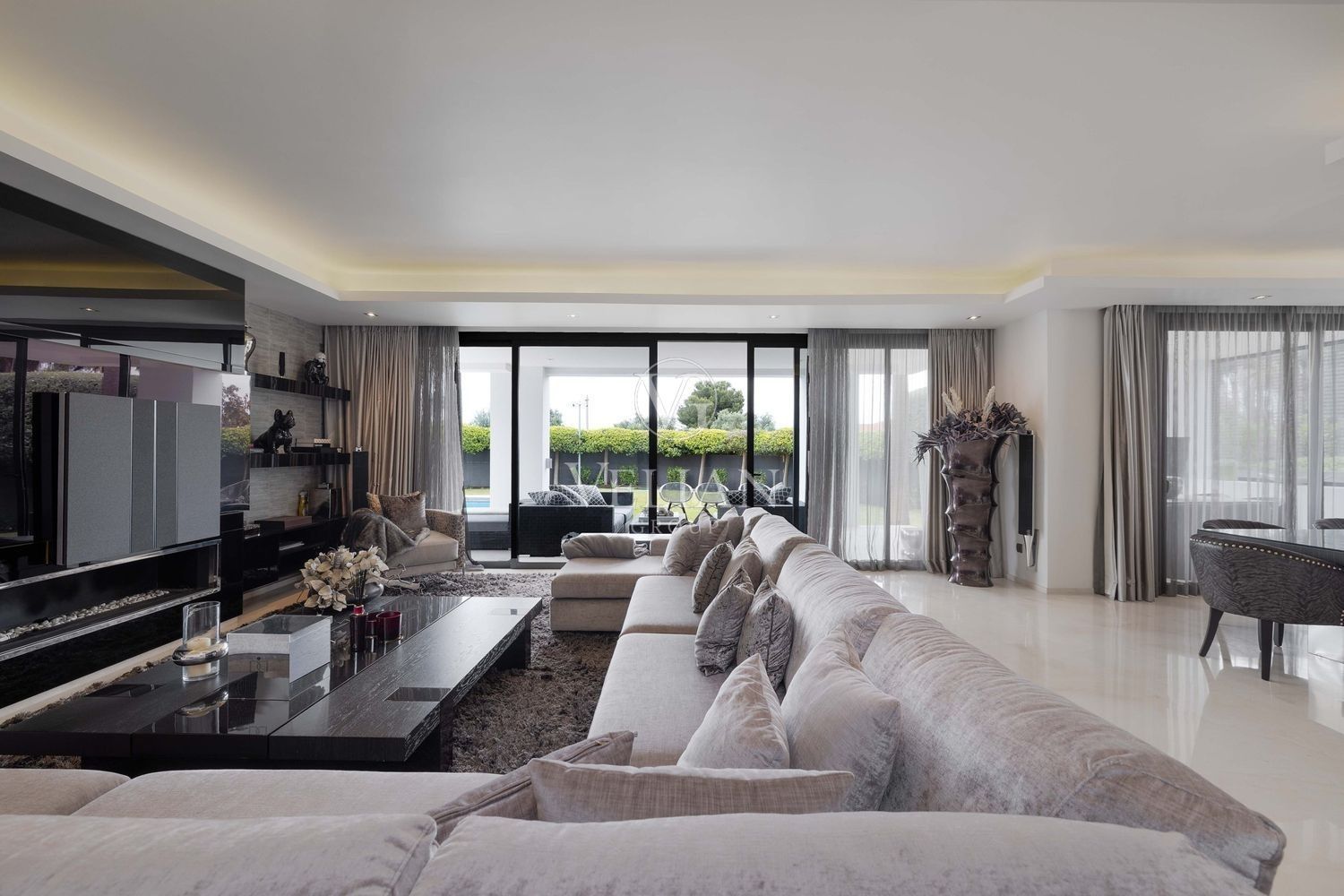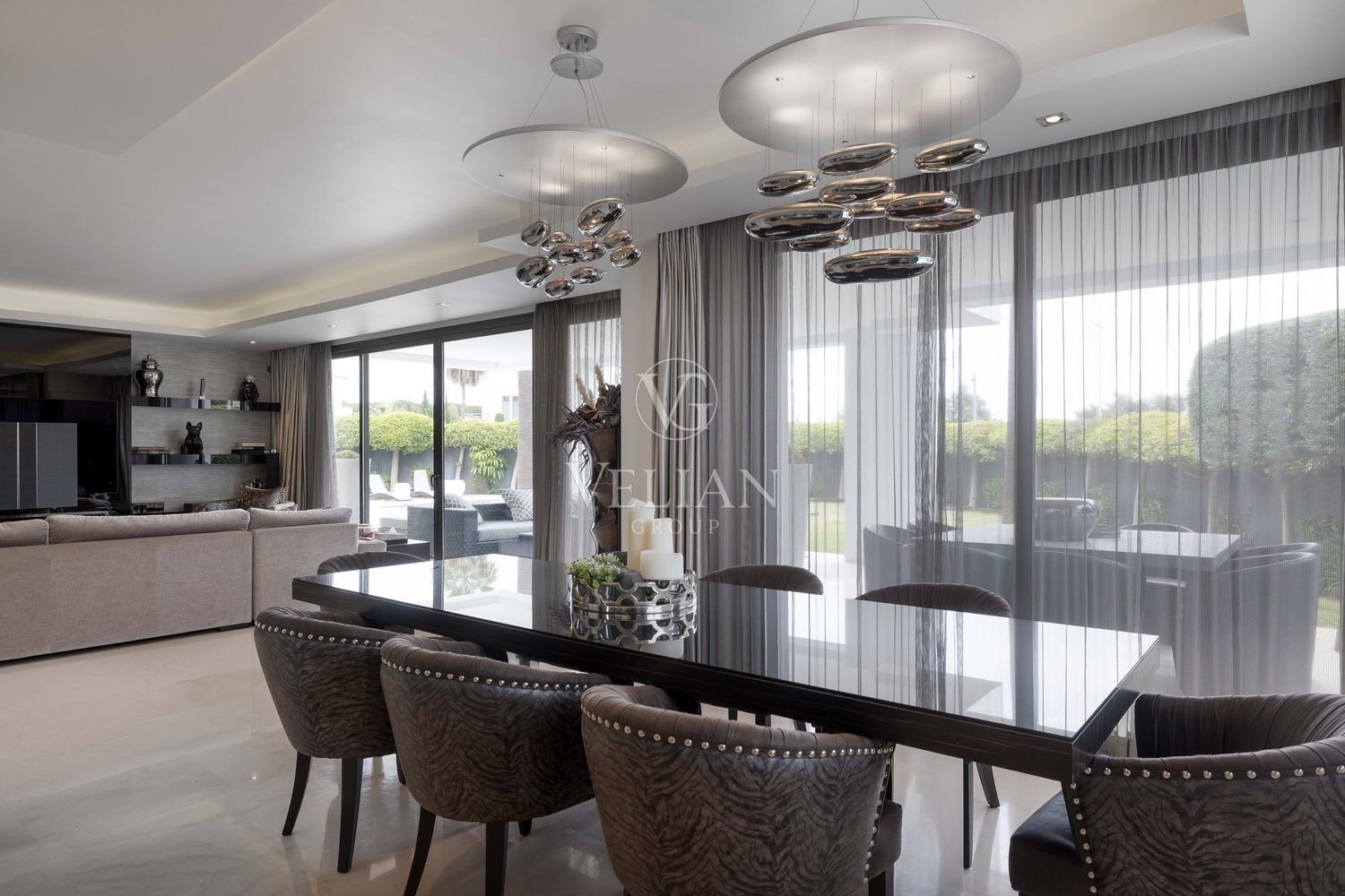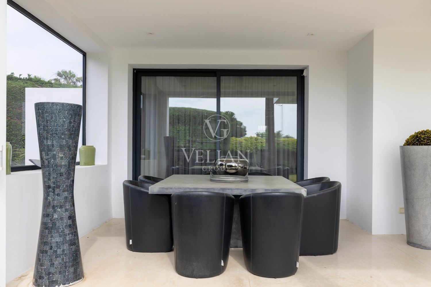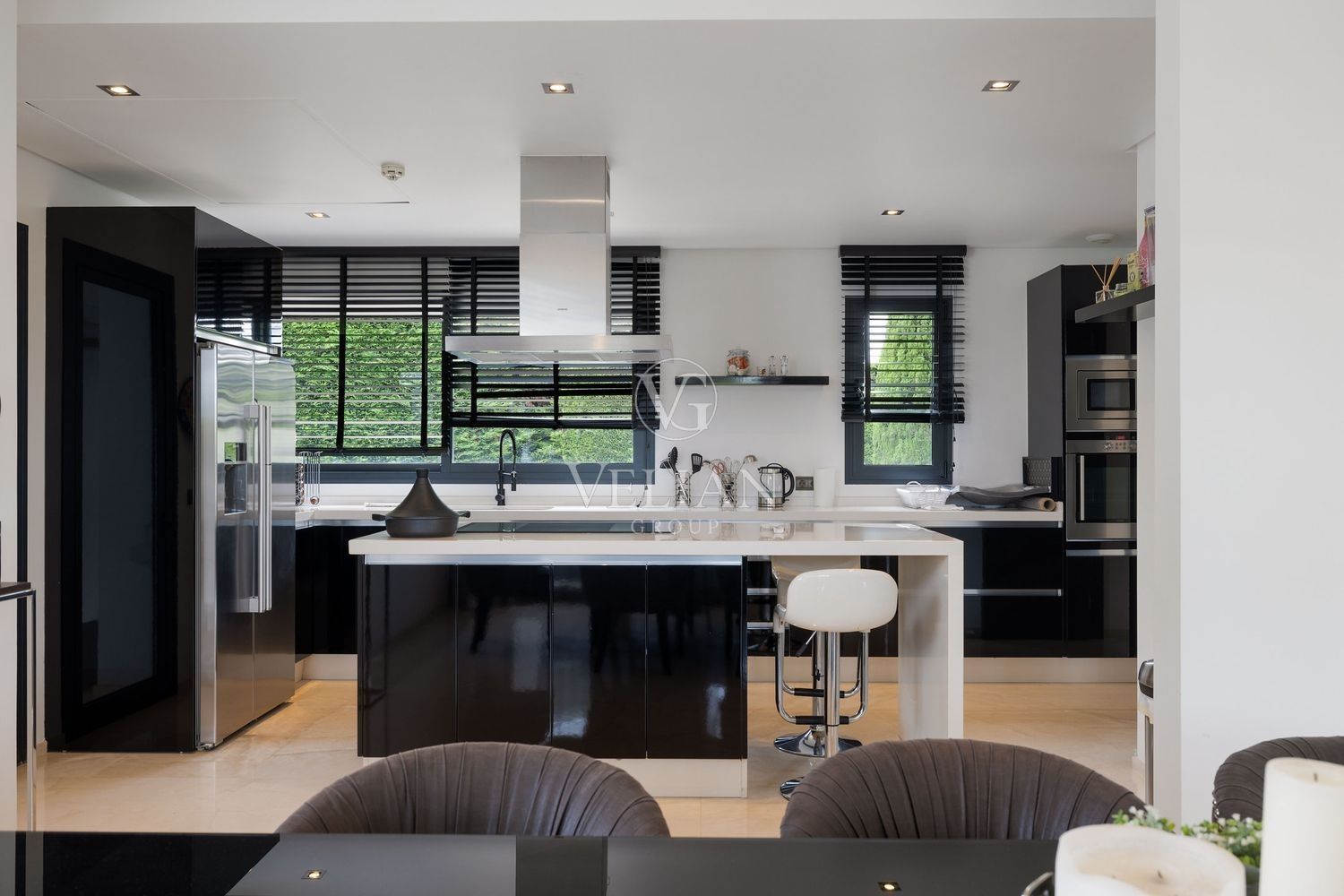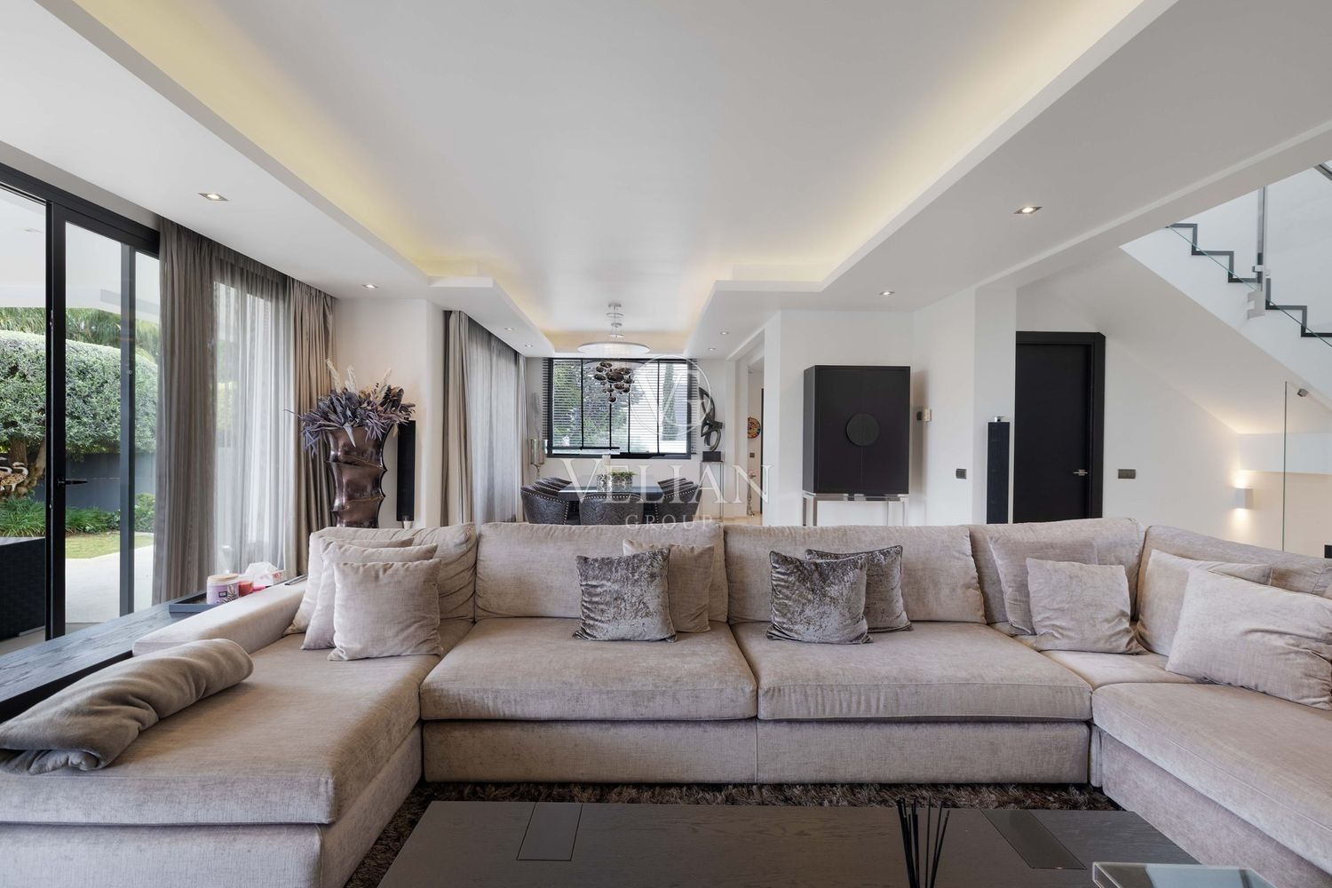 Villa en Altos de Puente Romano, MarbellaEsta magnífica villa se encuentra en un exclusivo complejo residencial con seguridad las 24 horas, a solo 10 minutos en coche del puerto deportivo de Puerto Banús y del casco antiguo de Marbella. Cuenta con 582 metros cuadrados construidos, con amplias terrazas en una parcela de algo más de mil metros.La villa cuenta con amplias zonas de estar y comedor que se conectan con las terrazas y los jardines, que incluyen una piscina climatizada de agua salada y una zona de barbacoa cubierta. Al ingresar, encontrarás un acogedor hall de entrada con un aseo de invitados. La moderna cocina completamente equipada se conecta con una sala de estar decorada con muebles de alta calidad. En esta planta también se encuentra una amplia suite de invitados con terraza privada y acceso directo al jardín.En la primera planta, la villa ofrece tres dormitorios en-suite, siendo el dormitorio principal el más destacado, con vestidor, terraza privada cubierta y vistas panorámicas al mar.El solárium es una zona chill-out con un gran jacuzzi desde donde se pueden admirar vistas panorámicas del mar y la montaña de La Concha.La planta de sótano incluye una zona de entretenimiento, con un bar, sala de cine, y un gimnasio bien equipado. Esta planta también cuenta con un amplio dormitorio con baño en-suite, ideal para huéspedes o familiares.Esta villa combina lujo moderno y elegancia mediterránea, ofreciendo una experiencia de vida refinada en una de las zonas más solicitadas de Marbella.