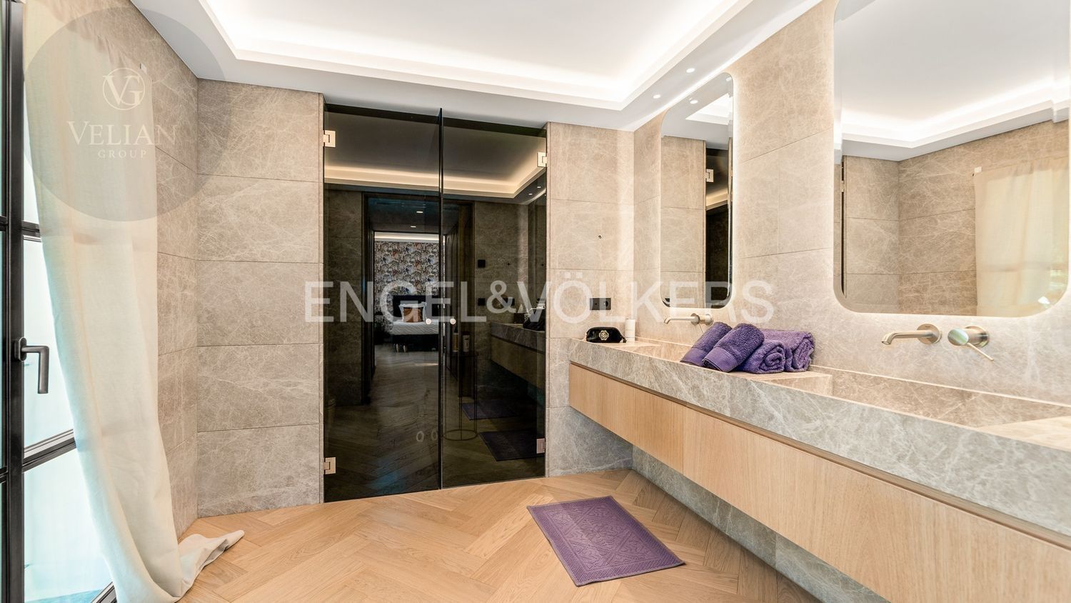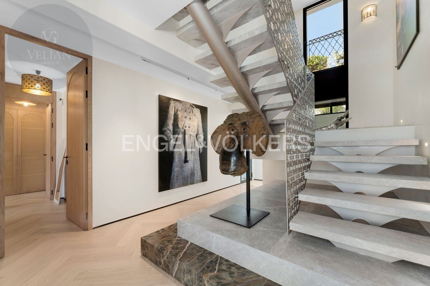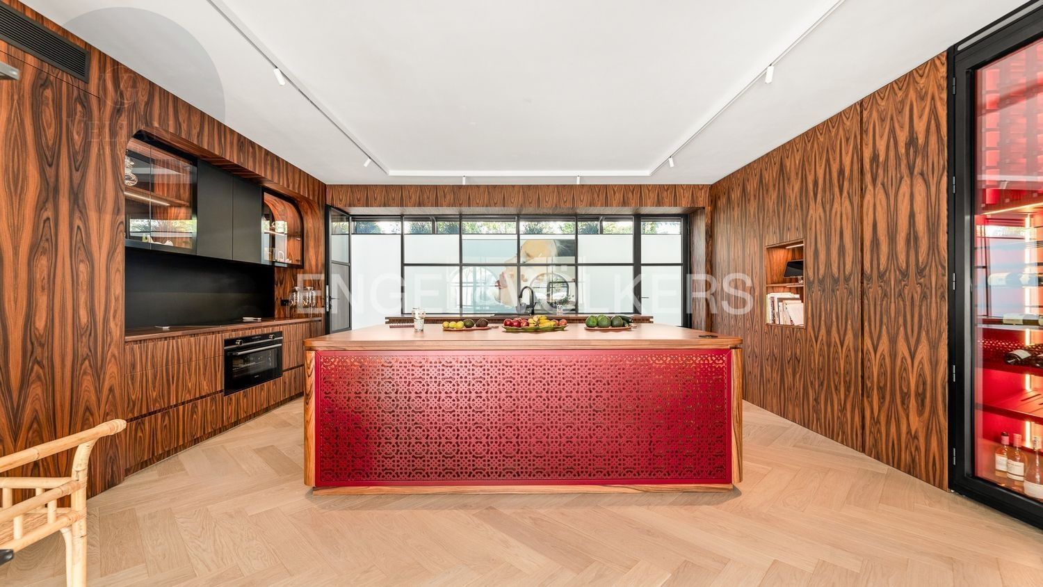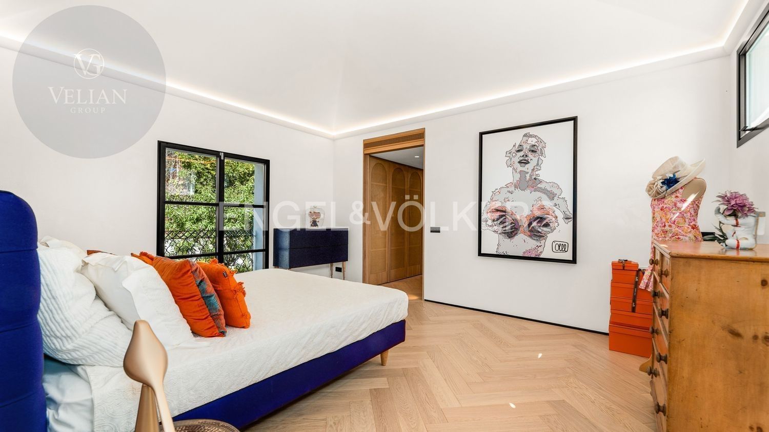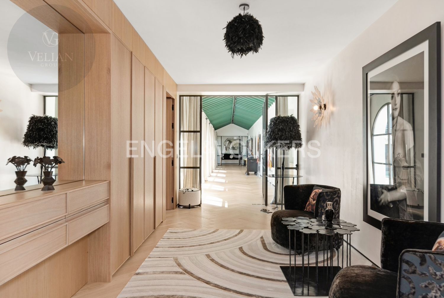 Este espectacular cortijo ofrece un oasis de tranquilidad y lujo en el corazón de Los Monteros, una de las zonas residenciales más exclusivas de Marbella, con seguridad las 24 horas. Construido sobre una parcela de 2.600 m², y ubicado a tan solo unos minutos a pie de la playa, la propiedad ha sido completamente renovada con materiales de alta calidad y un diseño inspirado en la arquitectura de la Alhambra, fusionando armoniosamente el encanto árabe-andaluz con un estilo moderno.Al entrar, descubrimos una galería que recorre la piscina, adornada con arcos y vigas vistas, que nos guía hacia el salón, destacado por su doble altura de techo y sus azulejos originales. Desde aquí, se accede a la zona de comedor con chimenea, que disfruta de grandes puertas acristaladas abiertas hacia un encantador patio andaluz. Esta área se completa con una excepcional cocina, diseñada en palisandro y decorada con tallas artesanales de estilo granadino. La cocina también es accesible desde la galería trasera, donde se ubica la zona de lavandería. Esta planta se completa con tres dormitorios en suite, un vestidor y un aseo de invitados.La planta alta alberga el dormitorio principal, que cuenta con un balcón con vistas al mar, un vestidor y un baño en suite. Además, en esta planta se encuentran el quinto dormitorio en suite y una sala actualmente utilizada como oficina, ya preinstalada para convertirse en una sala de cine. En la azotea, se puede disfrutar del solárium con impresionantes vistas al mar.La propiedad se completa con una sala en el sótano dedicada al ocio, equipada con un bar integrado, un aseo de invitados y espacios de almacenamiento.El cortijo está rodeado de amplias terrazas y zonas de relax en los jardines. En la zona de la piscina se encuentran un salón y un comedor bajo pérgolas, ideales para disfrutar de la serenidad y la belleza de la arquitectura de arcos andaluces que enmarcan una piscina de generosas dimensiones.Otras características de la propiedad incluyen: suelo radiante y aire acondicionado frío/calor, sistema de domótica, baño y aseo en la zona de piscina, aseo para el personal, garaje para tres coches y varias plazas de aparcamiento, riego automático y sistema de alarma.La vivienda se entrega amueblada, con numerosos muebles diseñados a medida, a excepción de las piezas de arte y algunos muebles de colección.