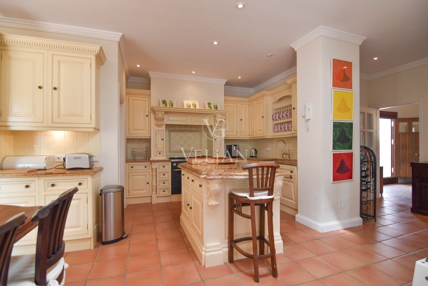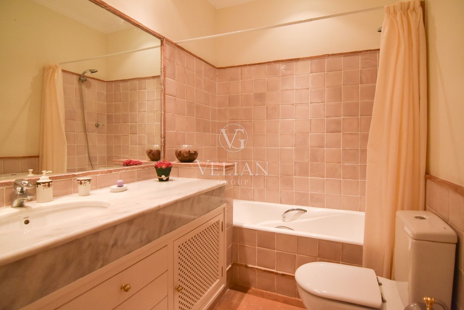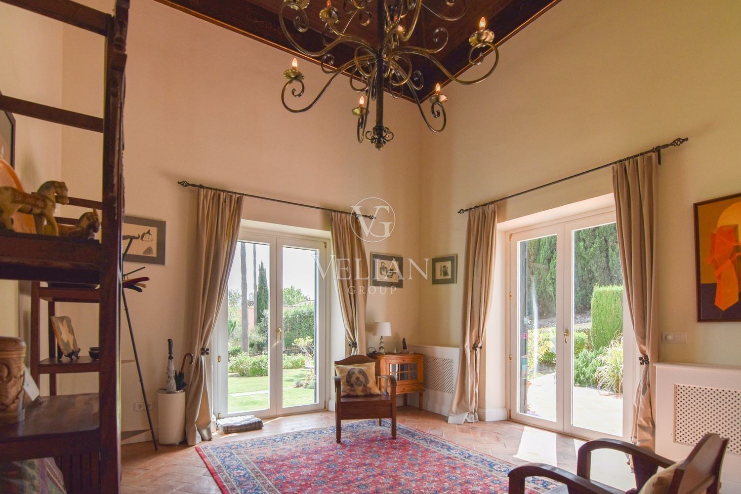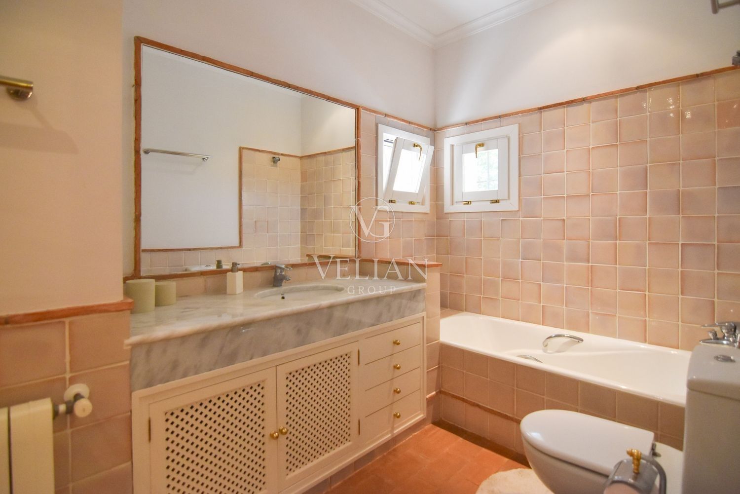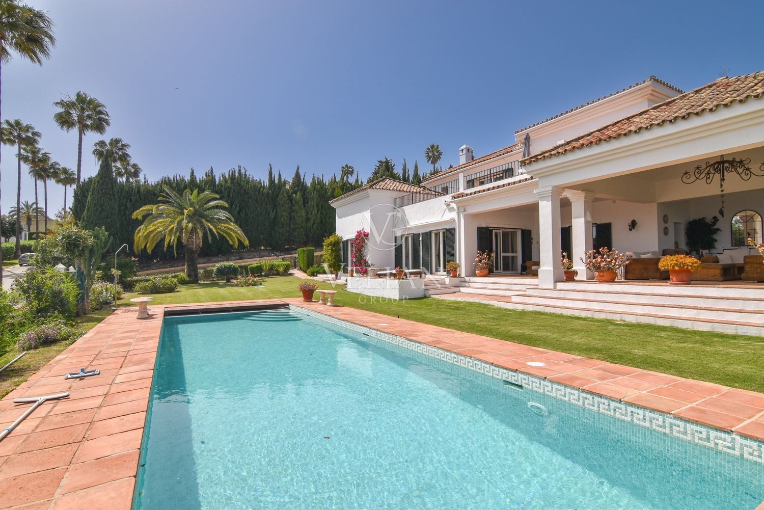 Amplia y encantadora villa familiar de estilo andaluz tradicional en venta en la prestigiosa zona F de Sotogrande Alto.La propiedad ofrece una elegante entrada a través de un hall que conecta con un amplio salón con chimenea, un comedor semiindependiente y un despacho adyacente pero separado. La cocina, que se abre hacia el comedor y el salón, cuenta con una zona de desayuno y salida a un patio orientado al suroeste. En esta misma planta se encuentran tres amplias suites de dormitorios y un dormitorio de servicio con acceso independiente.En la planta superior se ubica el dormitorio principal con chimenea y terraza privada. Además, dispone de una estancia muy amplia que puede destinarse a dormitorio adicional, vestidor o sala de juegos.El jardín es verdaderamente especial: abierto, luminoso y con preciosas vistas laterales al mar. El porche exterior, de techos altos y generosas dimensiones, permite disfrutar del exterior prácticamente todo el año, ofreciendo sombra en verano y protección en los meses más fríos, además de resguardar el mobiliario de exterior. Las vistas pueden disfrutarse tanto desde las terrazas de ambas plantas como desde todo el jardín.Entre otras características, la villa dispone de garaje doble con acceso directo al interior de la vivienda, espacio adicional para aparcamiento de 2 coches en la entrada, ventanas de doble acristalamiento, calefacción central por radiadores de gas y aire acondicionado mediante splits en tres dormitorios.