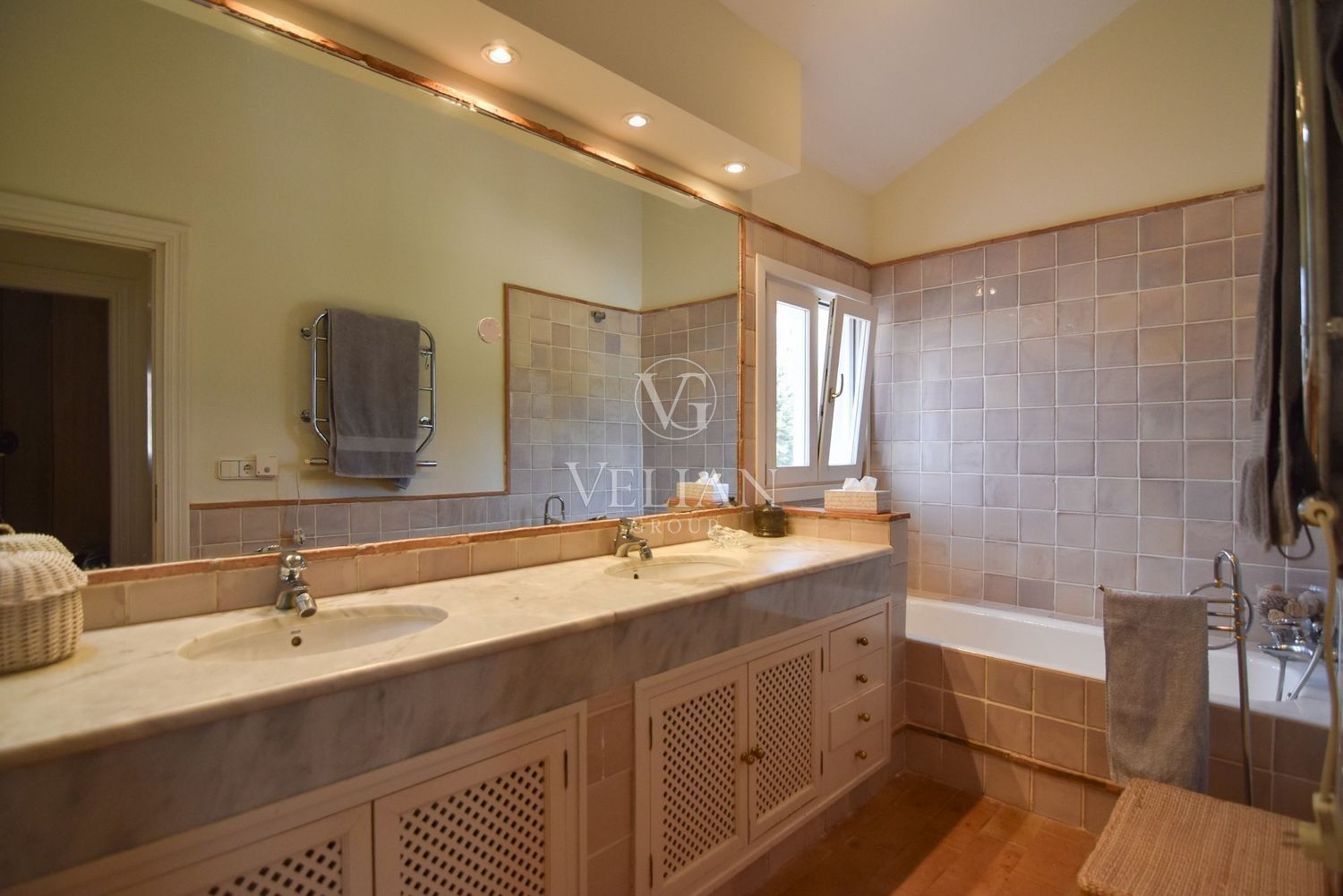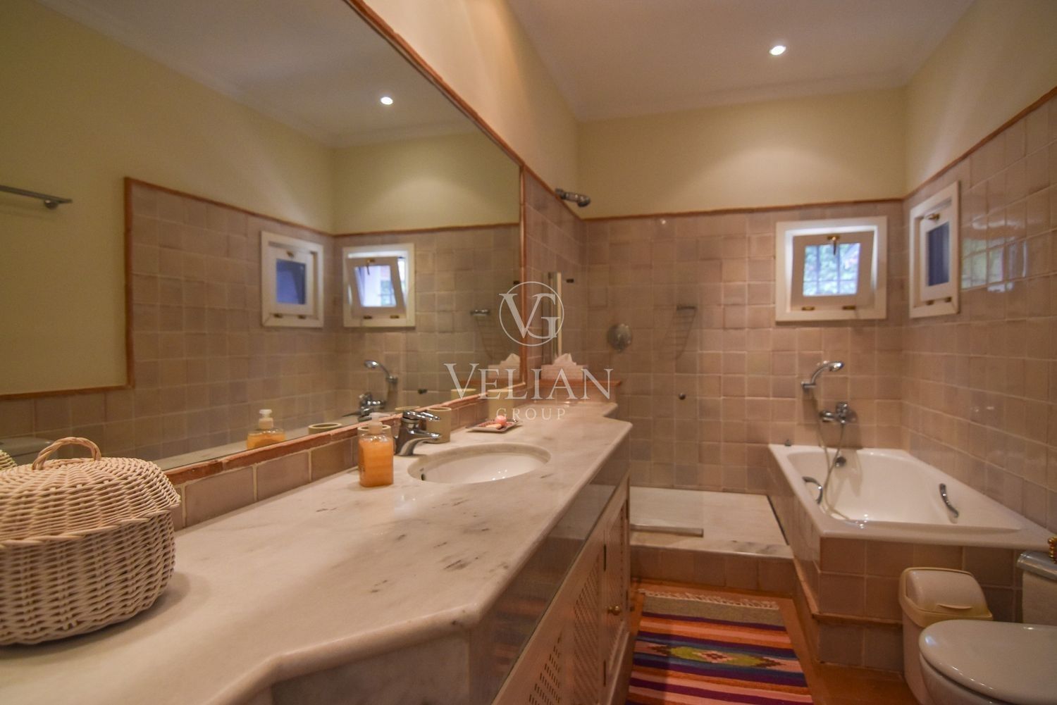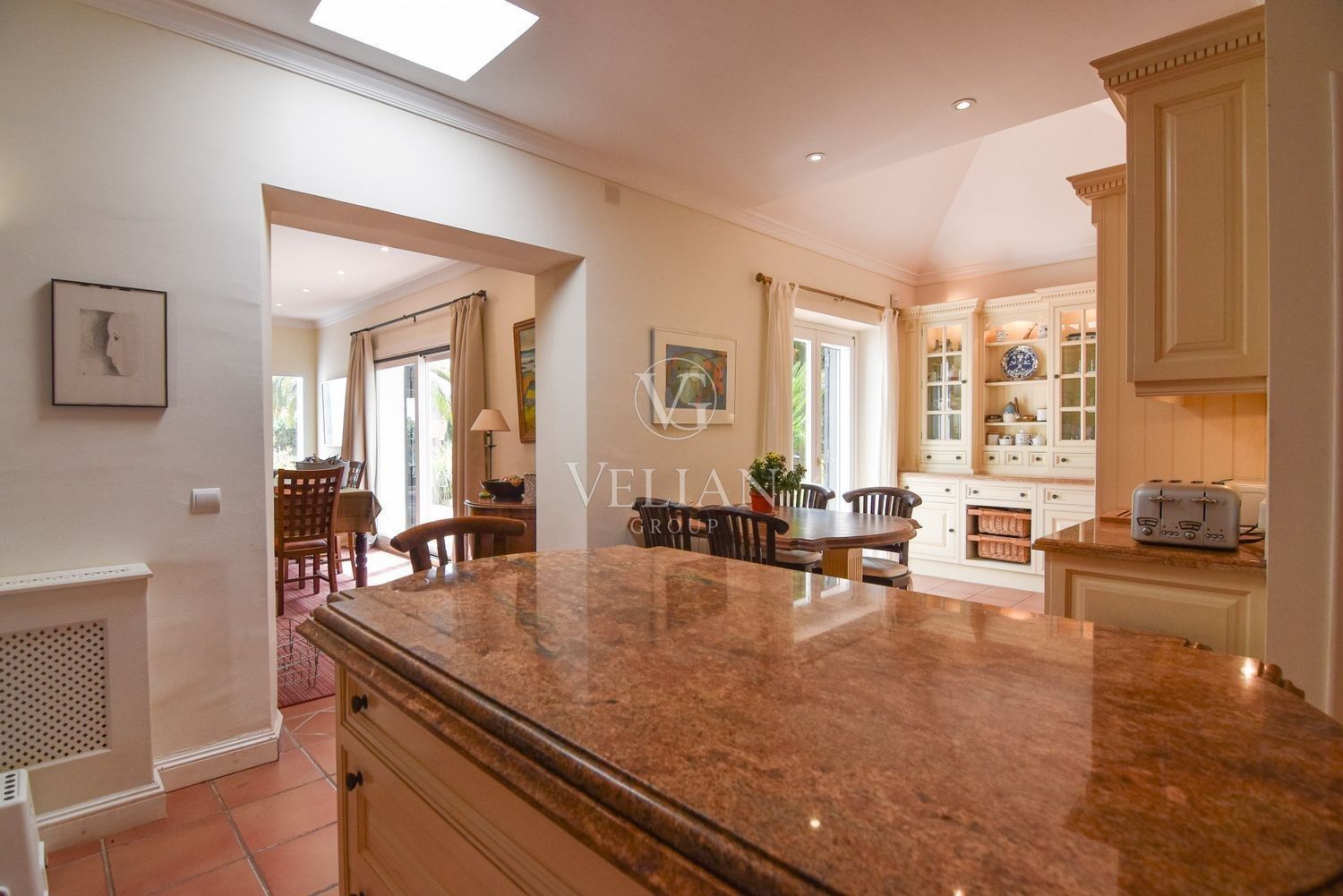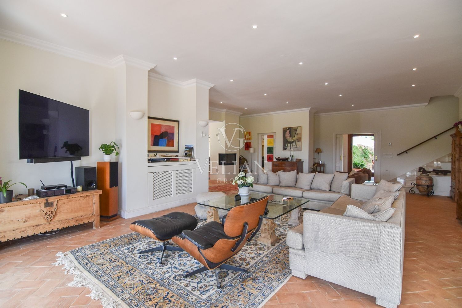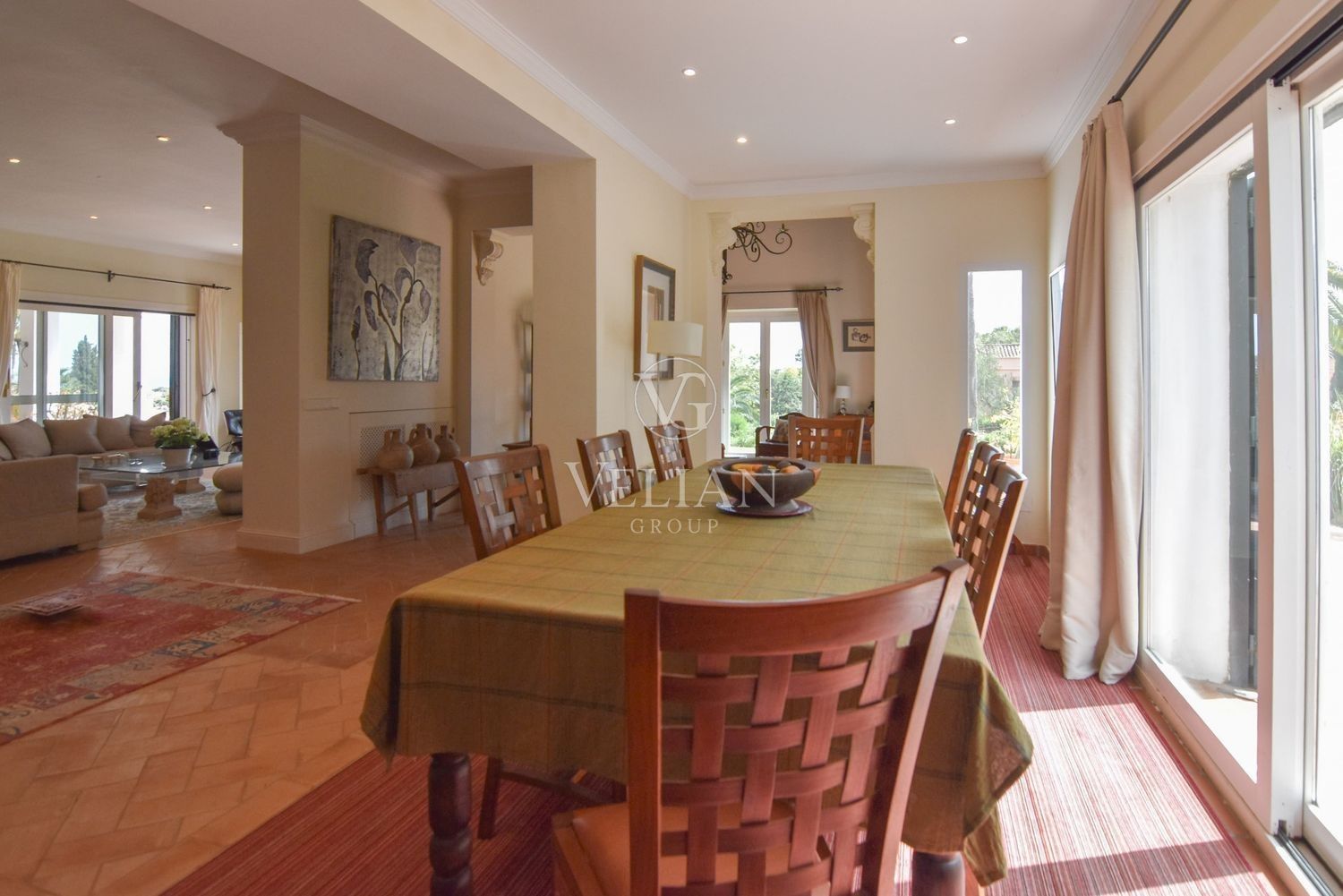 Amplia y encantadora villa familiar de estilo andaluz tradicional en venta en la prestigiosa zona F de Sotogrande Alto.La propiedad ofrece una elegante entrada a través de un hall que conecta con un amplio salón con chimenea, un comedor semiindependiente y un despacho adyacente pero separado. La cocina, que se abre hacia el comedor y el salón, cuenta con una zona de desayuno y salida a un patio orientado al suroeste. En esta misma planta se encuentran tres amplias suites de dormitorios y un dormitorio de servicio con acceso independiente.En la planta superior se ubica el dormitorio principal con chimenea y terraza privada. Además, dispone de una estancia muy amplia que puede destinarse a dormitorio adicional, vestidor o sala de juegos.El jardín es verdaderamente especial: abierto, luminoso y con preciosas vistas laterales al mar. El porche exterior, de techos altos y generosas dimensiones, permite disfrutar del exterior prácticamente todo el año, ofreciendo sombra en verano y protección en los meses más fríos, además de resguardar el mobiliario de exterior. Las vistas pueden disfrutarse tanto desde las terrazas de ambas plantas como desde todo el jardín.Entre otras características, la villa dispone de garaje doble con acceso directo al interior de la vivienda, espacio adicional para aparcamiento de 2 coches en la entrada, ventanas de doble acristalamiento, calefacción central por radiadores de gas y aire acondicionado mediante splits en tres dormitorios.