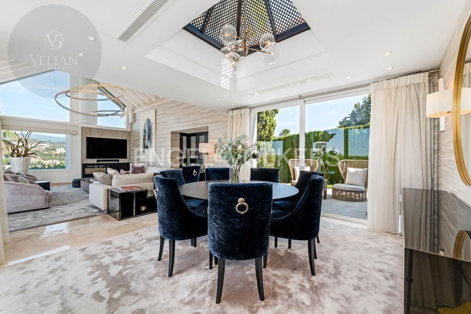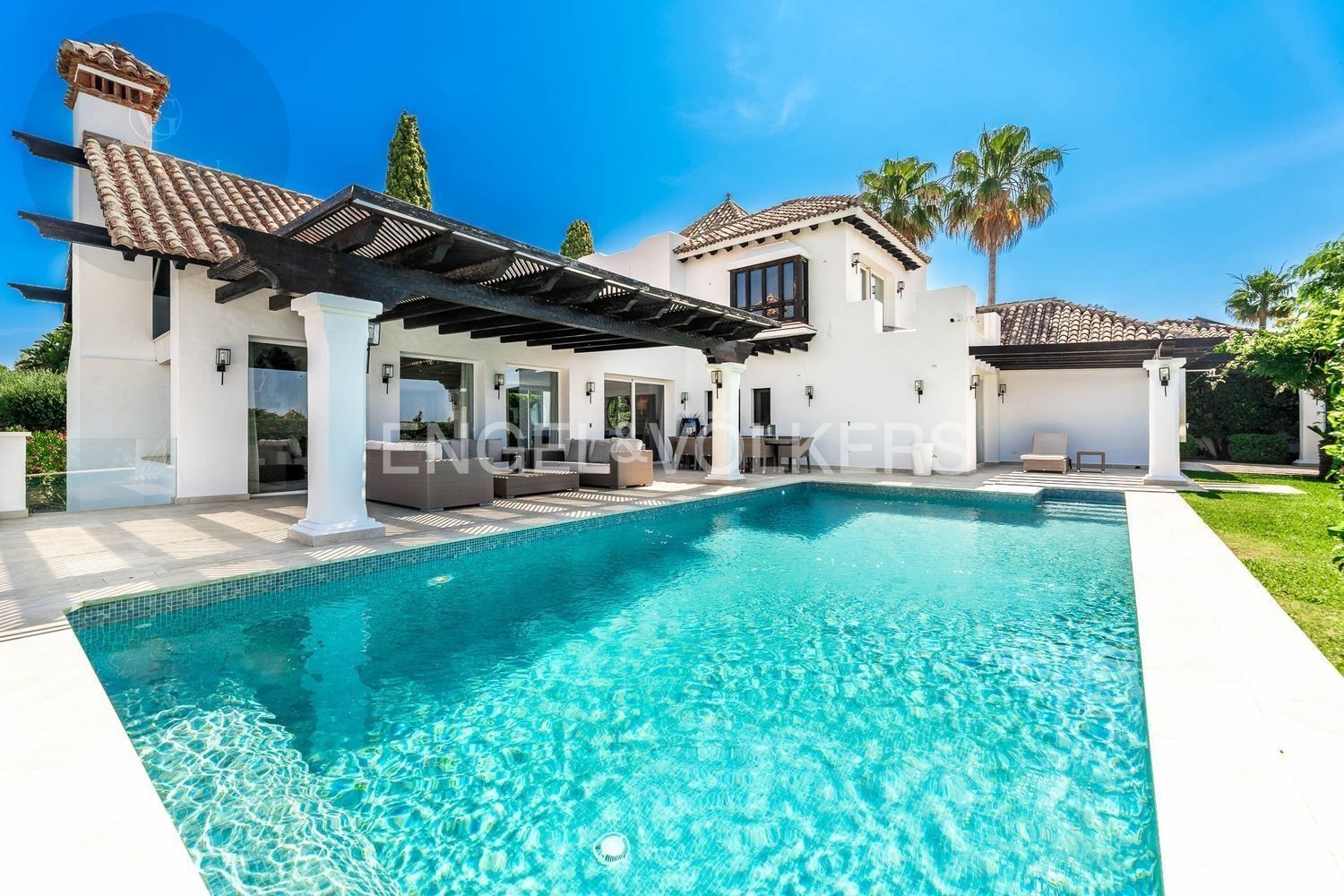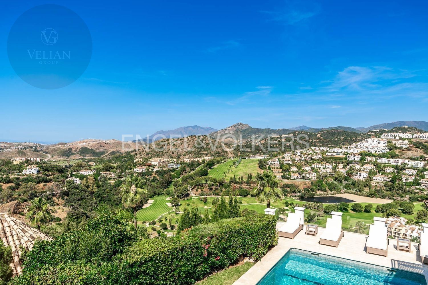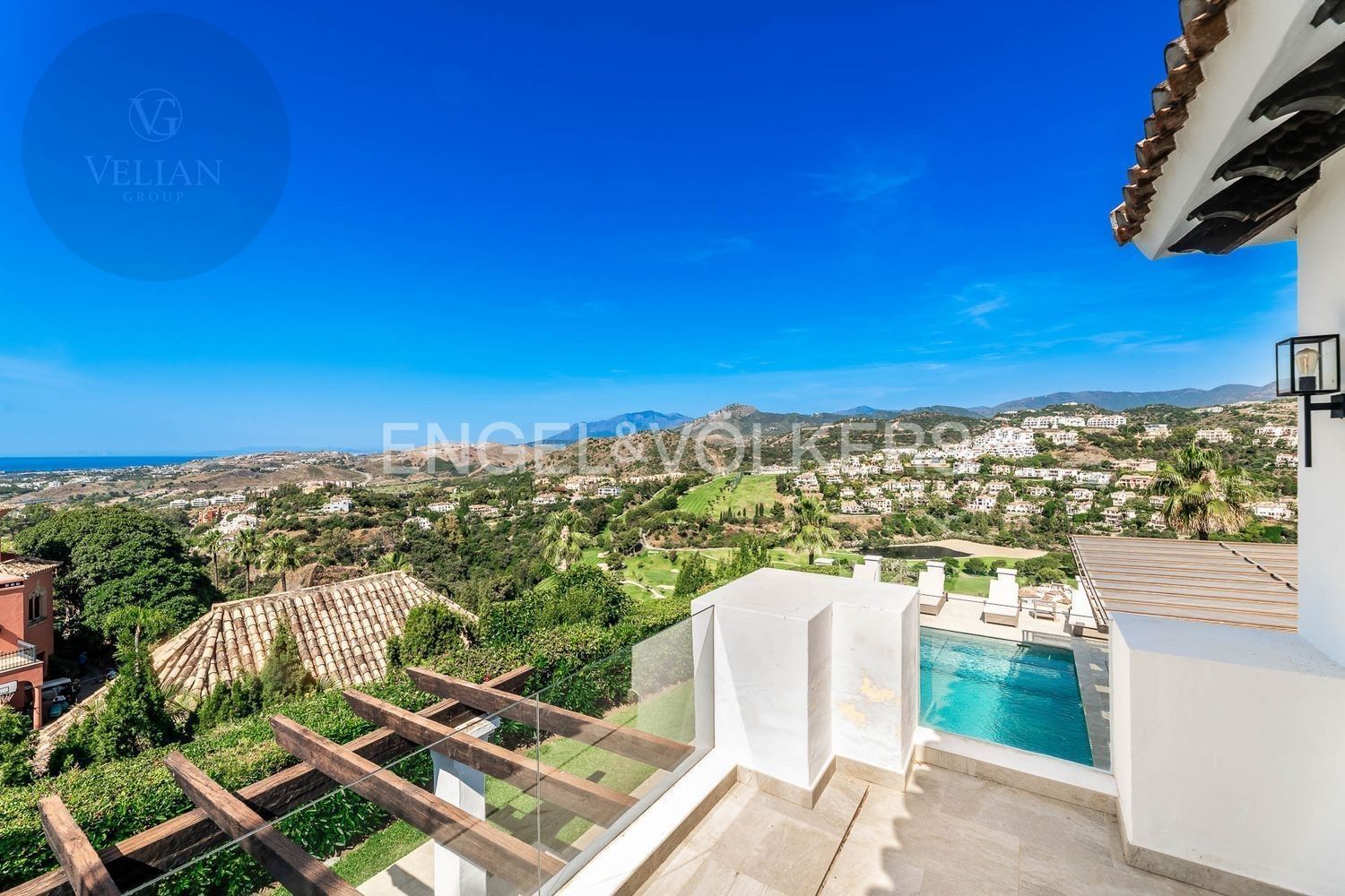 Ubicada en un tranquilo callejón sin salida en la prestigiosa zona de La Quinta, esta impresionante villa de estilo andaluz combina sin esfuerzo el encanto tradicional con el lujo moderno. Con impresionantes vistas al mar, las montañas, el campo de golf y el campo andaluz, esta excepcional casa familiar ofrece privacidad, elegancia y un ambiente cálido y acogedor.Al entrar, le da la bienvenida un majestuoso recibidor con un techo de doble altura que marca el tono del espacioso interior. El salón y comedor de planta abierta se inundan de luz natural a través de ventanas de suelo a techo, conectando perfectamente con la amplia terraza y la zona de la piscina privada, ideales para el entretenimiento al aire libre y la relajación.La cocina moderna está bien equipada y diseñada cuidadosamente tanto para funcionalidad como para estilo. La planta principal también cuenta con tres amplios dormitorios con baño en suite, cada uno con acceso a terrazas privadas. En la planta superior, la lujosa suite principal incluye un gran dormitorio, vestidor, elegante baño en suite y una terraza privada con vistas espectaculares.En el nivel inferior, un apartamento independiente para invitados —con entrada privada desde el jardín, dormitorio y baño en suite— ofrece total privacidad y comodidad para los visitantes.Con amplias zonas exteriores, un garaje cerrado para dos coches y espacio adicional para aparcamiento, esta casa es perfecta para una vida familiar cómoda y para recibir invitados. Una oportunidad única de poseer una propiedad serena y con encanto andaluz atemporal en una de las ubicaciones más codiciadas de la Costa del Sol.