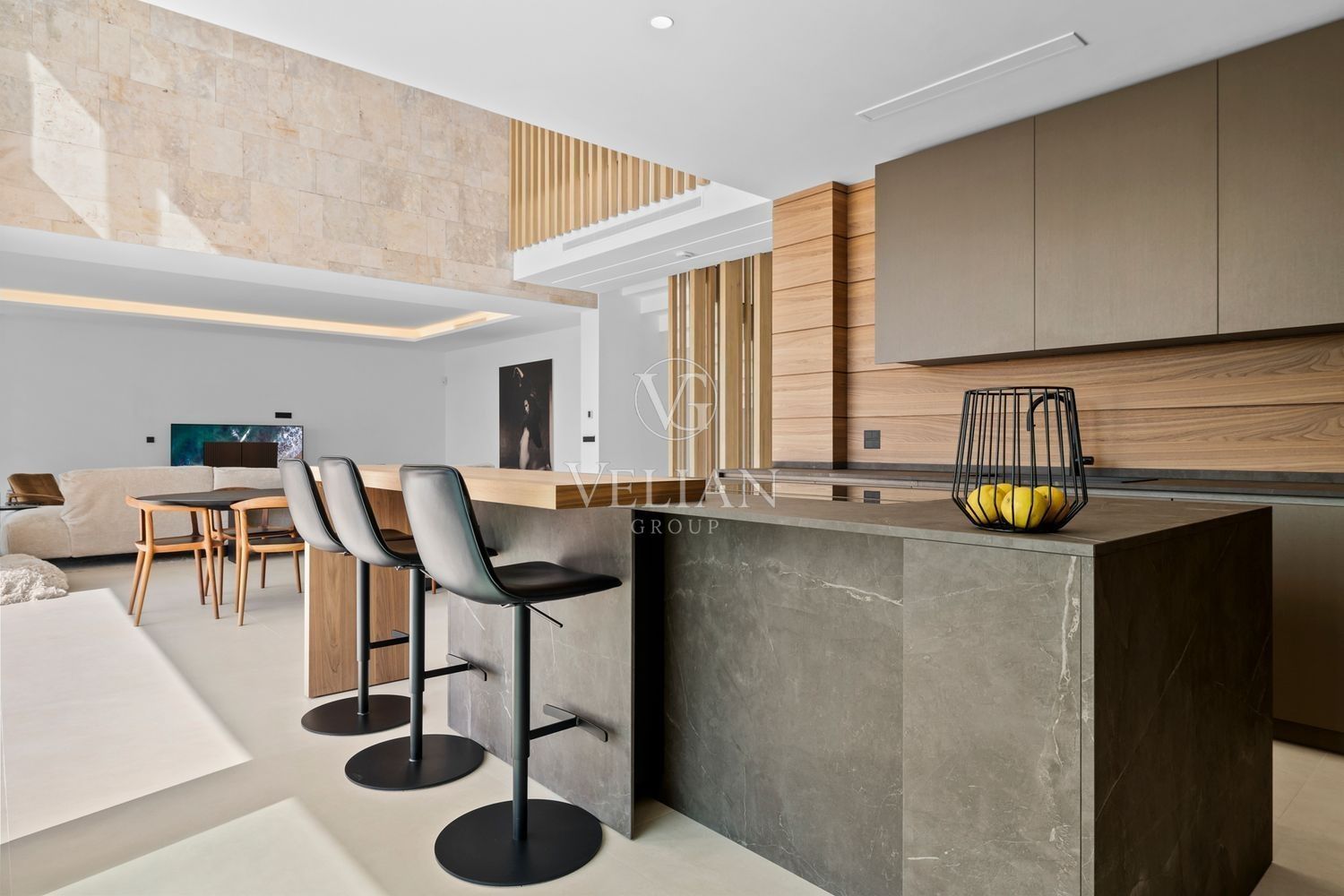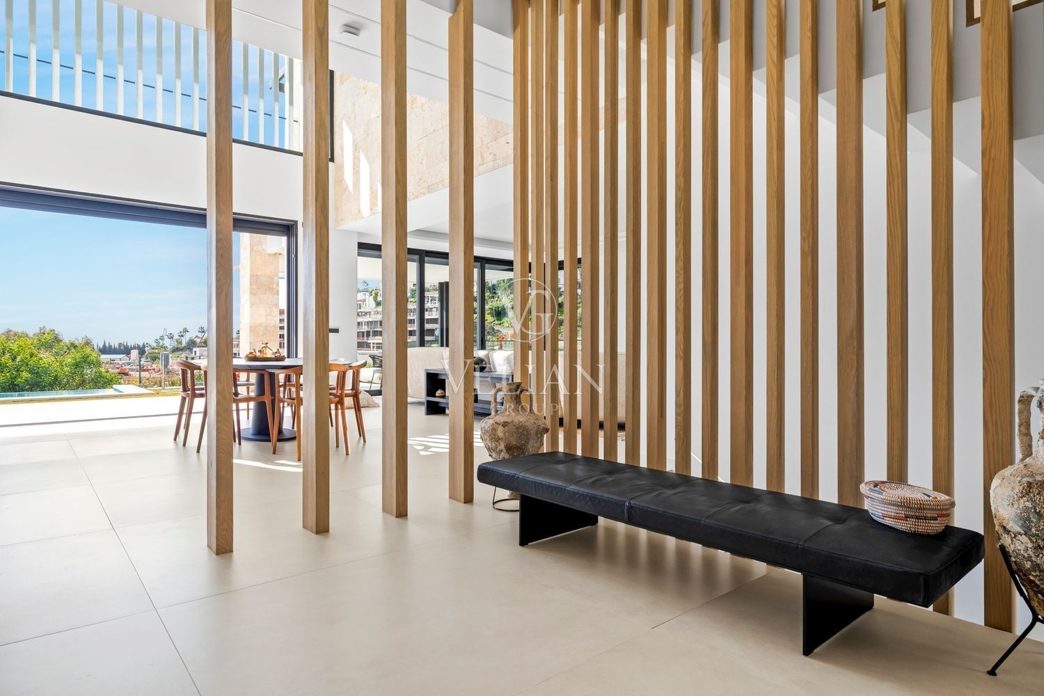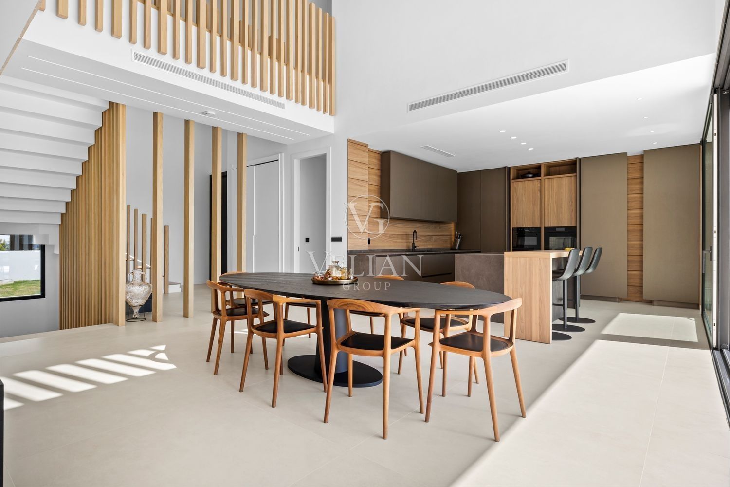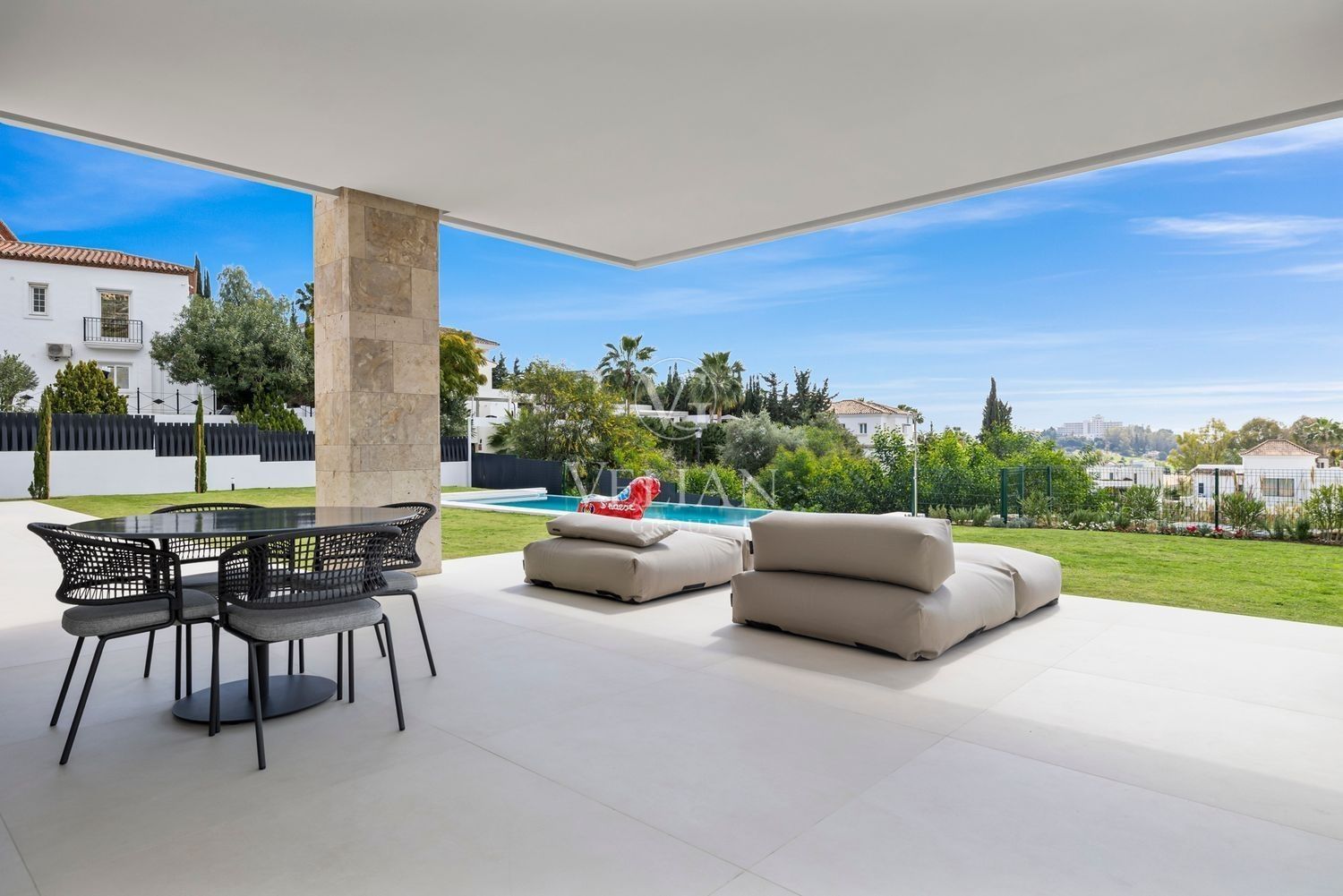 Villa contemporánea de alta calidad, de nueva construcción (2024), ubicada en la codiciada zona residencial de La Alquería, Benahavís. Orientada de sur a oeste, con vistas a las montañas y algunas vistas al mar desde la planta superior. Privada y tranquila. Cerca de todos los servicios, a 10 minutos en coche de la playa y del centro de San Pedro.Planta principal: Recibidor, amplio salón-comedor con techos altos y cocina abierta totalmente equipada de Modul Nova con electrodomésticos Miele. Lavadero independiente, aseo de invitados y un dormitorio de invitados con baño en suite.Acceso directo desde el salón a las terrazas cubiertas y descubiertas, al jardín y a la piscina privada.Planta superior: Dormitorio principal con baño en suite y vestidor y dos dormitorios de invitados con baño en suite. Acceso a terrazas con vistas parciales al mar.Planta inferior: Gran salón polivalente, otro aseo de invitados, trastero y garaje para dos coches.Jardín privado y piscina climatizada de agua salada. Junto al garaje hay una cochera cubierta para dos coches. Construida con las mejores calidades y con certificado energético A.Aire acondicionado Airzone con calefacción, suelo radiante en toda la vivienda, 20 paneles solares, ascensor a las 3 plantas y cargador eléctrico en el garaje.Los muebles no están incluidos, pero son negociables.
