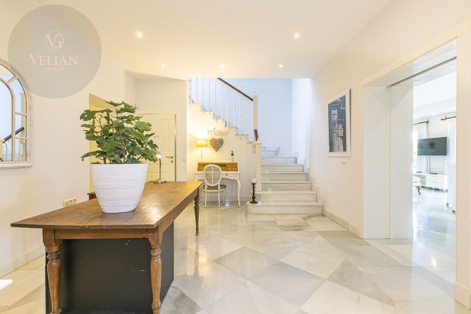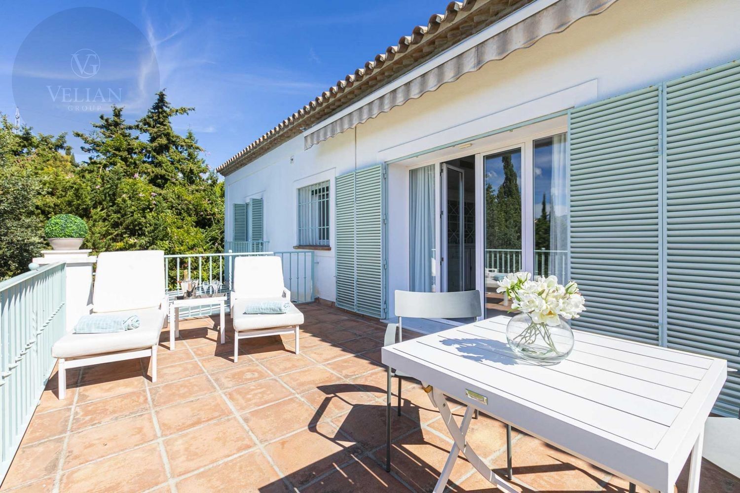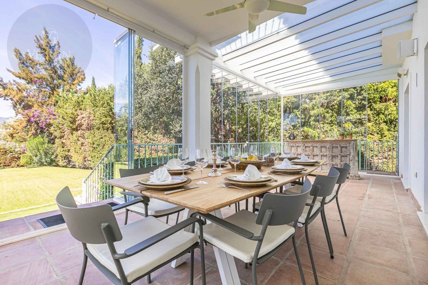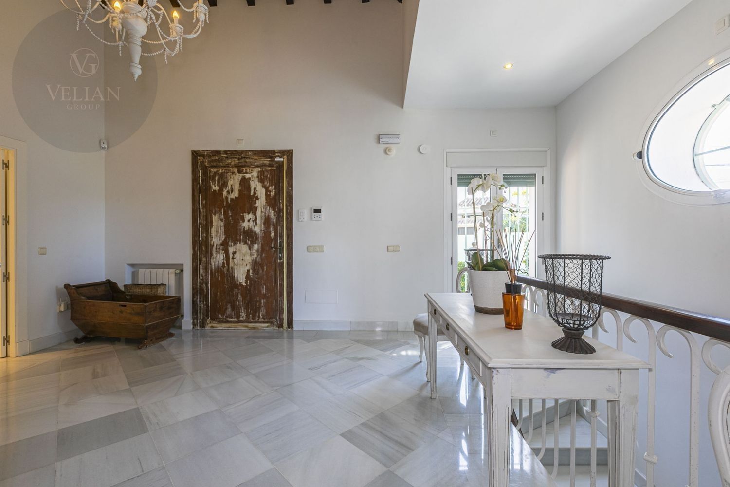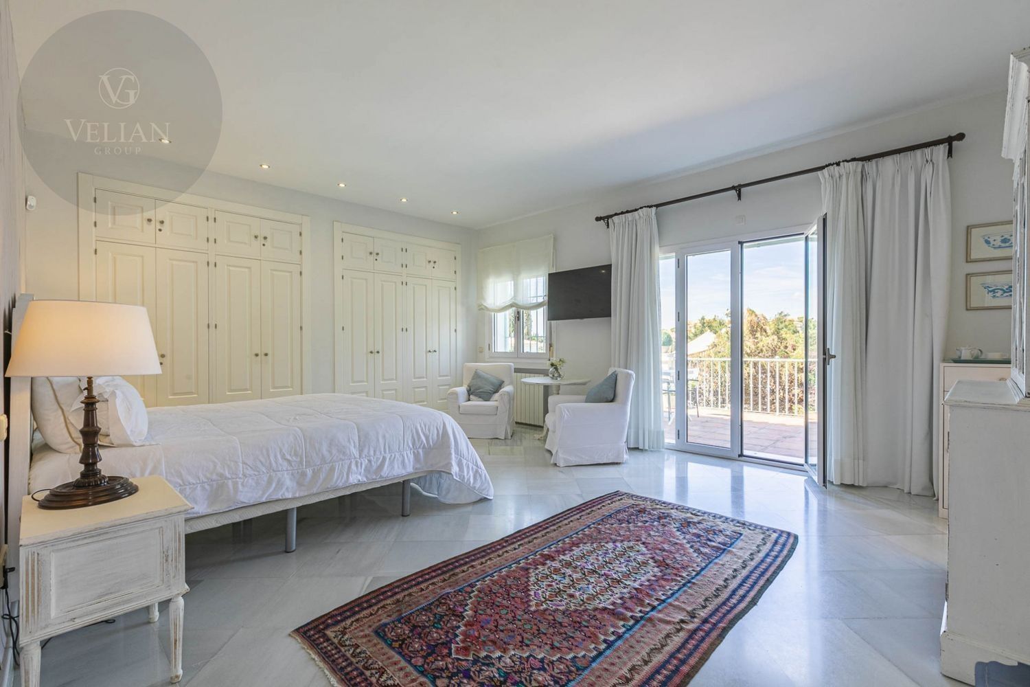 Descubra el encanto y la sofisticación de esta espectacular villa en venta en Elviria, Marbella. Construida en 2010, esta residencia de 550 m² combina la elegancia clásica con lo último en lujo moderno, todo a pocos minutos de las impresionantes playas y clubes de playa de Marbella, restaurantes elegantes y tiendas de alta gama.Al entrar en el espacioso y luminoso hall de entrada, inmediatamente le da la bienvenida el atractivo atemporal de esta casa, donde cada detalle ha sido cuidadosamente elaborado. La gran sala de estar, con una hermosa chimenea, fluye hacia un comedor. Grandes puertas de vidrio se abren desde los espacios de estar y comedor a una terraza cubierta, invitando a la vida interior y exterior en su máxima expresión. La terraza, enmarcada por cortinas de vidrio, es ideal para cenar al aire libre o simplemente relajarse con familiares y amigos, todo mientras disfruta de las vistas de los exuberantes jardines. La amplia cocina, completamente equipada, cuenta con una zona de desayuno con acceso a la terraza, perfecta para comidas informales y café por la mañana.Los cinco espaciosos dormitorios, cada uno con su propio baño privado, brindan espacios serenos de comodidad y estilo. Un dormitorio cuenta con una terraza soleada, completa con tumbonas y un comedor para desayunar tranquilamente con vistas a la piscina y al jardín. Cada habitación rezuma tranquilidad y su impecable estado realza su encanto.En el exterior, la villa está rodeada de un césped plano y cuidado, que proporciona un oasis abierto y privado. La piscina de buen tamaño está bordeada por baldosas de terracota, lo que crea el entorno ideal para tomar el sol. Árboles maduros, setos y flores vibrantes realzan la privacidad y la belleza del espacio, proporcionando el lugar ideal para relajarse y entretenerse.Esta casa no solo está bellamente diseñada, sino que también es eficiente, con certificado de instalación de calefacción central A y Certificado de Energía B. Además, el sótano versátil está preparado para la transformación, completo con todas las conexiones necesarias para un posible apartamento de invitados con entrada independiente, ofreciendo una solución ideal para alojamiento adicional o un retiro privado para los invitados.Con su diseño espectacular, su estado impecable y su ubicación privilegiada, esta villa es un hallazgo poco común en Elviria. Combinando elegancia clásica con funcionalidad moderna, ofrece un estilo de vida excepcional en el corazón de Marbella. Convenientemente ubicada cerca de escuelas de primer nivel, centros de salud y todos los servicios esenciales, así como a un corto trayecto en automóvil desde el aeropuerto de Málaga, esta casa garantiza lujo y practicidad. Contáctenos hoy para obtener más información o para concertar una visita privada a esta impresionante propiedad.