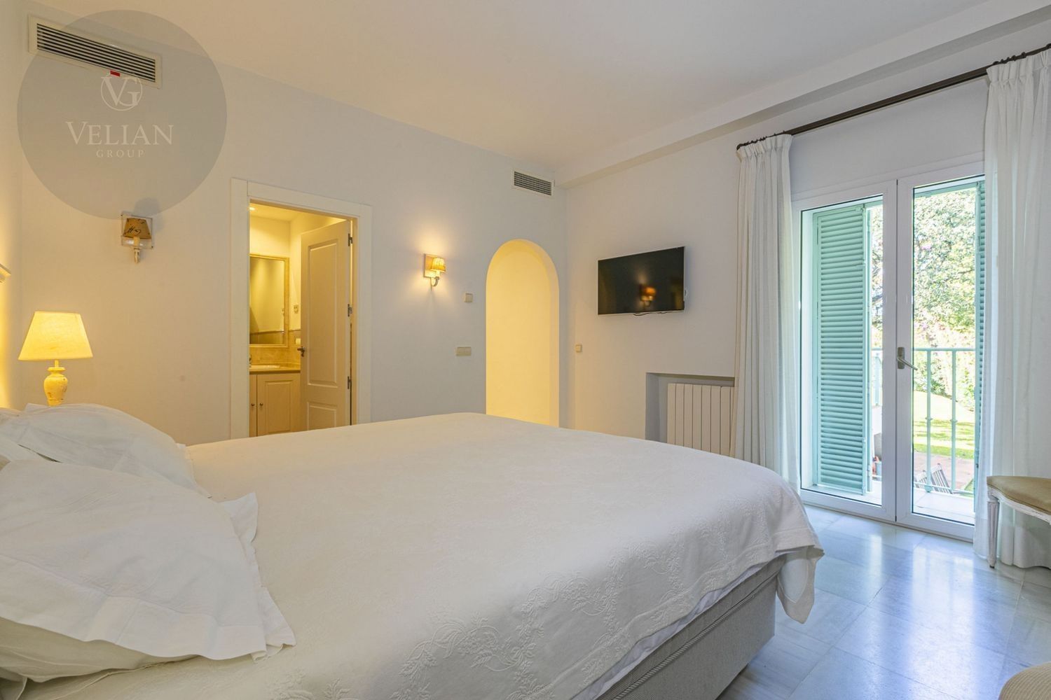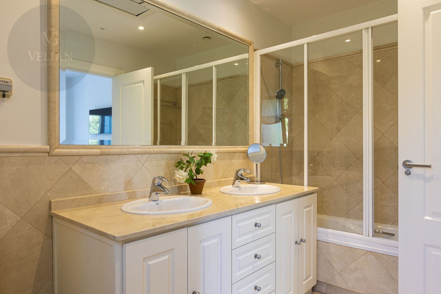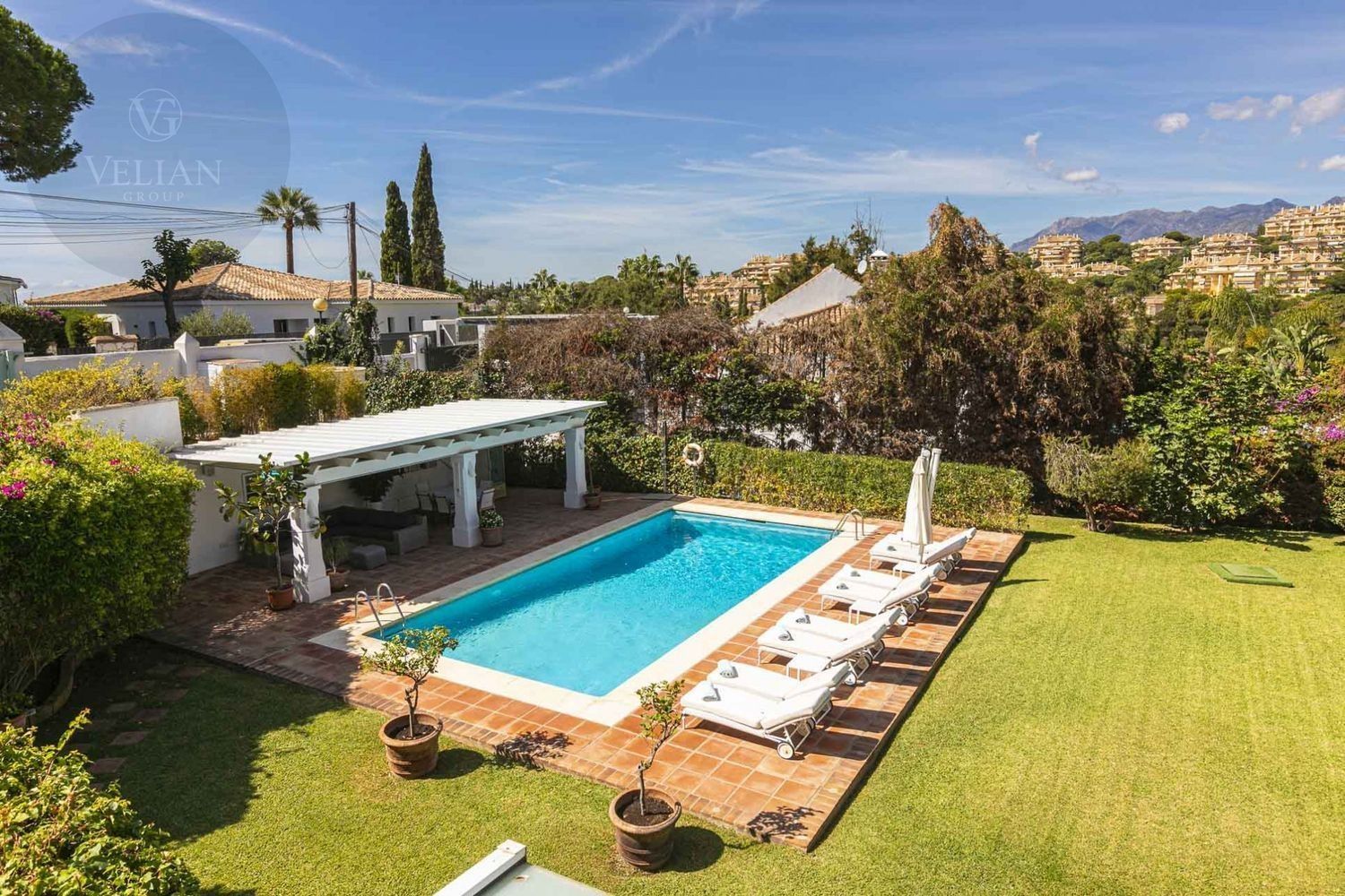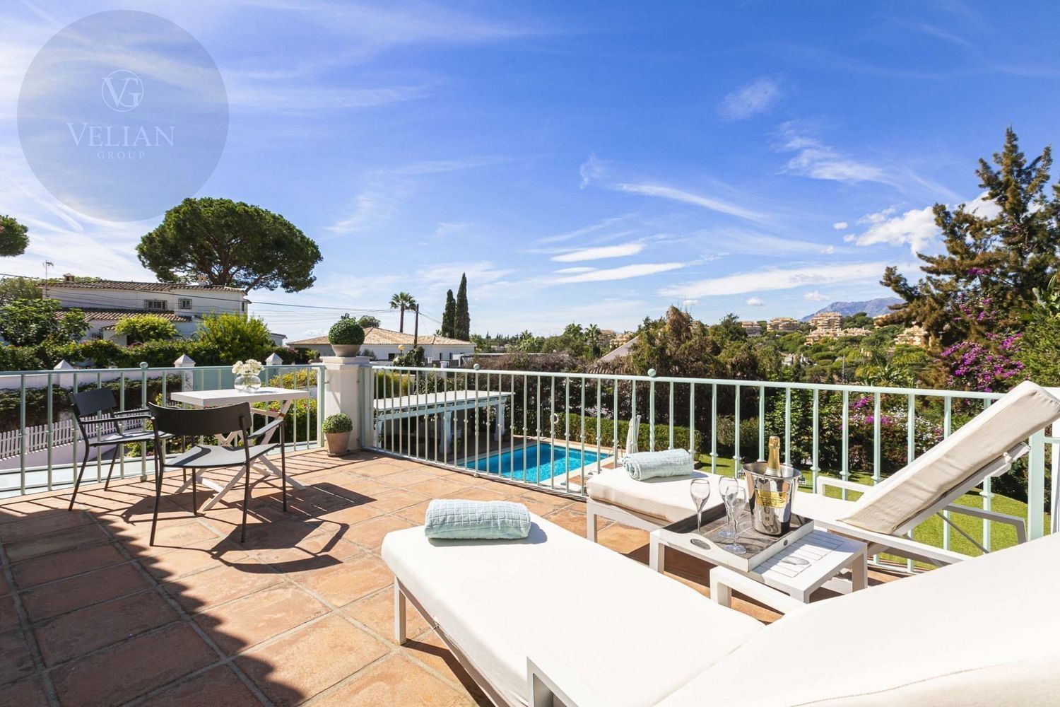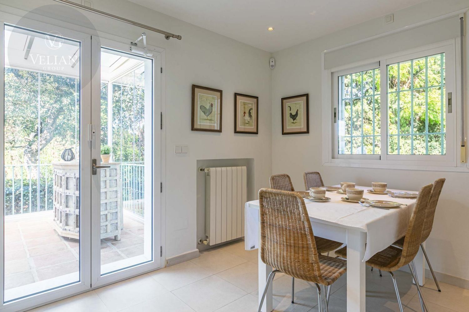 Descubra el encanto y la sofisticación de esta espectacular villa en venta en Elviria, Marbella. Construida en 2010, esta residencia de 550 m² combina la elegancia clásica con lo último en lujo moderno, todo a pocos minutos de las impresionantes playas y clubes de playa de Marbella, restaurantes elegantes y tiendas de alta gama.Al entrar en el espacioso y luminoso hall de entrada, inmediatamente le da la bienvenida el atractivo atemporal de esta casa, donde cada detalle ha sido cuidadosamente elaborado. La gran sala de estar, con una hermosa chimenea, fluye hacia un comedor. Grandes puertas de vidrio se abren desde los espacios de estar y comedor a una terraza cubierta, invitando a la vida interior y exterior en su máxima expresión. La terraza, enmarcada por cortinas de vidrio, es ideal para cenar al aire libre o simplemente relajarse con familiares y amigos, todo mientras disfruta de las vistas de los exuberantes jardines. La amplia cocina, completamente equipada, cuenta con una zona de desayuno con acceso a la terraza, perfecta para comidas informales y café por la mañana.Los cinco espaciosos dormitorios, cada uno con su propio baño privado, brindan espacios serenos de comodidad y estilo. Un dormitorio cuenta con una terraza soleada, completa con tumbonas y un comedor para desayunar tranquilamente con vistas a la piscina y al jardín. Cada habitación rezuma tranquilidad y su impecable estado realza su encanto.En el exterior, la villa está rodeada de un césped plano y cuidado, que proporciona un oasis abierto y privado. La piscina de buen tamaño está bordeada por baldosas de terracota, lo que crea el entorno ideal para tomar el sol. Árboles maduros, setos y flores vibrantes realzan la privacidad y la belleza del espacio, proporcionando el lugar ideal para relajarse y entretenerse.Esta casa no solo está bellamente diseñada, sino que también es eficiente, con certificado de instalación de calefacción central A y Certificado de Energía B. Además, el sótano versátil está preparado para la transformación, completo con todas las conexiones necesarias para un posible apartamento de invitados con entrada independiente, ofreciendo una solución ideal para alojamiento adicional o un retiro privado para los invitados.Con su diseño espectacular, su estado impecable y su ubicación privilegiada, esta villa es un hallazgo poco común en Elviria. Combinando elegancia clásica con funcionalidad moderna, ofrece un estilo de vida excepcional en el corazón de Marbella. Convenientemente ubicada cerca de escuelas de primer nivel, centros de salud y todos los servicios esenciales, así como a un corto trayecto en automóvil desde el aeropuerto de Málaga, esta casa garantiza lujo y practicidad. Contáctenos hoy para obtener más información o para concertar una visita privada a esta impresionante propiedad.