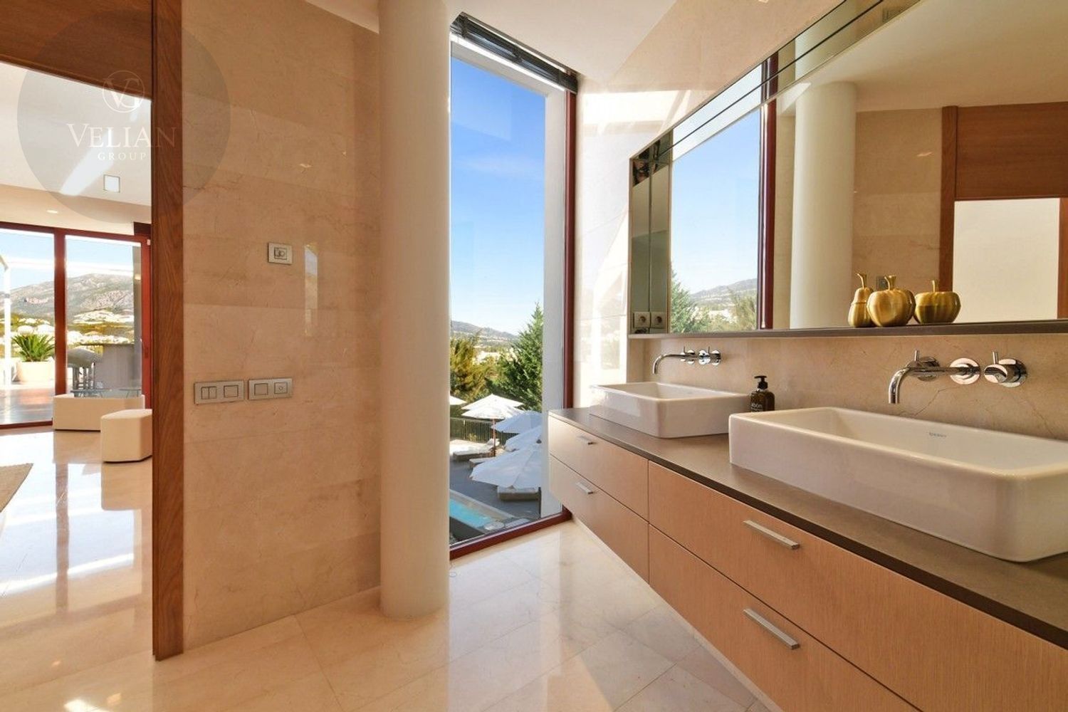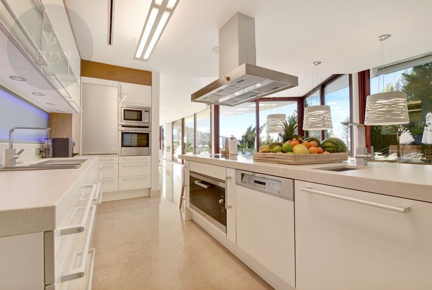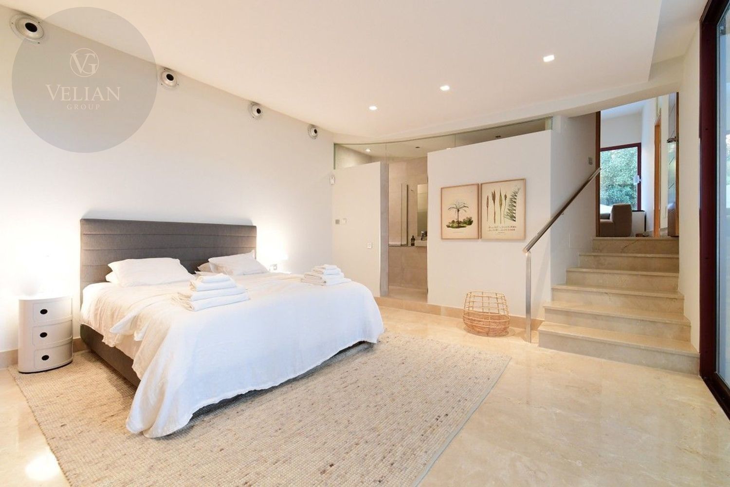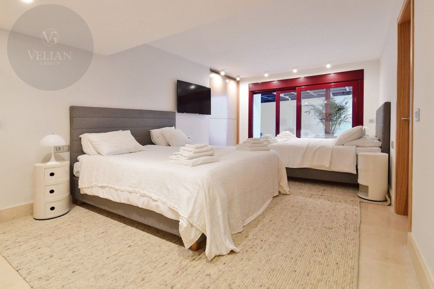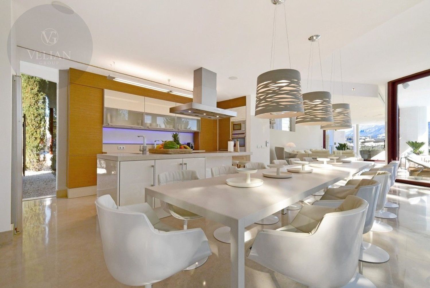 Magnífica villa contemporánea con impresionantes vistas a la Montaña de la Concha y al Valle del Golf de Nueva Andalucía. Se trata de una villa diseñada por el prestigioso arquitecto Angel Taboada y construida con los más elevados estándares de calidad. La entrada principal y el salón destacan por su luminosidad debida a sus grandes ventanales que a su vez brindan unas vistas espectaculares a las montañas y a los campos de golf de Nueva Andalucía a través de la amplia zona de piscina de estilo escandinavo tipo “infinity” con jacuzzi. Esta villa está dotada de una espectacular cocina de la marca Poggenpohl completamente equipada y con un comedor para 16 comensales. Además, disponemos de una segunda cocina auxiliar y un lavadero. En la planta alta se encuentran dos dormitorios principales con sendos baños “en suite” impresionantes con acceso directo al bar y a la zona del lounge con nuevamente impresionantes vistas al valle, a la montaña y al Mar Mediterráneo. En la planta baja se ubican otros 5 dormitorios con 6 camas king-size y 4 baños cuartos de baño completos en suite. Todos ellos con acceso a través de una escalera independiente a la terraza y a la zona de piscina. Por ello, estos 7 dormitorios, con capacidad para 16 personas, disponen de una gran privacidad. Finalmente, esta villa dispone de un gimnasio exterior y una zona de lounge, un home-cinema con todas las comodidades y una mesa de billar/snooker. Características adicionales: Iluminación LED (interior/exterior), sistema SONOS-surround y DOMOTICA en todos los dormitorios. Sistema de alarma, suelo radiante por toda la casa, un bar con 2 neveras, congeladores, refrigerador de vino, máquina de hielo, grifo de agua potable y una plancha Teppanyaki. La casa brinda un diseño único e incluye una azotea con solarium y un Jacuzzi de 8 plazas.En resumen: Una Villa contemporánea situada en el corazón de Nueva Andalucía con impresionantes vistas al Valle del Golf, a la montaña de La Concha y al Mar Mediterráneo, con un diseño y unas calidades únicas y exclusivas.