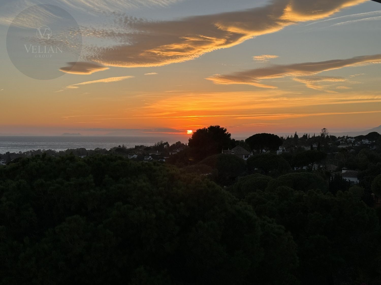 ¡Bienvenidos al Loto Blanco! Prepárese para entrar en la esencia de la vida de lujo en Elviria, Marbella.The White Lotus es una villa de nueva construcción contemporánea que ofrece vistas panorámicas incomparables desde los cuatro niveles. La posición elevada de la villa, sobre la alfombra verde de pinos, garantiza una vista impresionante de Gibraltar y la Bahía de Marbella. Vistas panorámicas, elegancia y diseño espacioso son las características definitorias que distinguen a esta villa de todas las demás propiedades de la zona.Rodeado de un amplio jardín bellamente diseñado, con palmeras y varios elementos paisajísticos, se encontrará en una ubicación privilegiada en el este de Marbella.¡A menos de 3 kilómetros de las mejores playas de Marbella, a 10 minutos en coche del casco antiguo de Marbella y a 35 minutos en coche del aeropuerto de Málaga! En las proximidades de la villa también se encuentran campos de golf de renombre, boutiques de lujo, exquisitas opciones gastronómicas y supermercados.A su llegada, puede optar por acceder al nivel superior con estacionamiento para 2 autos, o puede acceder al nivel inferior usando el camino de entrada, que también ofrece espacio de garaje para 2 autos.The White Lotus cuenta con un espacio total de terraza de 351,36 m² y una generosa superficie construida total de 534,26 m².El plano de planta bien diseñado se divide de la siguiente manera:Planta Ático: Con 37,92 m² de espacio interior para oficinas y unos impresionantes 79,08 m² de espacio exterior, este nivel ofrece un santuario privado para la relajación y el entretenimiento.Planta principal: Con 156,18 m² de espacio interior con sala de estar, sección de TV, oficina y cocina, la planta principal se conecta perfectamente con una amplia terraza exterior de 127,97 m², perfecta para cenar al aire libre y relajarse.Nivel -1 Dormitorios: Con 177,10 m² de espacio interior y 144,31 m² de espacio exterior, este nivel ofrece retiros tranquilos y privados en un entorno sereno con 4 dormitorios, todos con baño.Nivel -2 Garaje: Con 163,06 m² de espacio interior, esta área garantiza espacio para 2 vehículos, spa, sauna, gimnasio, bodega y un Tikkibar con acceso directo al área de la piscina infinita.Ya sea que busque la casa de vacaciones de sus sueños, un negocio de alquiler o una residencia permanente, esta villa ofrece el entorno perfecto para mejorar el estilo de vida por el que Marbella es tan conocida.Características adicionales:Techos de doble altura, calefacción por suelo radiante en todas partes.Ascensor que conecta todas las plantas.Termostatos domóticos / controlados por appPersianas motorizadas para sistema domótico.Preinstalación para paneles solares.