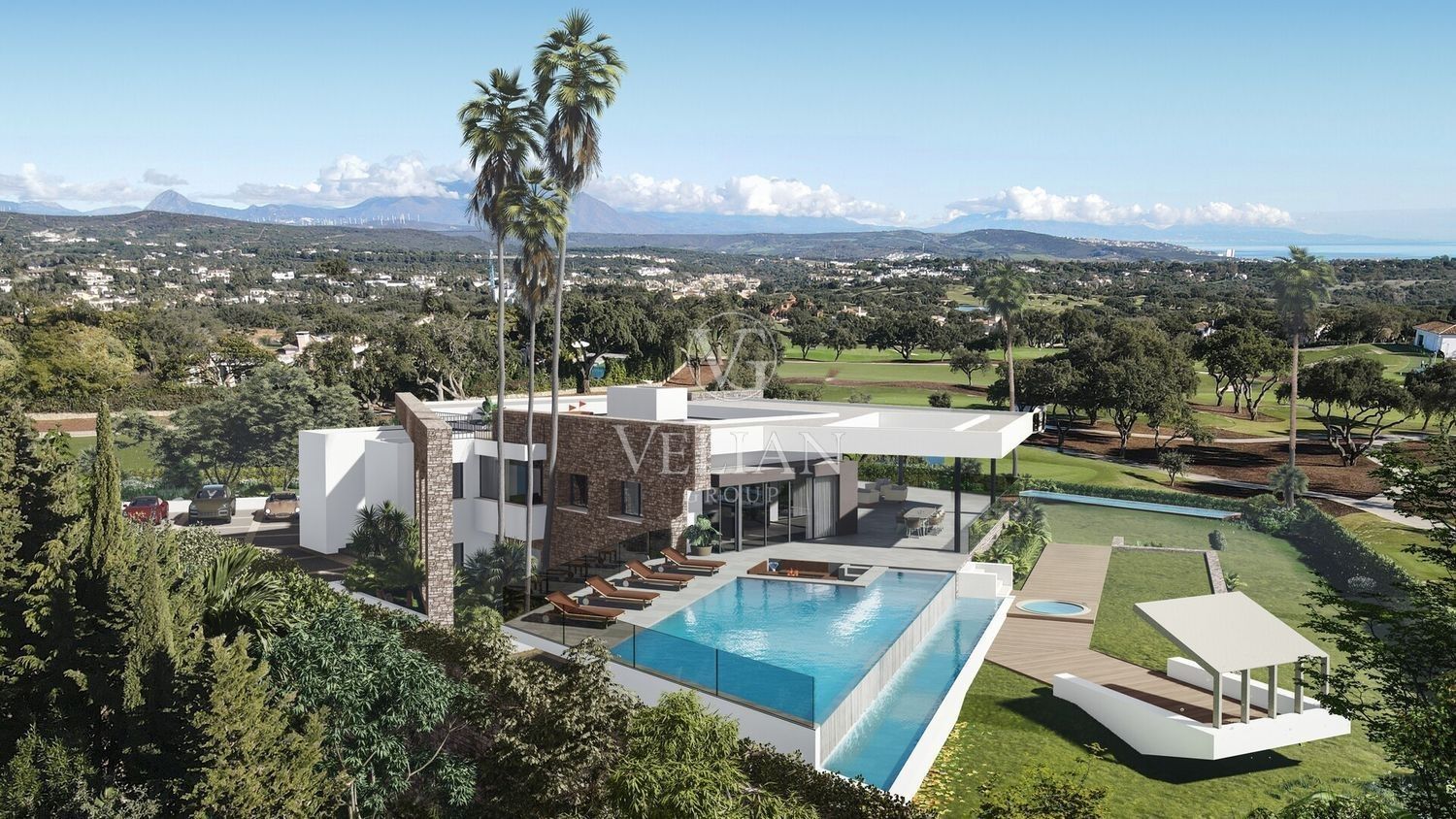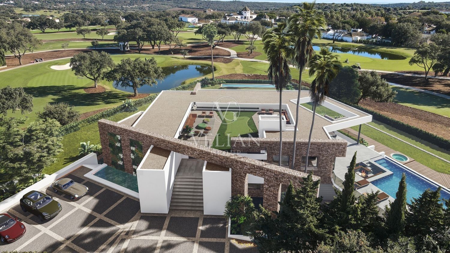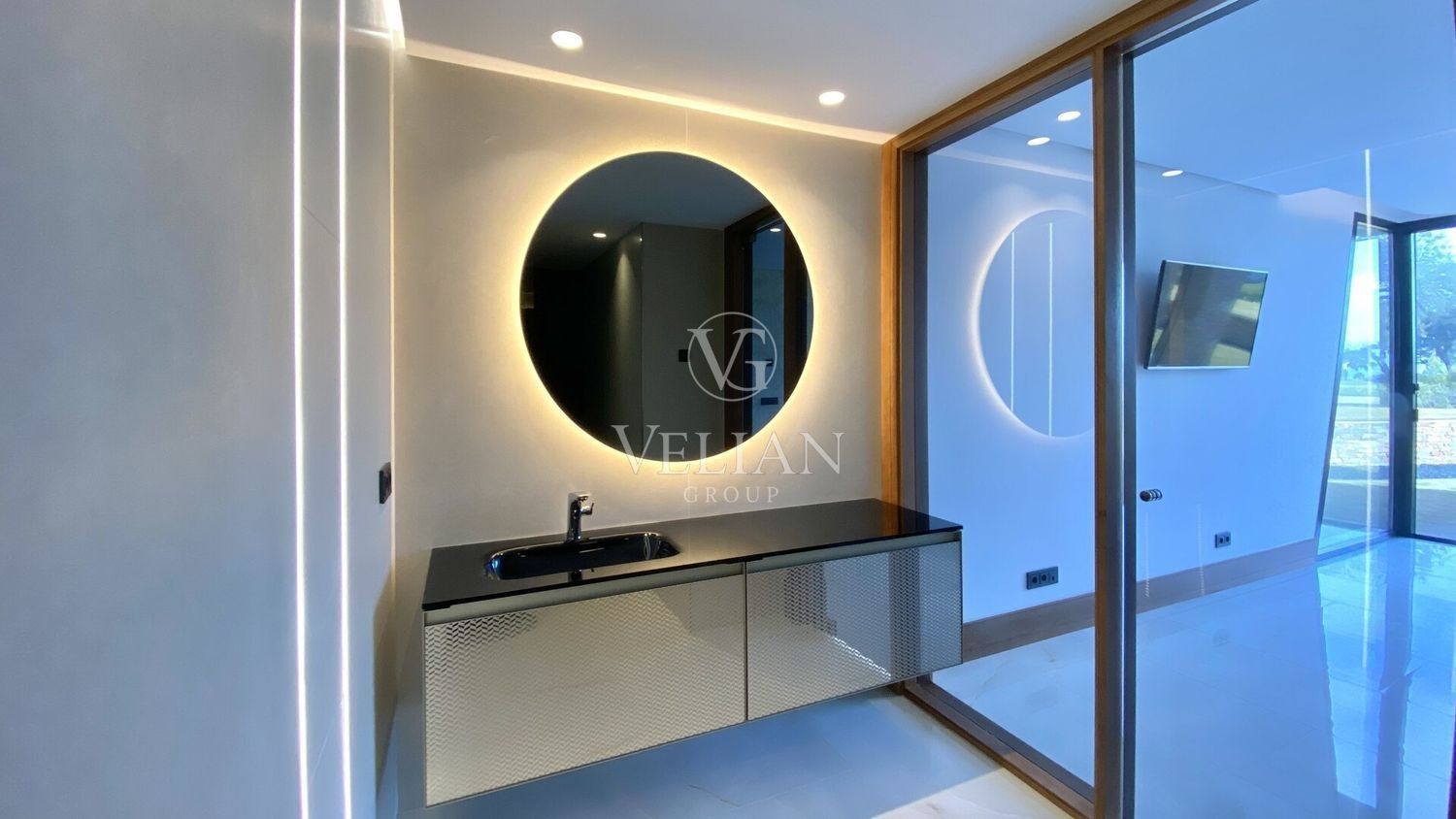Esta excepcional villa de lujo está situada en el prestigioso San Roque Golf Resort, San Roque, Cádiz. Diseñada por el renombrado arquitecto argentino Gustavo Moser, la propiedad ofrece una privacidad inigualable en una tranquila calle sin salida. Con una posición privilegiada en primera línea de golf, esta villa combina vistas panorámicas al mar, las montañas, el campo y el campo de golf con elegancia contemporánea y tecnología de vanguardia.Con una impresionante superficie construida de 1.220 m² y 1.037 m² de espacio interior, la villa consta de seis amplios dormitorios, cada uno con su propio cuarto de baño con paredes de laminado italiano y muebles de baño Geisi. Destaca la espectacular suite principal, complementada con un apartamento de invitados para las visitas. Los espacios habitables incluyen dos salones, una sala de televisión especial con chimenea contemporánea y mueble de TV, una sala de cine, una oficina hecha a medida y una bodega con bar. La cocina, de diseño italiano, está totalmente equipada y cuenta con un lavadero. La villa también dispone de puertas interiores y armarios hechos a medida.El ocio y el bienestar están en el corazón de esta propiedad, con gimnasio, sauna, sala de juegos, sala de simulación de golf y dos jacuzzis. La piscina infinita de 18 metros, con una zona para sentarse y preinstalación de calefacción, se complementa con una piscina climatizada, un cenador y un putting green profesional en la azotea. Los jardines, con tres fuentes, sistemas especiales de riego e iluminación, y una gran terraza en la azotea con entarimado, proporcionan un amplio disfrute al aire libre. La villa también está equipada con una zona de barbacoa, terrazas cubiertas y privadas, y goza de vistas tanto al jardín como a la piscina.La seguridad y la comodidad son primordiales, con puertas eléctricas en ambos puntos de entrada, una puerta de entrada electrónica especial, servicio de seguridad 24 horas, sistema de alarma, entrada de vídeo y un entorno de comunidad cerrada. Electricidad inteligente, domótica, Internet de fibra óptica y sistemas controlados por Ipad garantizan una vida moderna en su máxima expresión. Las características adicionales incluyen aire acondicionado, calefacción central, calefacción por suelo radiante en los baños, suelos de mármol y porcelana, doble acristalamiento, armarios empotrados, un garaje para seis coches con gran trastero, sótano y muebles opcionales. La villa tiene acceso para minusválidos, está cerca de colegios y campos de golf, y se encuentra en excelentes condiciones, lo que la convierte en una residencia realmente excepcional en una de las ubicaciones más codiciadas de Cádiz.¡Llámenos para reservar una visita!