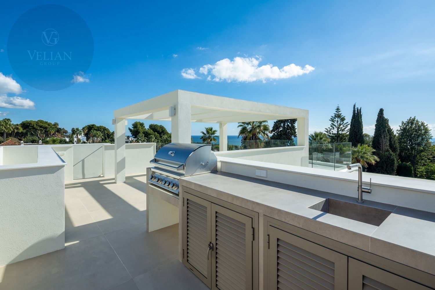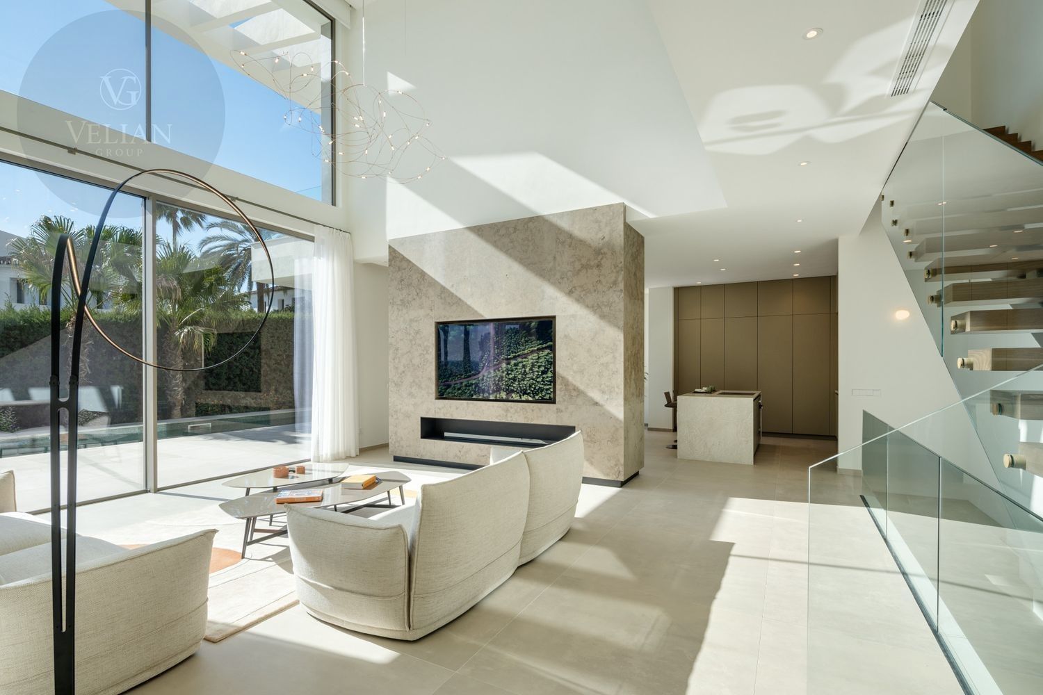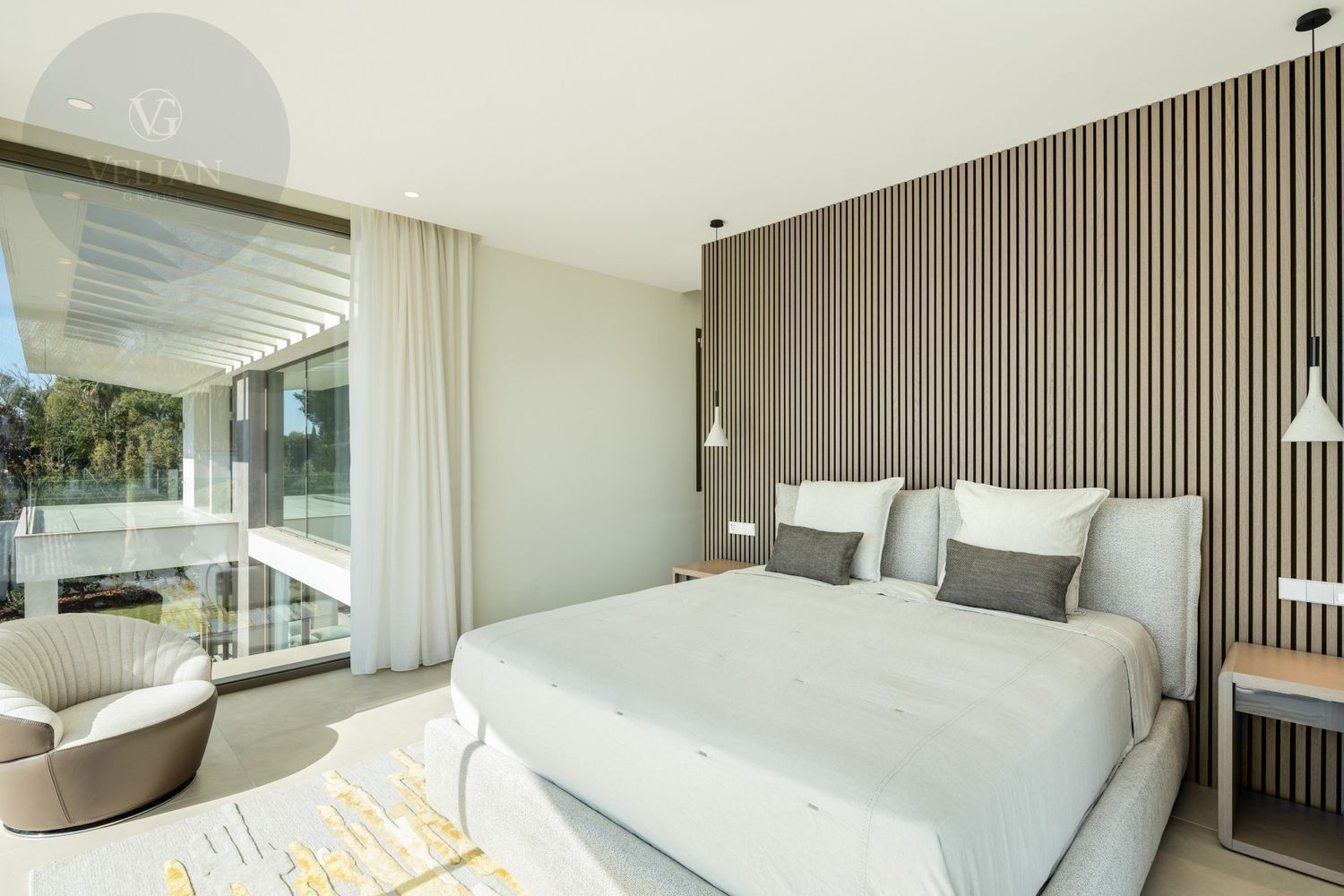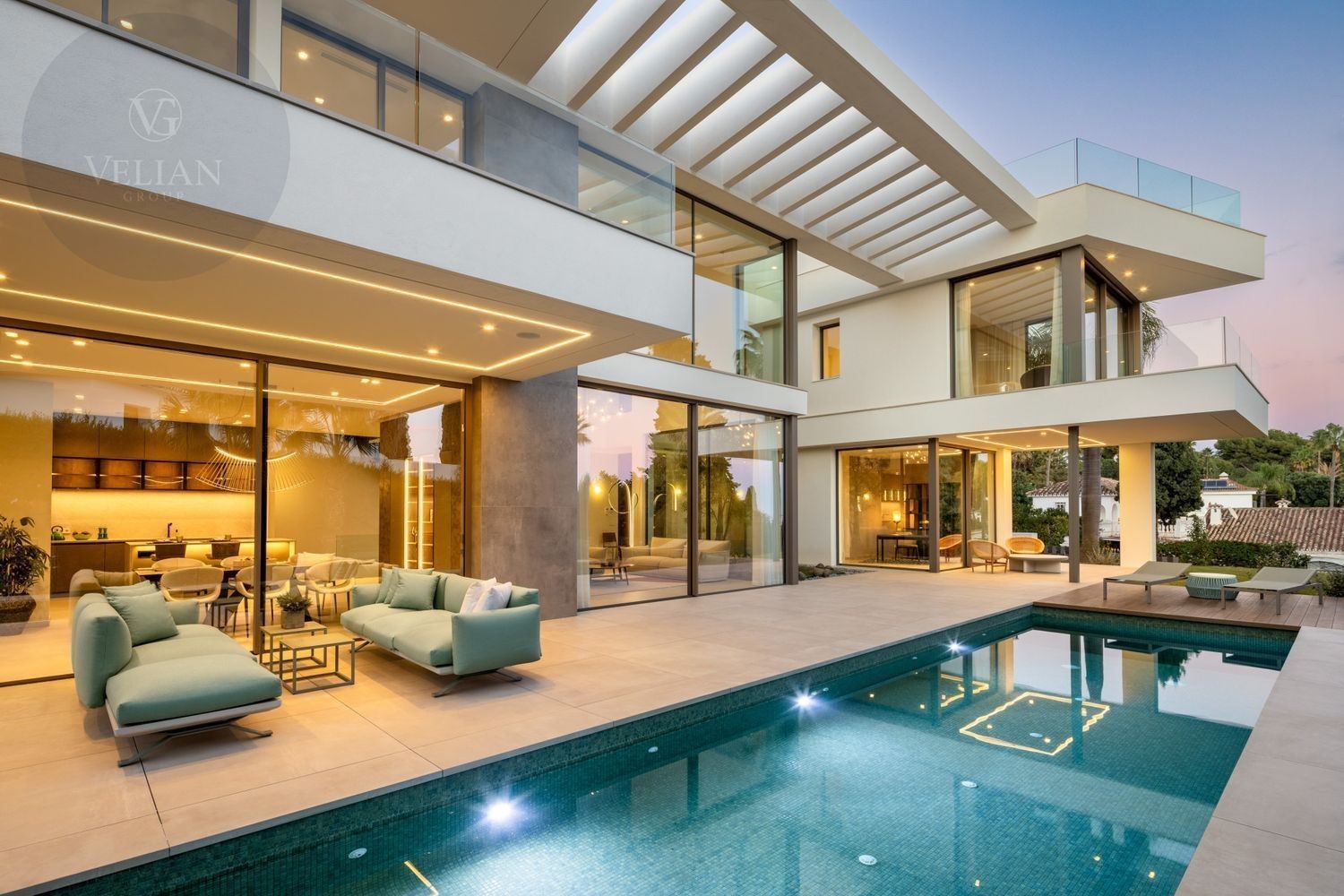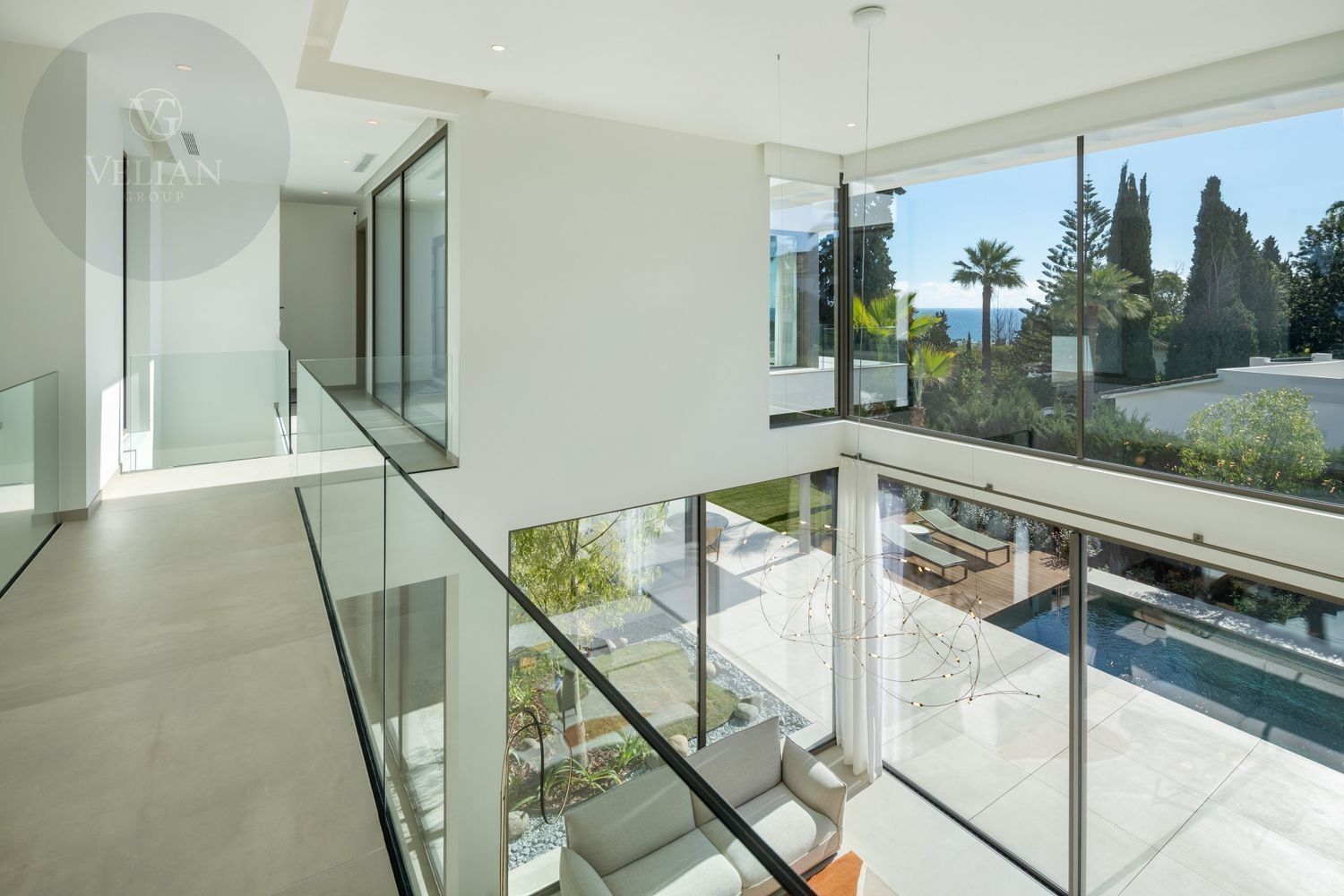 Vida Mediterránea Sofisticada a Pasos del MarDescubre un mundo de elegancia refinada en esta villa de reciente construcción, ubicada en la codiciada Milla de Oro de Marbella. Diseñada por el reconocido arquitecto Ismael Mérida, esta residencia ofrece impresionantes vistas al mar desde la planta baja y se encuentra a tan solo unos pasos de playas doradas, resorts cinco estrellas y una exclusiva selección de restaurantes gourmet y tiendas de lujo. Una fusión perfecta entre el lujo contemporáneo y el encanto mediterráneo atemporal, ideal para quienes valoran la privacidad, el confort y el diseño exquisito.Características Destacadas y Diseño AtemporalExcelencia InteriorEspacios Amplios y Luminosos: Salón-comedor de planta abierta con techos altos y grandes ventanales que conectan de forma fluida con las zonas exteriores.Cocina de Diseño: Cocina gourmet totalmente equipada con electrodomésticos de alta gama y mobiliario moderno, perfecta para el día a día o para eventos especiales.Dormitorios Privados en Suite: Cinco dormitorios con baño en suite, incluyendo una suite principal con vestidor y un baño tipo spa.Bienestar y Entretenimiento: Cine privado de última generación, gimnasio totalmente equipado y sauna para un estilo de vida exclusivo.Comodidades Prácticas: Lavandería independiente, espacios de almacenamiento y sistema de calefacción por suelo radiante (principalmente por agua) en toda la vivienda.Zonas Exteriores y Servicios al Aire LibreAmbientes al Aire Libre de Estilo Contemporáneo: Terrazas cubiertas y descubiertas ideales para relajarse o cenar al aire libre durante todo el año, con el Mediterráneo como telón de fondo.Piscina Infinita: Piscina con preinstalación para bomba de calor y cubierta retráctil, lista para disfrutar en cualquier estación.Solárium Panorámico: Azotea con zona de barbacoa y pérgola, que ofrece vistas impresionantes al mar y a la montaña, perfecta para atardeceres inolvidables.Estacionamiento Privado: Garaje cerrado para dos vehículos y espacio adicional en el exterior para invitados.Ubicación Exclusiva en la Milla de Oro de MarbellaSituada en una de las zonas más prestigiosas y demandadas de Marbella, esta villa ofrece una vida tranquila y lujosa a pocos minutos de las mejores playas, colegios internacionales, campos de golf y spas de clase mundial.Estilo de Vida de Confort y PrestigioYa sea organizando reuniones elegantes junto a la piscina o disfrutando de mañanas tranquilas en el solárium, cada rincón de esta villa ha sido diseñado para mejorar tu estilo de vida. Su equilibrio perfecto entre diseño arquitectónico y confort moderno la convierte en el hogar ideal en la Costa del Sol.Información Detallada de la PropiedadSuperficie Interior: Aprox. 621 m² construidosDormitorios / Baños: 5 dormitorios en suite | 1 aseo de cortesíaParcela: Aprox. 1.043 m²Estilo Arquitectónico: Mediterráneo moderno por Ismael MéridaAño de Construcción: 2024Garaje: Garaje cerrado para 2 coches aparcamiento exterior para 2 másOportunidad de Inversión ExclusivaEsta magnífica villa representa una oportunidad única de inversión en una de las zonas más emblemáticas de Marbella. Precio y especificaciones completas disponibles bajo solicitud.Agenda Tu Visita Privada Hoy MismoVive en primera persona el lujo, diseño y ubicación privilegiada de esta extraordinaria propiedad en la Milla de Oro. Contáctanos para concertar una visita personalizada.