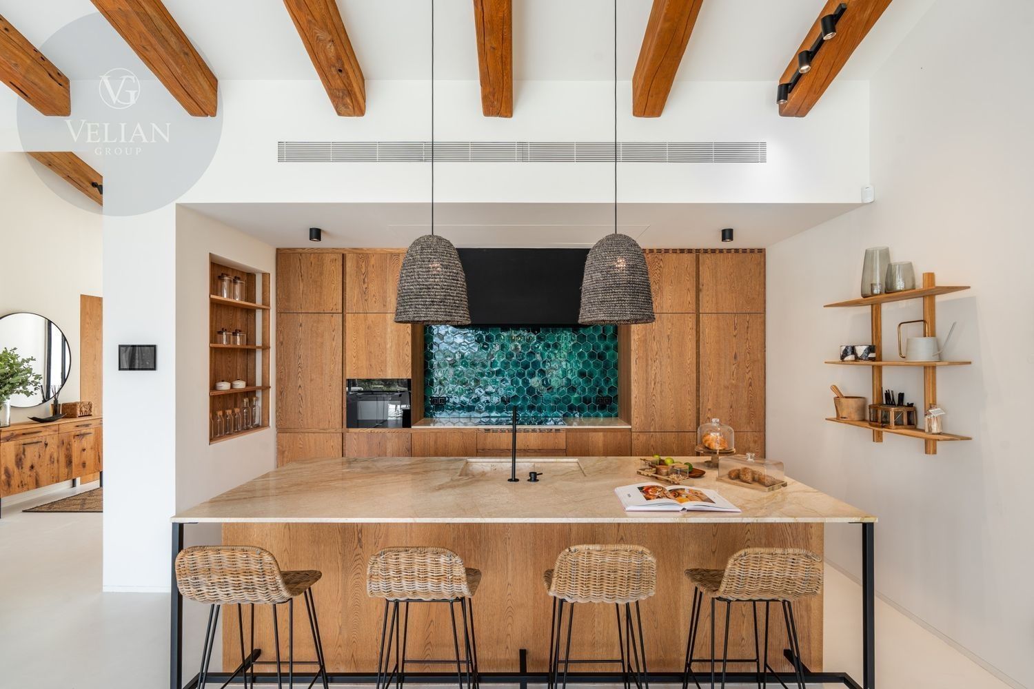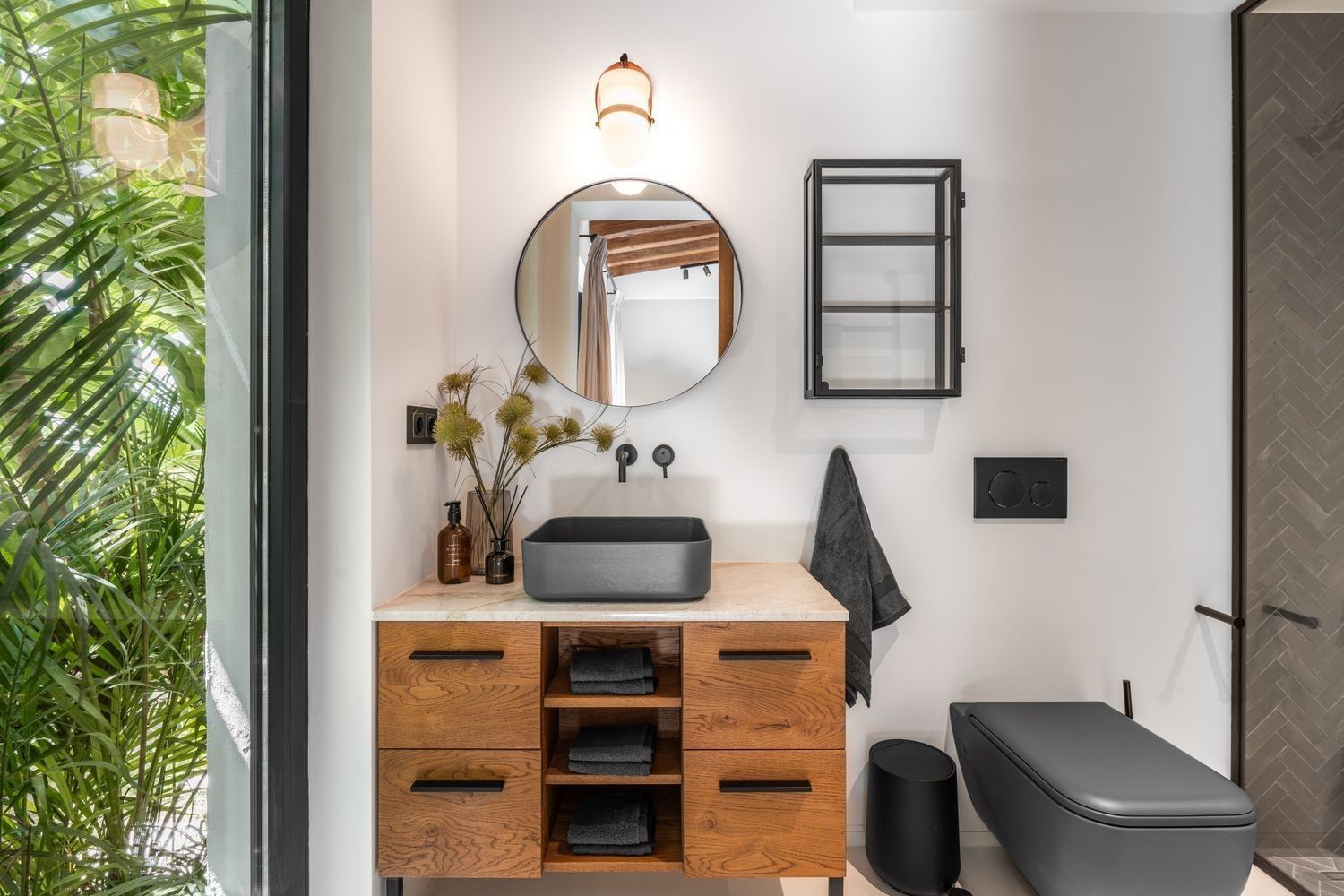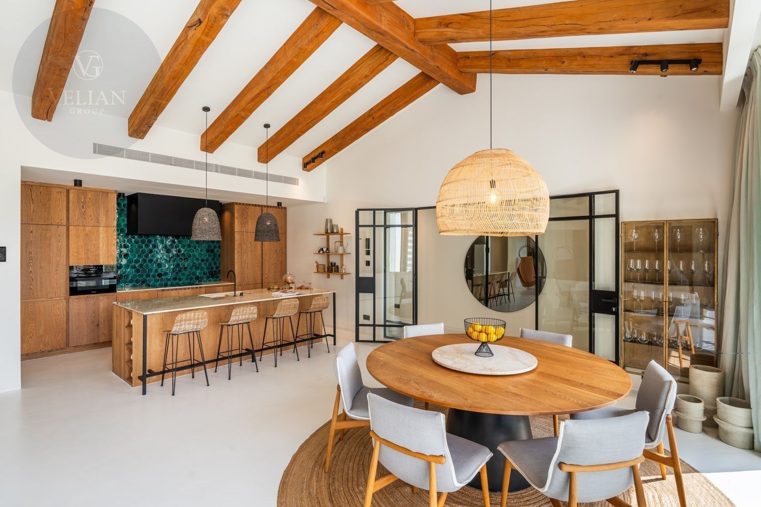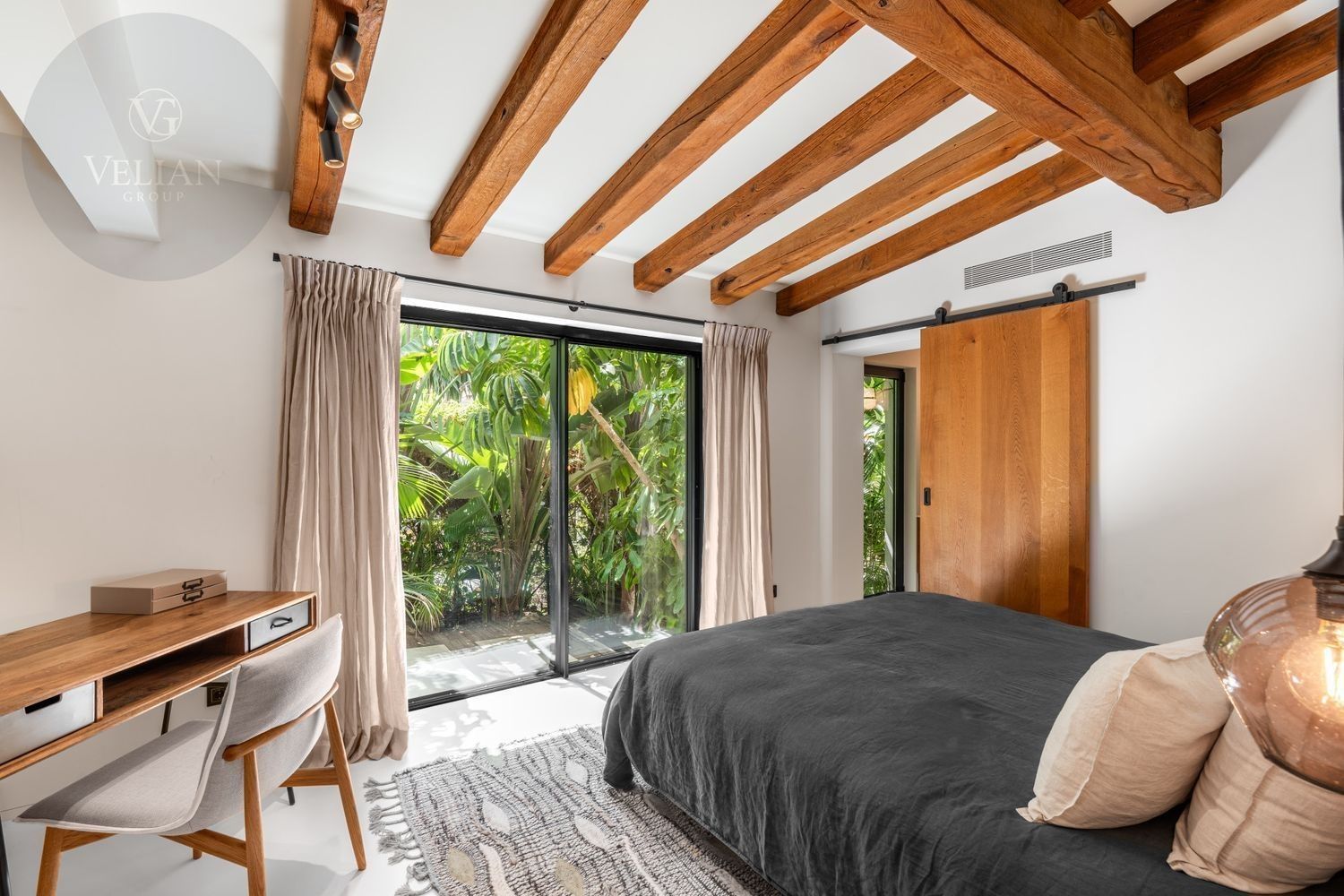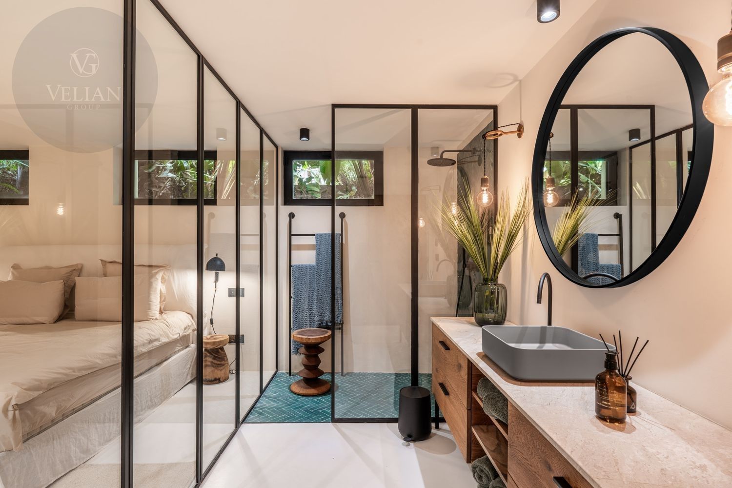 Ubicada en el corazón del Valle del Golf, Nueva Andalucía, conocida por sus destinos de golf de clase mundial, esta villa ofrece una posición privilegiada en primera línea en uno de los mejores campos de la zona. Situada en una exclusiva comunidad cerrada, la villa ofrece un refugio sereno y privado, rodeado por un muro de privacidad y exuberante vegetación. Es rústica y sofisticada, espaciosa y acogedora, cálida y aireada gracias a sus inmensas ventanas y techos altos. Combina cuidadosamente un encanto andaluz con un estilo contemporáneo, y materiales nobles con detalles artísticos.Toda la casa está diseñada para apreciar las vistas de las montañas, el campo de golf Los Naranjos y los exuberantes alrededores desde cualquier espacio. Esto es posible porque cuenta con inmensas ventanas, muchas de las cuales desaparecen en las paredes, creando un efecto de adentro hacia afuera que permite disfrutar simultáneamente de la casa y el paisaje. Esto comienza desde el momento en que entras: La puerta principal es de vidrio, por lo que desde la fachada se puede ver la vista del campo de golf y las montañas al otro lado.A la derecha de la puerta, hay un baño de recepción con una gran ventana hacia el exterior, amueblado con piezas de diseño que parecen obras de arte. En frente, una de las cinco amplias habitaciones que forman parte de esta casa. Desde los primeros pasos, se pueden identificar los hilos comunes en todos los espacios: techos altos a dos aguas con vigas de madera natural que le dan un ambiente acogedor. Los suelos de cemento pulido blanco crean un flujo continuo en toda la propiedad. Las ventanas en los baños permiten que el exterior entre en cada espacio mientras actúan como cortinas para preservar la privacidad.El vestíbulo de entrada conduce a la inmensa sala de estar, donde todo sucede. Su techo es tan alto que incluso hay una hamaca colgante. Hay espacio para todo, incluida una cocina de espacio abierto con una barra para conversaciones inolvidables. Un área de comedor y una sala de estar cómoda son calentadas por una chimenea flotante y un área de TV. La sala de estar se fusiona con la terraza exterior, que tiene un área sombreada para disfrutar de las vistas en cualquier momento del día. Además, se puede ver la piscina de desbordamiento de piedra con amplios escalones que invitan a sumergirse en la primera línea del campo de golf o a ver el atardecer desde el agua.Desde la sala de estar, una amplia puerta de madera conduce al área privada de la suite principal. Cuenta con un baño cómodo con bañera y una zona de ducha acristalada. Ofrece vistas de la exuberante vegetación, lavabos dobles y una combinación artística de materiales con una alfombra distintiva. El vestidor acristalado define sutilmente el espacio sin comprometer el flujo de la habitación ni la luz natural. El área del dormitorio es espaciosa, con vistas al parque y las montañas, y esconde un secreto perfecto para las familias: un rincón con puertas de ratán donde los niños pueden crear su propia casa en miniatura.En el lado opuesto de la sala de estar, hay dos dormitorios en suite más conectados a la segunda sala de estar, un espacio con la comodidad de un salón, muebles perfectos y paredes completamente abiertas al jardín. El espacio exterior es un capítulo propio, con lugares ideales para disfrutar sin fin. Junto a la piscina, una terraza de madera sube hacia la terraza, y algunos de los amplios escalones están cubiertos con cojines, transformándolos en tumbonas para relajarse. Además, el parque cuenta con una inmensa pérgola que alberga una cocina exterior con barbacoa y una gran mesa para reuniones inolvidables. A solo unos pasos, un jacuzzi invita a relajarse bajo las estrellas.De vuelta al interior, el sótano queda por descubrir, albergando una gran lavandería, un baño, un dormitorio ventilado con vestidor y un baño completo acristalado, y uno de los espacios favoritos de la.