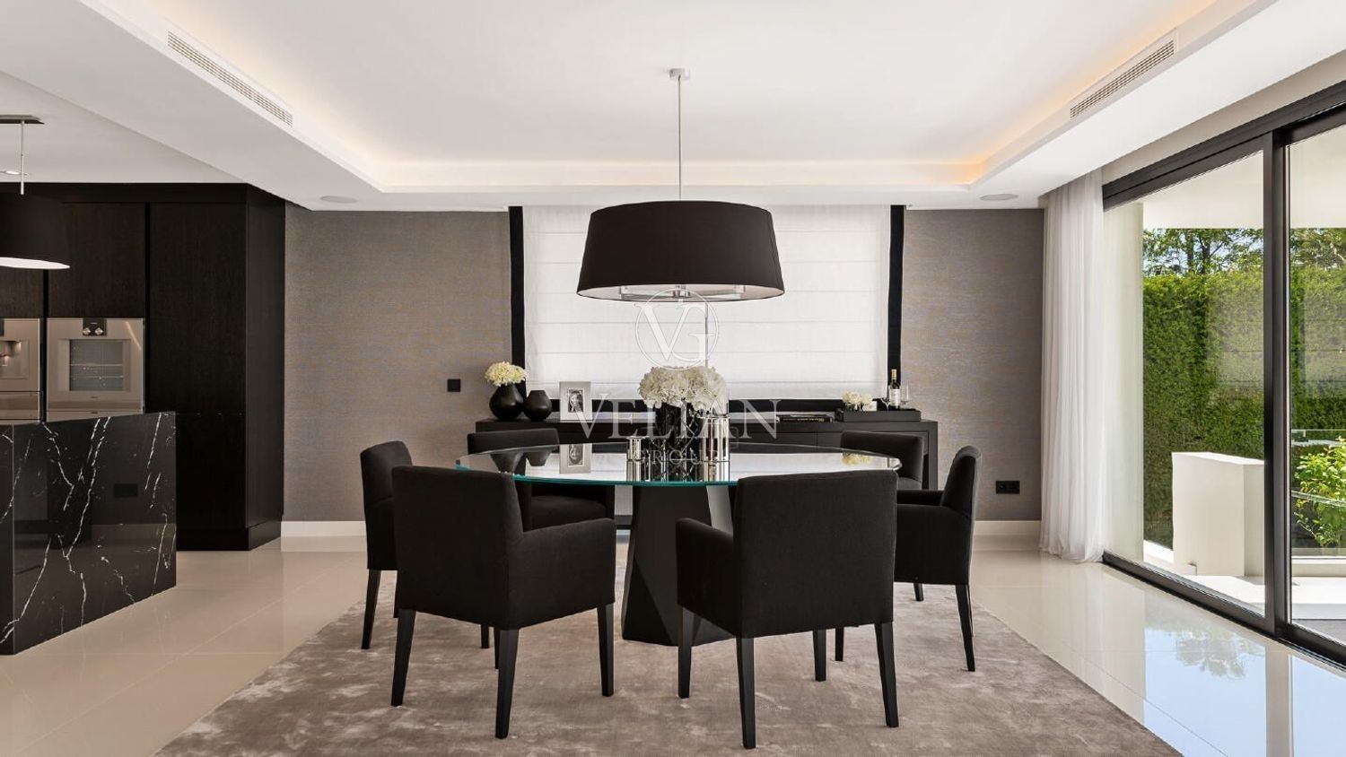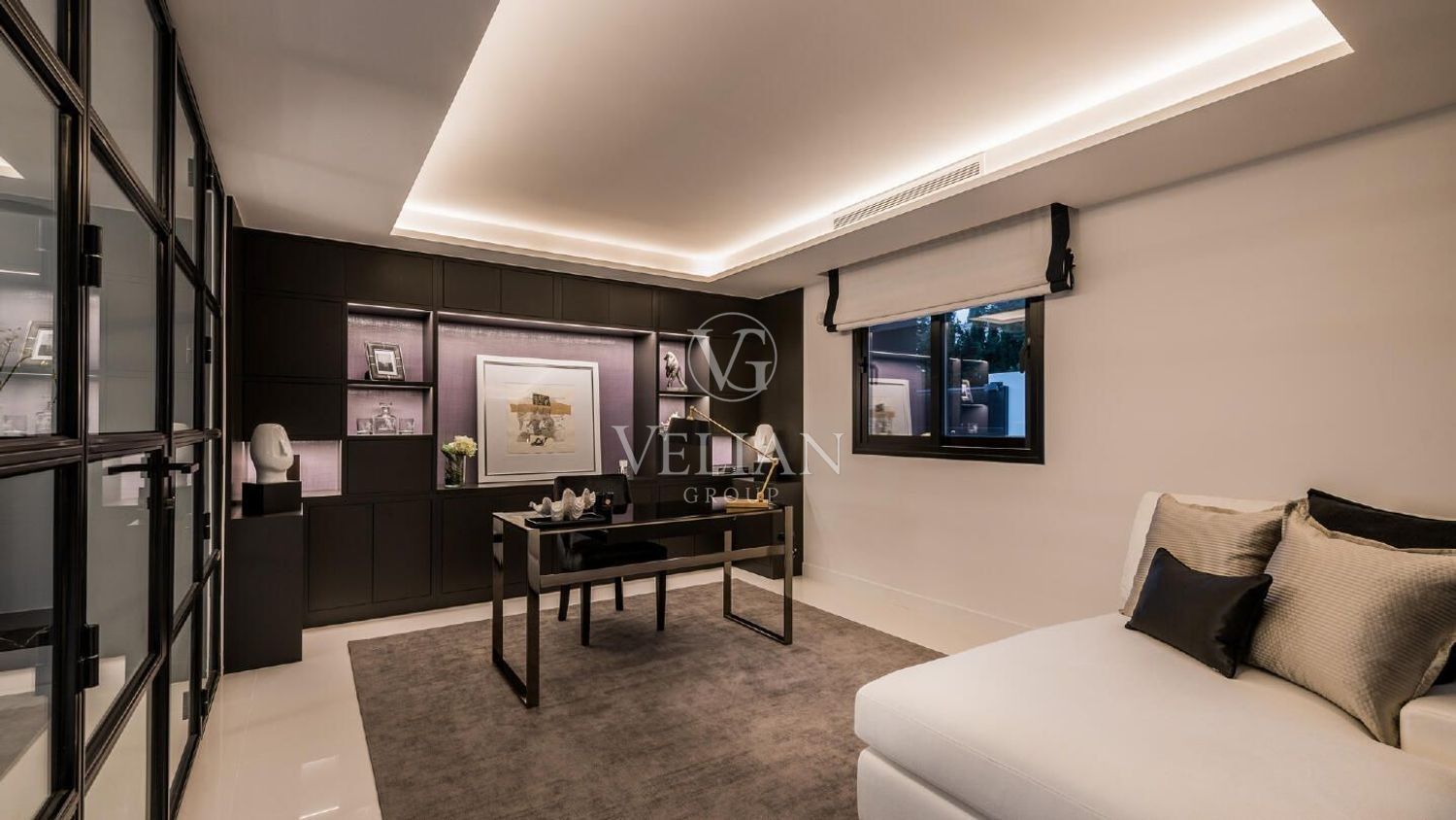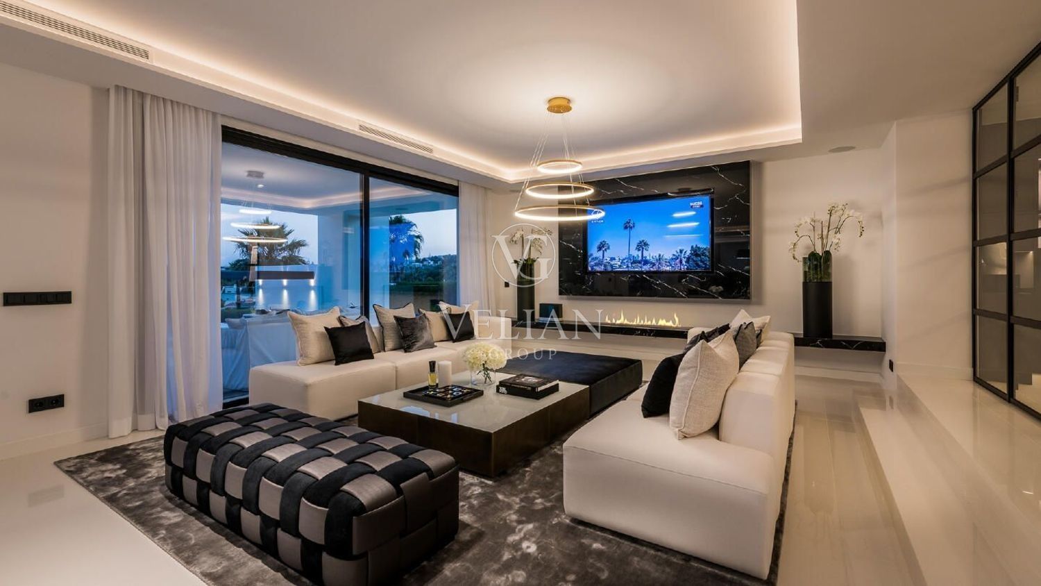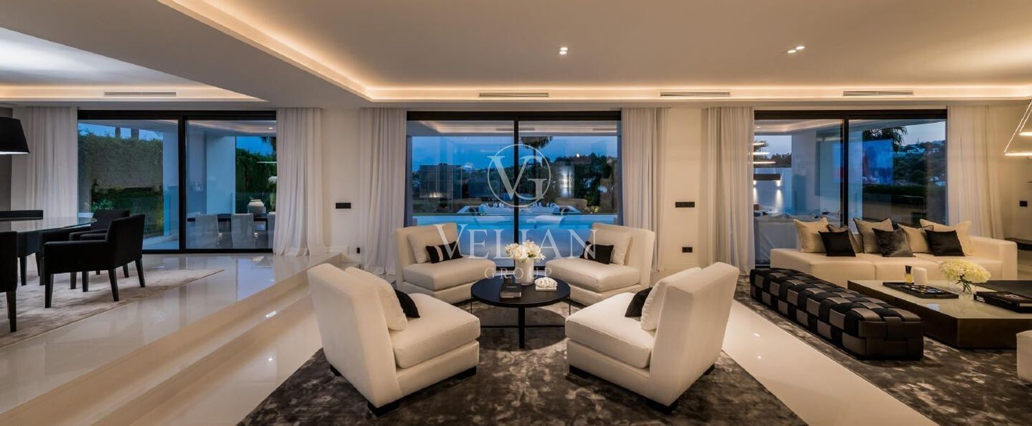 Espectacular villa diseñada por un reconocido arquitecto galardonado, ubicada en un entorno privilegiado en el corazón del Valle del Golf de Nueva Andalucía, una de las zonas residenciales más codiciadas de la Costa del Sol. Esta villa con orientación suroeste se distribuye en tres plantas y consta, en la planta de entrada, de un luminoso recibidor que da paso a un amplio salón diáfano dividido en tres zonas de estar, una cocina de diseño italiano totalmente equipada con electrodomésticos Gaggenau y un comedor. Todo ello conduce a un amplio porche, a los hermosos jardines con una impresionante zona de relax con fuentes, a la amplia piscina climatizada con ducha exterior y amplio espacio para tomar el sol, y a la cocina exterior con barbacoa, todo ello con impresionantes vistas al campo de golf. En la planta superior se encuentra el dormitorio principal con un amplio y elegante armario empotrado, baño en suite y acceso a la terraza para disfrutar de las vistas, incluso desde la bañera; otra suite; dos dormitorios que comparten un baño. Todos los dormitorios cuentan con amplios armarios empotrados de roble. Planta baja: 2 dormitorios más; lavadero; bodega; gimnasio y sala de cine. Construida con las mejores calidades y acabados, incluyendo baños con grifería Dornbracht, entre otros. Ubicación tranquila y tranquila, en una parcela elevada junto al campo de golf. A solo unos minutos en coche del prestigioso colegio internacional Aloha y de Aloha, con su amplia selección de restaurantes, bares y servicios. A solo 5 minutos en coche de Aloha Golf, Las Brisas Golf, La Quinta Golf, Magna Marbella Golf y una amplia selección de pistas de tenis y pádel. A solo 10 minutos en coche de Puerto Banús, la playa y la Milla de Oro de Marbella.