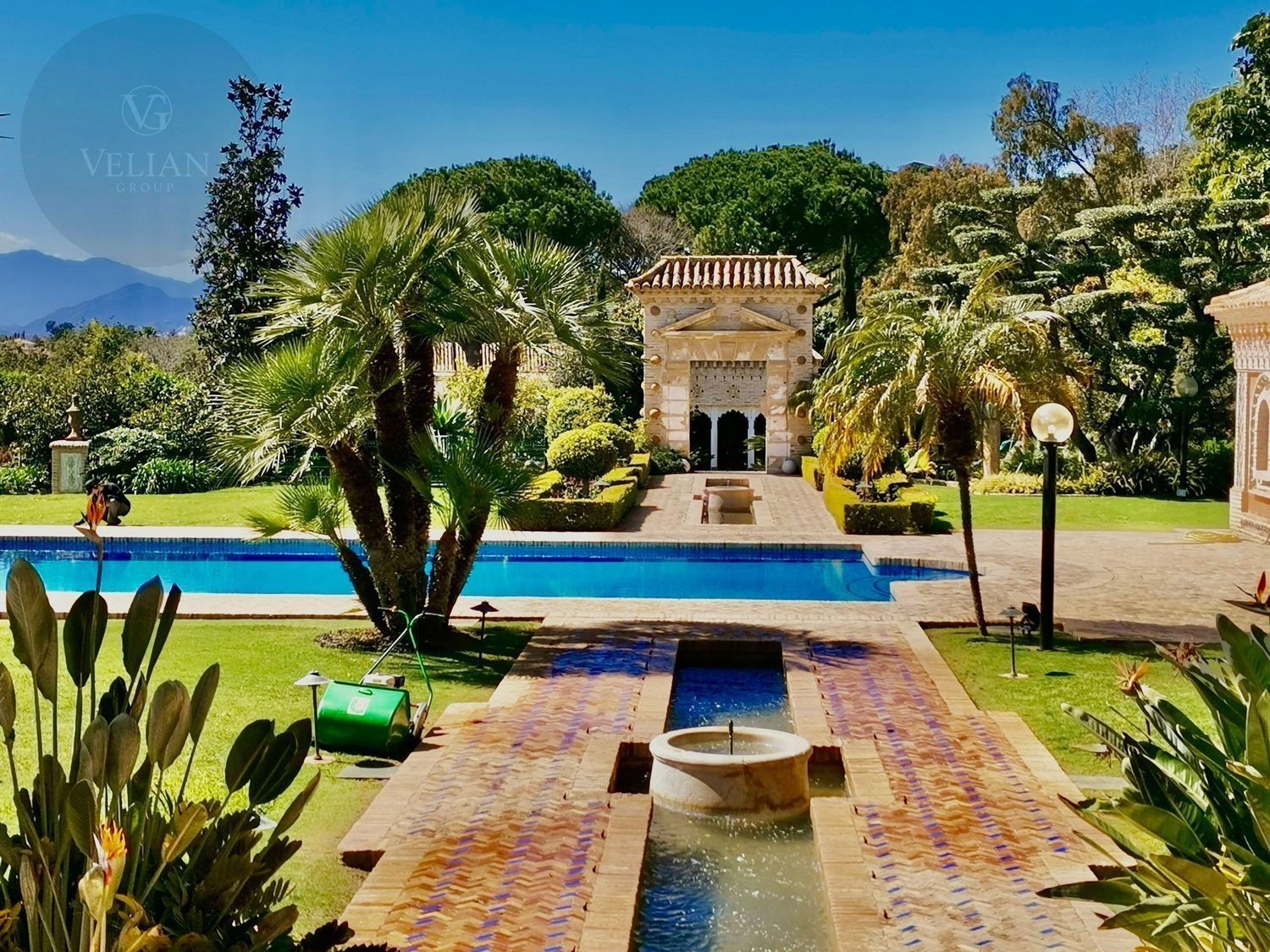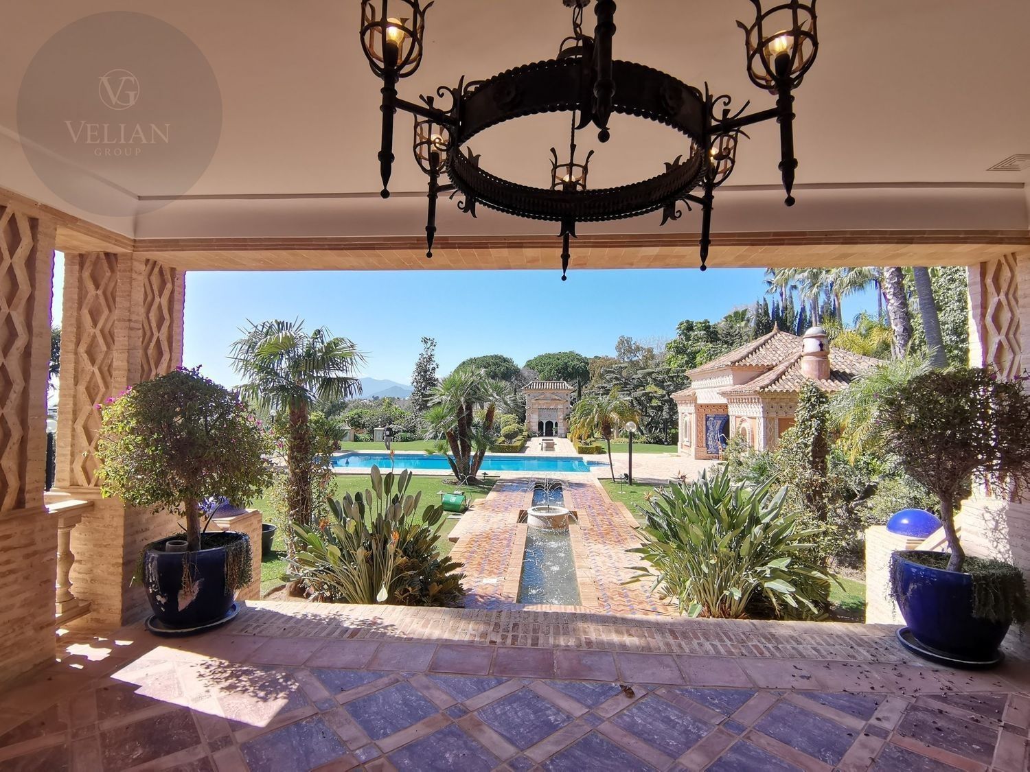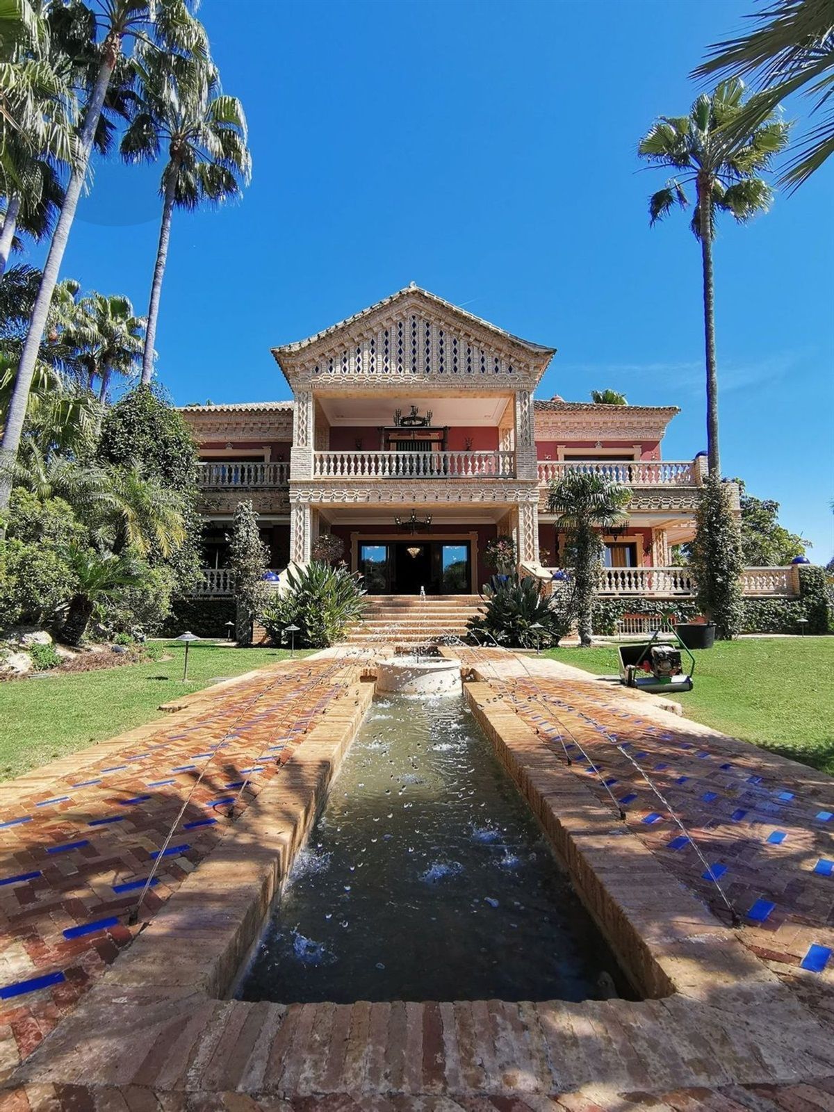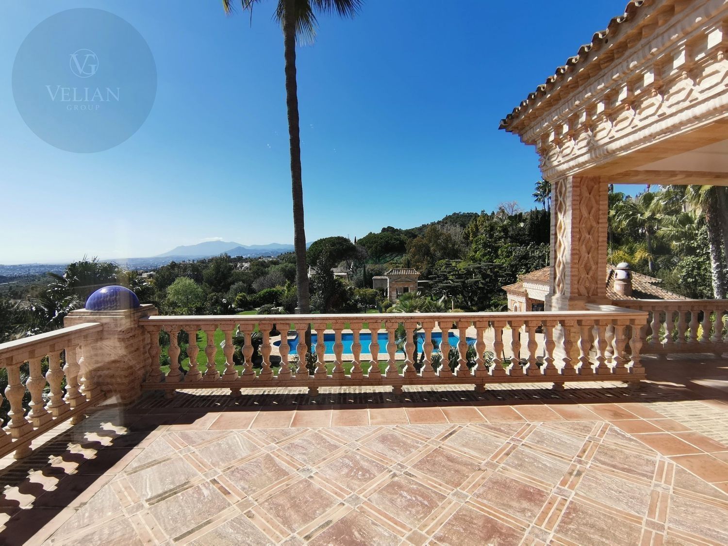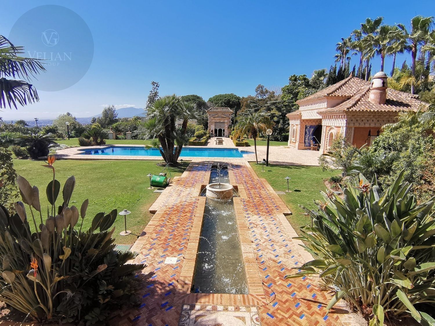 Impresionante Villa en Sierra Blanca, MarbellaR- 2082Esta increíble mansión de arquitectura muy señorial se sitúa a las puertas de Los Picos, en la zona más exclusiva de Sierra Blanca, en Marbella.Se trata de una lujosa propiedad que cuenta con una ubicación y características excepcionales, con obras de arte antiguas únicas.Cuenta con una gigantesca parcela de 4.870m2 rodeada de preciosas zonas verdes y ajardinadas, bien cuidadas y mantenidas. Además, por su posición elevada, goza de vistas 360 grados al mar y montaña, donde podrá disfrutar de bellos amaneceres y atardeceres.La entrada se compone de un impresionante vestíbulo con una cúpula y unas escaleras dobles a cada extremo, y un pasillo que conduce a un amplio salón y comedor con zonas diferenciadas. Desde este salón se podrá observar los paisajes y zona exterior de la casa.La zona exterior de la casa tiene preciosas fuentes andaluzas, una amplia zona de barbacoa con cocina, una enorme piscina, amplias zonas ajardinadas y zona de sauna y baño turco. Además, cuenta con un rinconcito pensado para los más pequeños, con un parque infantil.Esta propiedad dispone de 5 dormitorios con baños en-suite y amplias terrazas, y otros 4 dormitorios.La máster suite cuenta con una gran terraza con vistas panorámicas, un vestidor grande, baño de lujo con bañera hidromasaje y zona de estudio privado.Cuenta con una cocina totalmente equipada con zona de isla y mesa para desayuno, ascensor con acceso a todos los niveles, una sala de cine/discoteca, garaje para 3-4 coches.También dispone de una casa de invitados totalmente independiente, con cocina totalmente equipada, 2 dormitorios con un baño compartido y salón.