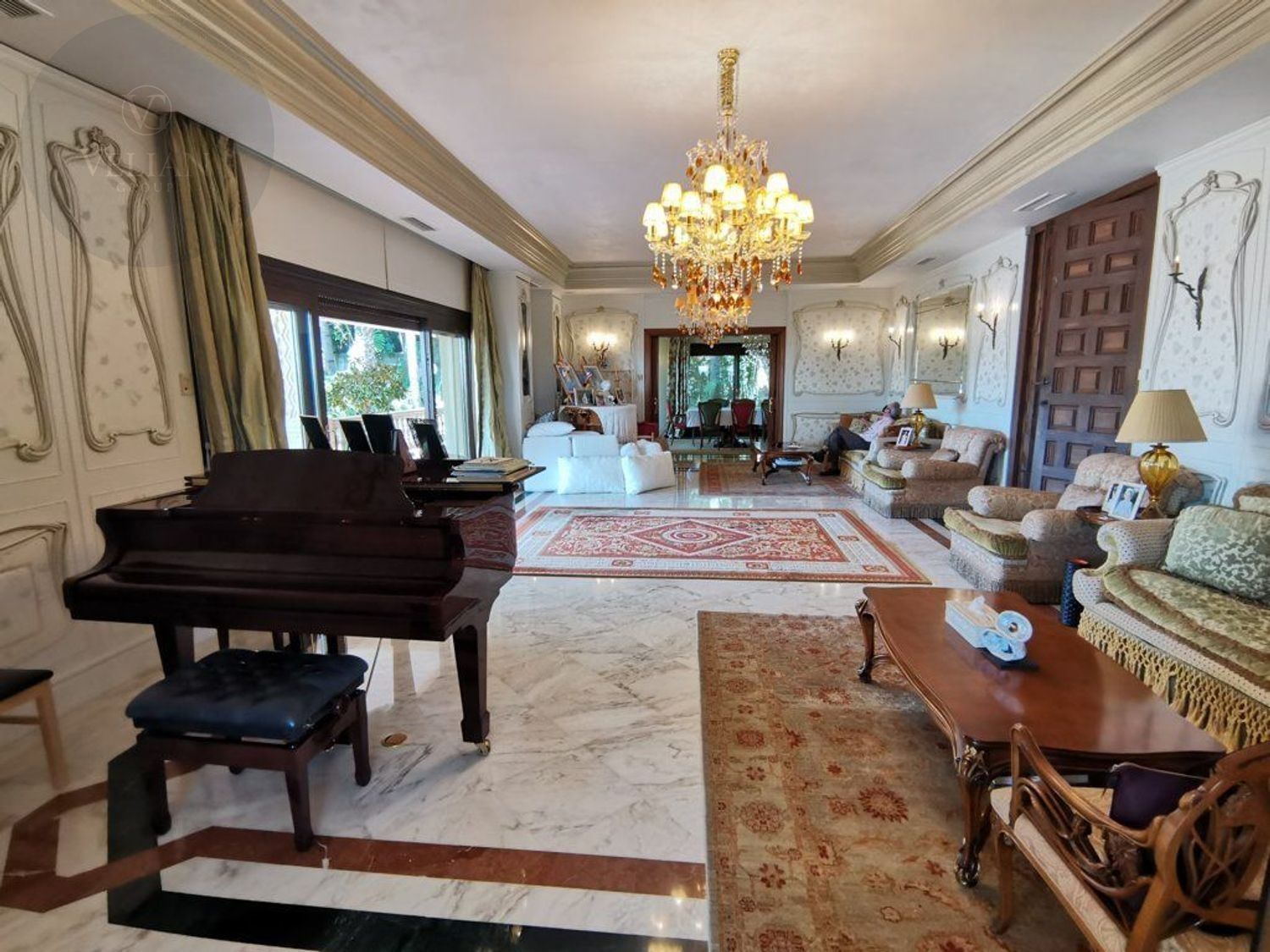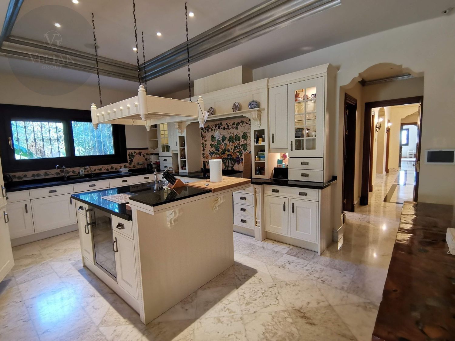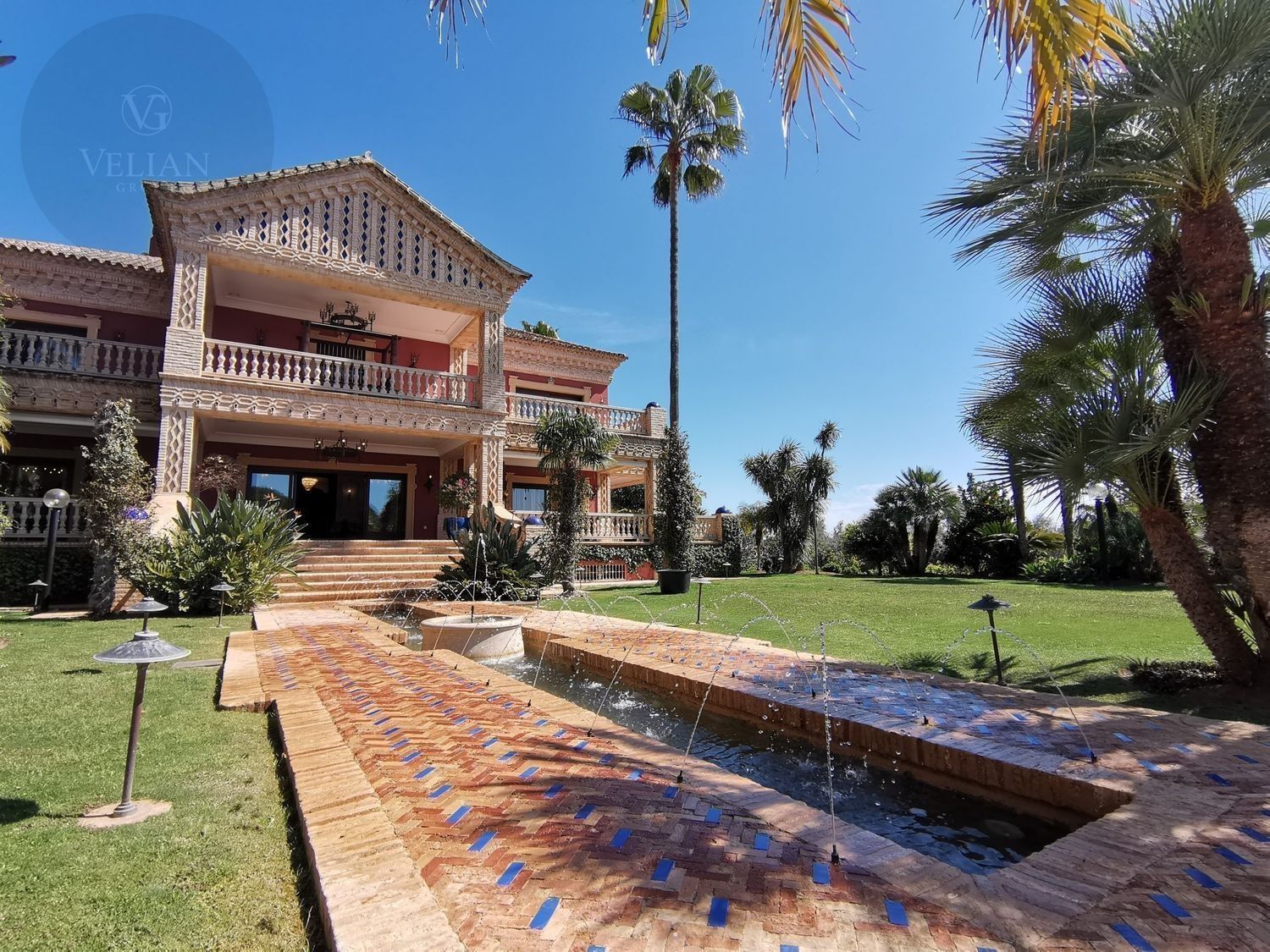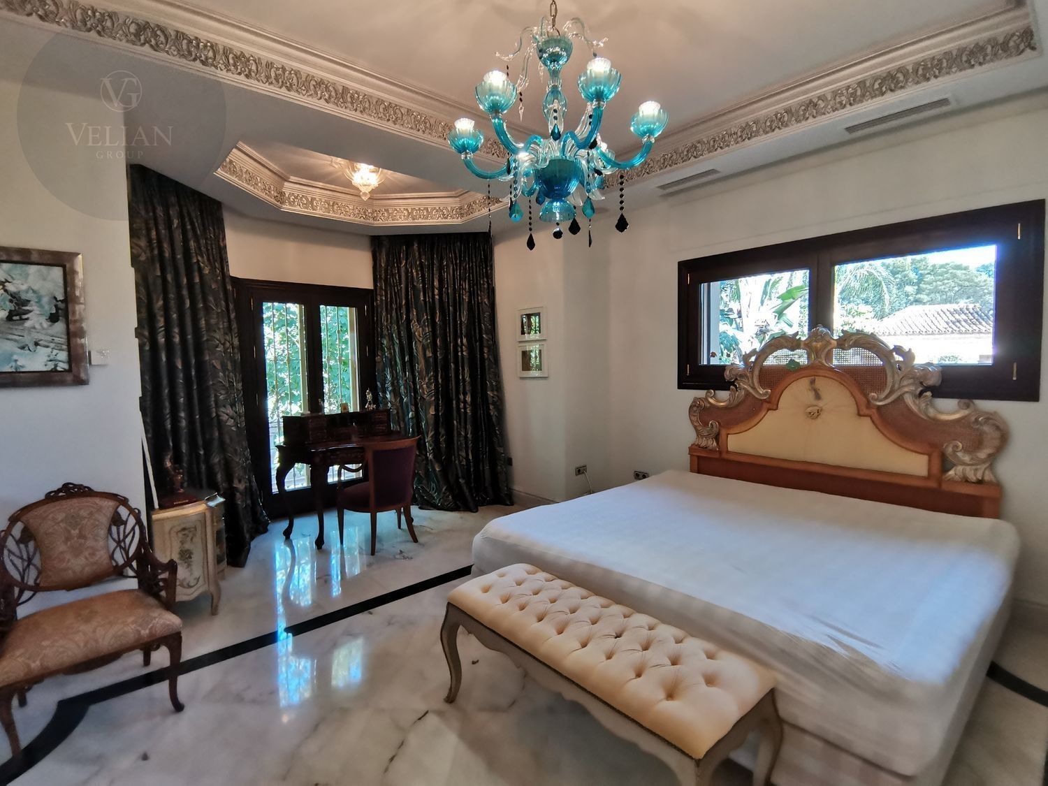 Impresionante Villa en Sierra Blanca, MarbellaR- 2082Esta increíble mansión de arquitectura muy señorial se sitúa a las puertas de Los Picos, en la zona más exclusiva de Sierra Blanca, en Marbella.Se trata de una lujosa propiedad que cuenta con una ubicación y características excepcionales, con obras de arte antiguas únicas.Cuenta con una gigantesca parcela de 4.870m2 rodeada de preciosas zonas verdes y ajardinadas, bien cuidadas y mantenidas. Además, por su posición elevada, goza de vistas 360 grados al mar y montaña, donde podrá disfrutar de bellos amaneceres y atardeceres.La entrada se compone de un impresionante vestíbulo con una cúpula y unas escaleras dobles a cada extremo, y un pasillo que conduce a un amplio salón y comedor con zonas diferenciadas. Desde este salón se podrá observar los paisajes y zona exterior de la casa.La zona exterior de la casa tiene preciosas fuentes andaluzas, una amplia zona de barbacoa con cocina, una enorme piscina, amplias zonas ajardinadas y zona de sauna y baño turco. Además, cuenta con un rinconcito pensado para los más pequeños, con un parque infantil.Esta propiedad dispone de 5 dormitorios con baños en-suite y amplias terrazas, y otros 4 dormitorios.La máster suite cuenta con una gran terraza con vistas panorámicas, un vestidor grande, baño de lujo con bañera hidromasaje y zona de estudio privado.Cuenta con una cocina totalmente equipada con zona de isla y mesa para desayuno, ascensor con acceso a todos los niveles, una sala de cine/discoteca, garaje para 3-4 coches.También dispone de una casa de invitados totalmente independiente, con cocina totalmente equipada, 2 dormitorios con un baño compartido y salón.