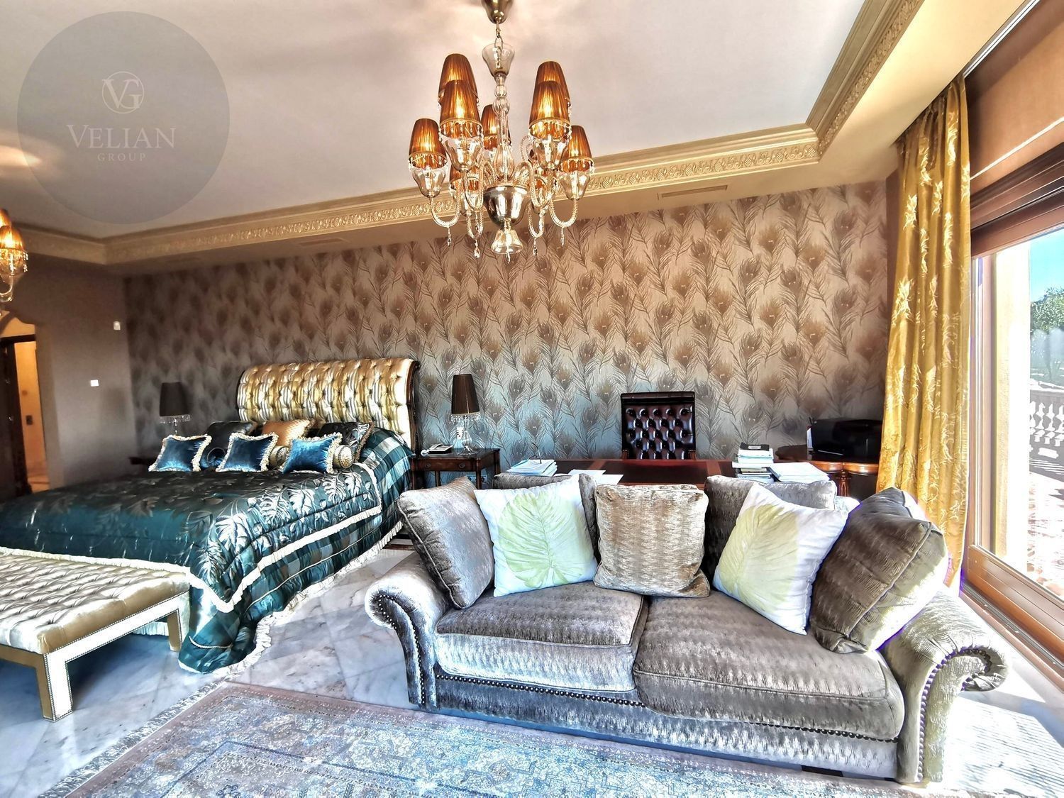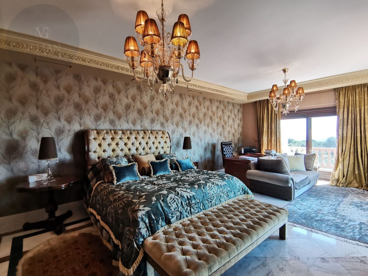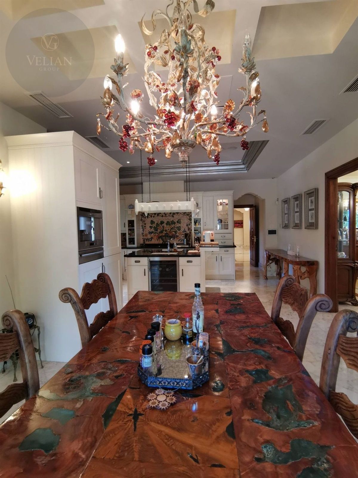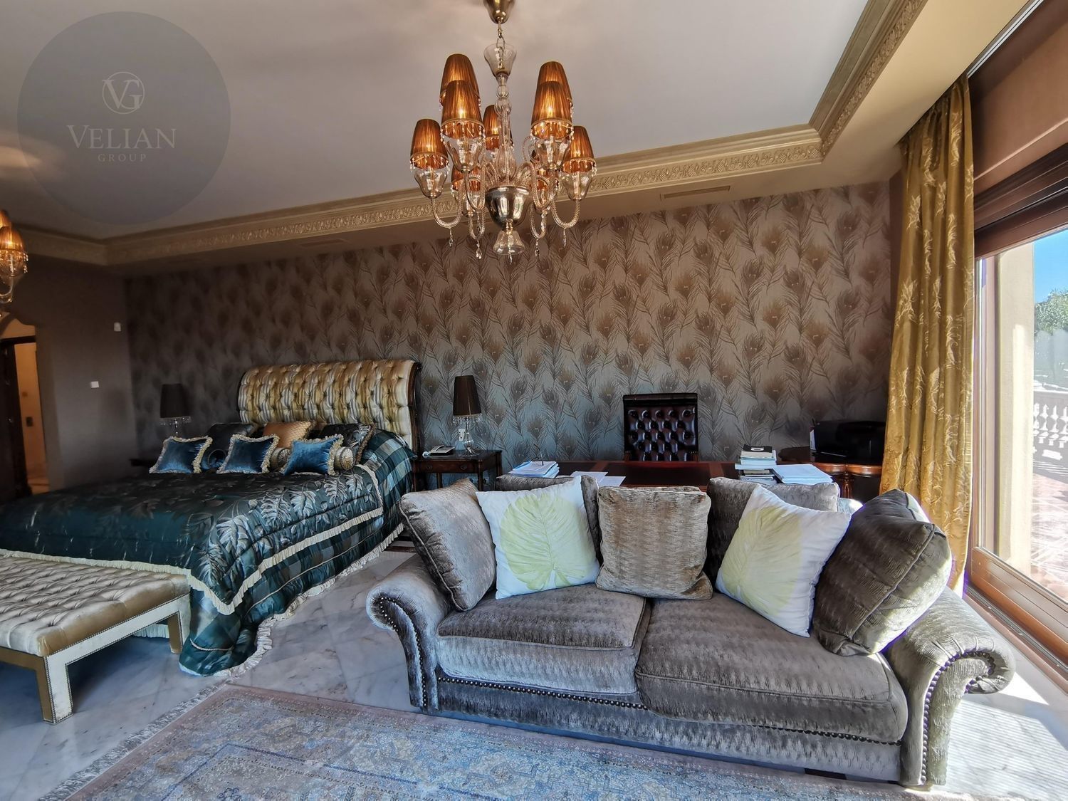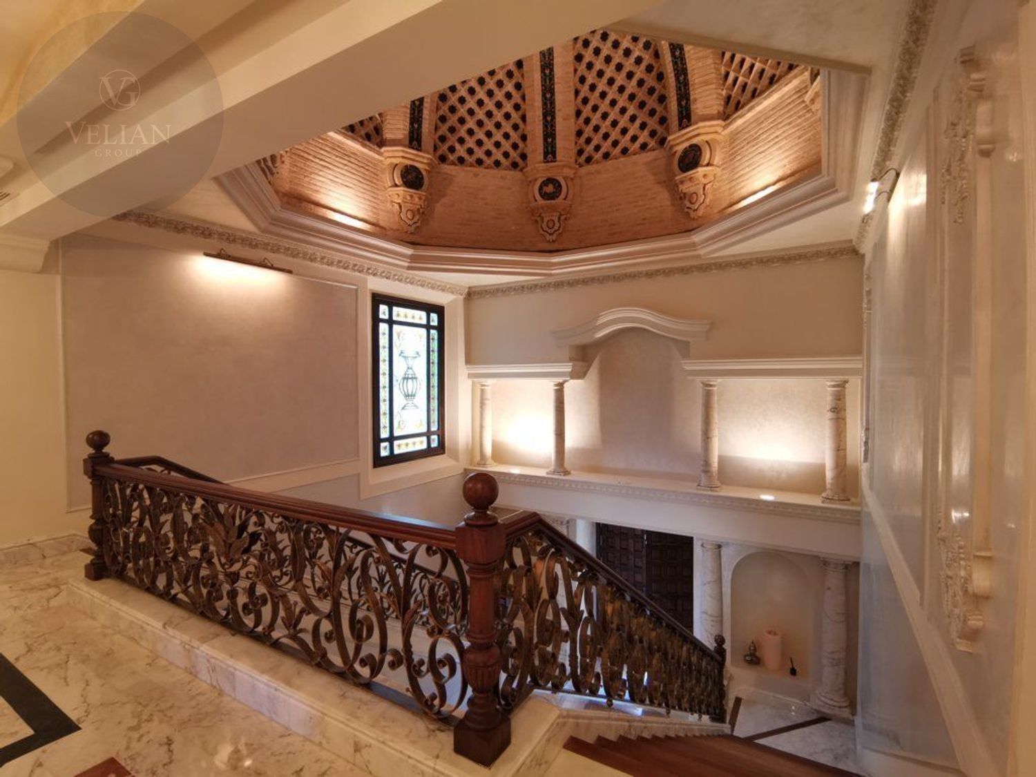 Impresionante Villa en Sierra Blanca, MarbellaR- 2082Esta increíble mansión de arquitectura muy señorial se sitúa a las puertas de Los Picos, en la zona más exclusiva de Sierra Blanca, en Marbella.Se trata de una lujosa propiedad que cuenta con una ubicación y características excepcionales, con obras de arte antiguas únicas.Cuenta con una gigantesca parcela de 4.870m2 rodeada de preciosas zonas verdes y ajardinadas, bien cuidadas y mantenidas. Además, por su posición elevada, goza de vistas 360 grados al mar y montaña, donde podrá disfrutar de bellos amaneceres y atardeceres.La entrada se compone de un impresionante vestíbulo con una cúpula y unas escaleras dobles a cada extremo, y un pasillo que conduce a un amplio salón y comedor con zonas diferenciadas. Desde este salón se podrá observar los paisajes y zona exterior de la casa.La zona exterior de la casa tiene preciosas fuentes andaluzas, una amplia zona de barbacoa con cocina, una enorme piscina, amplias zonas ajardinadas y zona de sauna y baño turco. Además, cuenta con un rinconcito pensado para los más pequeños, con un parque infantil.Esta propiedad dispone de 5 dormitorios con baños en-suite y amplias terrazas, y otros 4 dormitorios.La máster suite cuenta con una gran terraza con vistas panorámicas, un vestidor grande, baño de lujo con bañera hidromasaje y zona de estudio privado.Cuenta con una cocina totalmente equipada con zona de isla y mesa para desayuno, ascensor con acceso a todos los niveles, una sala de cine/discoteca, garaje para 3-4 coches.También dispone de una casa de invitados totalmente independiente, con cocina totalmente equipada, 2 dormitorios con un baño compartido y salón.