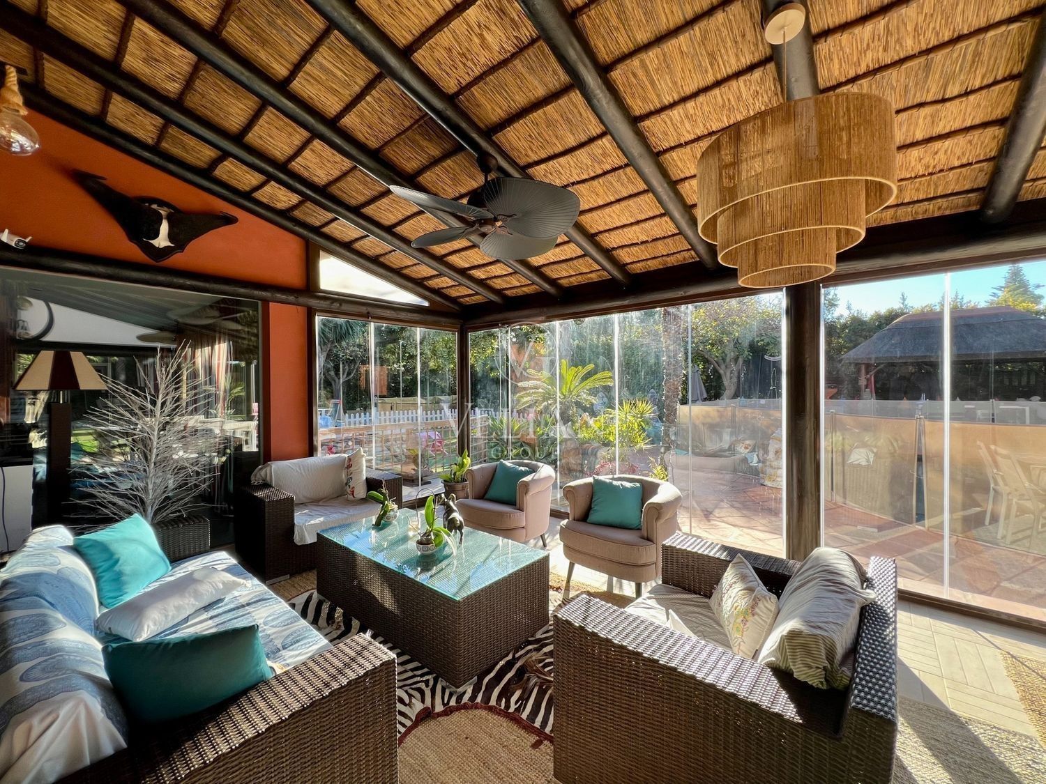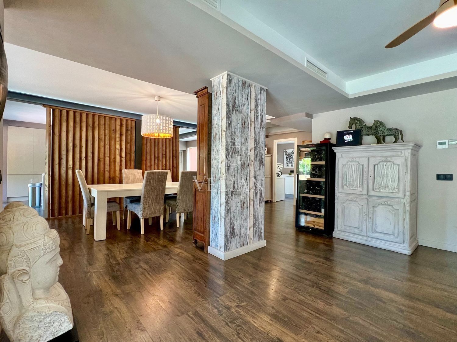 Hermosa villa contemporánea cerca de la playa, situada en la exclusiva zona de Guadalmina Baja / Casasola, una urbanización muy consolidada con buena seguridad y a solo 5 km de Puerto Banús.La propiedad disfruta de un fantástico y muy luminoso salón/comedor con cocina moderna abierta. Enormes puertas correderas dan acceso a un hermoso salón acristalado que crea un gran segundo salón que se puede abrir completamente con mucha facilidad. En este mismo nivel hay dos dormitorios en suite.Una moderna escalera da acceso a la planta superior, donde accedemos al amplio dormitorio principal con vestidor y baño en suite. También hay, en este nivel, otro dormitorio de buen tamaño con baño, y ambos dormitorios tienen amplias terrazas con vistas al jardín maduro muy bien cuidado y a la piscina.La propiedad cuenta con sistema de riego automático, sistema de iluminación LED de alta calidad en el jardín, bodega, garaje doble, puertas automáticas y muchos extras más que se apreciarán al visitar esta propiedad exclusiva.