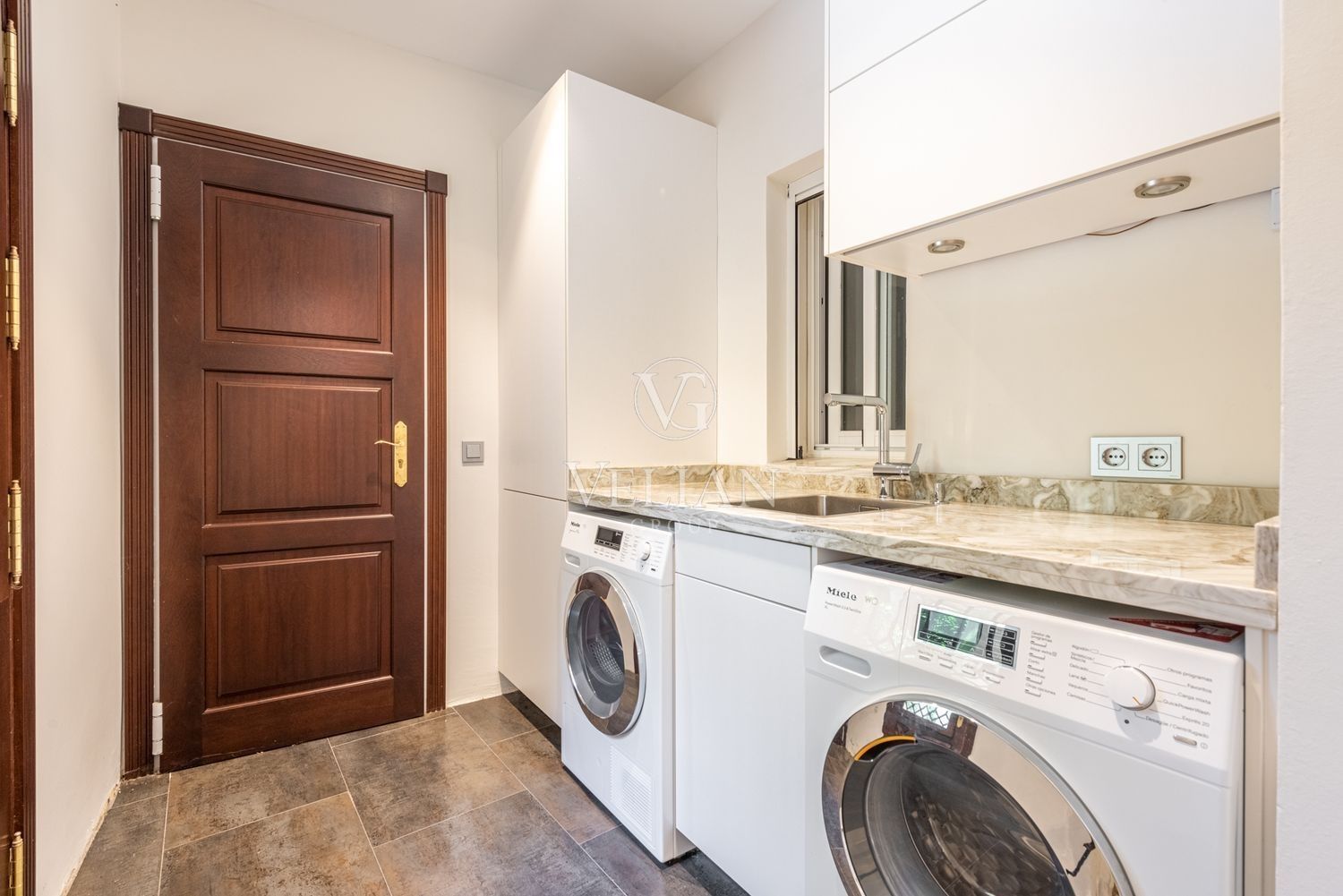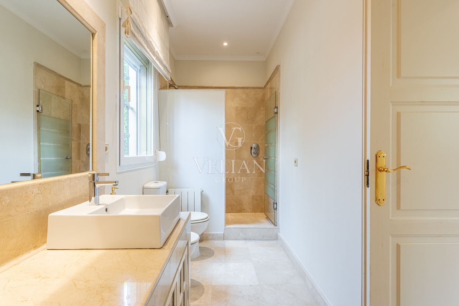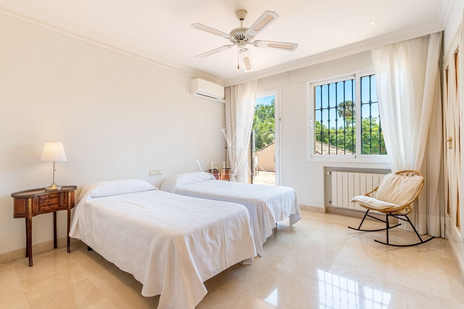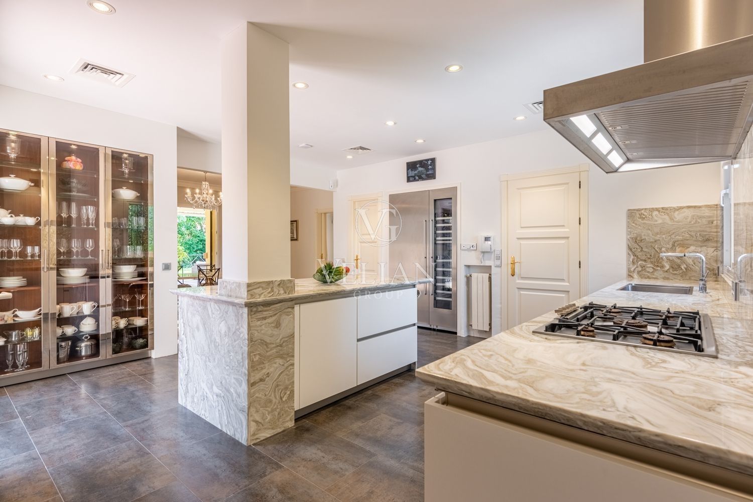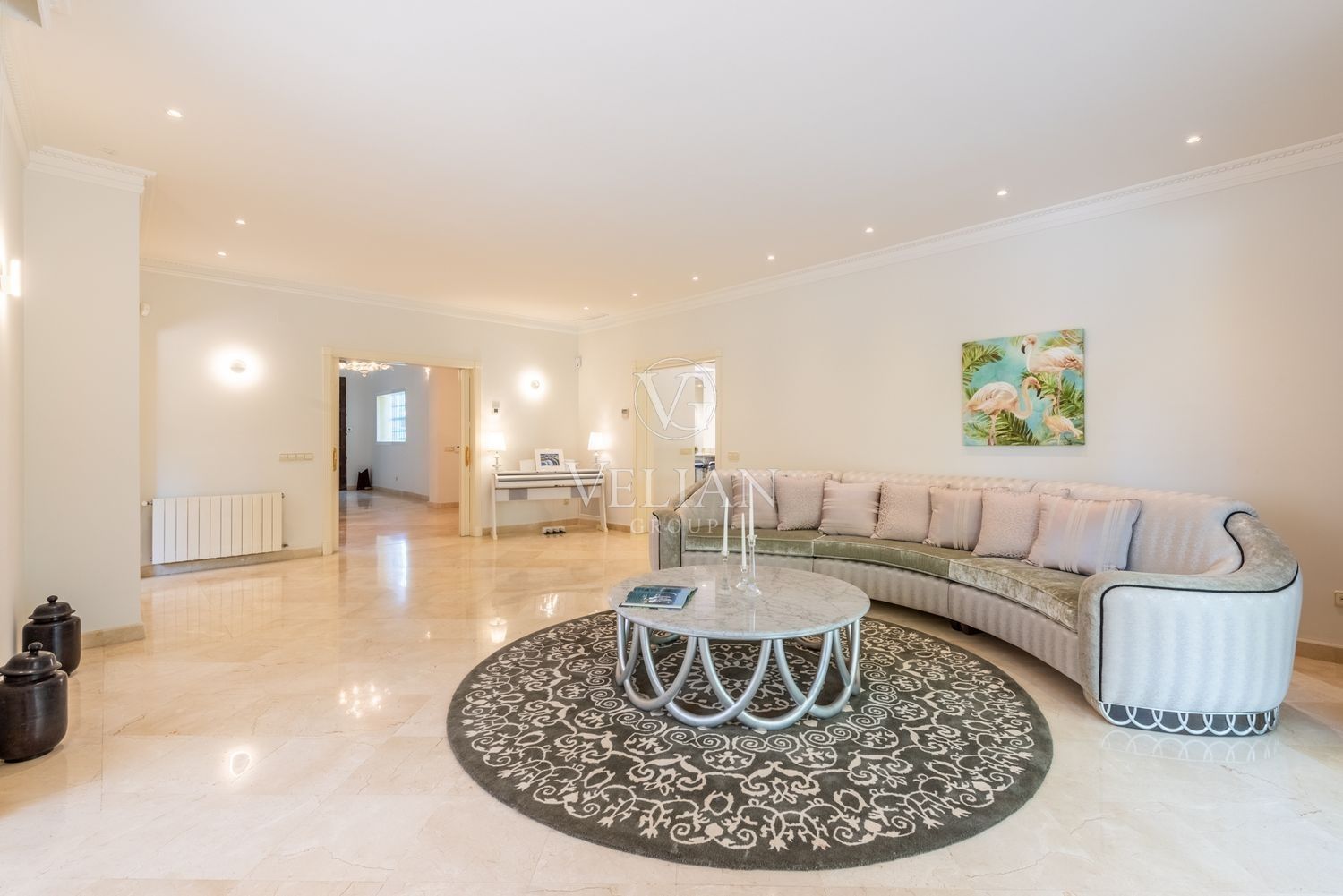 Elegante, luminosa y privada villa orientada al sur ubicada en la prestigiosa zona residencial de Casasola-Guadalmina Baja, en la Nueva Milla de Oro. Esta zona bien establecida es bien conocida por su discreción, lujosas villas y seguridad las 24 horas. Una propiedad elegante que emana un ambiente tranquilo rodeado de un jardín tropical bellamente diseñado y de bajo mantenimiento. Esta llamativa villa está a solo 300 metros del mar Mediterráneo, y a poca distancia a pie del legendario campo de golf de Guadalmina.La deslumbrante vivienda se ha construido sobre una parcela de 1.140m2 y ofrece una superficie construida de 664,47m2, distribuida en 3 plantas. La superficie construida de 664,47m2 tiene 497,62m2 de interior, 71,85m2 de terrazas cubiertas y descubiertas y 95m2 de piscina. Construida en 2001 por su propietario, que prestó especial atención a cada detalle, esta espaciosa propiedad ha sido construida y terminada con altos estándares de calidad. Esta en excelentes condiciones.Esta villa de 3 niveles y 5 dormitorios está rodeada por un magnífico jardín exuberante y privado, y ofrece una gran piscina privada ubicada alrededor de la propiedad, abrazando la villa, permitiéndole disfrutar de su belleza, así como de su frescura. La propiedad también tiene un garaje para 2 coches y espacio para 4.Al entrar en el espacioso vestíbulo de entrada, uno puede sentir inmediatamente la calma que irradia esta casa y apreciar el espléndido jardín tropical. Este exquisito vestíbulo de techo alto conduce a un gran salón amplio y luminoso que cuenta con un mar de luz natural. En el ala oeste, el gran salón da acceso a una cómoda sala de estar con una acogedora chimenea, para un poco más de calidez y relajación durante los días más fríos del año.En el ala este, la propiedad muestra un espacioso comedor que conecta directamente con una cocina abierta, recientemente renovada, y totalmente equipada con electrodomésticos de lujo Gaggenau, una amplia isla con cómodos taburetes, una despensa independiente y un área de lavandería. La lujosa cocina Siematic da acceso a una luminosa y acogedora terraza para desayunar y ofrece una entrada independiente para los empleados domésticos y acceso al dormitorio en suite para el servicio.El gran salón y el comedor tienen acceso directo a una soleada terraza cubierta orientada al sur, que muestra un comedor al aire libre, barbacoa y zonas de descanso. Puede disfrutar libremente del opulento e inmaculado jardín y de la piscina con la máxima privacidad. Junto a la piscina, bajo los árboles del jardín tropical, hay una zona para sentarse y mucho espacio para tomar el sol.Además, la planta principal presenta un amplio dormitorio principal con un gran vestidor privado y baño en suite con bañera de hidromasaje y ducha independiente. Esta suite también ofrece acceso directo a una gran terraza orientada al sur, a la tentadora piscina para un refrescante chapuzón matutino y al floreciente jardín soleado. Esta planta también incluye un aseo de invitados y un amplio dormitorio de invitados con baño en suite con bañera y ducha independiente.Una luminosa escalera de mármol con techo de doble altura nos lleva al primer piso donde disfrutamos de la villa de dos amplios dormitorios, ambos con baños en suite. Estas habitaciones voluminosas y cómodas comparten una gran terraza orientada al sur con vistas a la piscina y al frondoso jardín. Lugar ideal para leer, disfrutar del atardecer con una copa de vino y soñar despierto.Al bajar al sótano, tendrá mucho espacio para el entretenimiento, que incluye una sala de juegos, una sala de cine y un rincón de gimnasio donde disfrutará de la luz natural que entra por las ventanas de la piscina. Esta planta también está equipada con una amplia zona de almacenamiento.