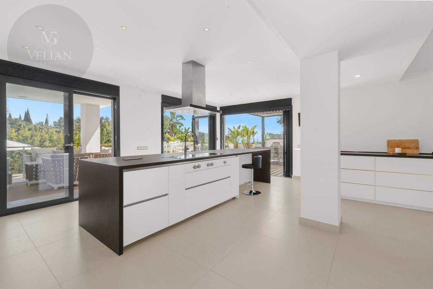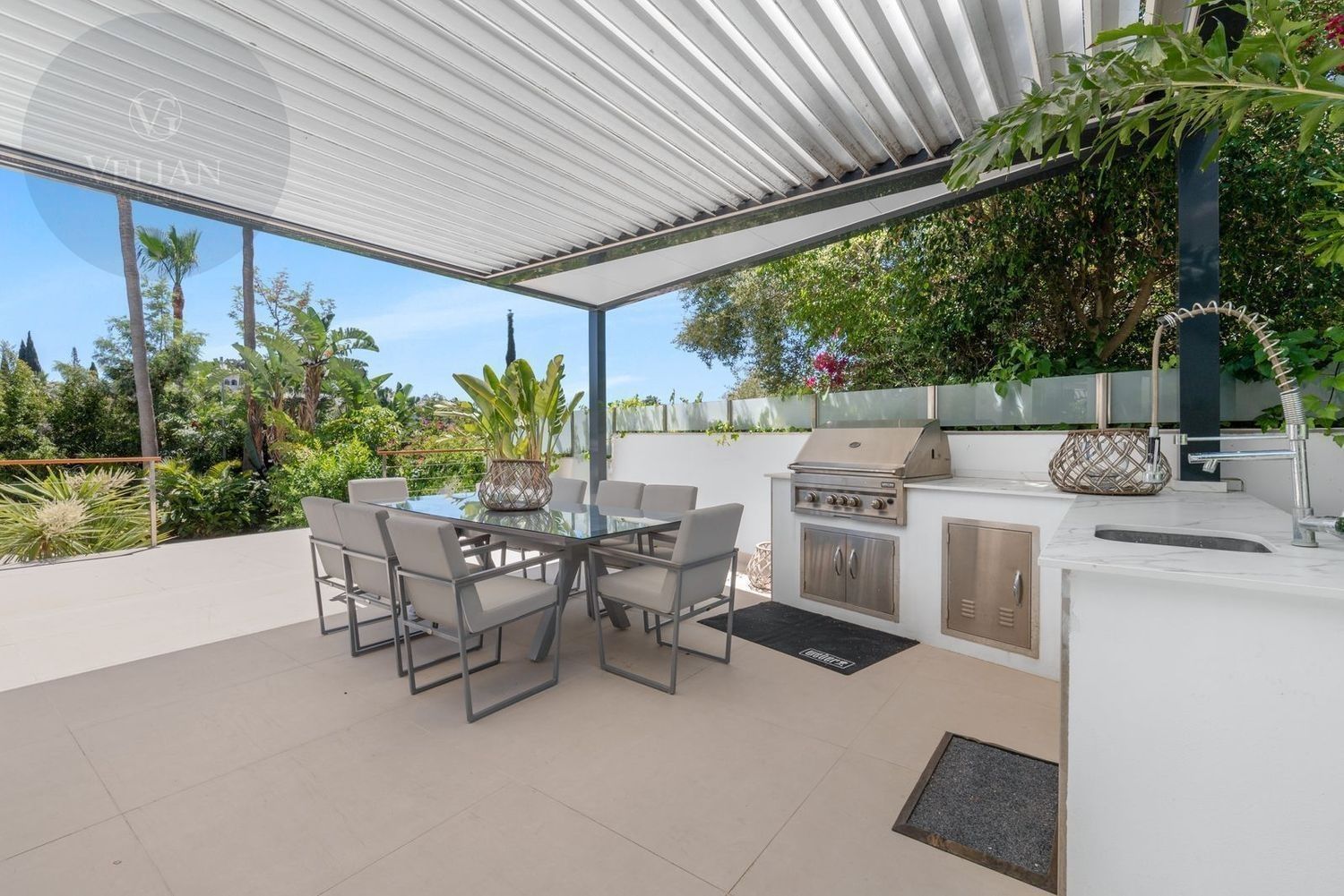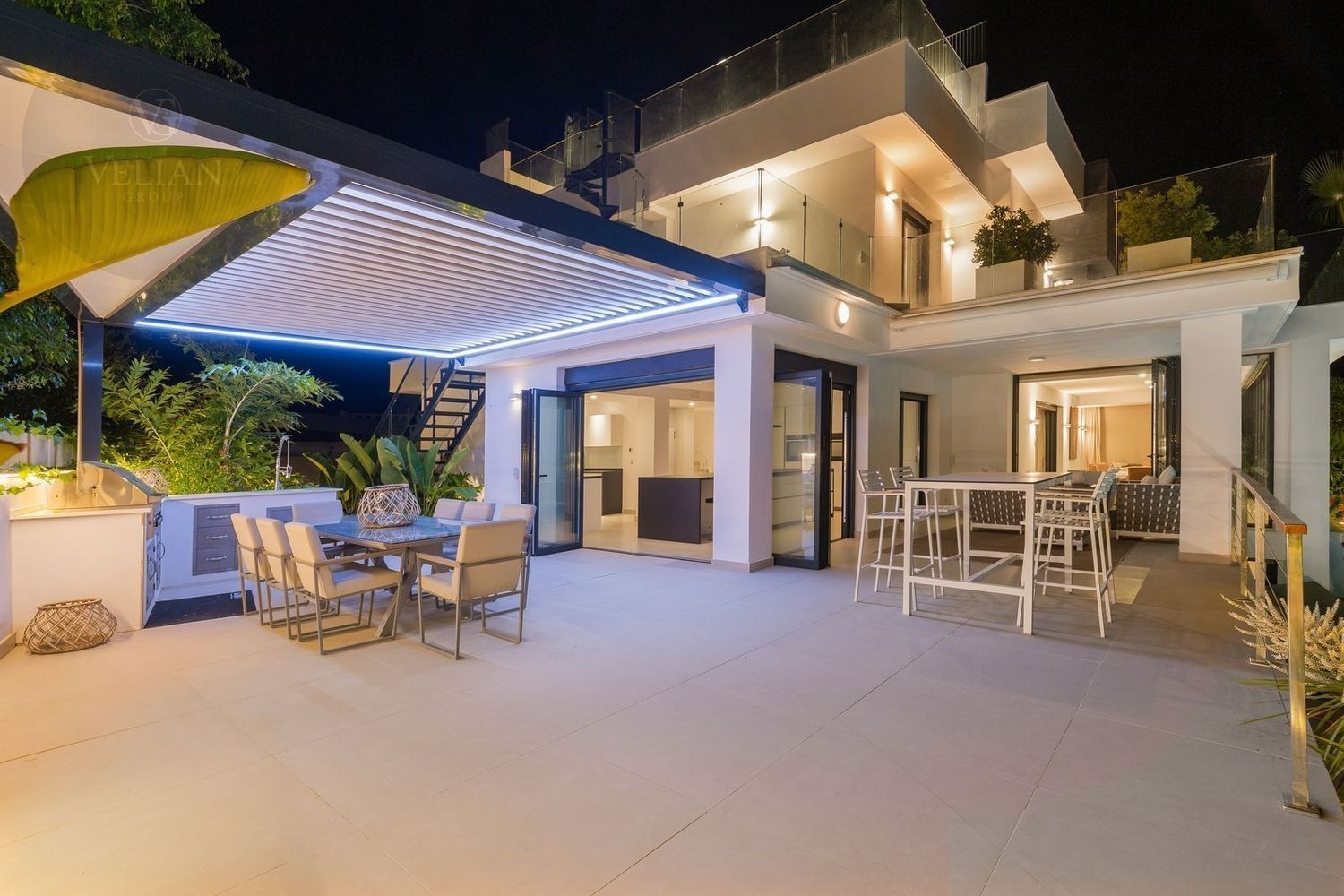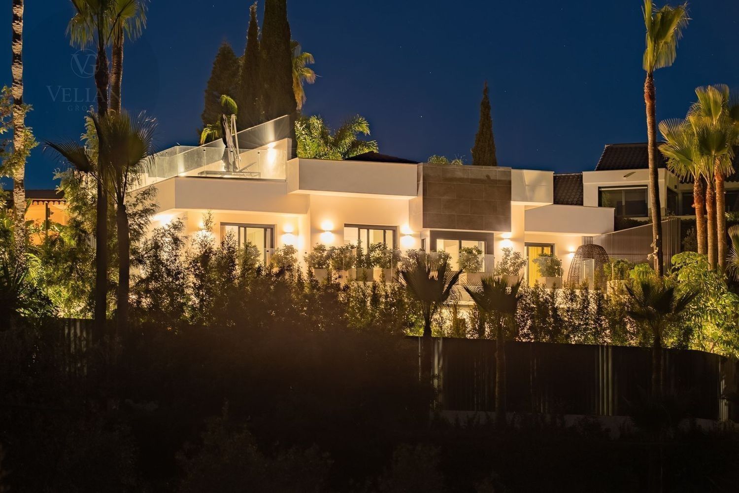 Impresionante villa, situada en la muy atractiva comunidad de El Rosario con seguridad las 24 horas. La villa está situada en una calle muy tranquila sin salida en la parte superior de un camino privado. Convenientemente enclavada cerca de las mejores playas de Marbella tiene a su alrededor una amplia variedad de restaurantes, centros comerciales, campos de golf, clubes deportivos, supermercados y todos los demás servicios accesibles con total facilidad. Esta villa se alza majestuosamente en una parcela elevada, soleada y de generosas dimensiones, rodeada de abundantes palmeras maduras y una amplia variedad de plantas y arbustos. Toda una serie de extras y acabados de alto nivel le esperan en esta maravillosa villa. Con preciosas vistas al mar y a la montaña desde la terraza, la propiedad posee una incomparable sensación de paz, privacidad y seguridad.Un camino privado con puertas automáticas le conduce a la gran entrada de la villa. Encontrará una impresionante cascada que le dará la bienvenida, y más adelante un parking cubierto con sitio para 2 vehículos grandes. La villa se distribuye en 3 niveles.Al entrar, a través de sólidas puertas dobles de seguridad de madera hay un hermoso pasillo con mucha luz natural, brindada por doble altura del techo y la ventana que posee arriba. El pasillo de planta abierta conduce directamente a un amplio salón y comedor, ofreciendo una sensación de espacio, lujo y confort. Puertas correderas dobles y puertas de cristal ocultas conducen a un comedor interior-exterior extra grande ideal para cenas o simplemente para relajarse con amigos y familiares con vistas a la piscina y terraza. Esta magnífica habitación está bañada en luz creando un flujo natural a las zonas exteriores. Todas las ventanas y puertas aquí tienen persianas eléctricas, y enormes puertas plegables de cristal que se abren directamente a la zona de la piscina y a la terraza lateral.La planta baja posee un dormitorio doble, con baño en suite, muy luminoso con una ventana de cristal de longitud completa con vistas a la parte delantera y la fuente de agua. También podemos encontrar un baño de visitas, idealmente situado cerca del pasillo de entrada. La villa dispone de una cocina grande y abierta con una enorme nevera, máquina de hielo, dos hornos Neff integrados (1 doble), cafetera Neff integrada y zona separada para la preparación de alimentos. Esta cocina totalmente equipada tiene una gran isla con taburetes de bar perfecto para socializar. Toda la cocina se abre a través de puertas correderas y plegables de cristal y conduce a una zona de entretenimiento al aire libre totalmente equipada y zona de comedor con cocina de verano y barbacoa. Aquí encontrará un montón de terrazas para disfrutar de cenas al aire libre con protección solar retráctil. La zona de barbacoa también se beneficia de un techo automatizado de apertura / cierre con amplia iluminación incorporada. Desde aquí se puede pasar a través de una selección de hermosas plantas tropicales a una escalera exterior que conduce a las terrazas superiores y solárium.La piscina climatizada tiene sol todo el día, rodeada de una zona de solárium para tumbarse al sol relajadamente. La piscina es de agua salada, también posee ducha y una impresionante cascada. Esta zona es ideal para tomar el sol con fácil acceso a la villa. Alrededor de la piscina podrá disfrutar de las plantas tropicales y palmeras y canto de los pájaros dando una sensación de paraíso. Hay una sección de jardín con árboles frutales y huerto.Las escaleras a la 1 ª planta son la imagen de la elegancia con una ventana de piso a techo e iluminada por una lámpara de araña con hermosa caída. Arriba, la villa ofrece dos habitaciones dobles muy amplias y luminosas a las que se accede a través de un largo pasillo, ambas con sus propios sistemas de entrada con teclado, baños privados y acceso directo a las cálidas terrazas.