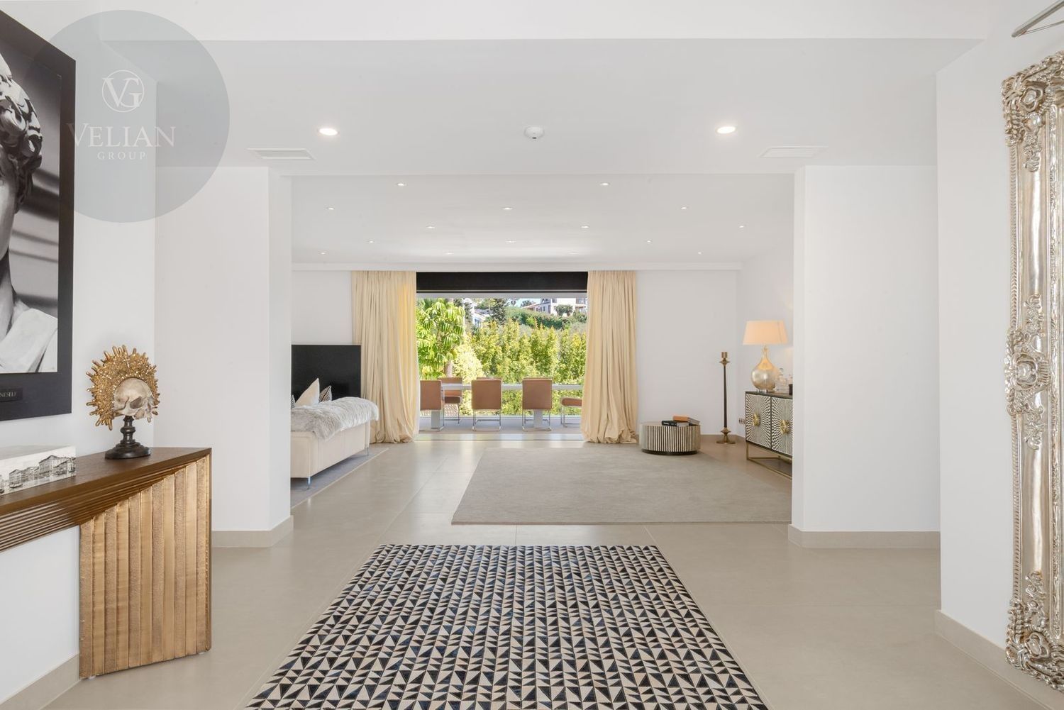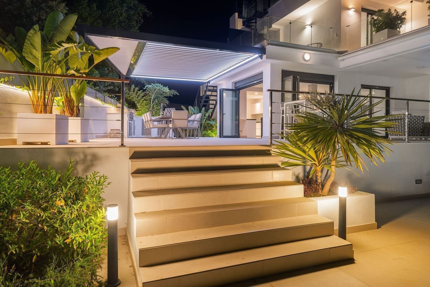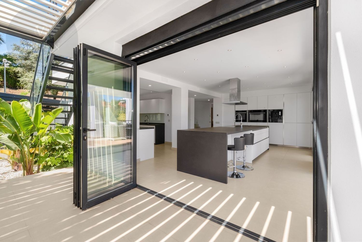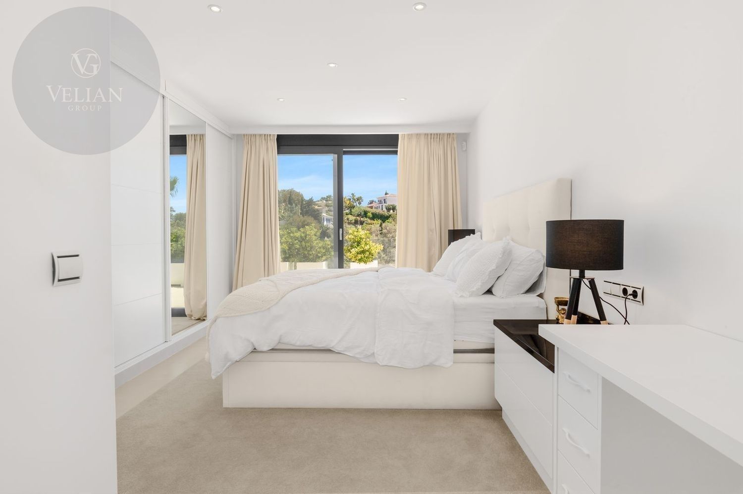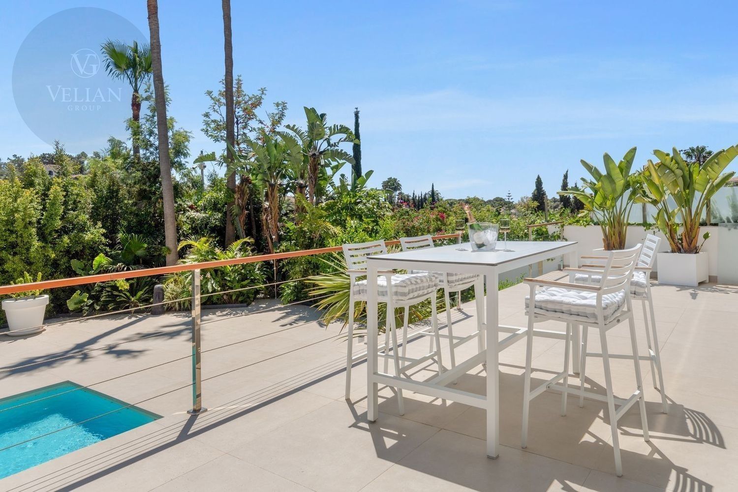 Impresionante villa, situada en la muy atractiva comunidad de El Rosario con seguridad las 24 horas. La villa está situada en una calle muy tranquila sin salida en la parte superior de un camino privado. Convenientemente enclavada cerca de las mejores playas de Marbella tiene a su alrededor una amplia variedad de restaurantes, centros comerciales, campos de golf, clubes deportivos, supermercados y todos los demás servicios accesibles con total facilidad. Esta villa se alza majestuosamente en una parcela elevada, soleada y de generosas dimensiones, rodeada de abundantes palmeras maduras y una amplia variedad de plantas y arbustos. Toda una serie de extras y acabados de alto nivel le esperan en esta maravillosa villa. Con preciosas vistas al mar y a la montaña desde la terraza, la propiedad posee una incomparable sensación de paz, privacidad y seguridad.Un camino privado con puertas automáticas le conduce a la gran entrada de la villa. Encontrará una impresionante cascada que le dará la bienvenida, y más adelante un parking cubierto con sitio para 2 vehículos grandes. La villa se distribuye en 3 niveles.Al entrar, a través de sólidas puertas dobles de seguridad de madera hay un hermoso pasillo con mucha luz natural, brindada por doble altura del techo y la ventana que posee arriba. El pasillo de planta abierta conduce directamente a un amplio salón y comedor, ofreciendo una sensación de espacio, lujo y confort. Puertas correderas dobles y puertas de cristal ocultas conducen a un comedor interior-exterior extra grande ideal para cenas o simplemente para relajarse con amigos y familiares con vistas a la piscina y terraza. Esta magnífica habitación está bañada en luz creando un flujo natural a las zonas exteriores. Todas las ventanas y puertas aquí tienen persianas eléctricas, y enormes puertas plegables de cristal que se abren directamente a la zona de la piscina y a la terraza lateral.La planta baja posee un dormitorio doble, con baño en suite, muy luminoso con una ventana de cristal de longitud completa con vistas a la parte delantera y la fuente de agua. También podemos encontrar un baño de visitas, idealmente situado cerca del pasillo de entrada. La villa dispone de una cocina grande y abierta con una enorme nevera, máquina de hielo, dos hornos Neff integrados (1 doble), cafetera Neff integrada y zona separada para la preparación de alimentos. Esta cocina totalmente equipada tiene una gran isla con taburetes de bar perfecto para socializar. Toda la cocina se abre a través de puertas correderas y plegables de cristal y conduce a una zona de entretenimiento al aire libre totalmente equipada y zona de comedor con cocina de verano y barbacoa. Aquí encontrará un montón de terrazas para disfrutar de cenas al aire libre con protección solar retráctil. La zona de barbacoa también se beneficia de un techo automatizado de apertura / cierre con amplia iluminación incorporada. Desde aquí se puede pasar a través de una selección de hermosas plantas tropicales a una escalera exterior que conduce a las terrazas superiores y solárium.La piscina climatizada tiene sol todo el día, rodeada de una zona de solárium para tumbarse al sol relajadamente. La piscina es de agua salada, también posee ducha y una impresionante cascada. Esta zona es ideal para tomar el sol con fácil acceso a la villa. Alrededor de la piscina podrá disfrutar de las plantas tropicales y palmeras y canto de los pájaros dando una sensación de paraíso. Hay una sección de jardín con árboles frutales y huerto.Las escaleras a la 1 ª planta son la imagen de la elegancia con una ventana de piso a techo e iluminada por una lámpara de araña con hermosa caída. Arriba, la villa ofrece dos habitaciones dobles muy amplias y luminosas a las que se accede a través de un largo pasillo, ambas con sus propios sistemas de entrada con teclado, baños privados y acceso directo a las cálidas terrazas.