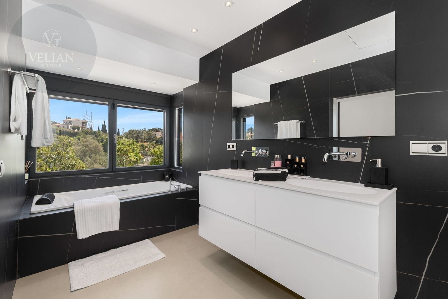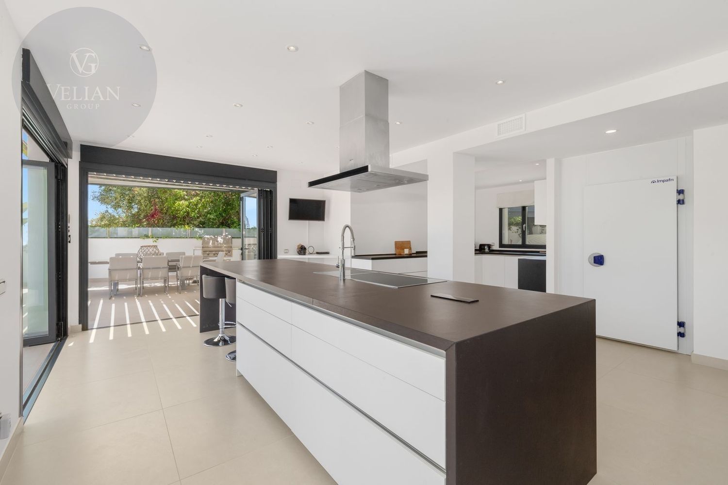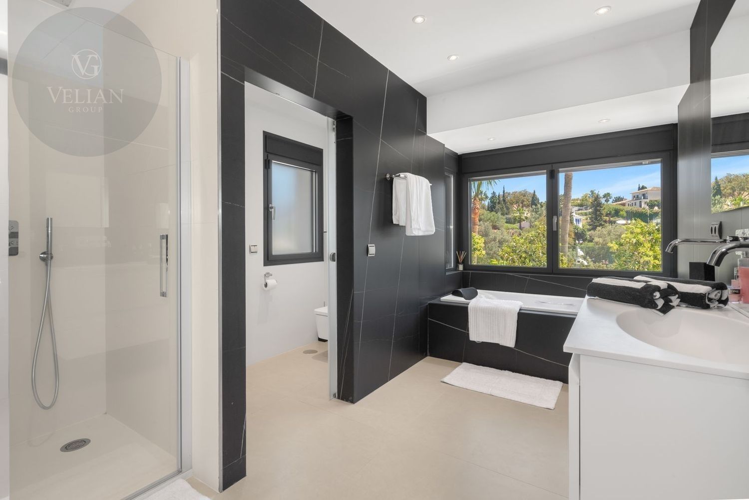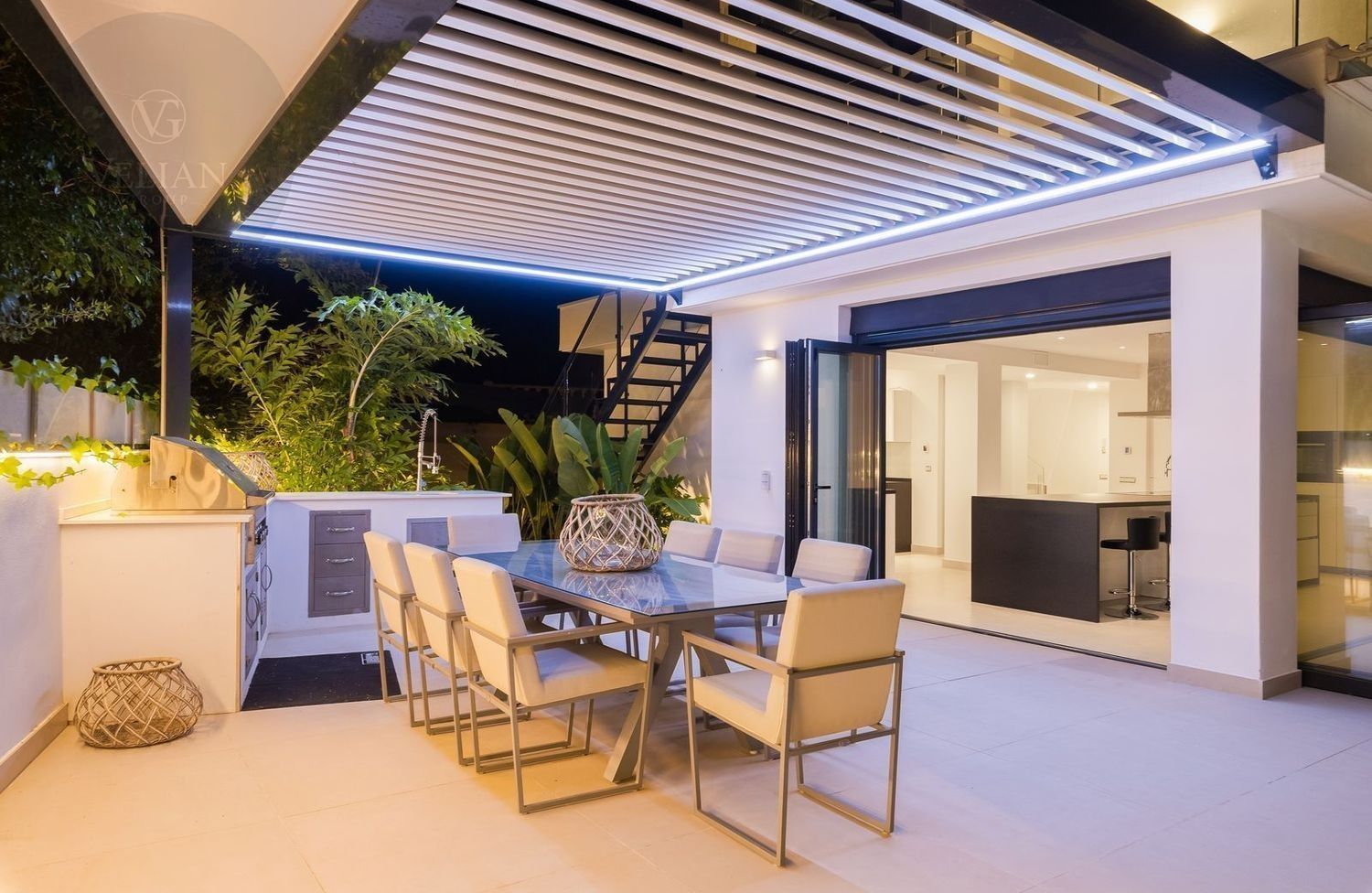 Impresionante villa, situada en la muy atractiva comunidad de El Rosario con seguridad las 24 horas. La villa está situada en una calle muy tranquila sin salida en la parte superior de un camino privado. Convenientemente enclavada cerca de las mejores playas de Marbella tiene a su alrededor una amplia variedad de restaurantes, centros comerciales, campos de golf, clubes deportivos, supermercados y todos los demás servicios accesibles con total facilidad. Esta villa se alza majestuosamente en una parcela elevada, soleada y de generosas dimensiones, rodeada de abundantes palmeras maduras y una amplia variedad de plantas y arbustos. Toda una serie de extras y acabados de alto nivel le esperan en esta maravillosa villa. Con preciosas vistas al mar y a la montaña desde la terraza, la propiedad posee una incomparable sensación de paz, privacidad y seguridad.Un camino privado con puertas automáticas le conduce a la gran entrada de la villa. Encontrará una impresionante cascada que le dará la bienvenida, y más adelante un parking cubierto con sitio para 2 vehículos grandes. La villa se distribuye en 3 niveles.Al entrar, a través de sólidas puertas dobles de seguridad de madera hay un hermoso pasillo con mucha luz natural, brindada por doble altura del techo y la ventana que posee arriba. El pasillo de planta abierta conduce directamente a un amplio salón y comedor, ofreciendo una sensación de espacio, lujo y confort. Puertas correderas dobles y puertas de cristal ocultas conducen a un comedor interior-exterior extra grande ideal para cenas o simplemente para relajarse con amigos y familiares con vistas a la piscina y terraza. Esta magnífica habitación está bañada en luz creando un flujo natural a las zonas exteriores. Todas las ventanas y puertas aquí tienen persianas eléctricas, y enormes puertas plegables de cristal que se abren directamente a la zona de la piscina y a la terraza lateral.La planta baja posee un dormitorio doble, con baño en suite, muy luminoso con una ventana de cristal de longitud completa con vistas a la parte delantera y la fuente de agua. También podemos encontrar un baño de visitas, idealmente situado cerca del pasillo de entrada. La villa dispone de una cocina grande y abierta con una enorme nevera, máquina de hielo, dos hornos Neff integrados (1 doble), cafetera Neff integrada y zona separada para la preparación de alimentos. Esta cocina totalmente equipada tiene una gran isla con taburetes de bar perfecto para socializar. Toda la cocina se abre a través de puertas correderas y plegables de cristal y conduce a una zona de entretenimiento al aire libre totalmente equipada y zona de comedor con cocina de verano y barbacoa. Aquí encontrará un montón de terrazas para disfrutar de cenas al aire libre con protección solar retráctil. La zona de barbacoa también se beneficia de un techo automatizado de apertura / cierre con amplia iluminación incorporada. Desde aquí se puede pasar a través de una selección de hermosas plantas tropicales a una escalera exterior que conduce a las terrazas superiores y solárium.La piscina climatizada tiene sol todo el día, rodeada de una zona de solárium para tumbarse al sol relajadamente. La piscina es de agua salada, también posee ducha y una impresionante cascada. Esta zona es ideal para tomar el sol con fácil acceso a la villa. Alrededor de la piscina podrá disfrutar de las plantas tropicales y palmeras y canto de los pájaros dando una sensación de paraíso. Hay una sección de jardín con árboles frutales y huerto.Las escaleras a la 1 ª planta son la imagen de la elegancia con una ventana de piso a techo e iluminada por una lámpara de araña con hermosa caída. Arriba, la villa ofrece dos habitaciones dobles muy amplias y luminosas a las que se accede a través de un largo pasillo, ambas con sus propios sistemas de entrada con teclado, baños privados y acceso directo a las cálidas terrazas.