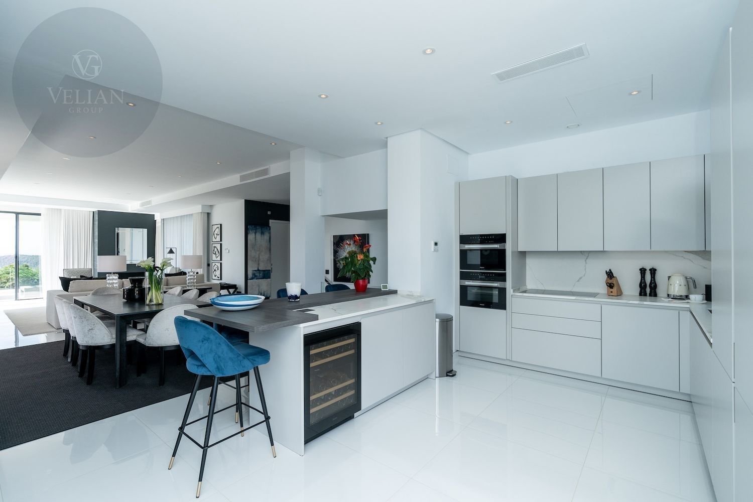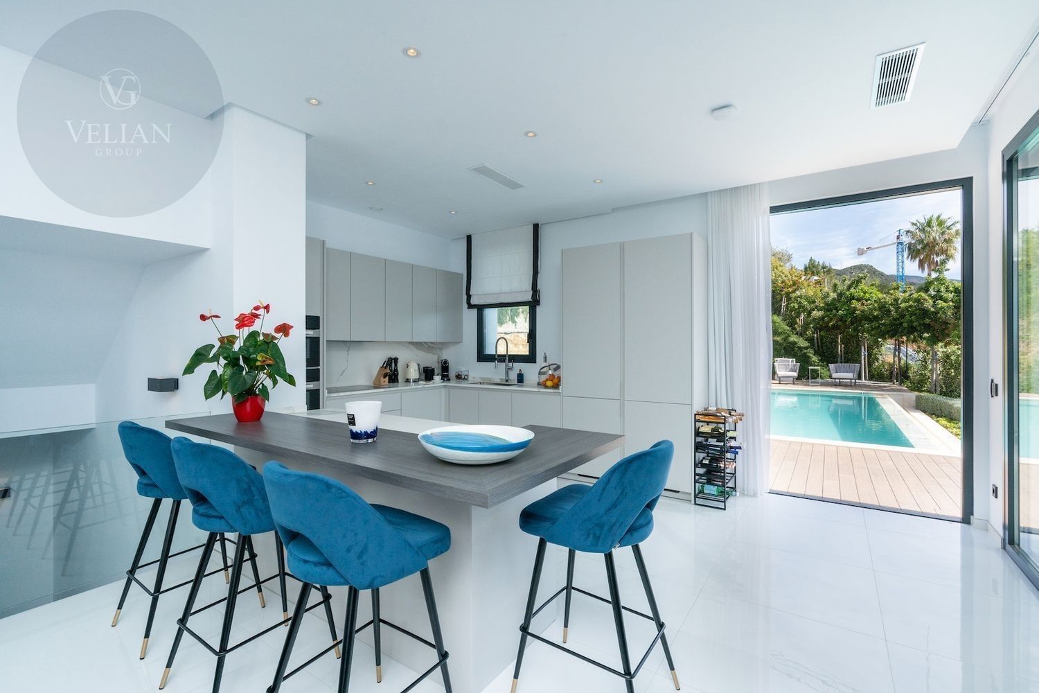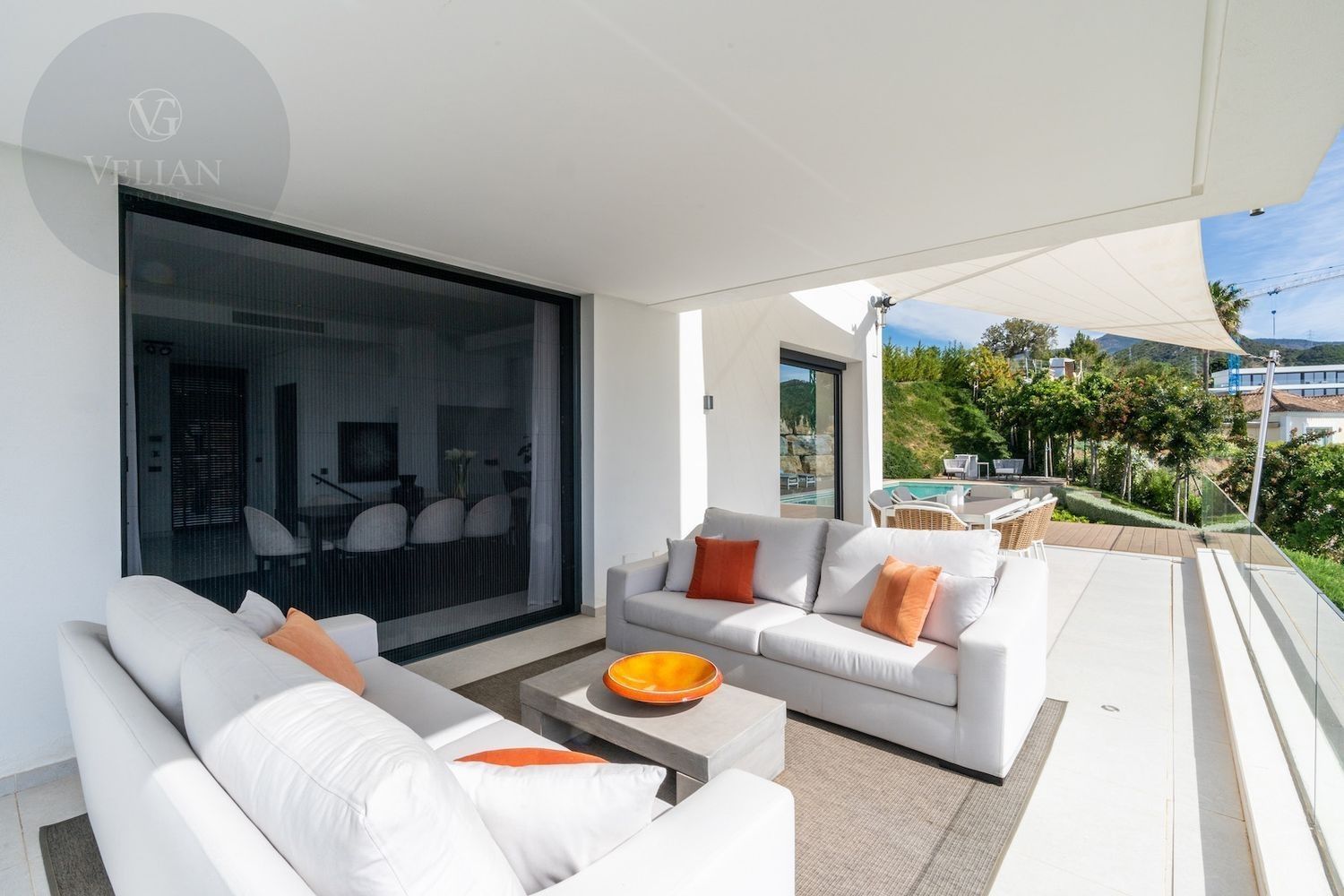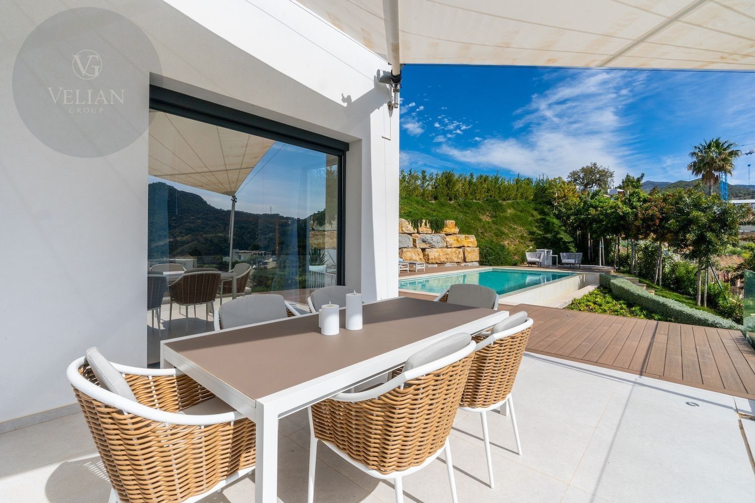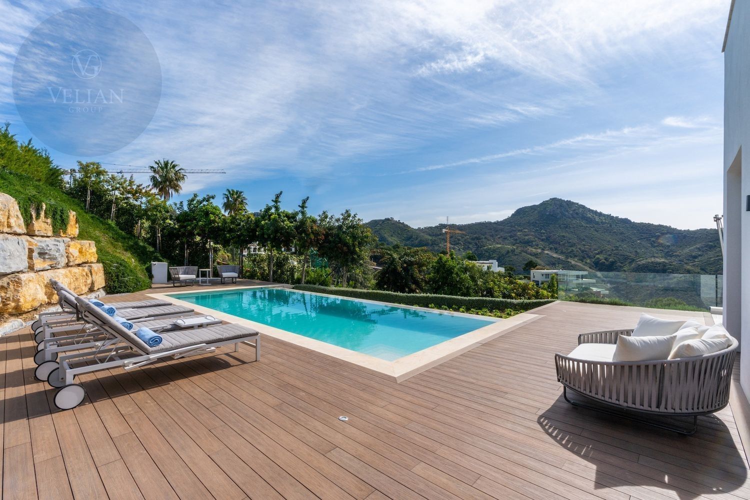 Introducing a stunning villa, nestled in the serene landscapes of Montemayor, Benahavis, offering a blend of luxury and tranquility. This stunning property provides a lavish home with its impressive features and breathtaking views.Situated in a coveted location, this villa presents 5 spacious bedrooms, each accompanied by its own en suite bathroom. Upon entering, you are greeted by the warmth of the south-facing orientation, providing the interiors with natural light and offering picturesque views of the surrounding mountains and sea. The expansive living spaces features a welcoming living room with fireplace, a refined dining area, and a fully furnished kitchen equipped with modern appliances.Step outside to discover a pristine swimming pool with stylish terrace, manicured private gardens and a covered terrace ideal for alfresco dining and entertaining guests. With a generous plot size of 2,500 square meters, there is ample space for outdoor activities.For added convenience, this villa boasts a private garage with 3 parking spaces, ensuring secure storage for your vehicles. Additional features include air conditioning, underfloor heating in bathrooms, a laundry room, and a home automation system for enhanced comfort and efficiency.Located in a gated community with 24-hour security service, residents can enjoy peace of mind and utmost privacy. Furthermore, the property is in excellent condition, meticulously maintained to meet the highest standards of luxury living.The villa offers the perfect blend of exclusivity and style.