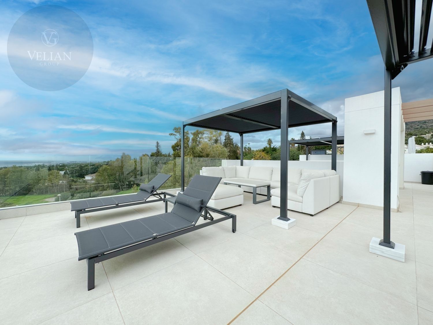 Esta descripción ha sido traducida automáticamente y puede que no sea muy precisa.Ver descripción en el idioma originalEste extraordinario townhouse de cinco dormitorios en Sierra Blanca se erige como la joya de la corona del exclusivo desarrollo Le Blanc, ofreciendo una combinación inigualable de lujo, diseño y ubicación. Ubicada como la mejor unidad del complejo, esta propiedad en esquina goza de una codiciada orientación suroeste, proporcionando extraordinarias vistas al mar desde la entrada y la sala de estar que le dejarán sin aliento.La casa está equipada con una gran variedad de características de lujo para elevar su experiencia de vida. Un ascensor privado conecta todos los niveles sin problemas, mientras que el sótano ofrece un espacio adicional versátil para almacenamiento o recreación. En el nivel de la sala de estar, una amplia terraza cuenta con una piscina privada tipo plunge pool, ideal para relajarse mientras disfruta de las espectaculares vistas al Mediterráneo. El solárium corona esta magnífica casa con un jacuzzi y una cocina exterior totalmente equipada, perfecta para cenar al aire libre o entretenerse bajo el sol andaluz.Los interiores llenos de luz están cuidadosamente diseñados para integrarse armoniosamente con los espacios exteriores, maximizando las vistas panorámicas de la casa y creando un ambiente sereno y elegante. El aparcamiento seguro para varios vehículos se complementa con la seguridad y tranquilidad de una comunidad cerrada con seguridad las 24 horas.Con su envidiable posición en esquina, sus lujosas comodidades y sus excepcionales vistas, este townhouse ofrece un estilo de vida de sofisticación incomparable en una de las direcciones más prestigiosas de Marbella. Es una verdadera obra maestra, que combina privacidad, belleza y comodidad en un hogar que define el arte de la vida moderna.