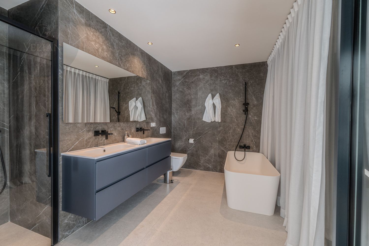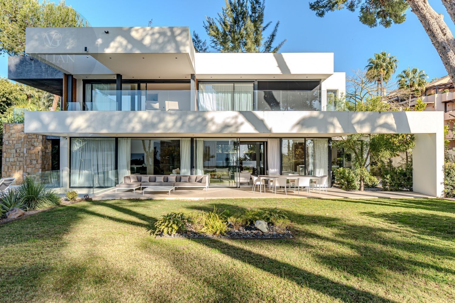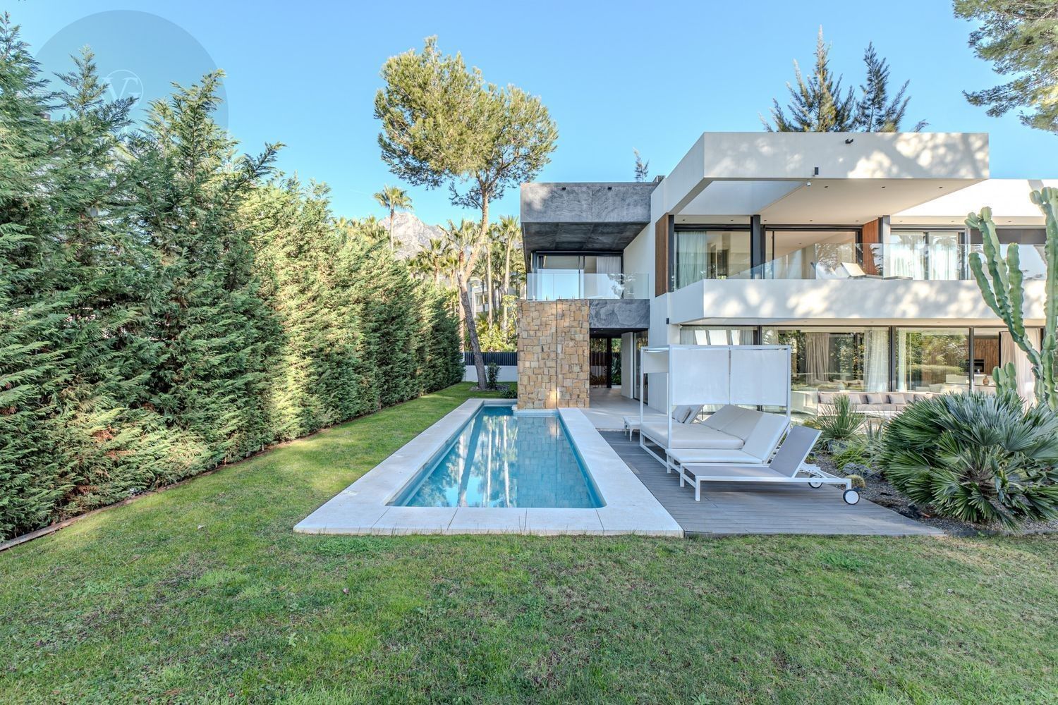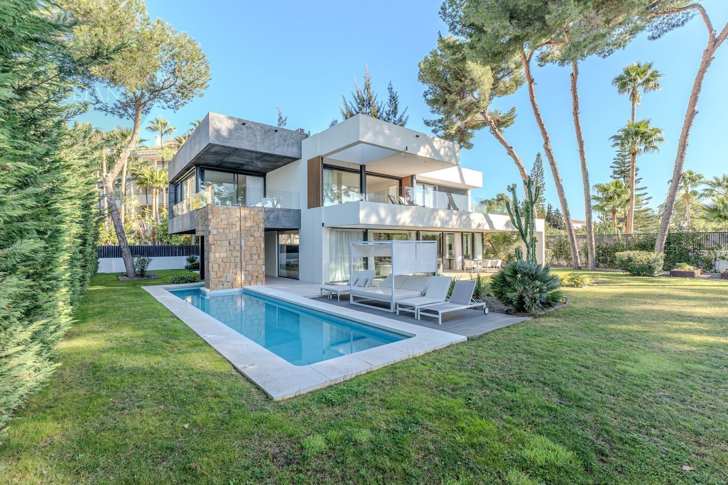 Esta villa moderna se encuentra en una de las zonas más buscadas y prestigiosas de Marbella: la Milla de Oro. Diseñado y construido a los más altos estándares, la propiedad cuenta con ventanas expansivas que inundan cada habitación con luz natural. La villa captura perfectamente la esencia mediterránea que define el estilo de Marbella. La parcela se ve reforzada por imponentes pinares, que desempeñan un papel clave en la configuración del diseño y la creación de espacios diversos y tranquilos en toda la propiedad.En la planta baja, se encuentra una amplia zona de planta abierta dividida por varios patios donde la naturaleza toma el escenario central. Este nivel incluye un salón, comedor, cocina, despensa y aseo de invitados, todo perfectamente conectado para un flujo armonioso.Arriba, hay cuatro dormitorios, dos de los cuales comparten un baño y cada uno tiene acceso a una gran terraza privada. La suite principal disfruta del lujo añadido de un jacuzzi en su terraza. Vistas al mar desde la primera planta.El sótano continúa la filosofía de diseño de la casa, permitiendo mucha luz natural y garantizando una excelente ventilación. Este nivel incluye un gimnasio, un quinto dormitorio con baño en suite, lavadero, espacio de almacenamiento y una habitación técnica.Otras características incluyen calefacción por suelo radiante en todas partes, un sistema hogareño inteligente y un elegante jardín que se combina perfectamente con el entorno. La villa se vende totalmente amueblada y está lista para entrar. Una casa única a pocos pasos del centro de Marbella y a solo 5 minutos de Puerto Banús.