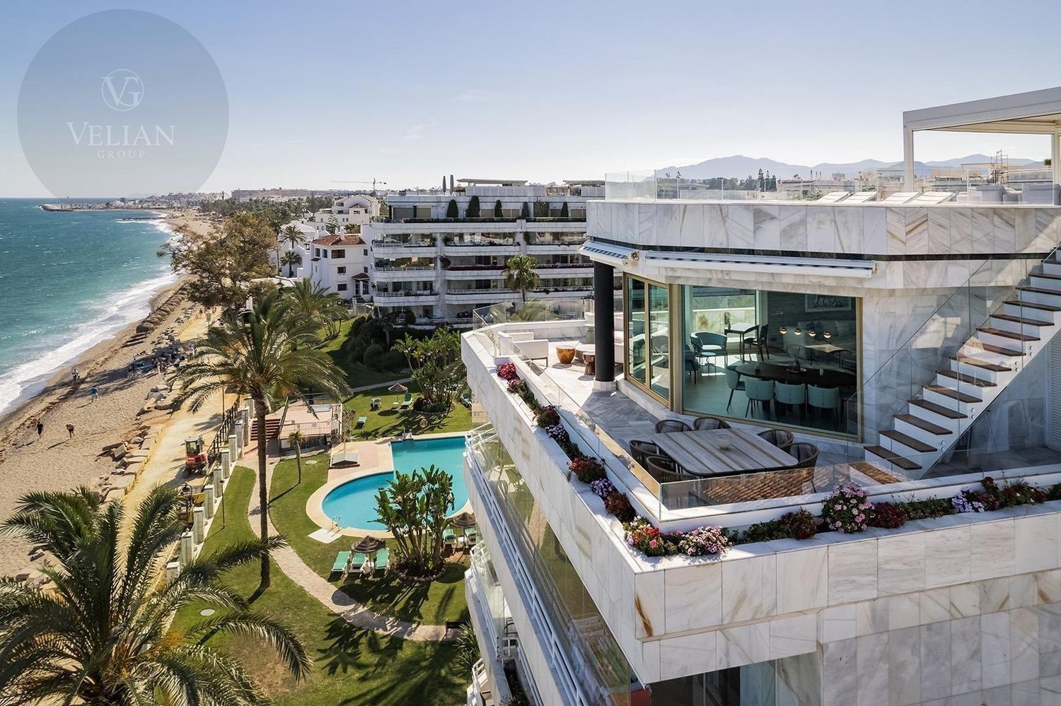 Exclusivo ático dúplex en primera línea de playa.Descubre este espectacular ático dúplex en el prestigioso Conjunto Playa Esmeralda, una de las urbanizaciones más exclusivas de Marbella, con acceso directo al mar. Este enclave privilegiado combina lujo, privacidad y comodidad en el corazón de la Costa del Sol.Con impresionantes vistas 360º que abarcan desde el azul infinito del Mediterráneo hasta la majestuosidad de las montañas, esta propiedad de ensueño ofrece:3 dormitorios con baños en suite, diseñados con materiales de primera calidad y acabados impecables.1 aseo para invitados, perfecto para recibir con estilo.Amplio salón panorámico, donde el diseño y las vistas se fusionan para crear un espacio único.Cocina equipada con primeras marcas, orientada tanto al mar como a la montaña, perfecta para disfrutar del arte culinario con vistas incomparables.Impresionante terraza privada, ideal para relajarte, celebrar cenas al aire libre o simplemente disfrutar de los amaneceres y atardeceres más hermosos de Marbella.Equipado con lo último en domótica, suelo radiante y aire acondicionado, este ático garantiza una experiencia de lujo, confort y eficiencia energética durante todo el año.Además, cuenta con un garaje privado con capacidad para 5 vehículos, una rareza en esta ubicación, ideal para los amantes del confort y la exclusividad.Todo esto en un entorno único, rodeado de jardines cuidadosamente diseñados y con acceso a las mejores playas de Marbella.