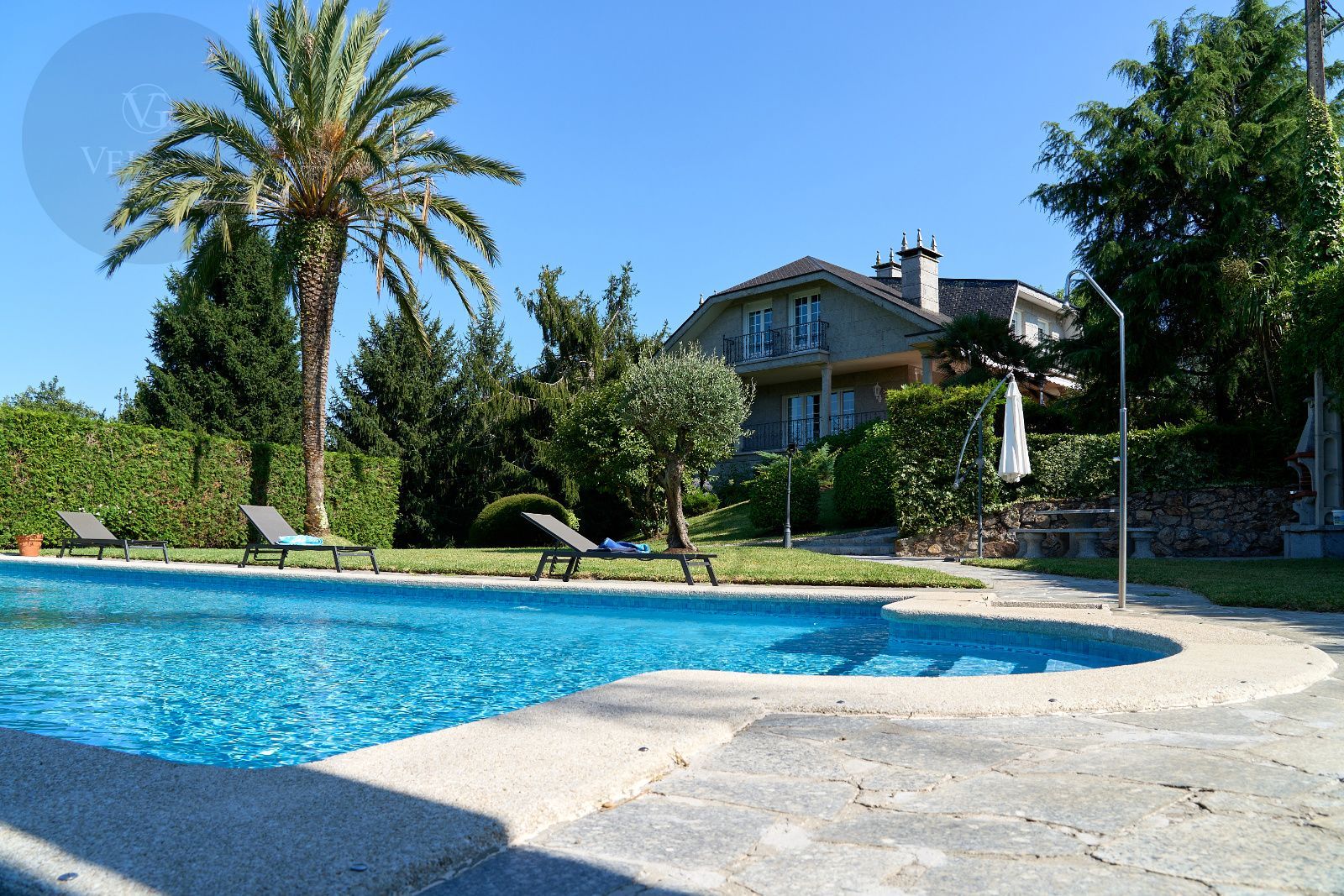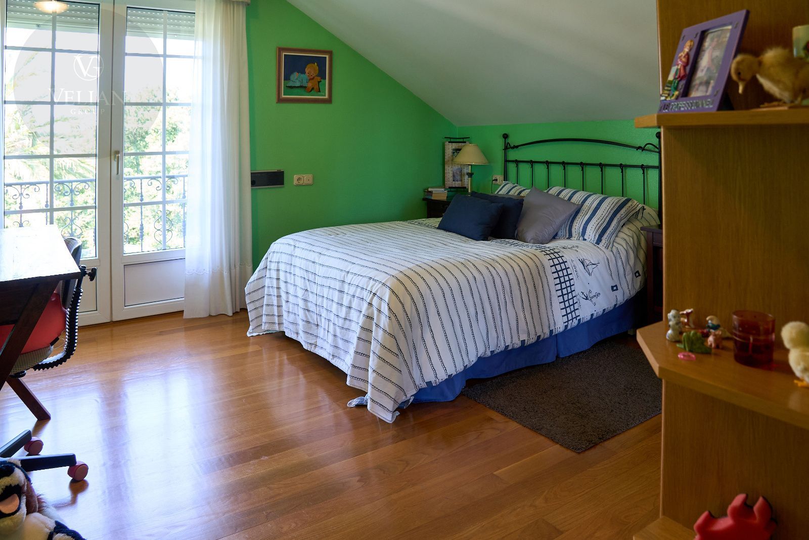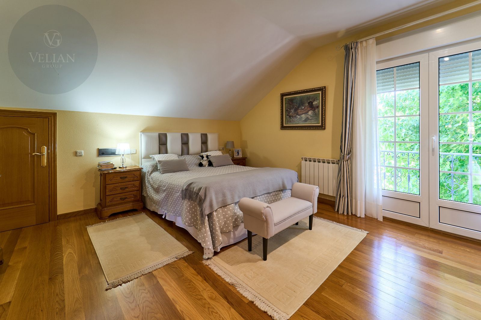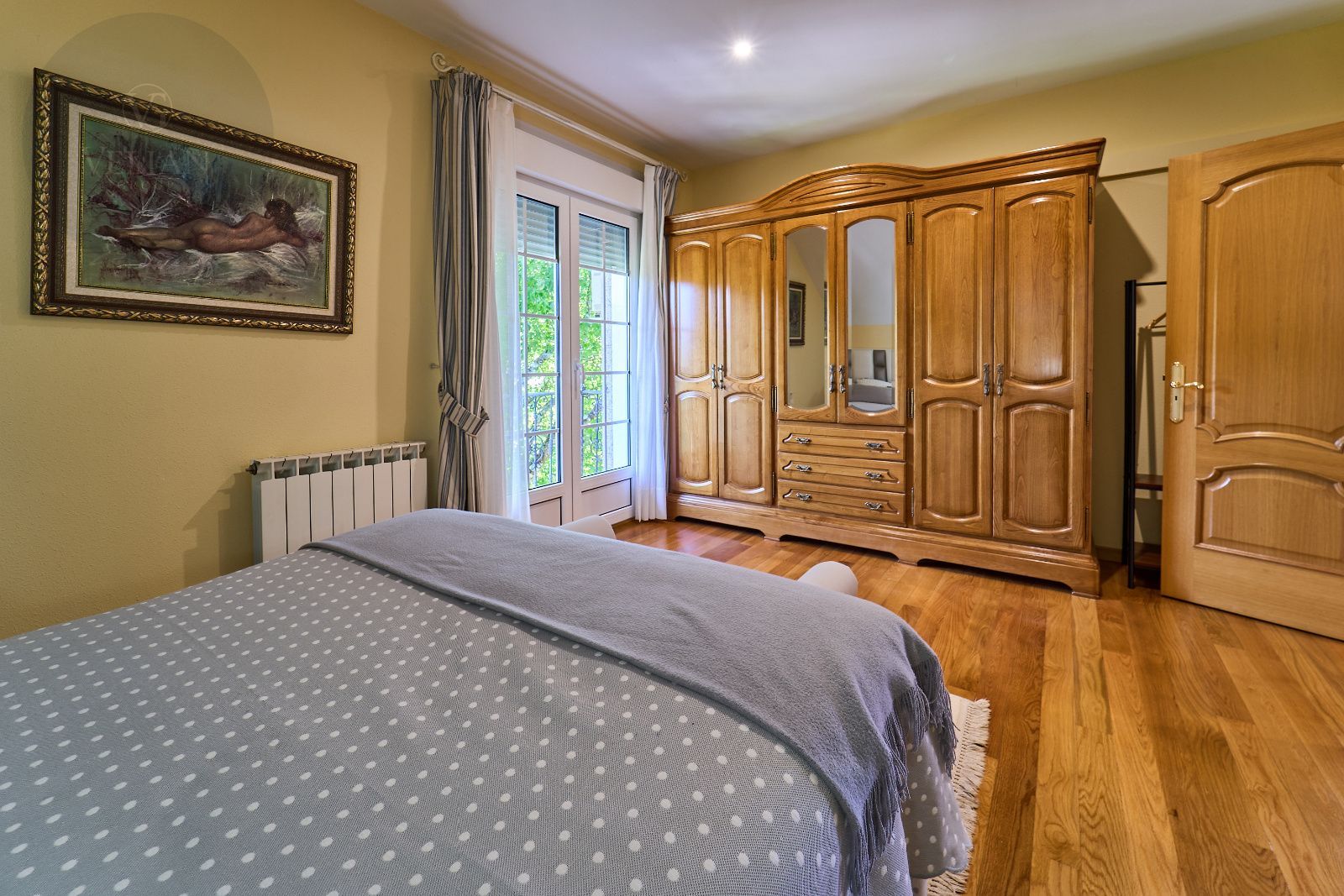 Distribuida en tres plantas, esta casa ofrece 446 m² construidos asentados sobre una finca de más de 4.000 m² completamente cerrada por un sólido muro de piedra, lo que garantiza intimidad y seguridad. La vivienda cuenta con cinco amplios dormitorios, todos ellos con balconcillo y armarios empotrados en roble americano, cuatro baños completos y un aseo de cortesía.
