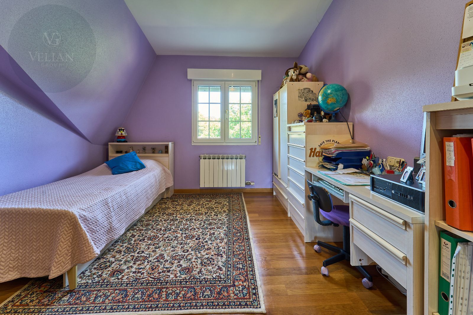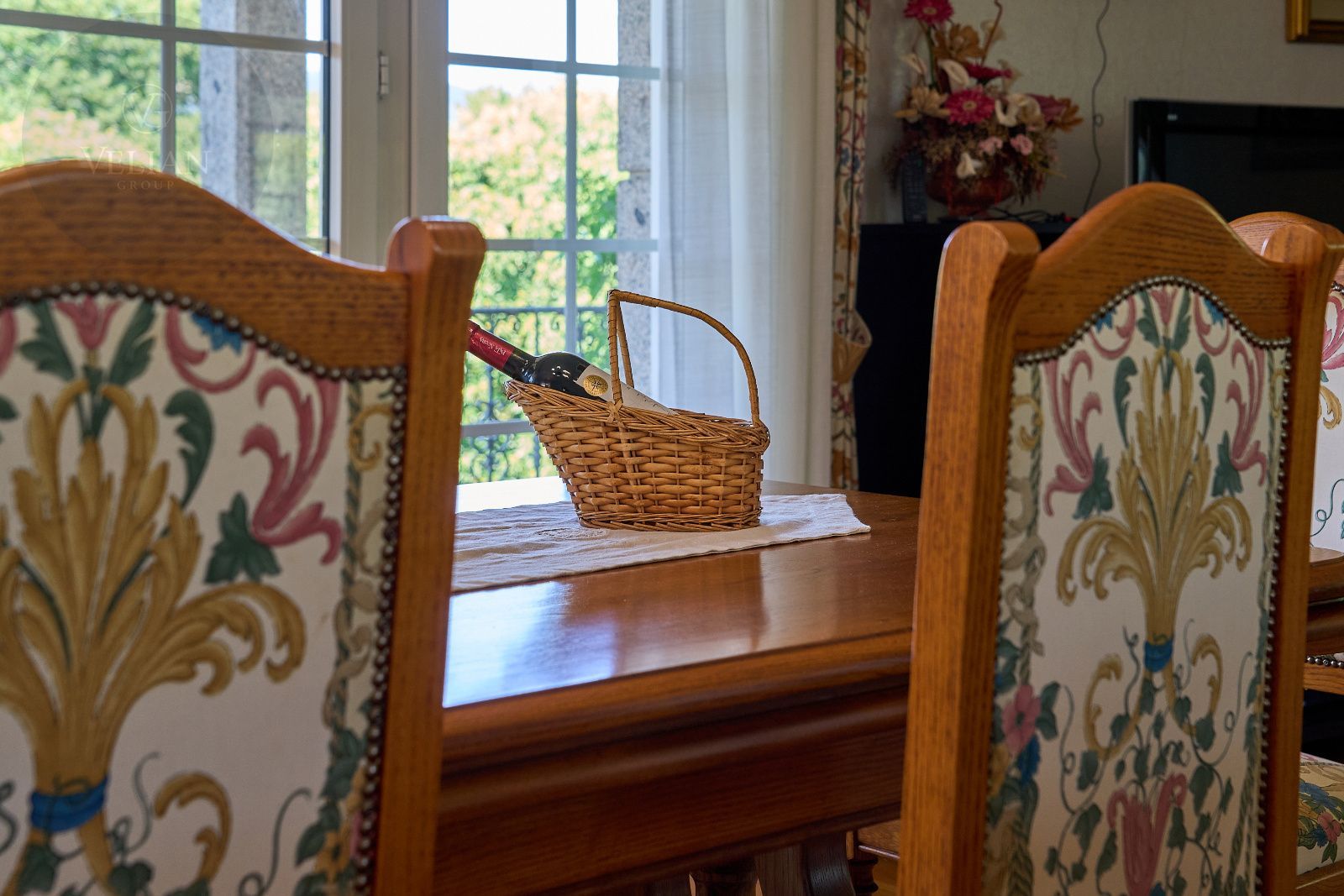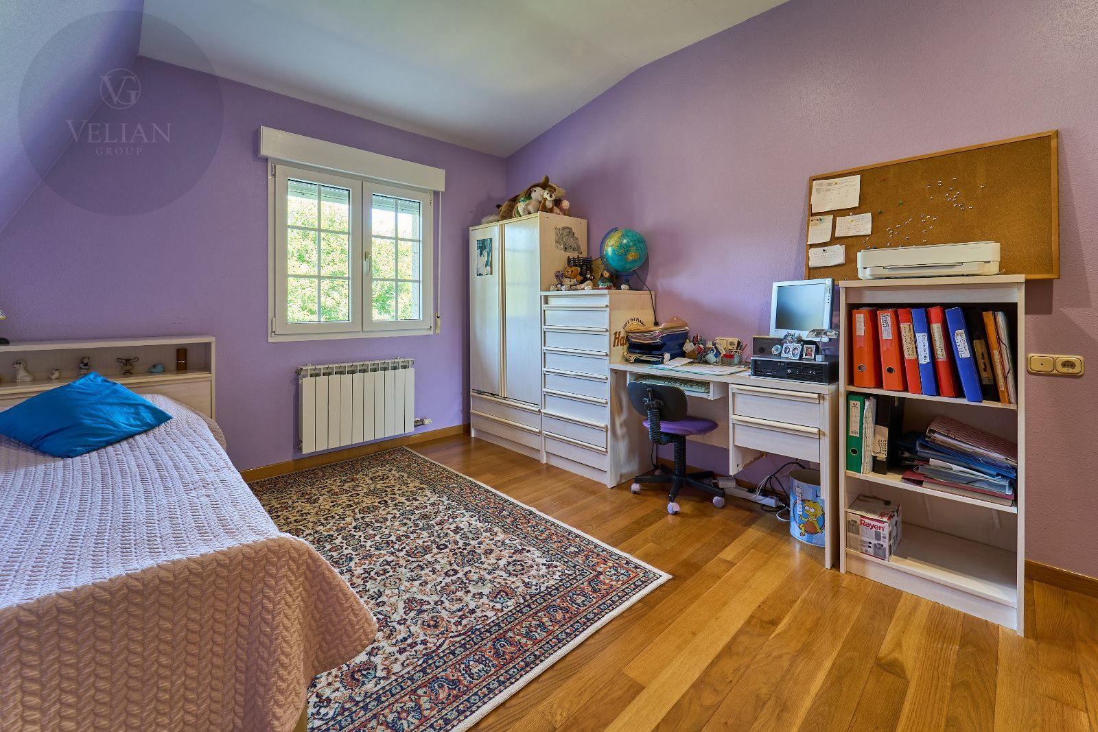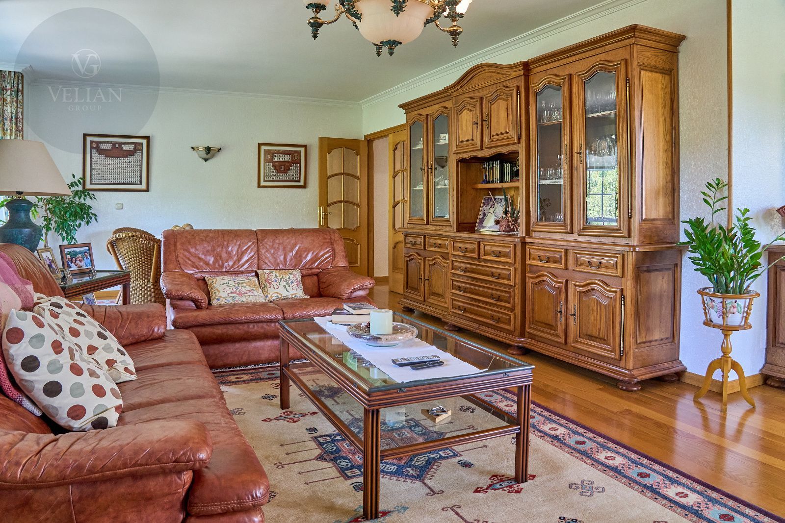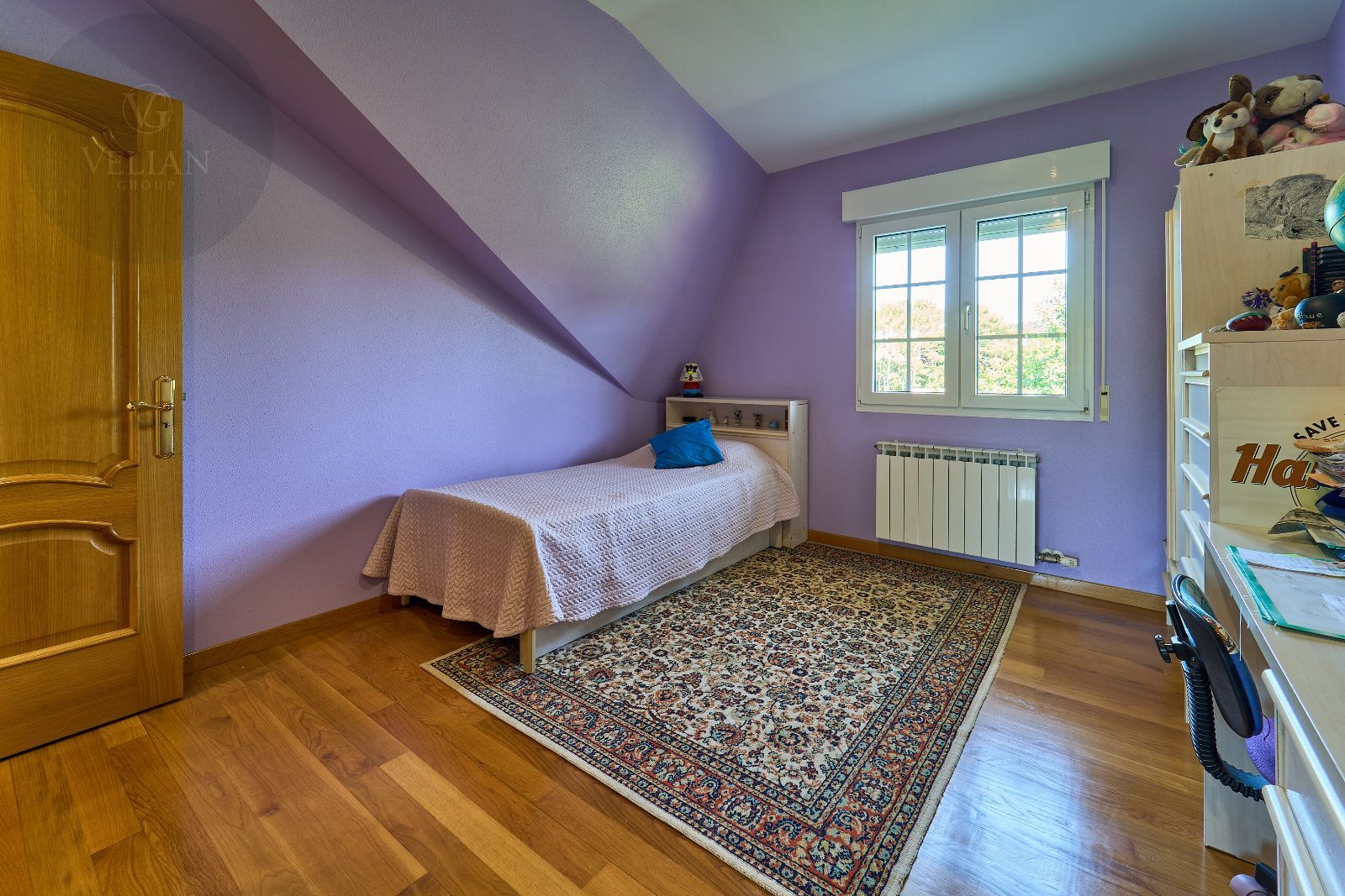 Distribuida en tres plantas, esta casa ofrece 446 m² construidos asentados sobre una finca de más de 4.000 m² completamente cerrada por un sólido muro de piedra, lo que garantiza intimidad y seguridad. La vivienda cuenta con cinco amplios dormitorios, todos ellos con balconcillo y armarios empotrados en roble americano, cuatro baños completos y un aseo de cortesía.