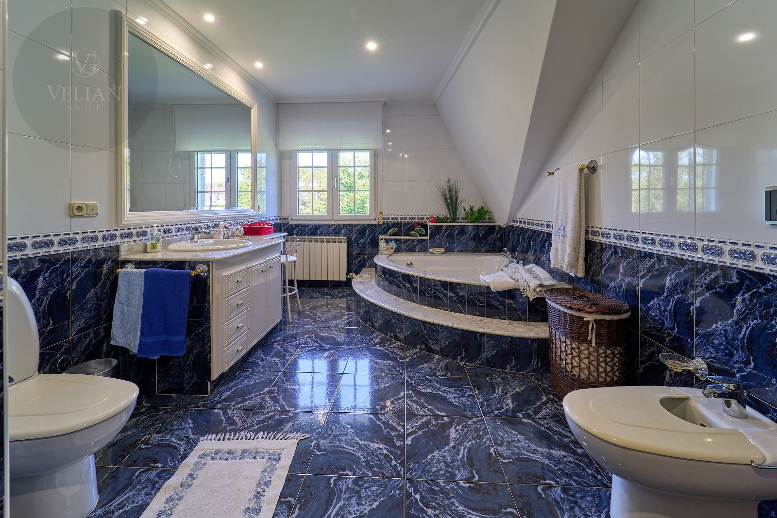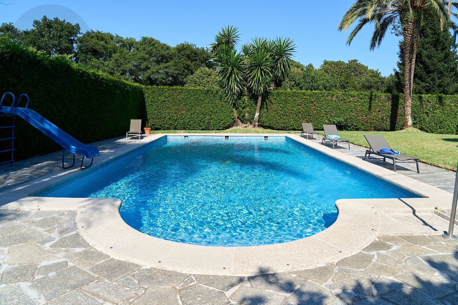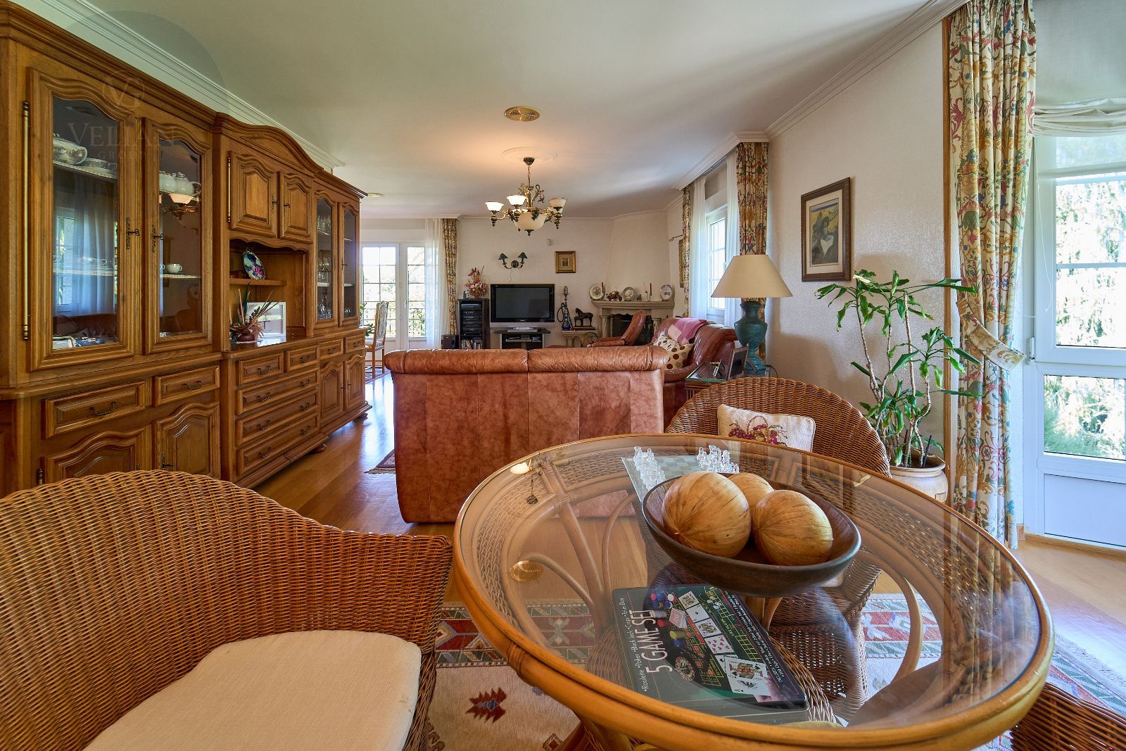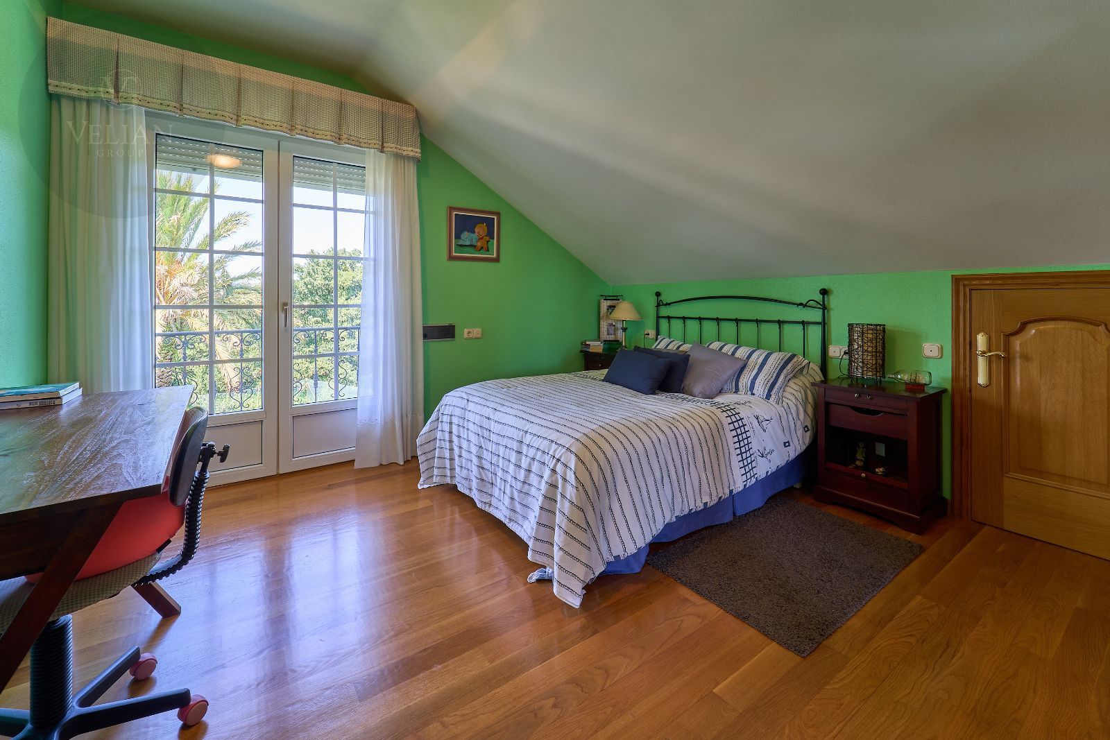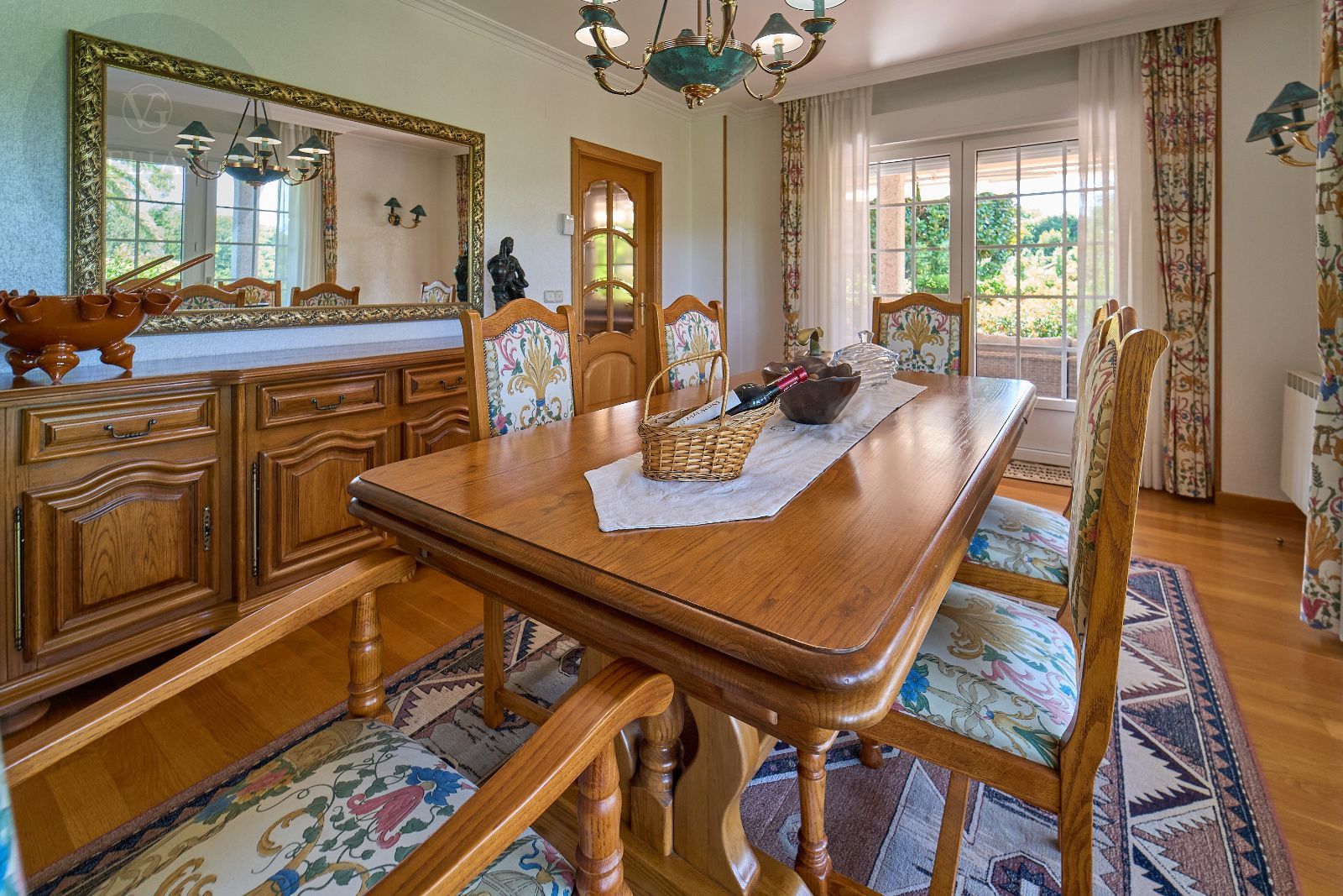 Distribuida en tres plantas, esta casa ofrece 446 m² construidos asentados sobre una finca de más de 4.000 m² completamente cerrada por un sólido muro de piedra, lo que garantiza intimidad y seguridad. La vivienda cuenta con cinco amplios dormitorios, todos ellos con balconcillo y armarios empotrados en roble americano, cuatro baños completos y un aseo de cortesía.