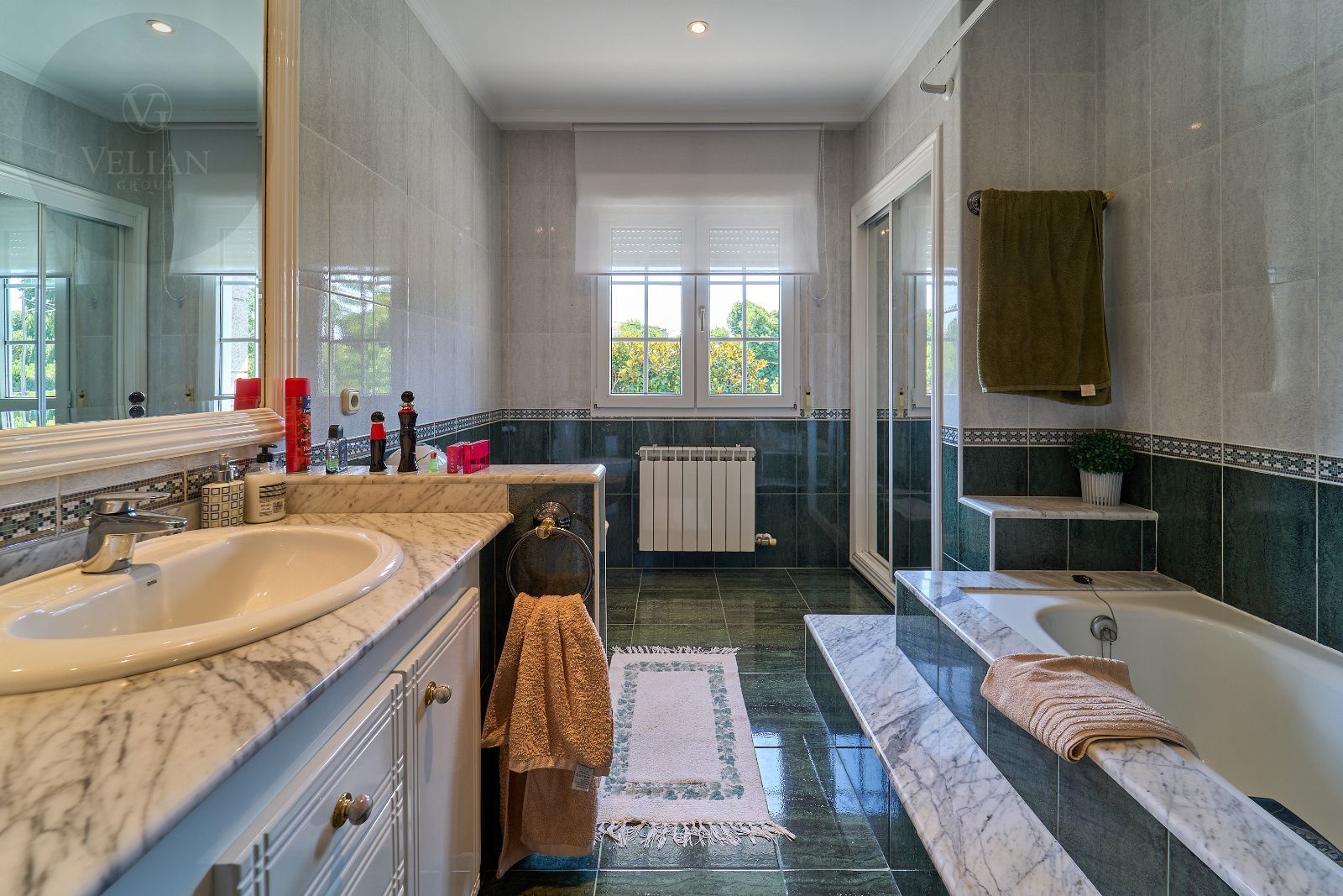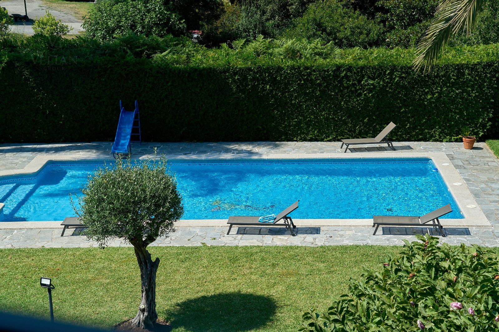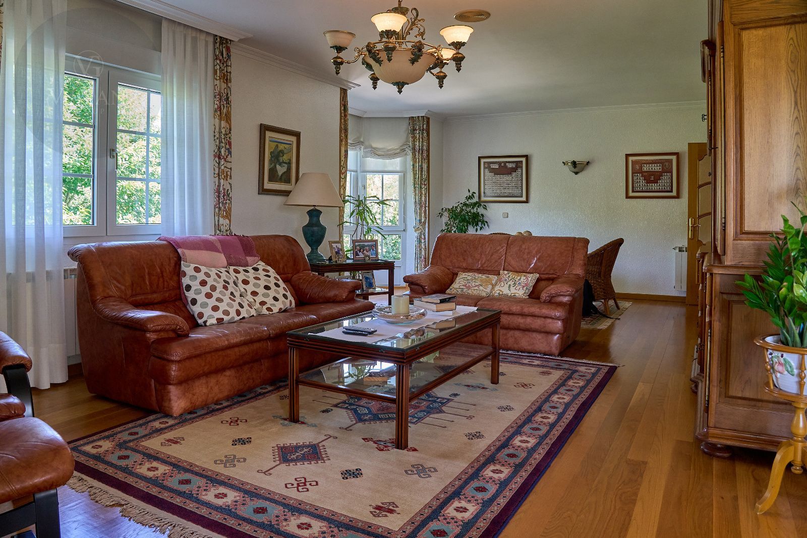 El inmueble cuenta además con garaje, trastero, caldera de gasoil, piscina privada, pista de tenis de hierba, sistema de riego automático y portales motorizados que facilitan el acceso. Todo ello rodeado de zonas verdes y el susurro constante del río, ofreciendo una calidad de vida difícil de igualar.