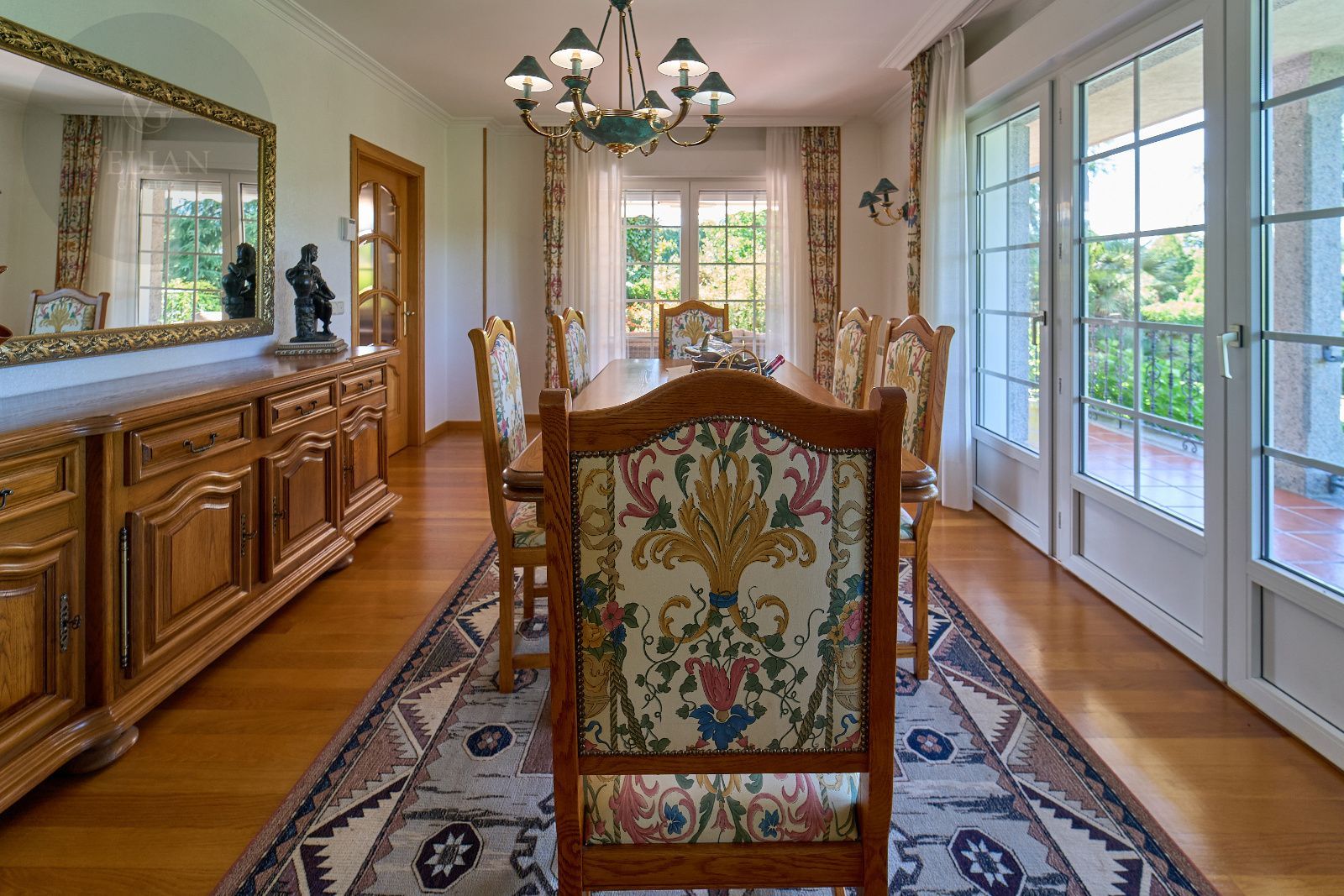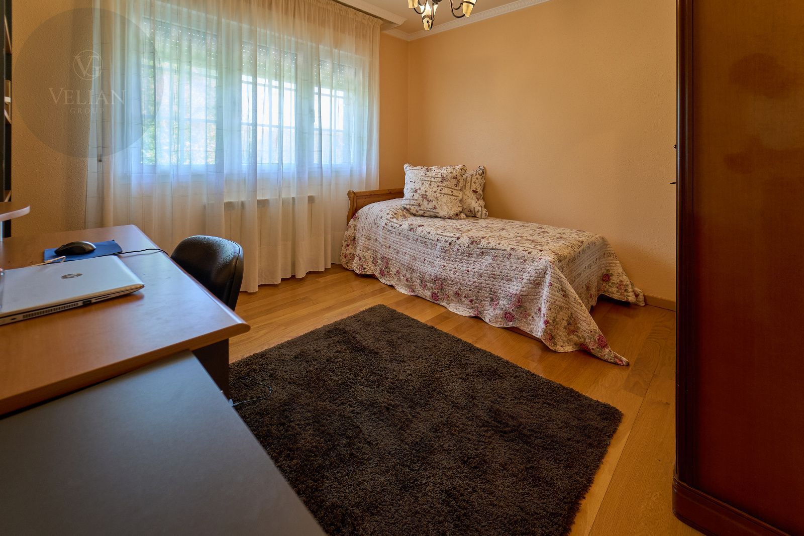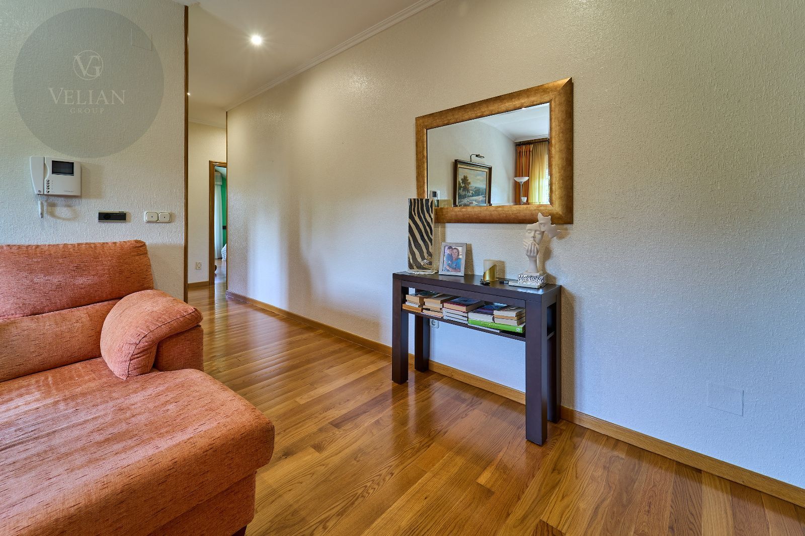 En su interior destacan acabados nobles como el suelo de roble americano en toda la casa, un sistema de aspiración centralizada, hilo musical integrado, aire acondicionado y una cuidada distribución pensada para la comodidad de toda la familia. La calidez de los espacios interiores se extiende a su exterior gracias a un acogedor porche-terraza con vistas al jardín.