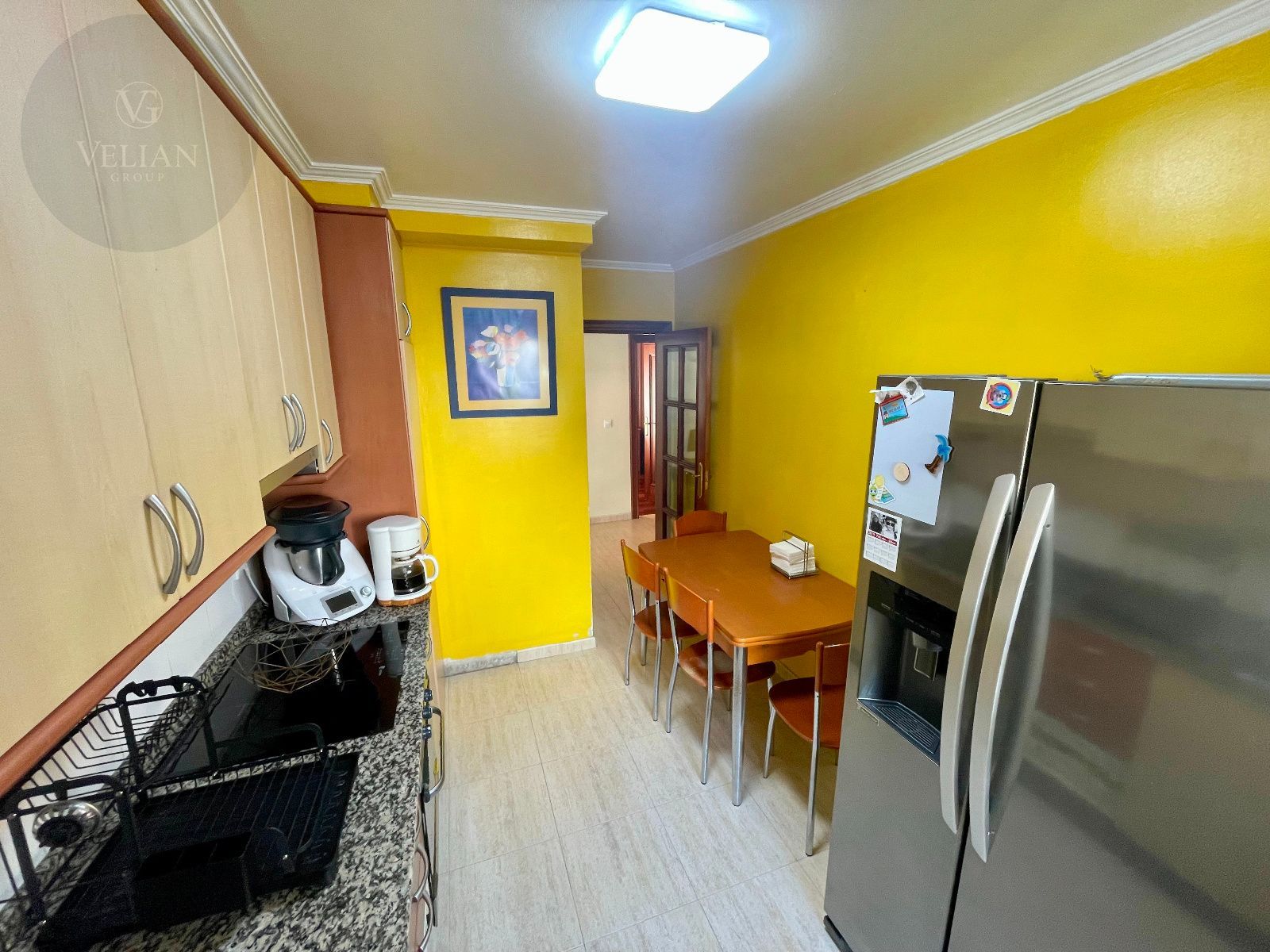 Ubicado en una primera planta con ascensor, cuenta con tres dormitorios exteriores (uno en suite con baño completo), salón amplio con doble orientación y excelente ventilación, cocina independiente totalmente amueblada con cuarto de lavandería, y un segundo baño con ducha. Todos los dormitorios tienen armarios empotrados.